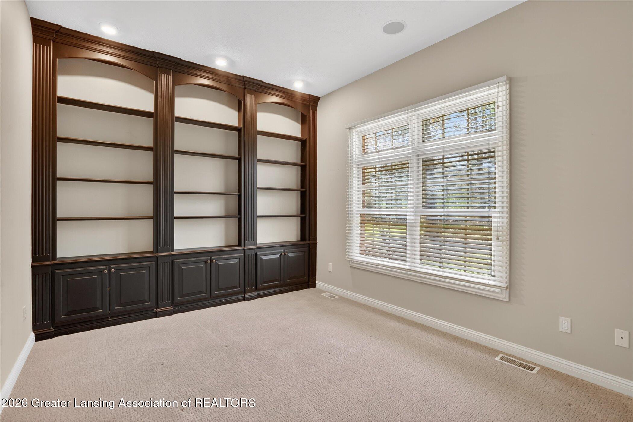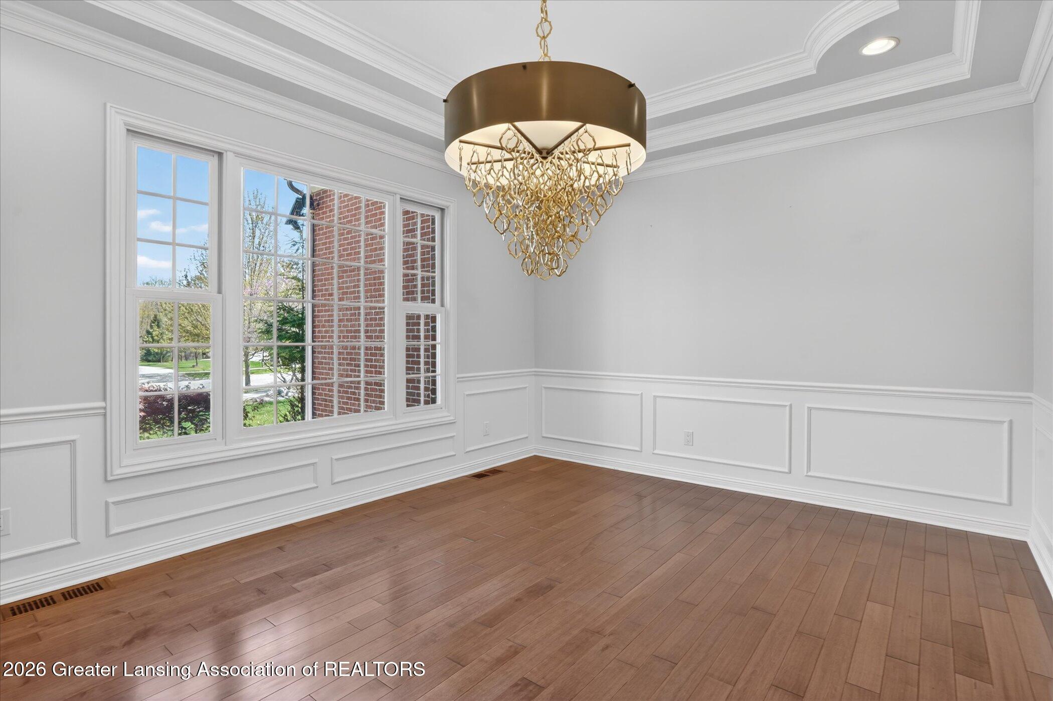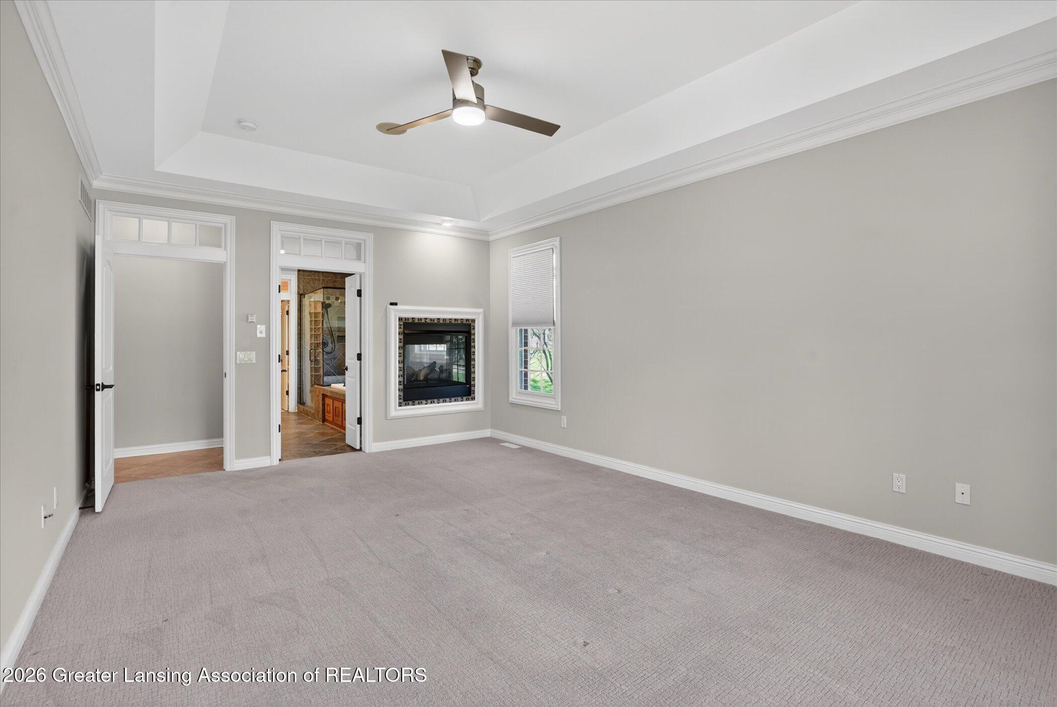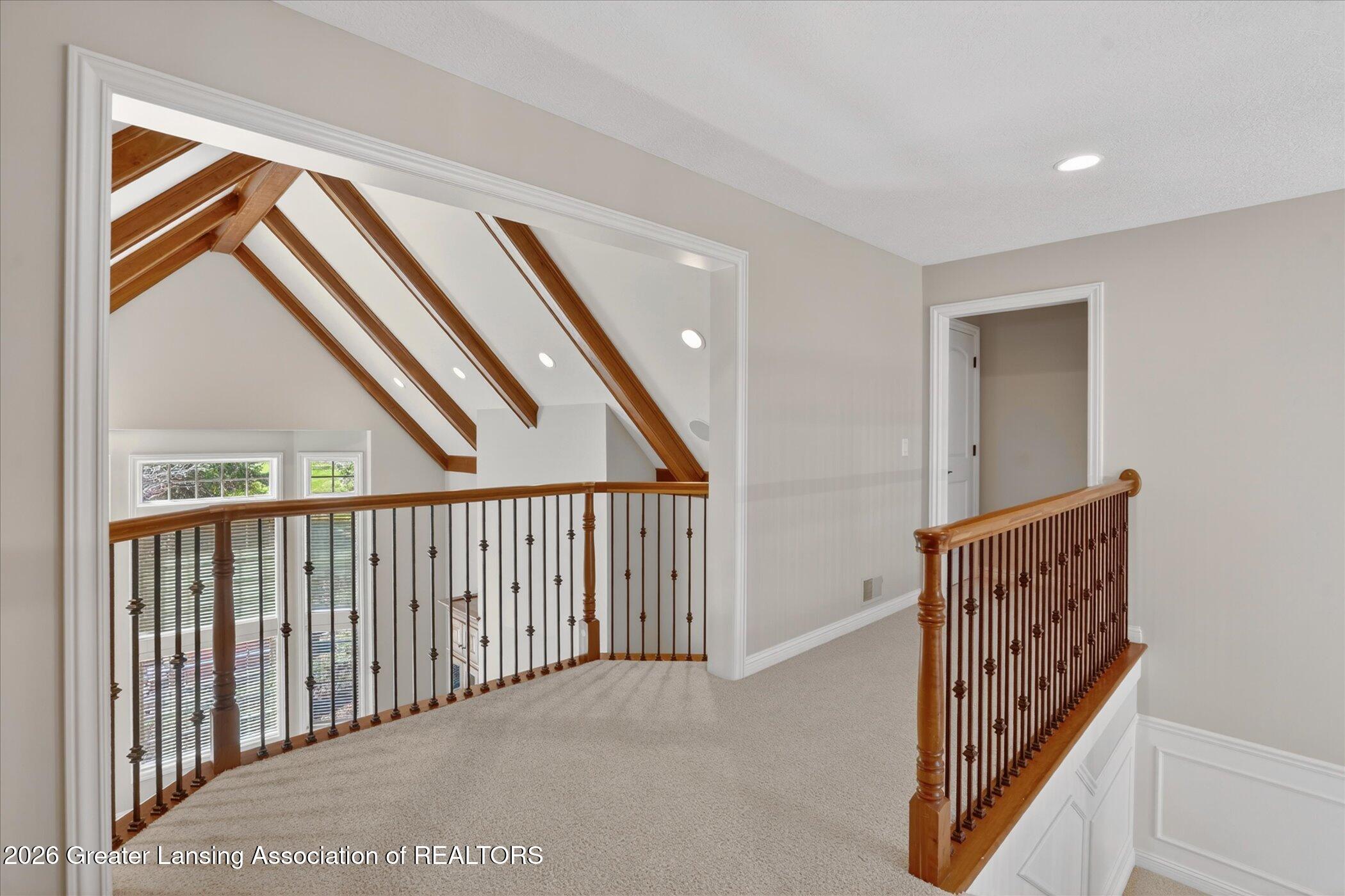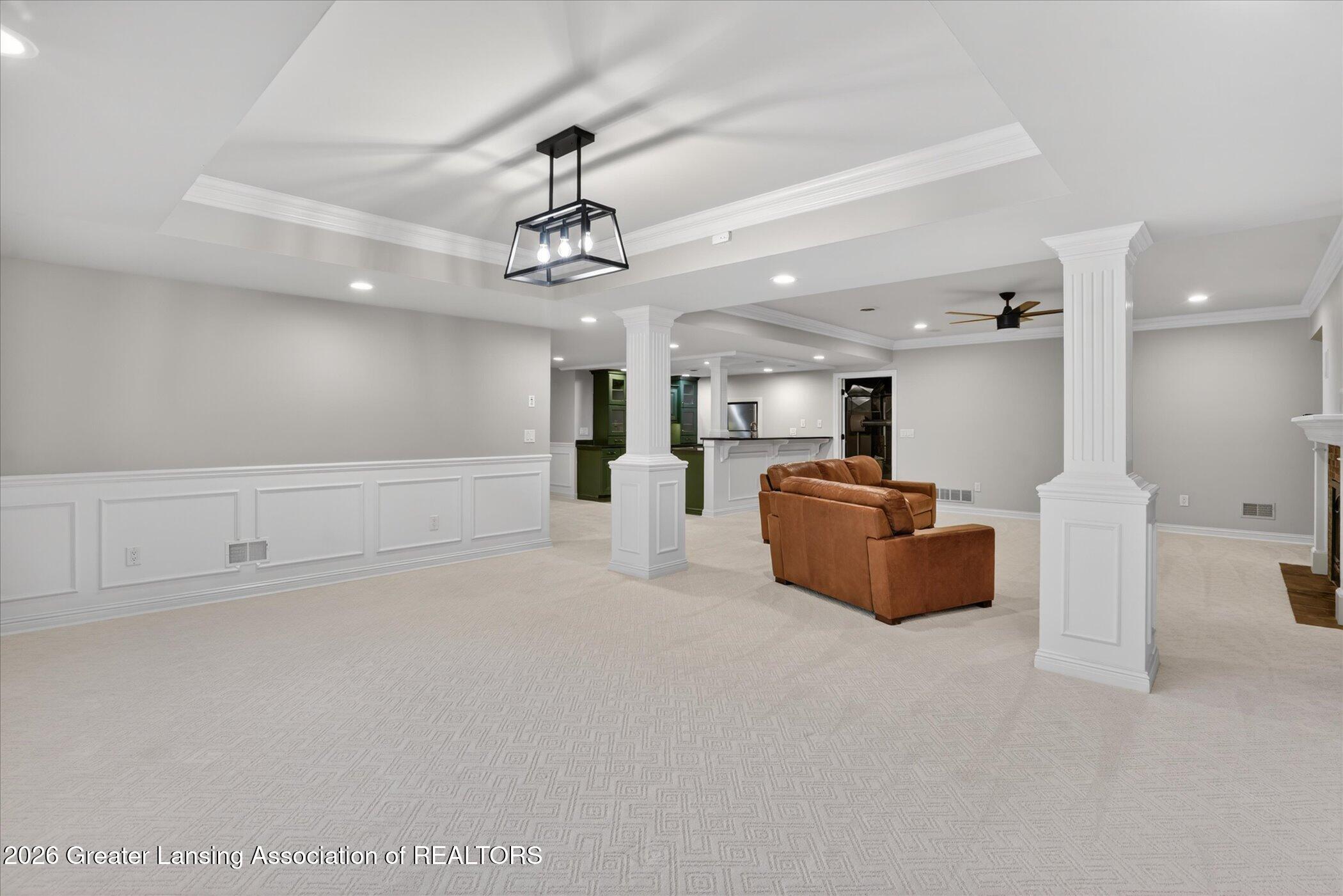 Welcome to 1437 Wandering Way, an exceptional 5-bedroom, 5.5-bath, all brick executive style home tucked away on a private cul-de-sac in the highly sought-after Ember Oaks subdivision, within the award-winning Okemos School District. This impressive residence seamlessly blends timeless elegance with modern updates. Over 300,000 in tasteful updates since 2023! To name a few, revamped landscaping, a brand-new roof, new furnace, fresh paint, new carpet, and updated lighting throughout. The first floor offers an ideal layout for both everyday living and entertaining, featuring a spacious eat-in chefs kitchen, a dramatic two-story great room with beamed ceilings and a gas fireplace, formal dining room, den, and convenient first-floor laundry. A private office with custom cabinetry provides the perfect work-from-home space. The luxurious first-floor primary suite is a true retreat, boasting a spa-like ensuite with a two-sided gas fireplace and an expansive walk-in closet. Upstairs, youll find four generously sized bedrooms, each with its own full bathroom and walk-in closet, along with a versatile bonus room complete with a wet bar and gas fireplace, perfect for entertaining or additional living space. The finished lower level elevates this home even further, offering a full bathroom, expansive living area, in-home theater, bar area, an 80k fully encapsulated dedicated cigar room addition in 2024, and an enormous storage space. Step outside to enjoy the large, private, tree-lined lot with mature landscaping, a brick-paved patio, screened-in porch, and hot tub, an ideal setting for relaxing or hosting gatherings. This extraordinary home offers privacy, luxury, and comfort in one of Okemos most prestigious neighborhoods. A must see! Call today for your private tour.