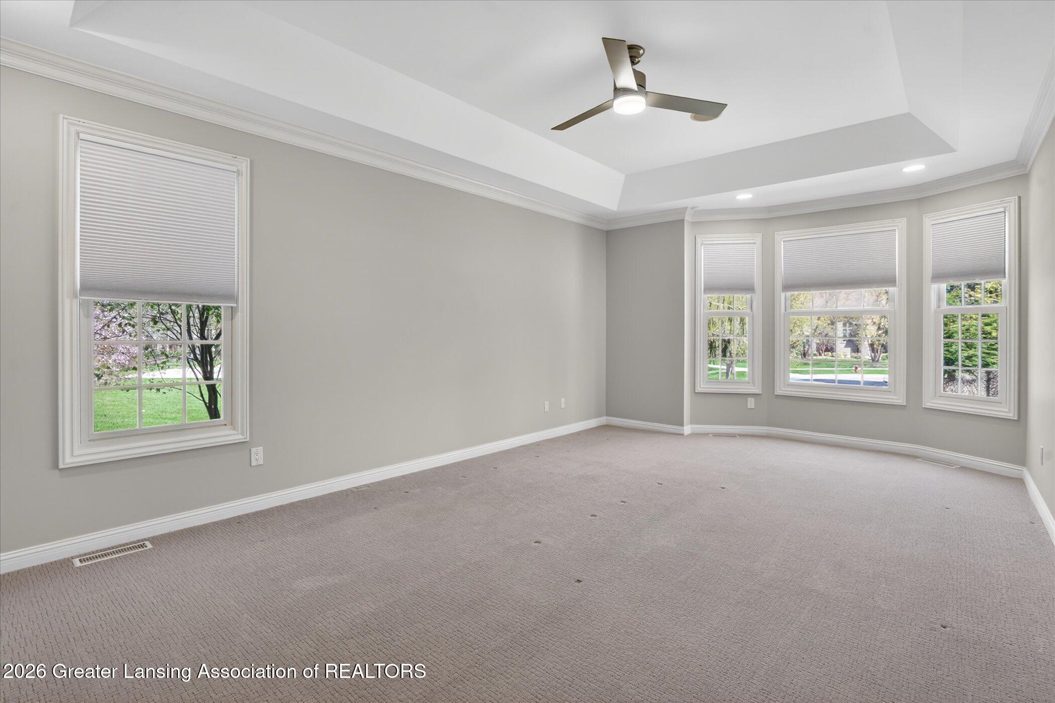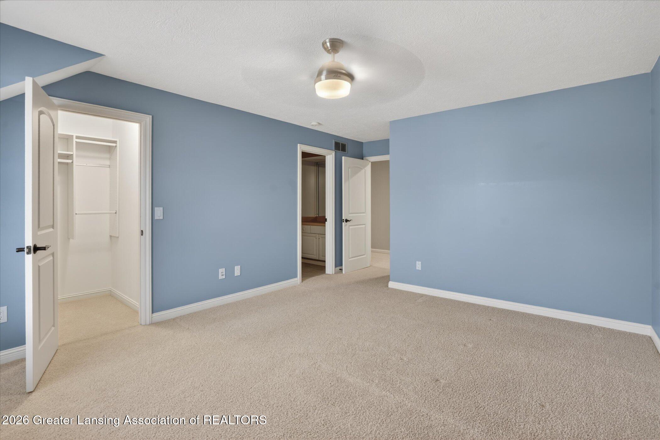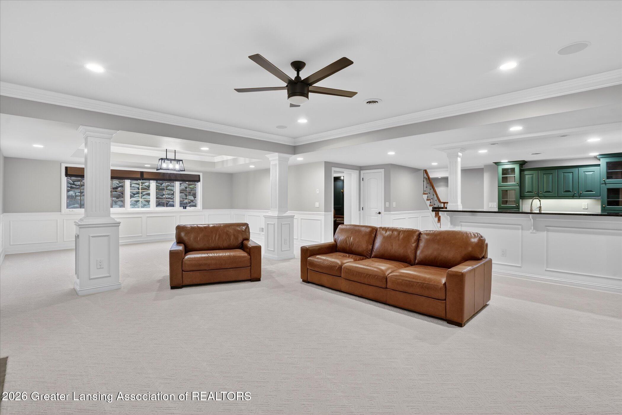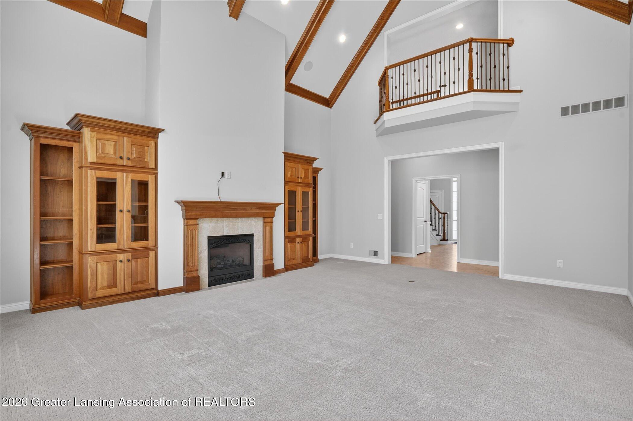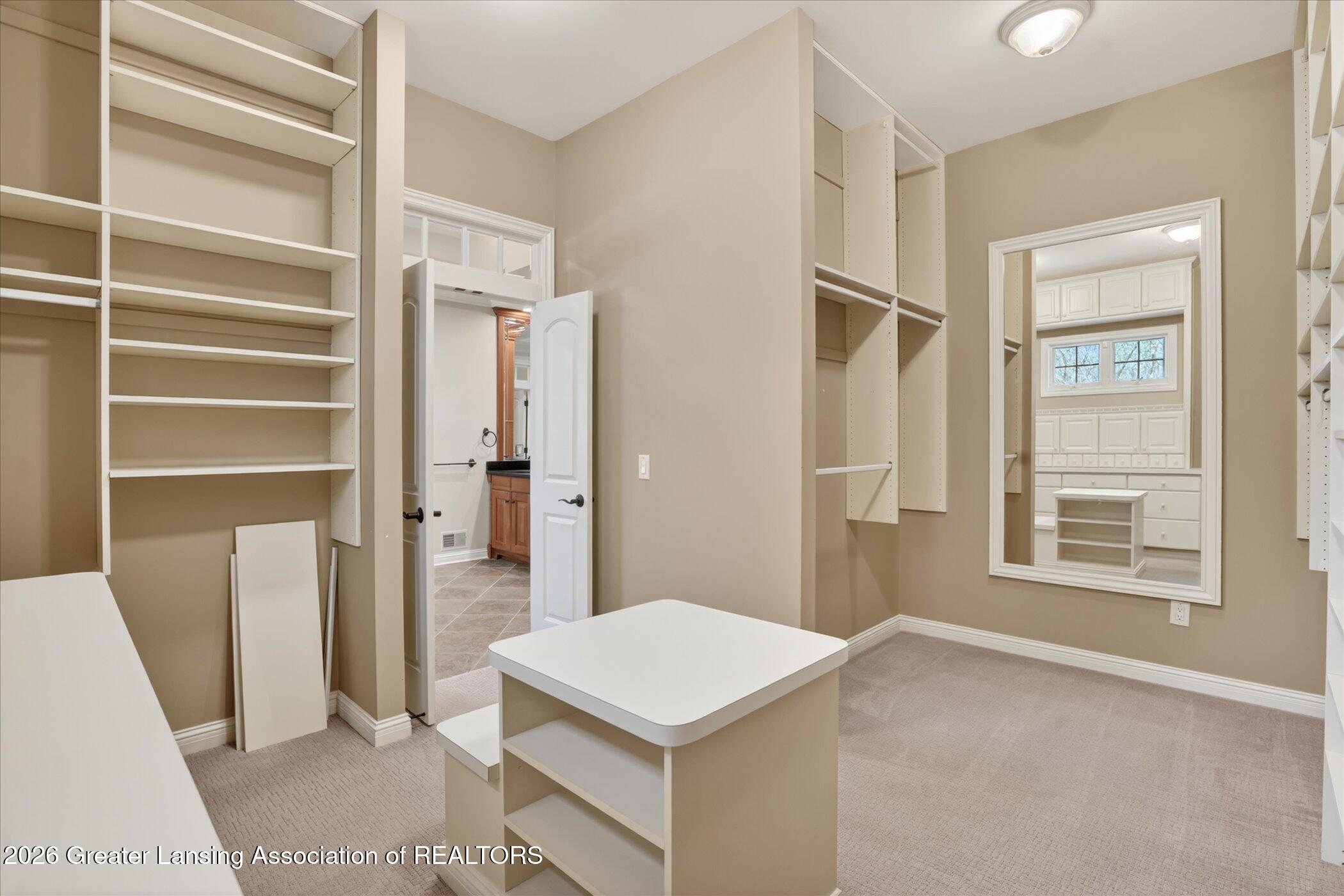 Welcome to 1437 Wandering Way, an exceptional 5-bedroom, 5.5-bath, all brick executive style home tucked away on a private cul-de-sac in the highly sought-after Ember Oaks subdivision, within the award-winning Okemos School District. This impressive residence seamlessly blends timeless elegance with modern updates. Over 300,000 in tasteful updates since 2023! To name a few, revamped landscaping, a brand-new roof, new furnace, fresh paint, new carpet, and updated lighting throughout. The first floor offers an ideal layout for both everyday living and entertaining, featuring a spacious eat-in chefs kitchen, a dramatic two-story great room with beamed ceilings and a gas fireplace, formal dining room, den, and convenient first-floor laundry. A private office with custom cabinetry provides the perfect work-from-home space. The luxurious first-floor primary suite is a true retreat, boasting a spa-like ensuite with a two-sided gas fireplace and an expansive walk-in closet. Upstairs, youll find four generously sized bedrooms, each with its own full bathroom and walk-in closet, along with a versatile bonus room complete with a wet bar and gas fireplace, perfect for entertaining or additional living space. The finished lower level elevates this home even further, offering a full bathroom, expansive living area, in-home theater, bar area, an 80k fully encapsulated dedicated cigar room addition in 2024, and an enormous storage space. Step outside to enjoy the large, private, tree-lined lot with mature landscaping, a brick-paved patio, screened-in porch, and hot tub, an ideal setting for relaxing or hosting gatherings. This extraordinary home offers privacy, luxury, and comfort in one of Okemos most prestigious neighborhoods. A must see! Call today for your private tour.