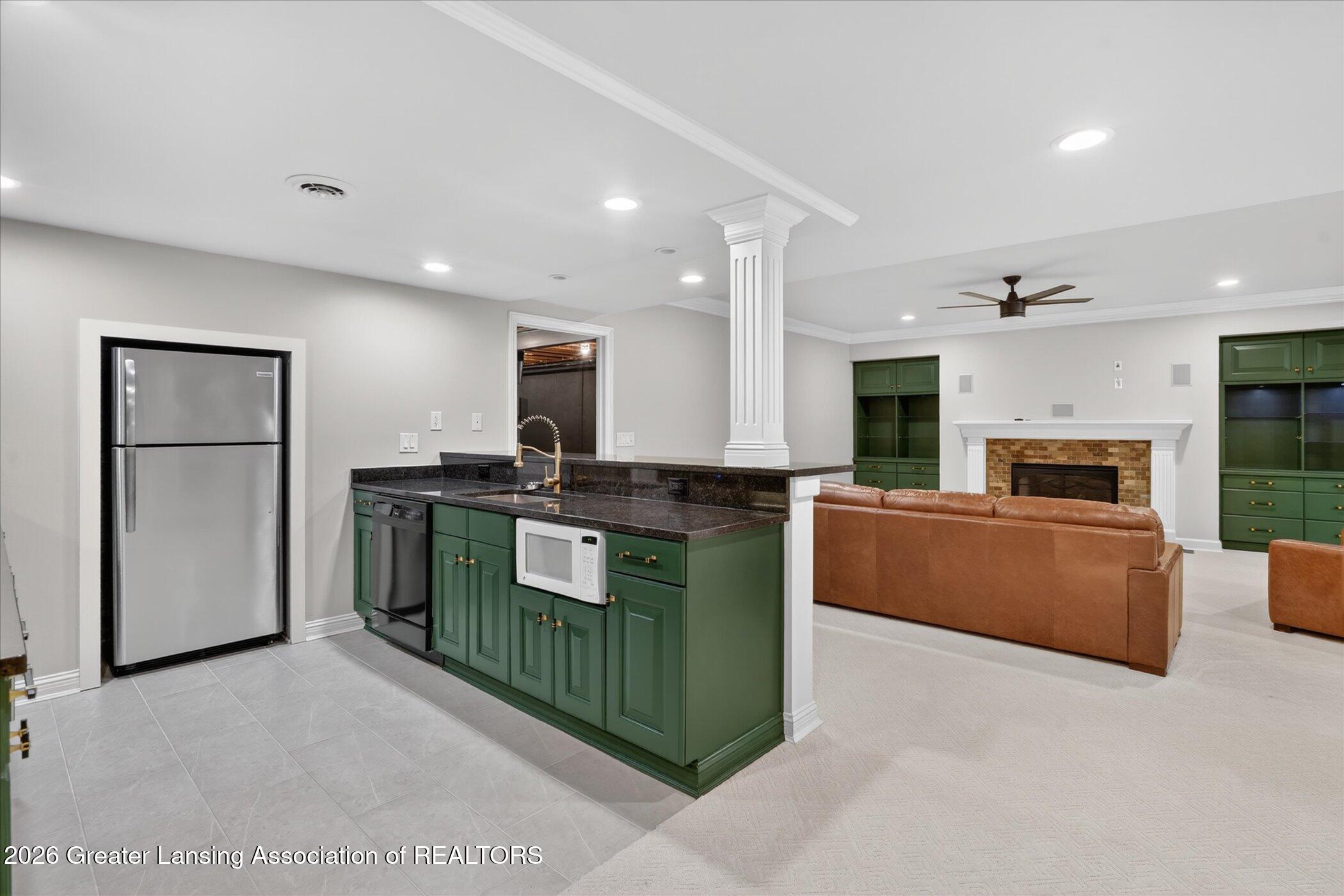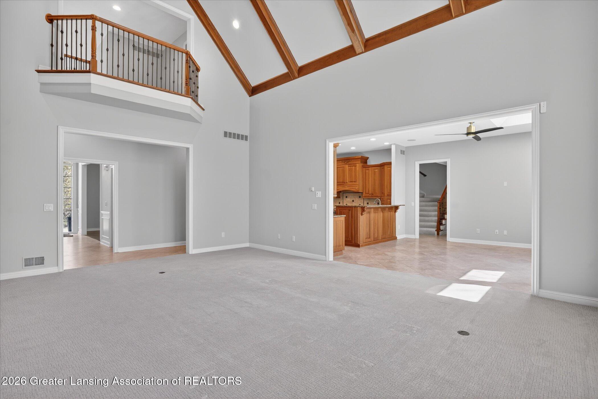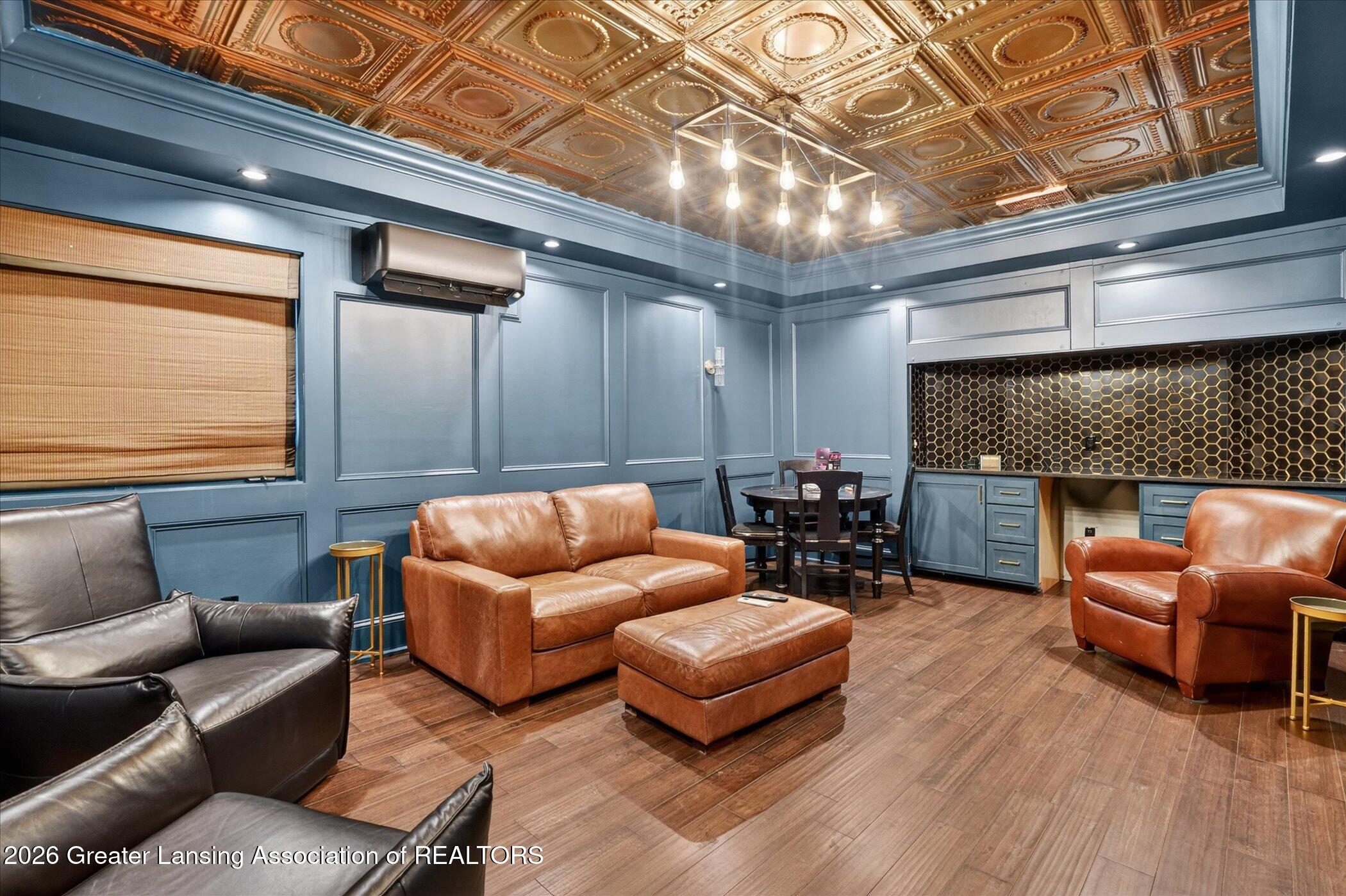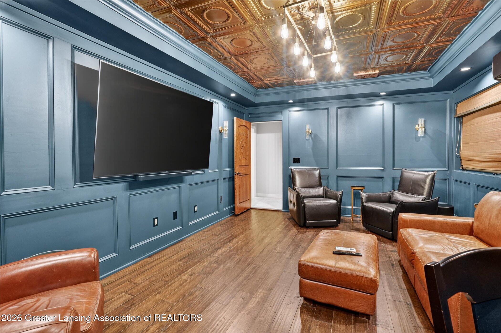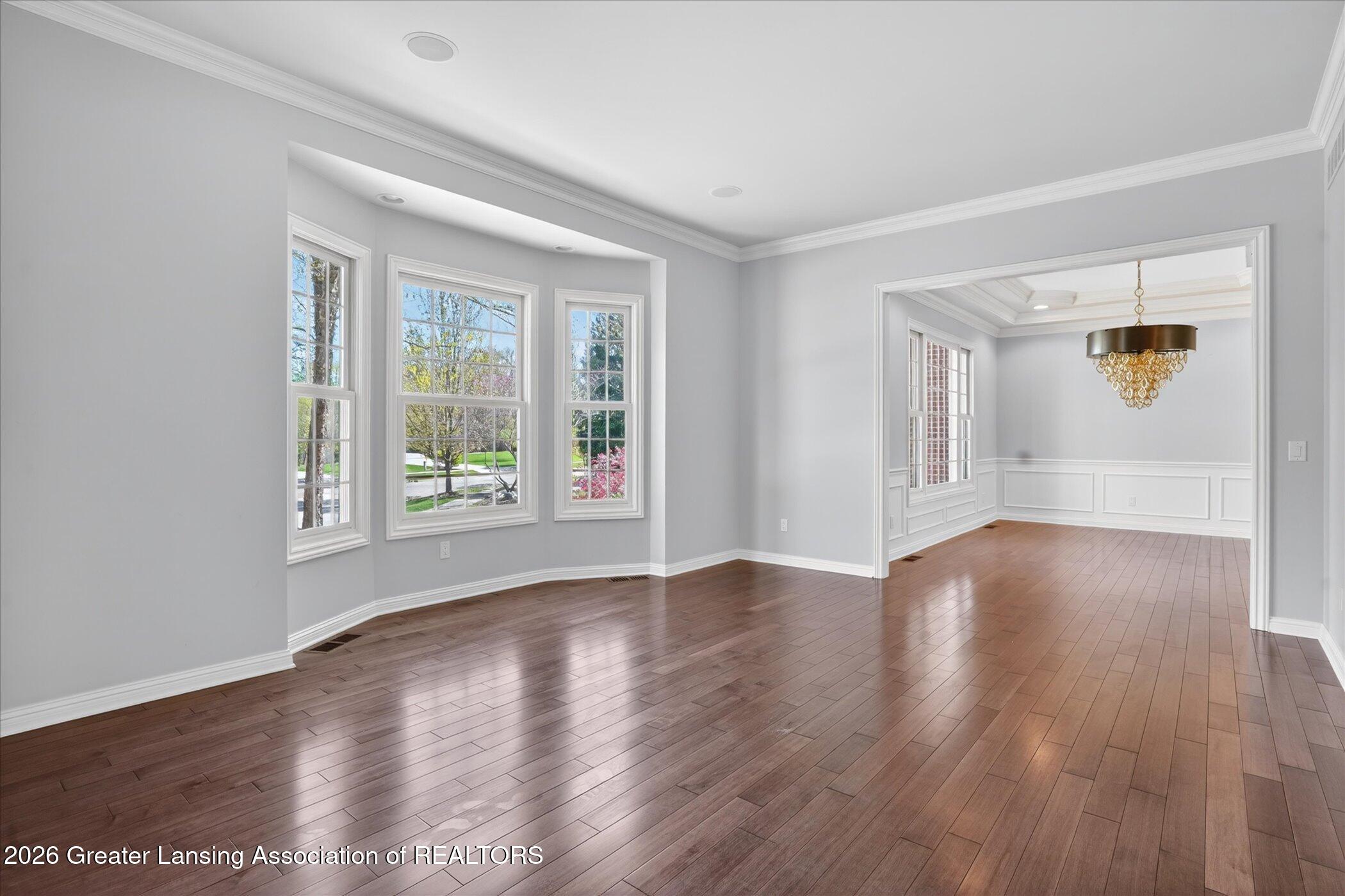 Welcome to 1437 Wandering Way, an exceptional 5-bedroom, 5.5-bath, all brick executive style home tucked away on a private cul-de-sac in the highly sought-after Ember Oaks subdivision, within the award-winning Okemos School District. This impressive residence seamlessly blends timeless elegance with modern updates. Over 300,000 in tasteful updates since 2023! To name a few, revamped landscaping, a brand-new roof, new furnace, fresh paint, new carpet, and updated lighting throughout. The first floor offers an ideal layout for both everyday living and entertaining, featuring a spacious eat-in chefs kitchen, a dramatic two-story great room with beamed ceilings and a gas fireplace, formal dining room, den, and convenient first-floor laundry. A private office with custom cabinetry provides the perfect work-from-home space. The luxurious first-floor primary suite is a true retreat, boasting a spa-like ensuite with a two-sided gas fireplace and an expansive walk-in closet. Upstairs, youll find four generously sized bedrooms, each with its own full bathroom and walk-in closet, along with a versatile bonus room complete with a wet bar and gas fireplace, perfect for entertaining or additional living space. The finished lower level elevates this home even further, offering a full bathroom, expansive living area, in-home theater, bar area, an 80k fully encapsulated dedicated cigar room addition in 2024, and an enormous storage space. Step outside to enjoy the large, private, tree-lined lot with mature landscaping, a brick-paved patio, screened-in porch, and hot tub, an ideal setting for relaxing or hosting gatherings. This extraordinary home offers privacy, luxury, and comfort in one of Okemos most prestigious neighborhoods. A must see! Call today for your private tour.