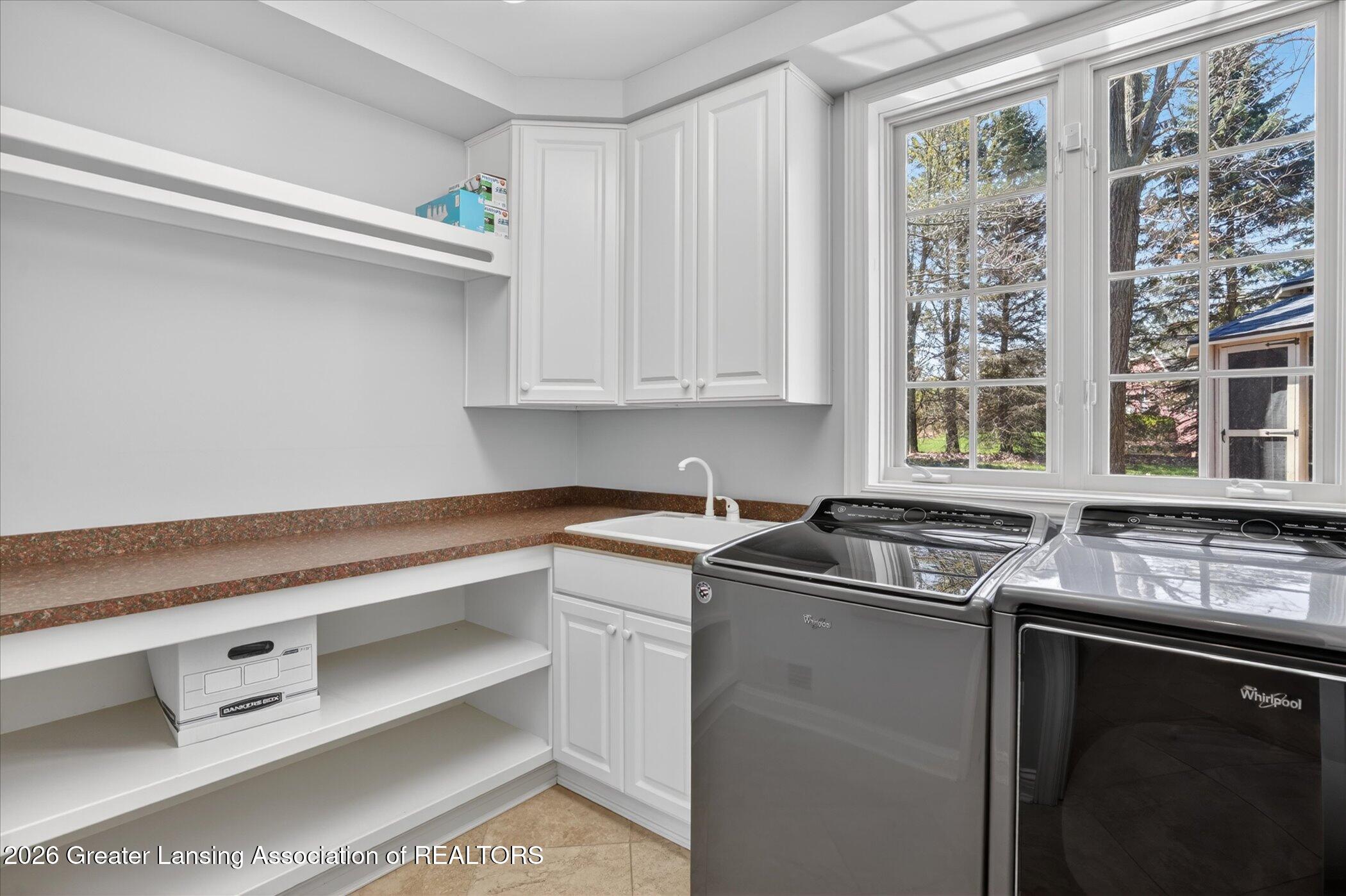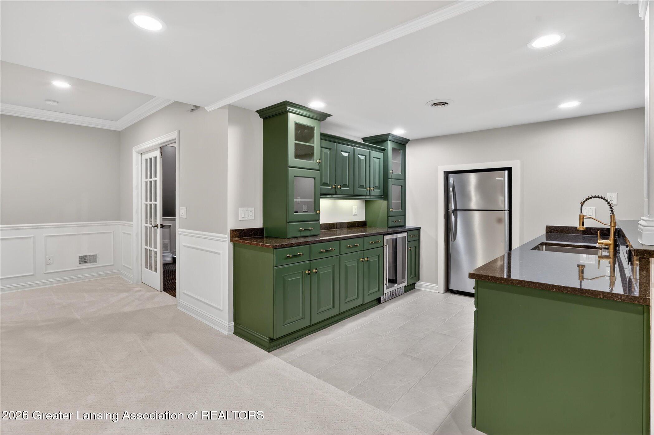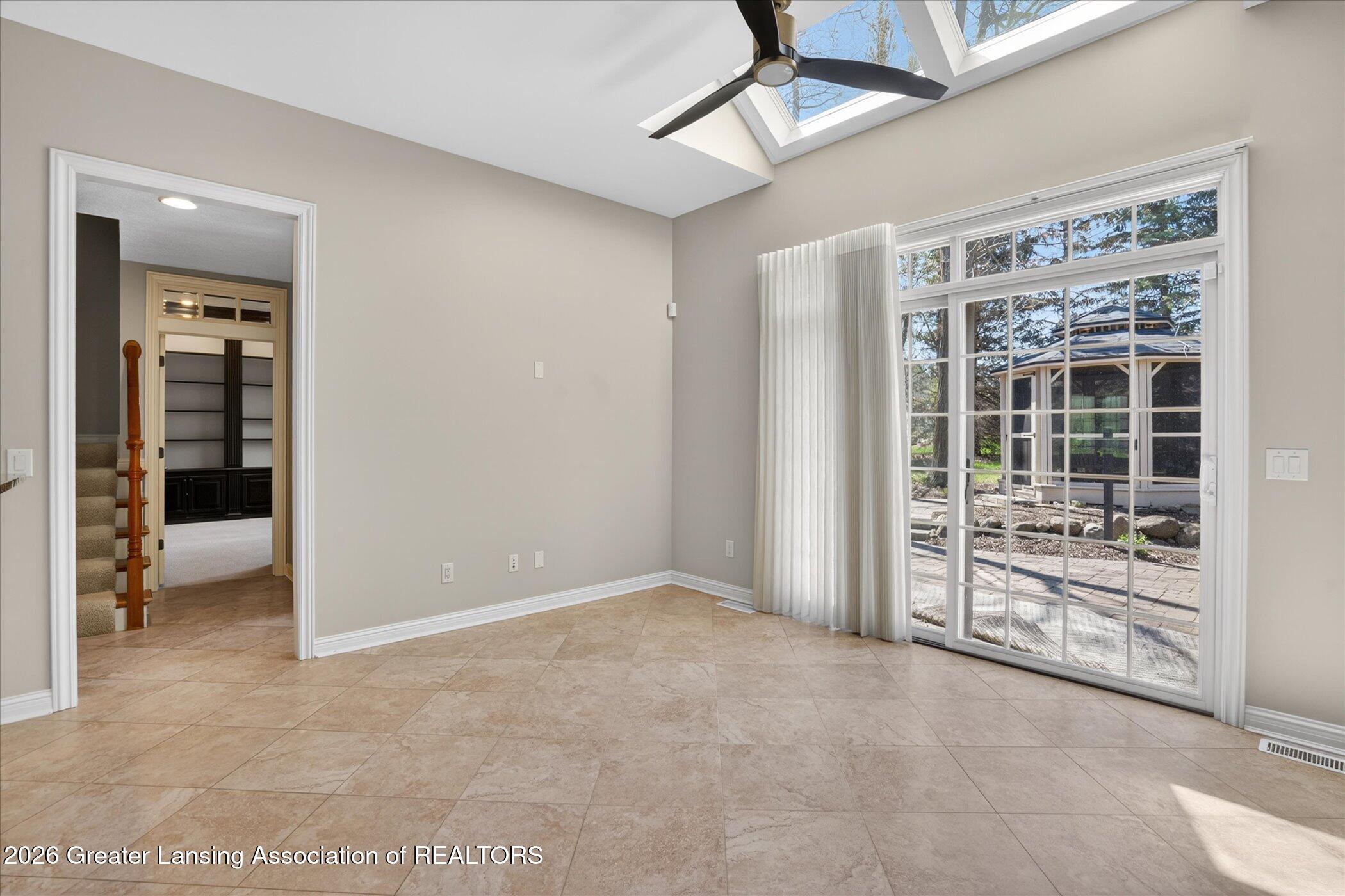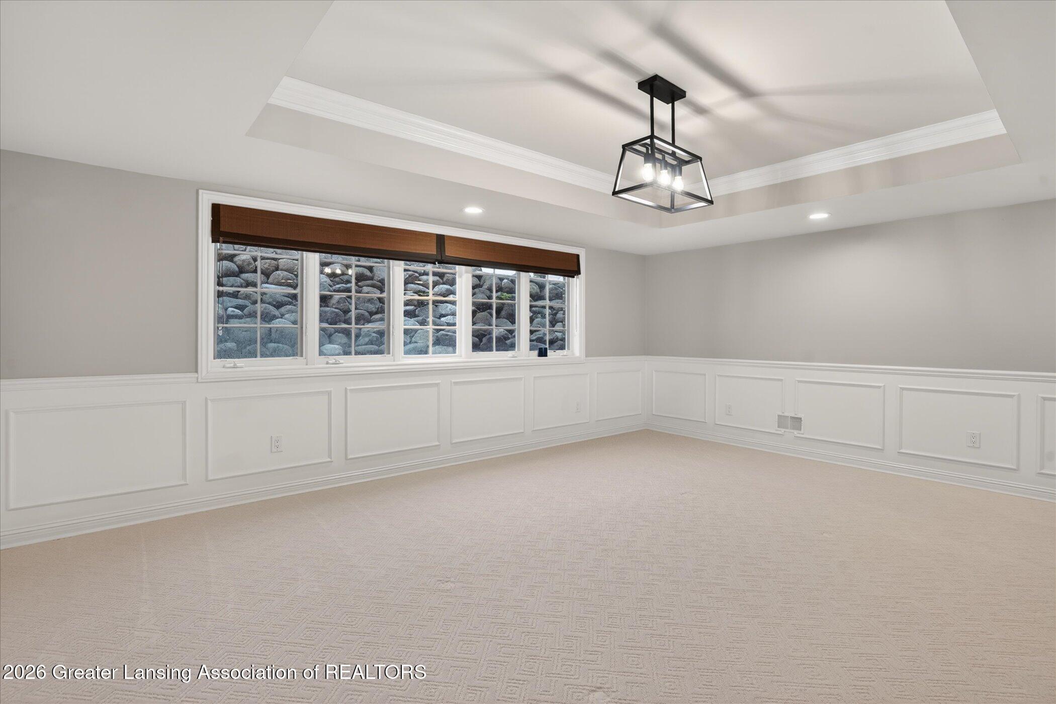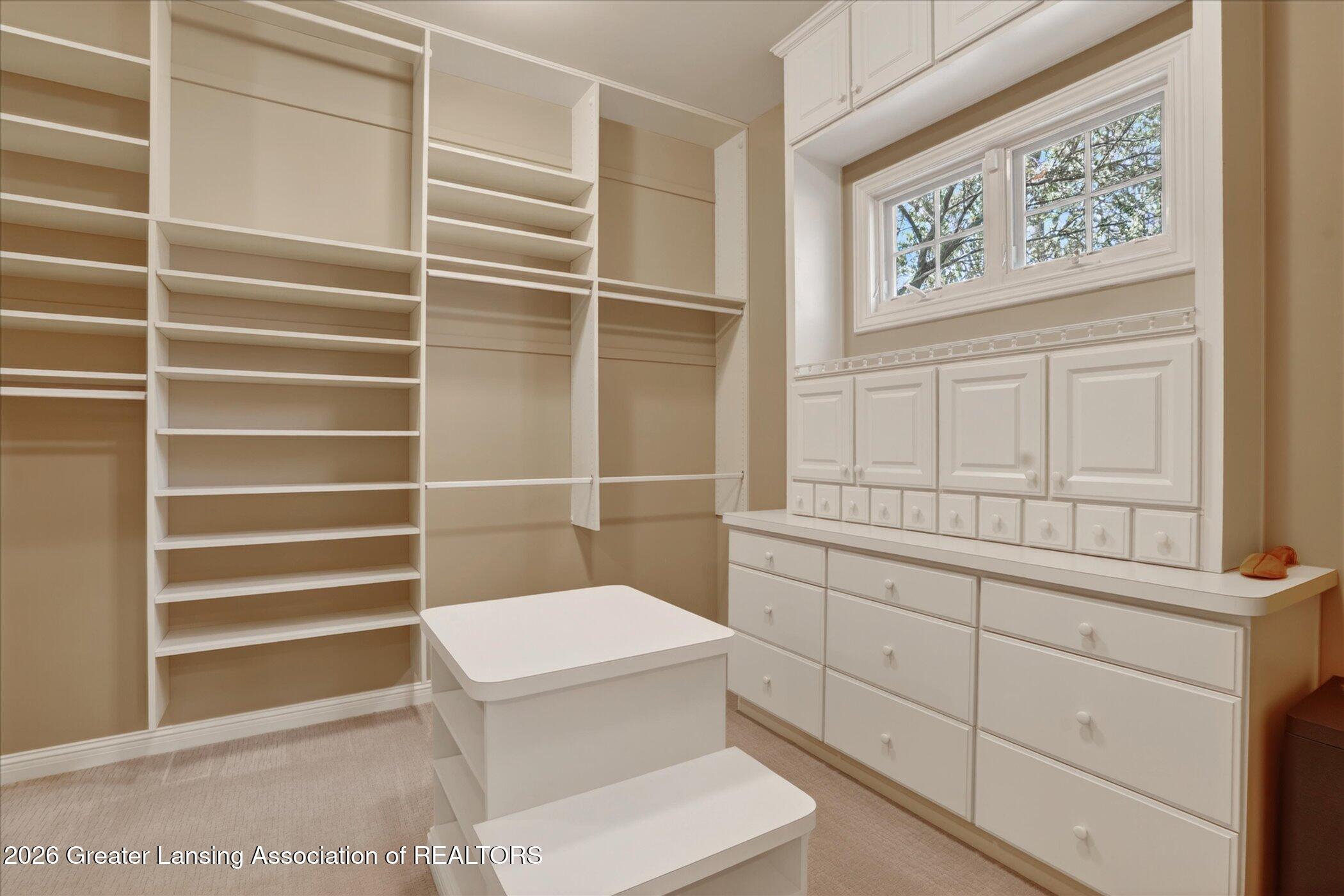 Welcome to 1437 Wandering Way, an exceptional 5-bedroom, 5.5-bath, all brick executive style home tucked away on a private cul-de-sac in the highly sought-after Ember Oaks subdivision, within the award-winning Okemos School District. This impressive residence seamlessly blends timeless elegance with modern updates. Over 300,000 in tasteful updates since 2023! To name a few, revamped landscaping, a brand-new roof, new furnace, fresh paint, new carpet, and updated lighting throughout. The first floor offers an ideal layout for both everyday living and entertaining, featuring a spacious eat-in chefs kitchen, a dramatic two-story great room with beamed ceilings and a gas fireplace, formal dining room, den, and convenient first-floor laundry. A private office with custom cabinetry provides the perfect work-from-home space. The luxurious first-floor primary suite is a true retreat, boasting a spa-like ensuite with a two-sided gas fireplace and an expansive walk-in closet. Upstairs, youll find four generously sized bedrooms, each with its own full bathroom and walk-in closet, along with a versatile bonus room complete with a wet bar and gas fireplace, perfect for entertaining or additional living space. The finished lower level elevates this home even further, offering a full bathroom, expansive living area, in-home theater, bar area, an 80k fully encapsulated dedicated cigar room addition in 2024, and an enormous storage space. Step outside to enjoy the large, private, tree-lined lot with mature landscaping, a brick-paved patio, screened-in porch, and hot tub, an ideal setting for relaxing or hosting gatherings. This extraordinary home offers privacy, luxury, and comfort in one of Okemos most prestigious neighborhoods. A must see! Call today for your private tour.