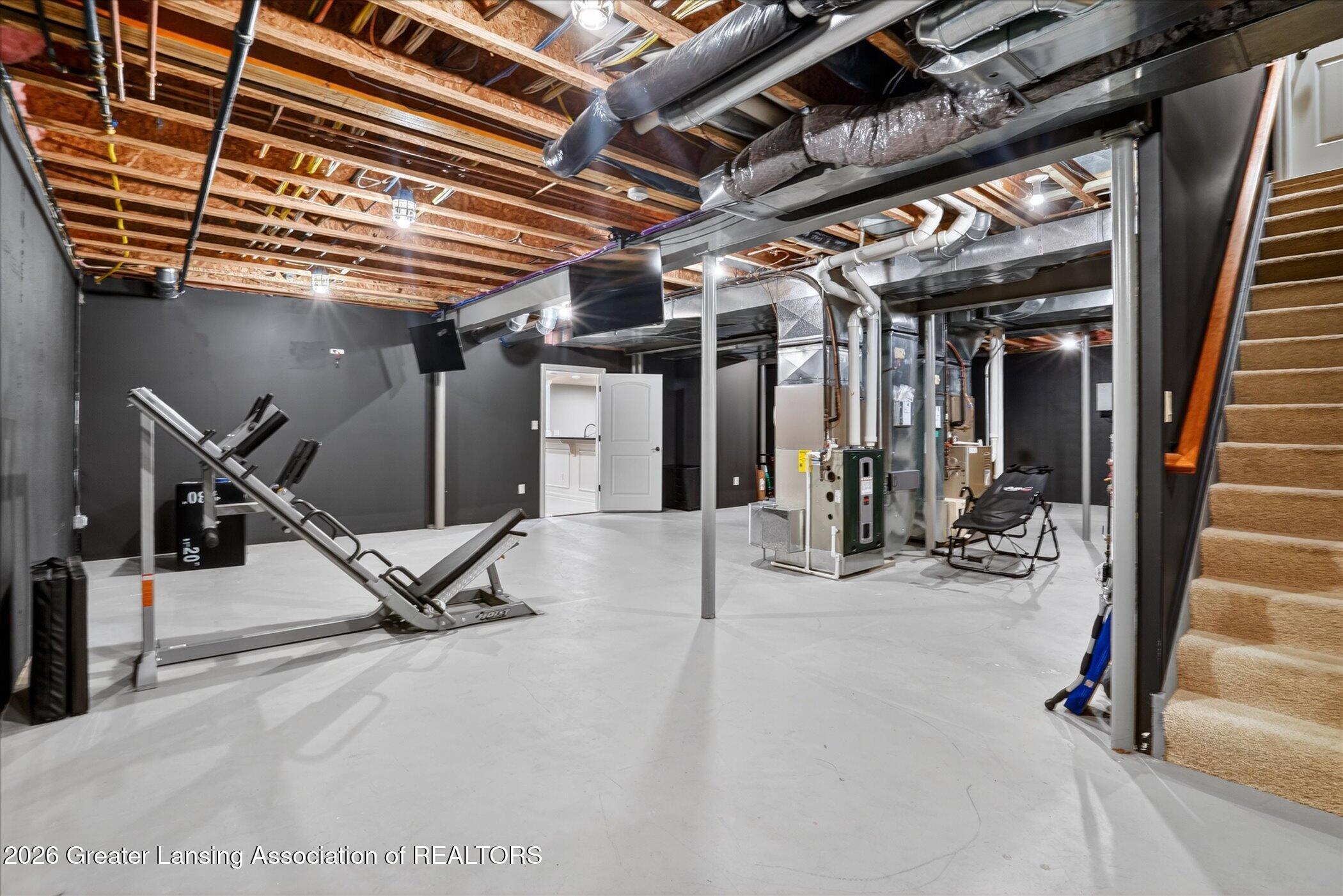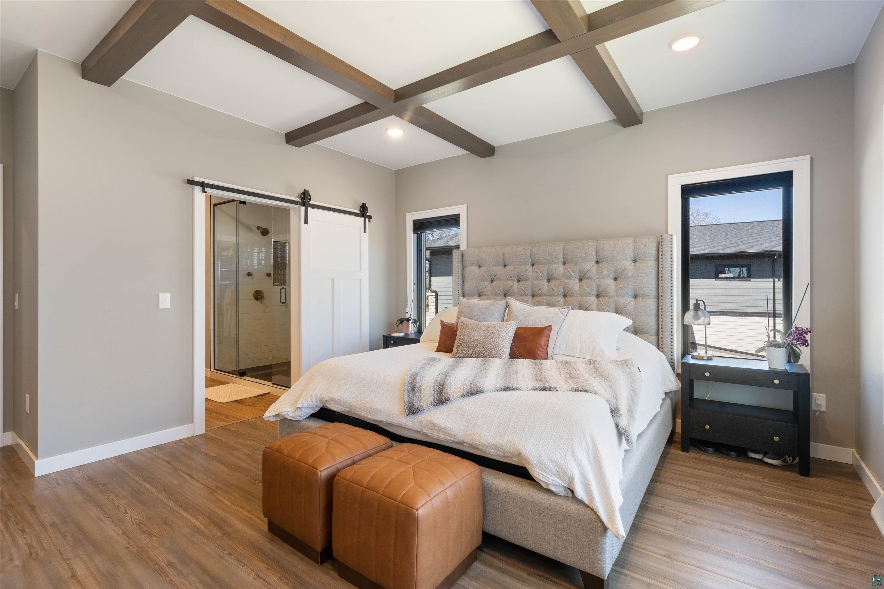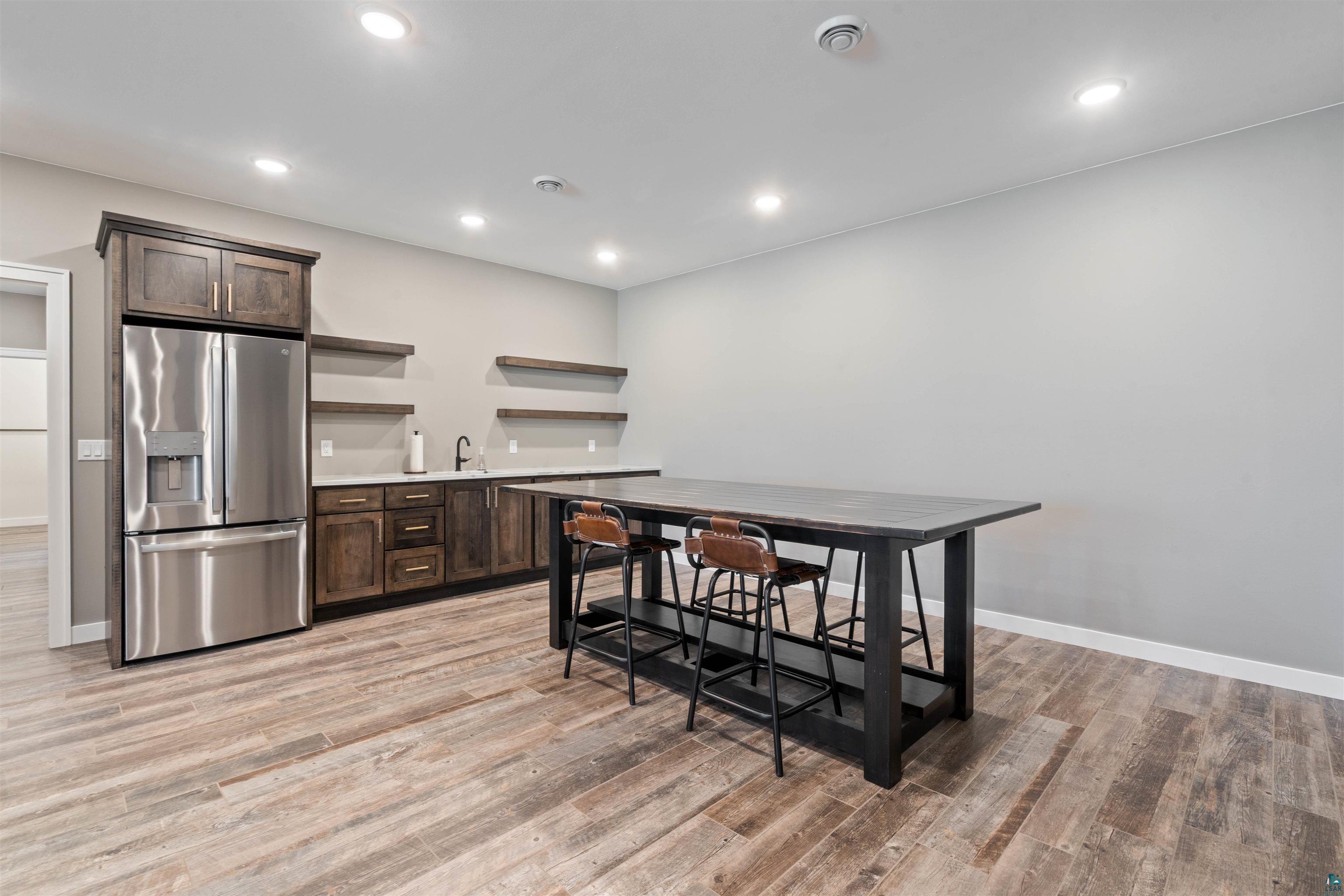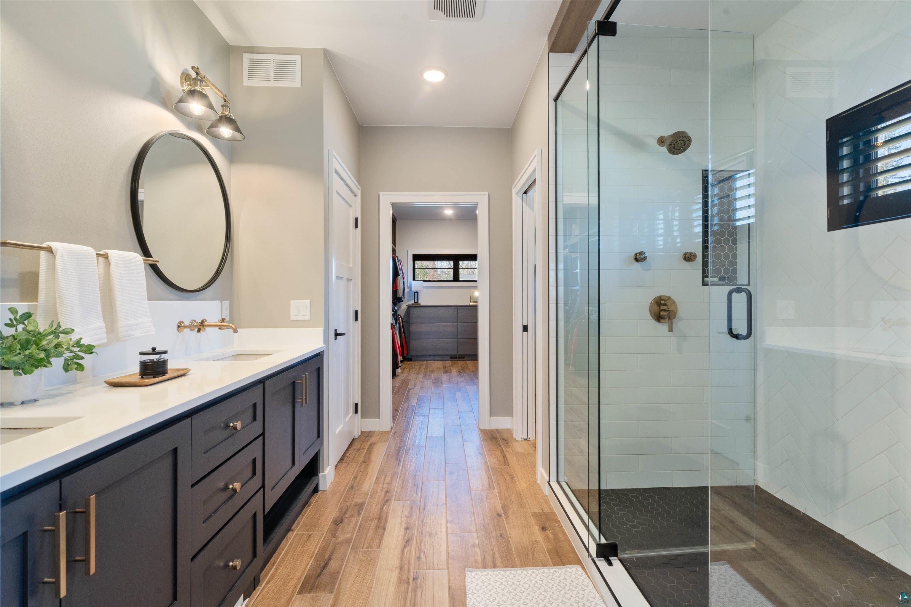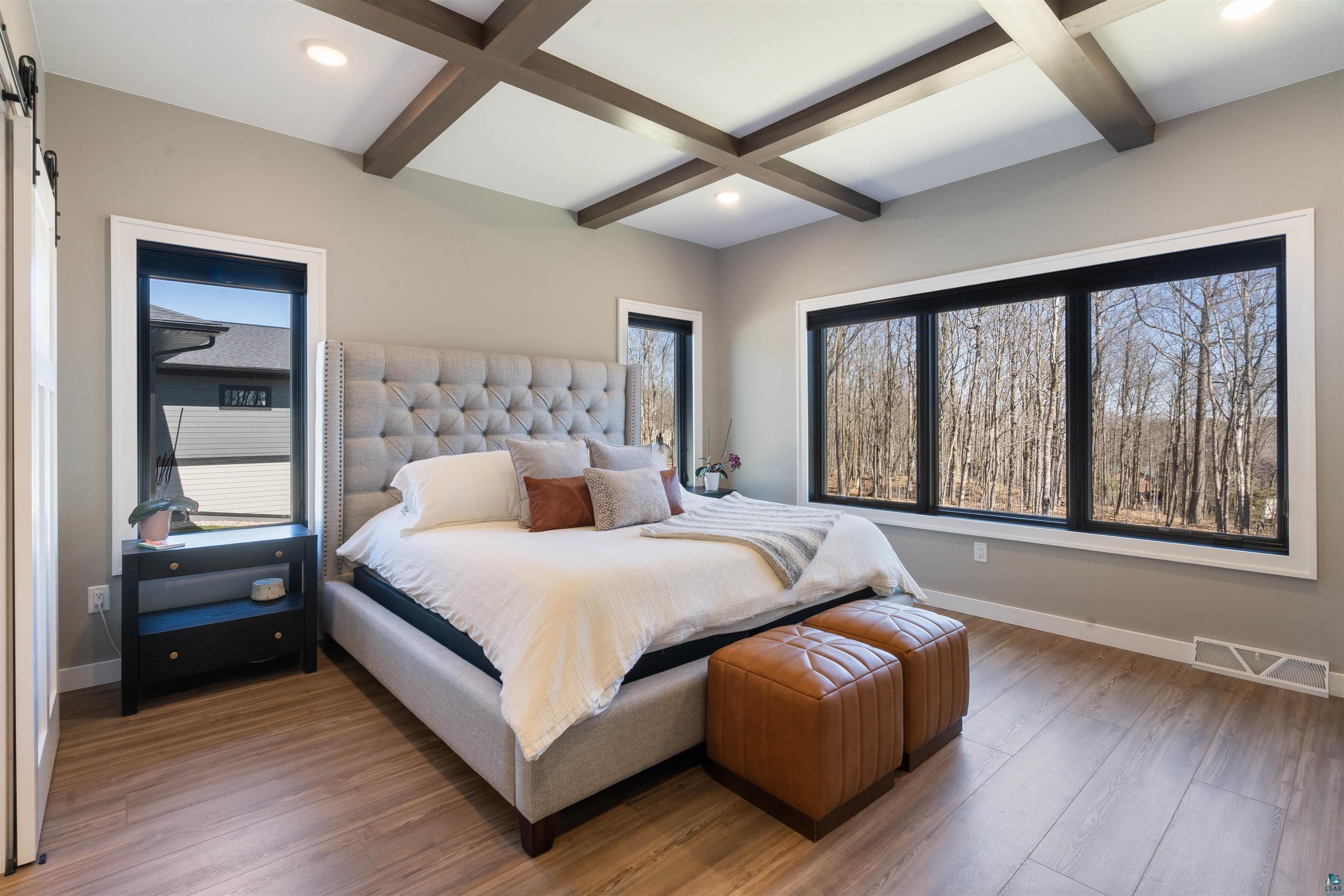 Experience the perfect blend of luxury, craftsmanship, and functionality in this stunning 4-bedroom, 4-bath home. From the moment you arrive, the impressive timber-framed entry and natural stone exterior create a warm yet sophisticated first impression, complemented by cedar soffits and durable LP Smart siding. Inside, the home is filled with natural light thanks to oversized Pella windows that showcase peaceful backyard views. The open-concept floor plan is thoughtfully designed for both everyday living and entertaining, anchored by a spacious custom kitchen featuring a large center island, abundant cabinetry, and an expansive walk-in pantry. The living room boasts a soaring vaulted ceiling, creating a bright and inviting atmosphere. A generously sized mudroom offers excellent storage and organization, while the massive 40 x 30 garage provides plenty of space for vehicles, equipment, and more. The walkout lower level is designed for comfort and versatility, complete with in-floor heating and tile flooring throughout. Entertain with ease at the custom-built bar, or take advantage of the additional flex room, perfect for a home office, fitness space, or extra storage. Convenience is key with two laundry rooms, including one located in the primary suites closet and another in the lower level. Step outside to a backyard built for enjoyment, featuring a versatile pad ready for a hockey rink, fire pit area, or additional outdoor living space. The covered deck is a true highlight, showcasing natural stone finishes, a cozy gas fireplace, and ample room for dining and relaxing year-round. Finished with a concrete driveway and packed with high-end details throughout, this home offers exceptional comfort, style, and space for modern living.