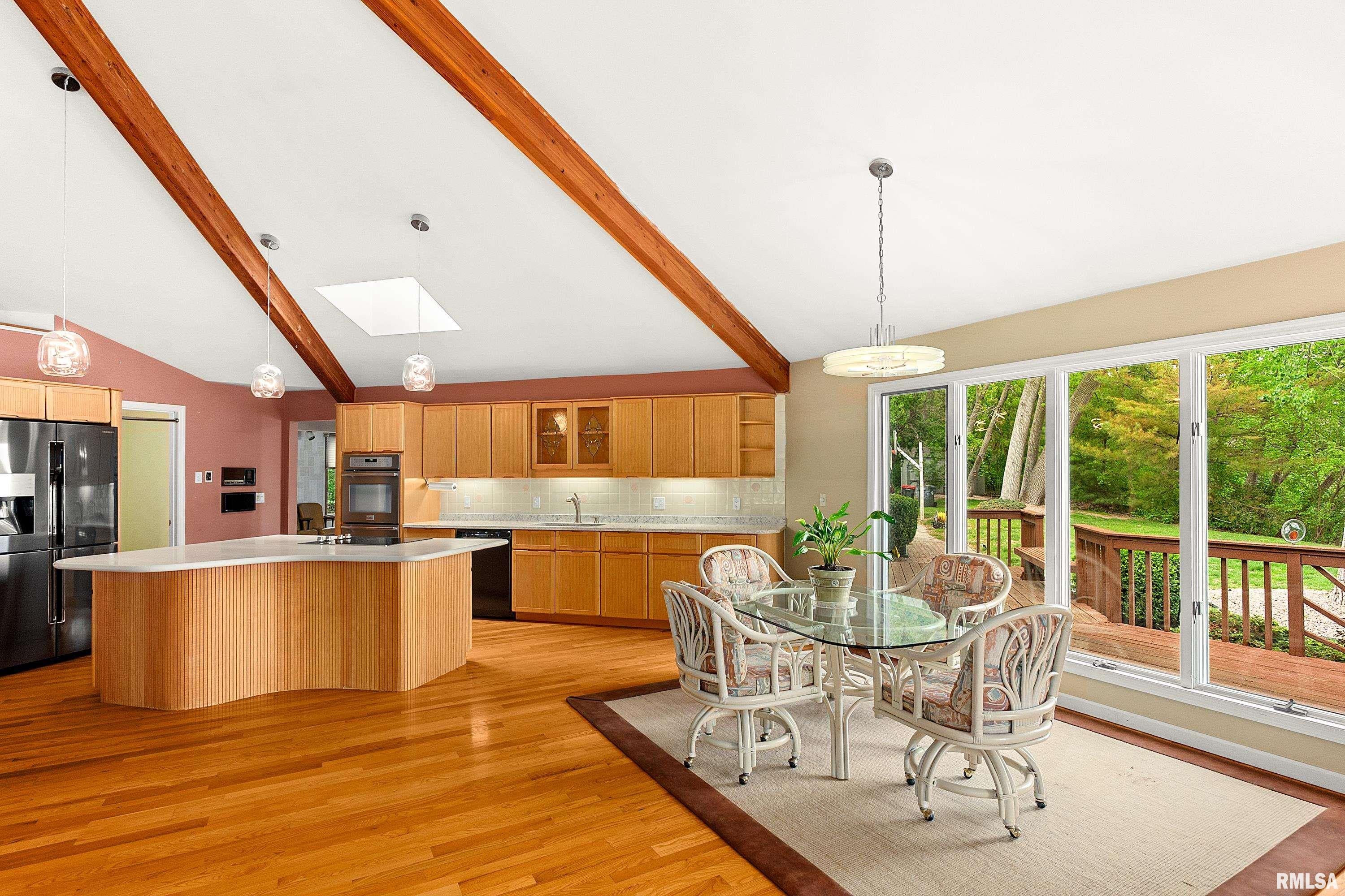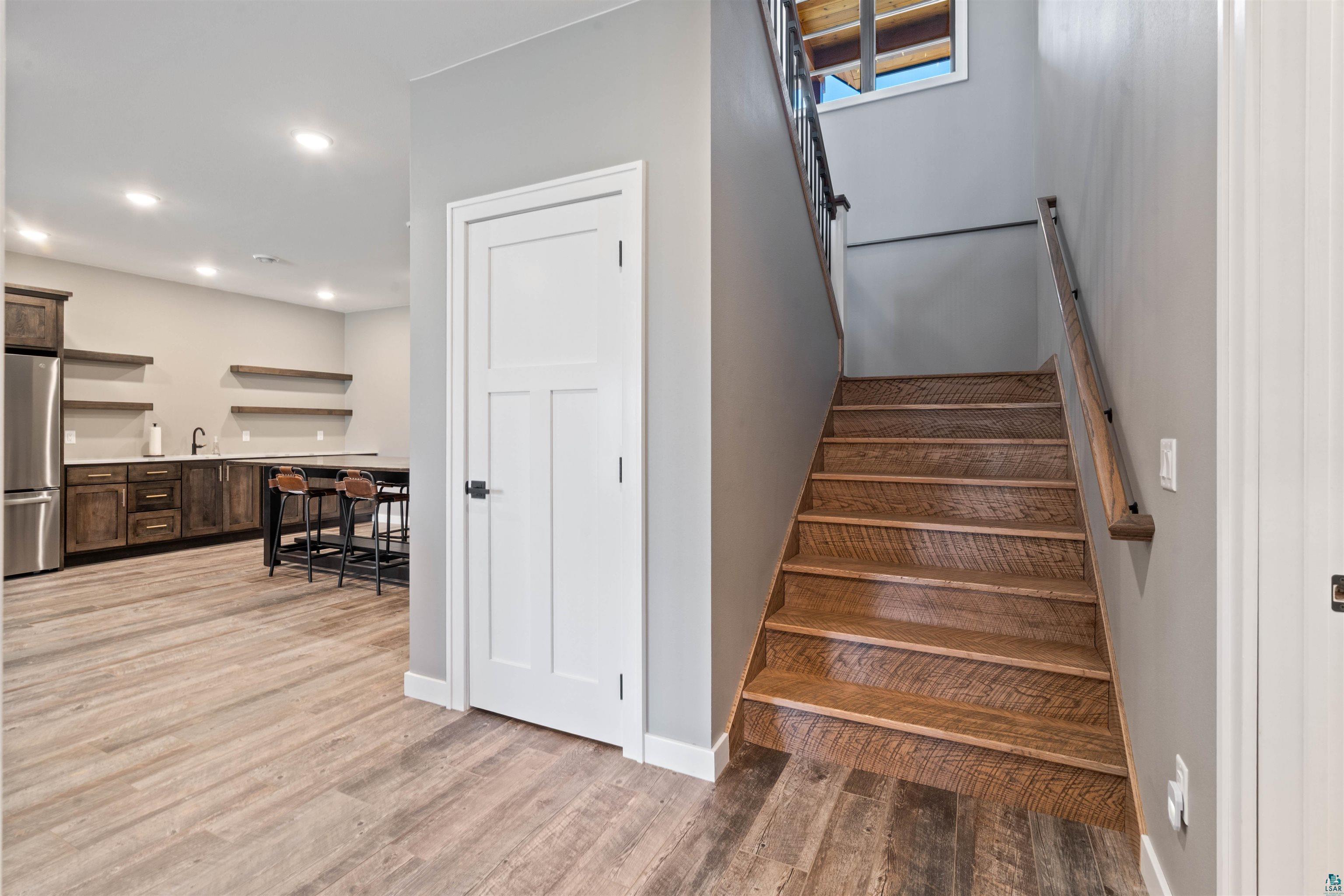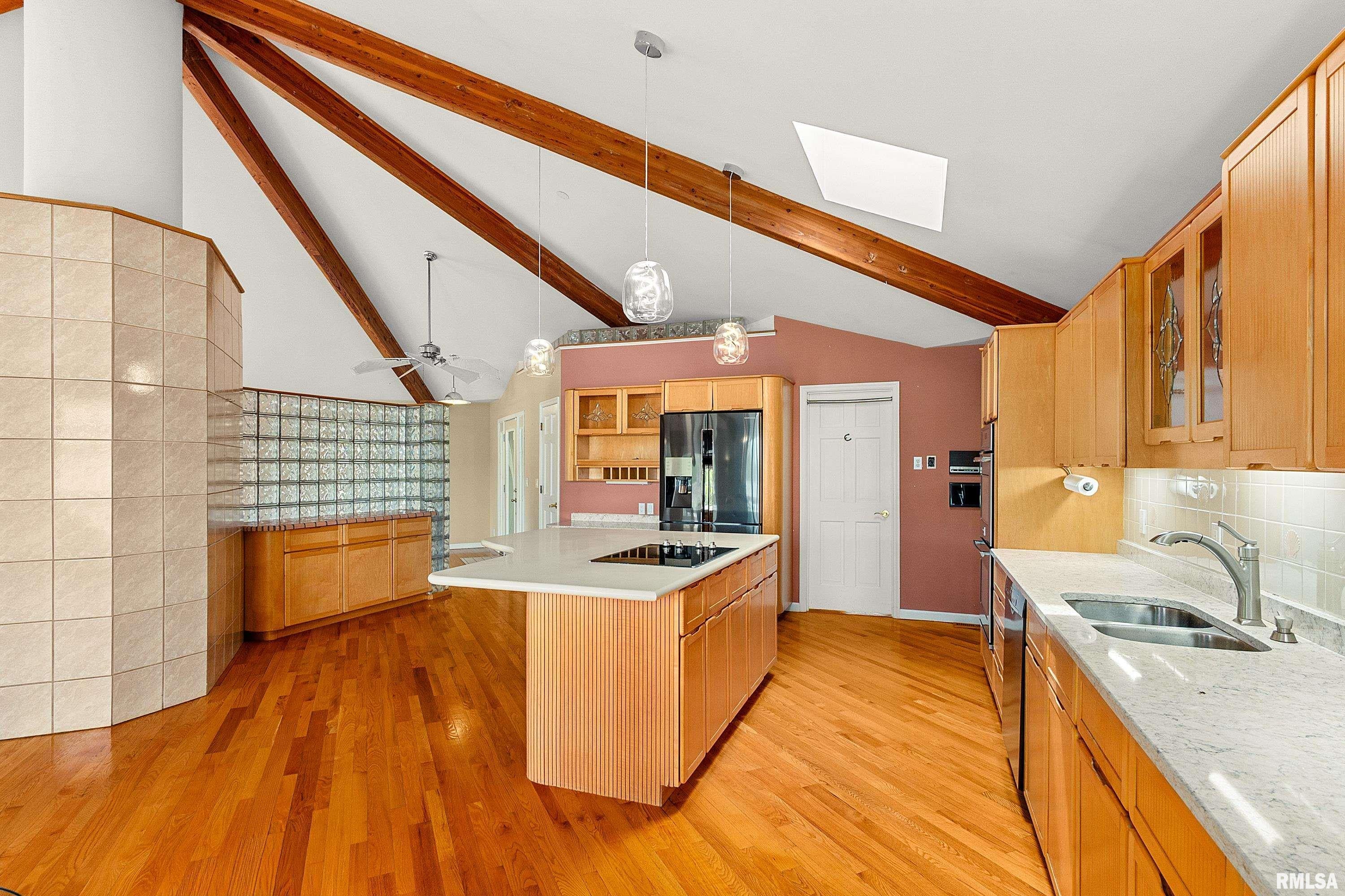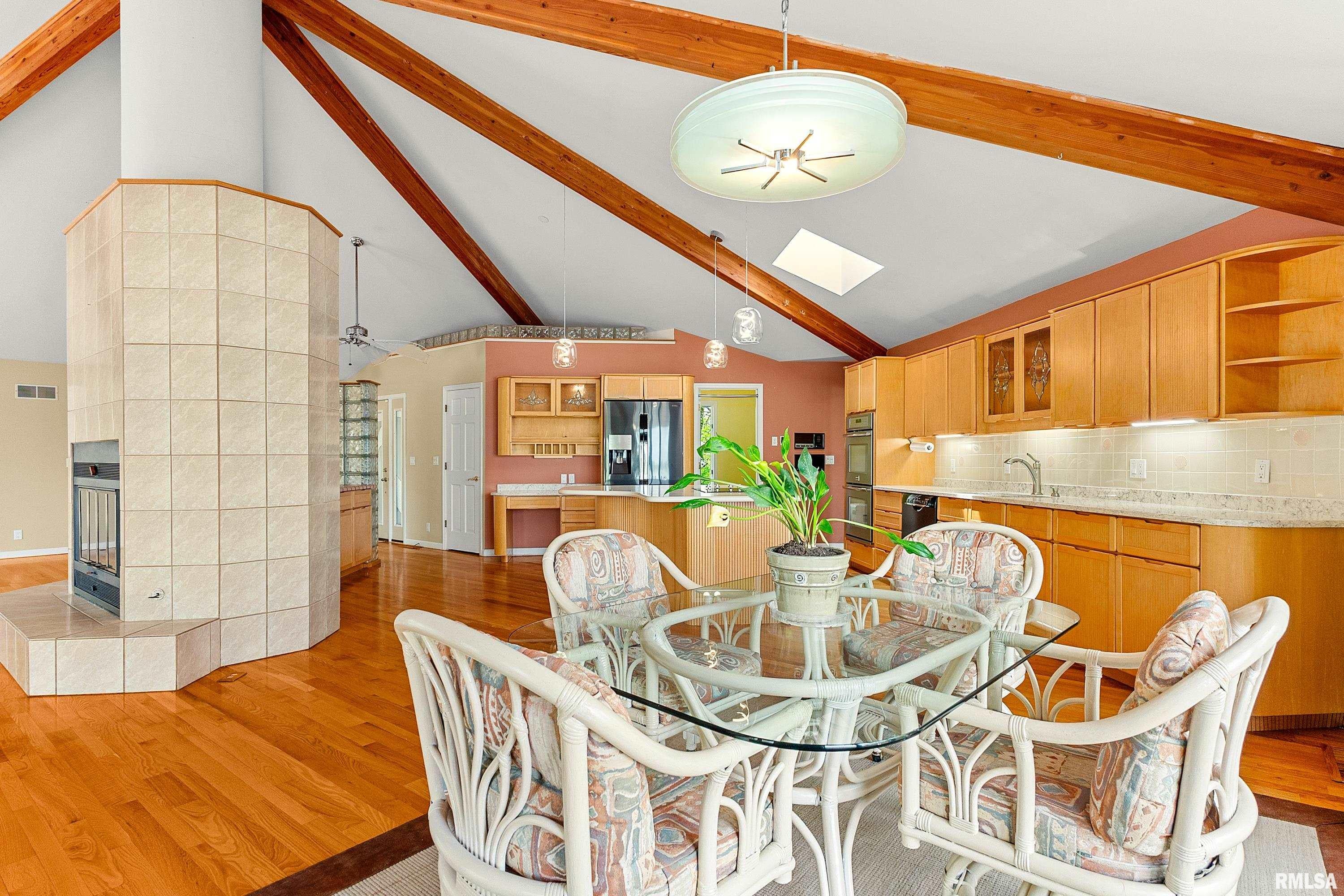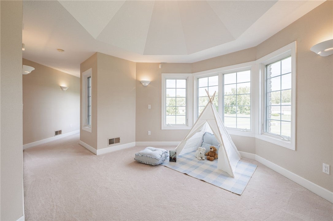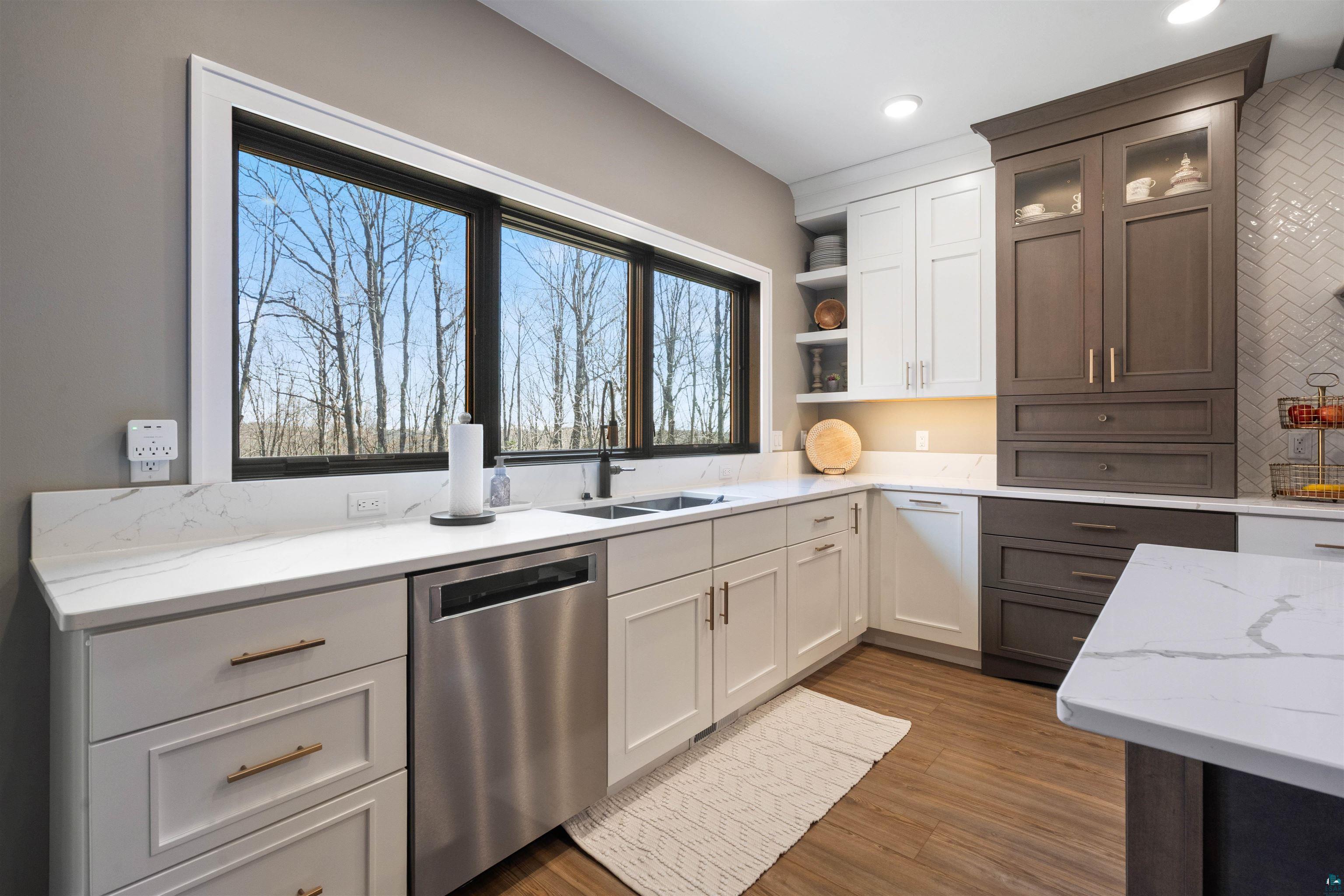 Experience the perfect blend of luxury, craftsmanship, and functionality in this stunning 4-bedroom, 4-bath home. From the moment you arrive, the impressive timber-framed entry and natural stone exterior create a warm yet sophisticated first impression, complemented by cedar soffits and durable LP Smart siding. Inside, the home is filled with natural light thanks to oversized Pella windows that showcase peaceful backyard views. The open-concept floor plan is thoughtfully designed for both everyday living and entertaining, anchored by a spacious custom kitchen featuring a large center island, abundant cabinetry, and an expansive walk-in pantry. The living room boasts a soaring vaulted ceiling, creating a bright and inviting atmosphere. A generously sized mudroom offers excellent storage and organization, while the massive 40 x 30 garage provides plenty of space for vehicles, equipment, and more. The walkout lower level is designed for comfort and versatility, complete with in-floor heating and tile flooring throughout. Entertain with ease at the custom-built bar, or take advantage of the additional flex room, perfect for a home office, fitness space, or extra storage. Convenience is key with two laundry rooms, including one located in the primary suites closet and another in the lower level. Step outside to a backyard built for enjoyment, featuring a versatile pad ready for a hockey rink, fire pit area, or additional outdoor living space. The covered deck is a true highlight, showcasing natural stone finishes, a cozy gas fireplace, and ample room for dining and relaxing year-round. Finished with a concrete driveway and packed with high-end details throughout, this home offers exceptional comfort, style, and space for modern living.
