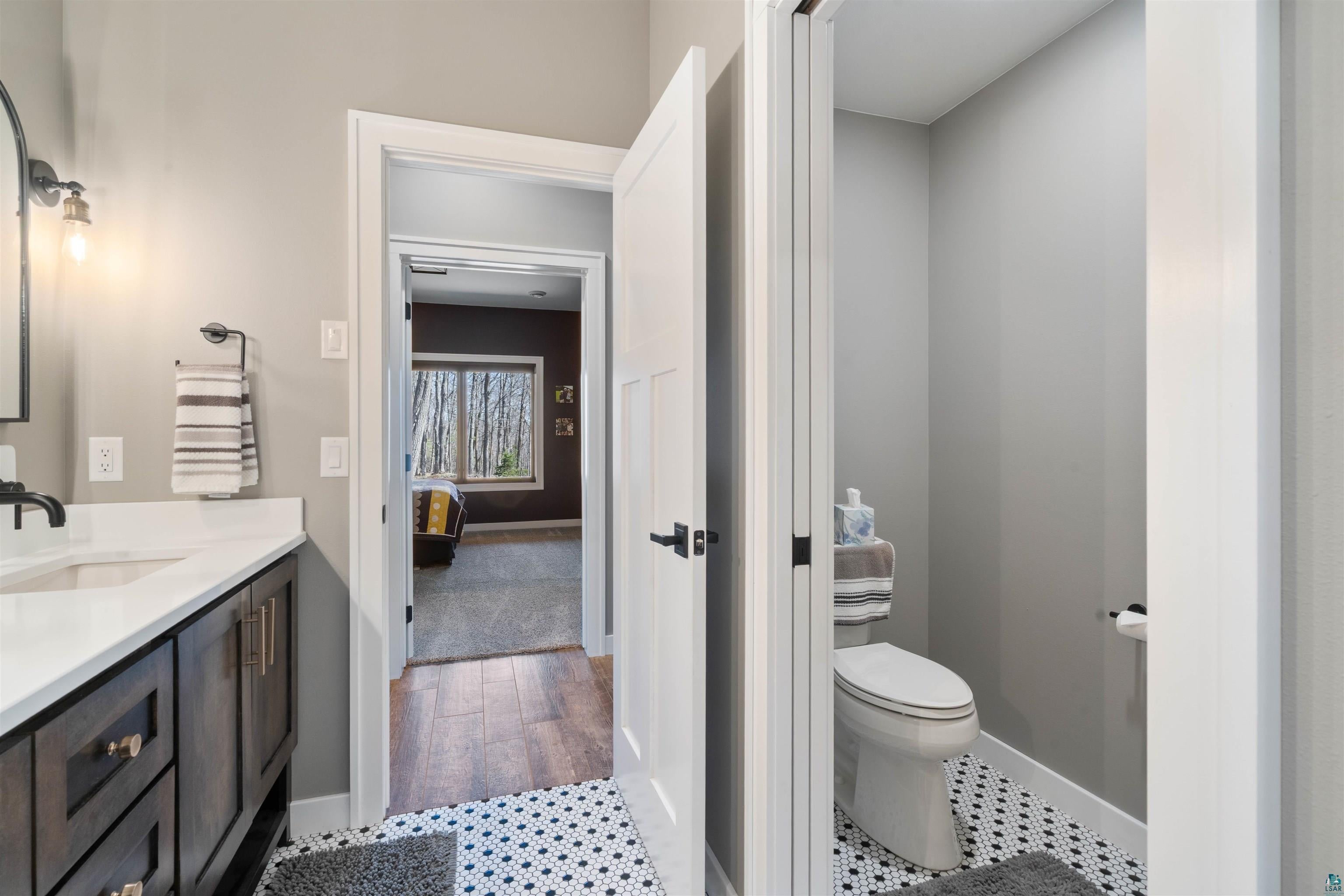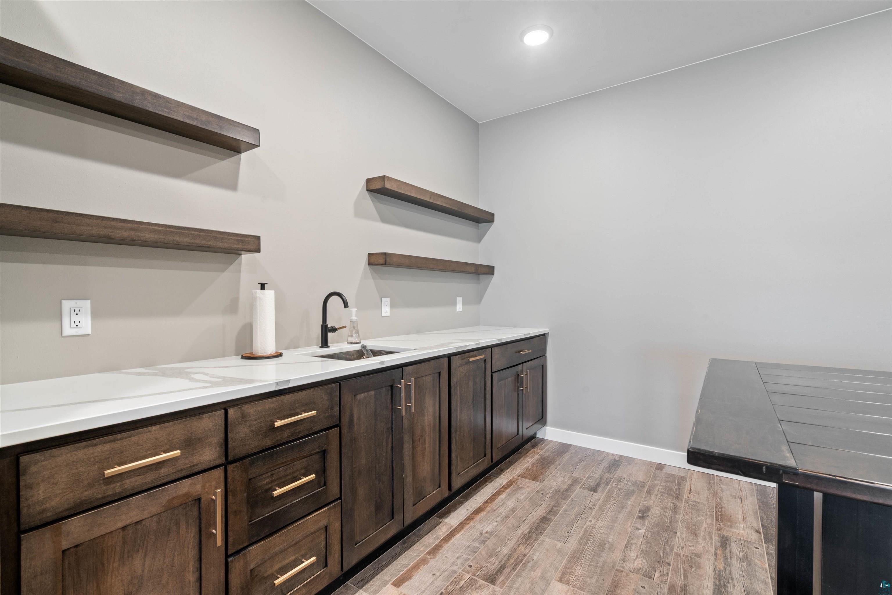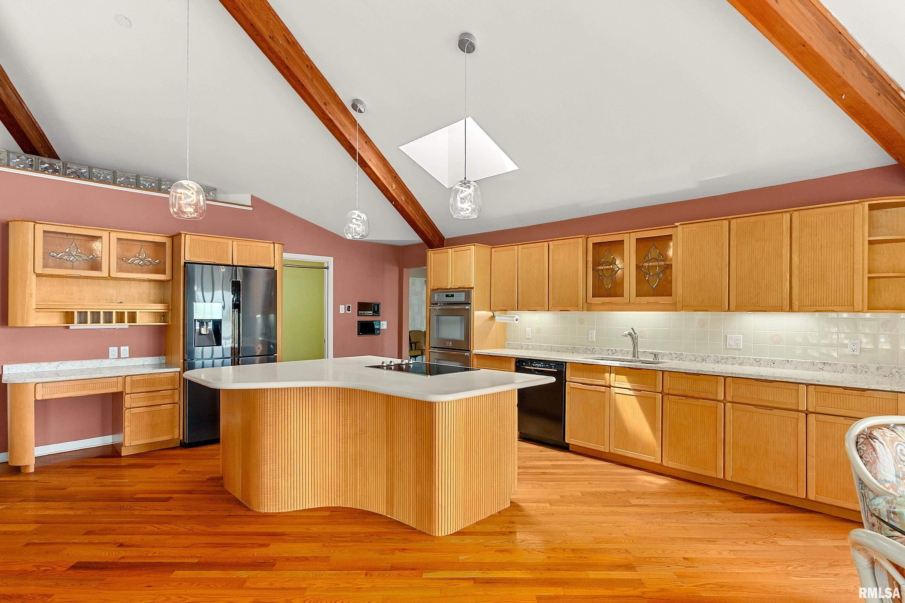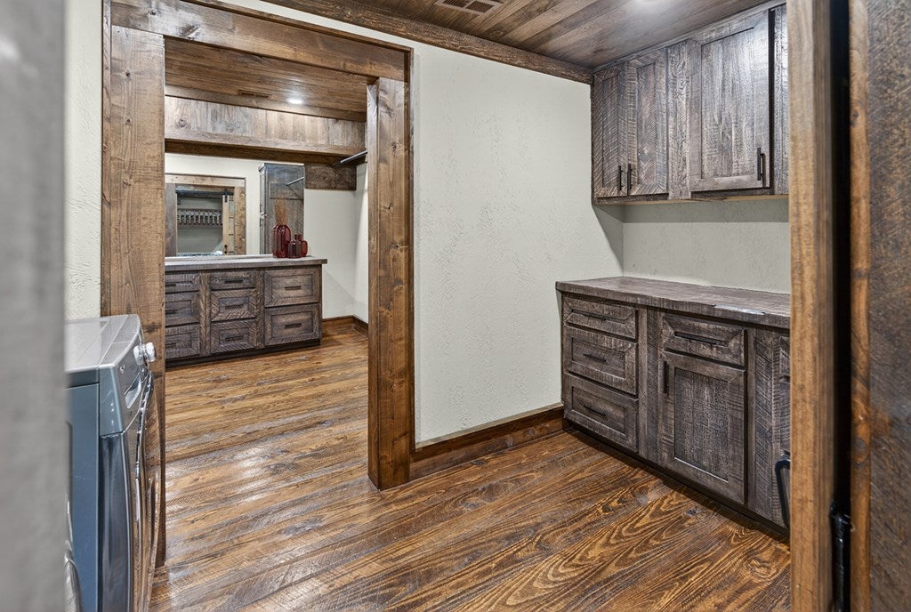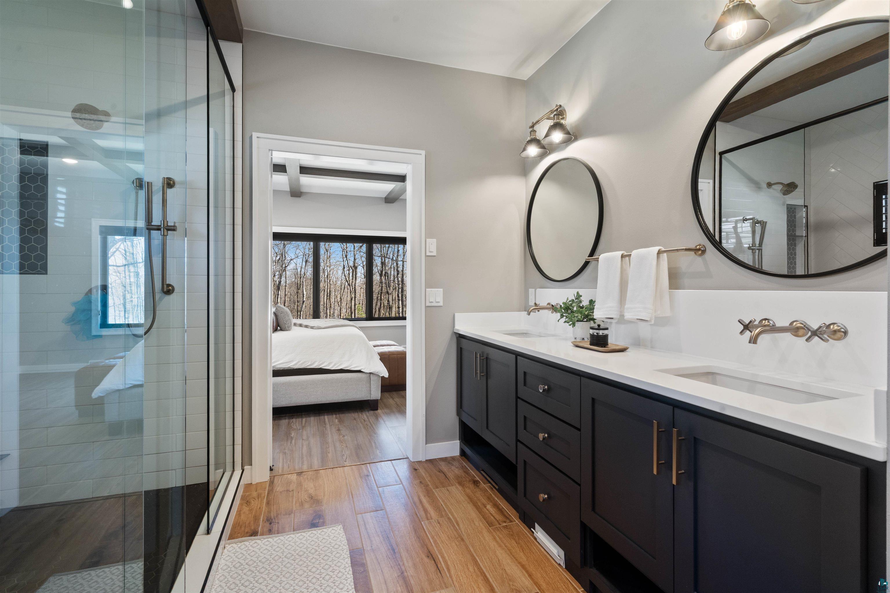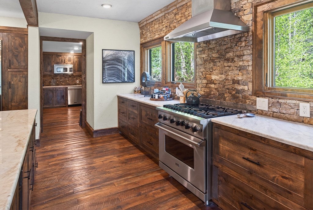 Experience the perfect blend of luxury, craftsmanship, and functionality in this stunning 4-bedroom, 4-bath home. From the moment you arrive, the impressive timber-framed entry and natural stone exterior create a warm yet sophisticated first impression, complemented by cedar soffits and durable LP Smart siding. Inside, the home is filled with natural light thanks to oversized Pella windows that showcase peaceful backyard views. The open-concept floor plan is thoughtfully designed for both everyday living and entertaining, anchored by a spacious custom kitchen featuring a large center island, abundant cabinetry, and an expansive walk-in pantry. The living room boasts a soaring vaulted ceiling, creating a bright and inviting atmosphere. A generously sized mudroom offers excellent storage and organization, while the massive 40 x 30 garage provides plenty of space for vehicles, equipment, and more. The walkout lower level is designed for comfort and versatility, complete with in-floor heating and tile flooring throughout. Entertain with ease at the custom-built bar, or take advantage of the additional flex room, perfect for a home office, fitness space, or extra storage. Convenience is key with two laundry rooms, including one located in the primary suites closet and another in the lower level. Step outside to a backyard built for enjoyment, featuring a versatile pad ready for a hockey rink, fire pit area, or additional outdoor living space. The covered deck is a true highlight, showcasing natural stone finishes, a cozy gas fireplace, and ample room for dining and relaxing year-round. Finished with a concrete driveway and packed with high-end details throughout, this home offers exceptional comfort, style, and space for modern living.