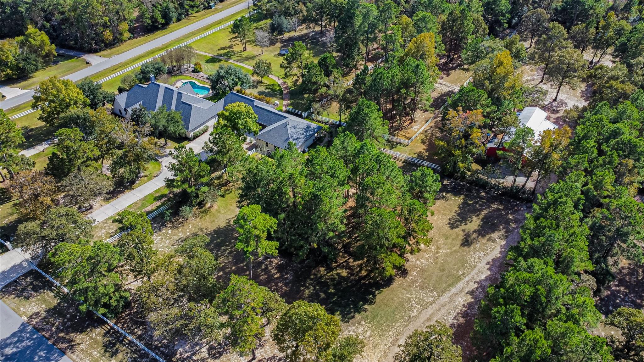 A truly extraordinary estate awaits as you enter through a private gated drive and experience 7 breathtaking acres of Texas luxury. This corner-lot property offers exceptional privacy. The main one-story home features a sprawling layout with 4 spacious bedrooms, 4 full baths, a private study with custom built-ins, and a separate game room with its own entrance.