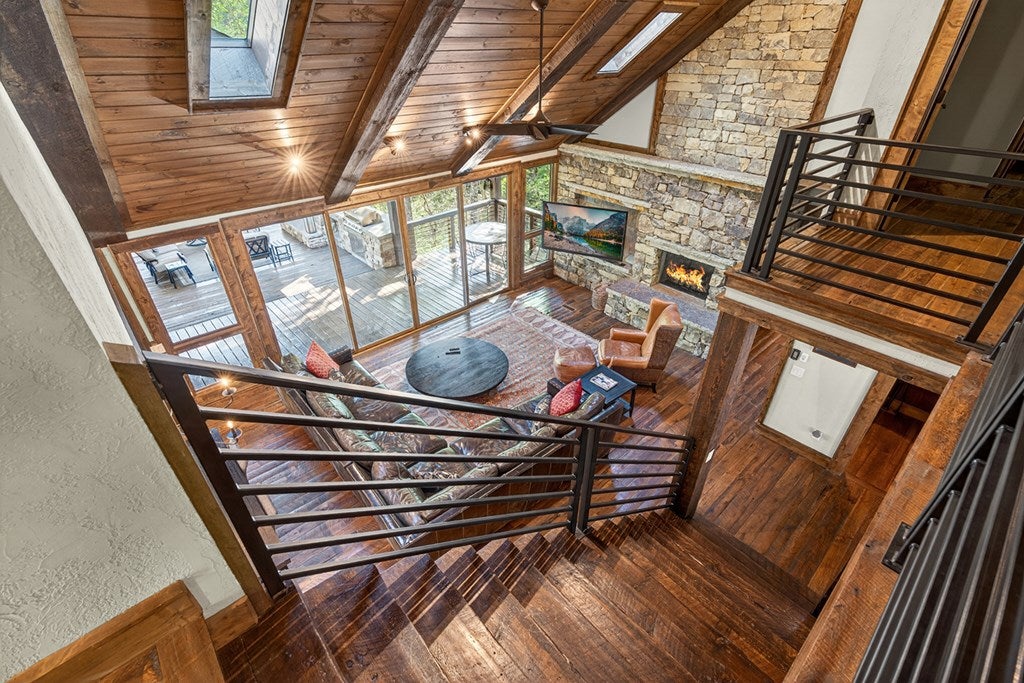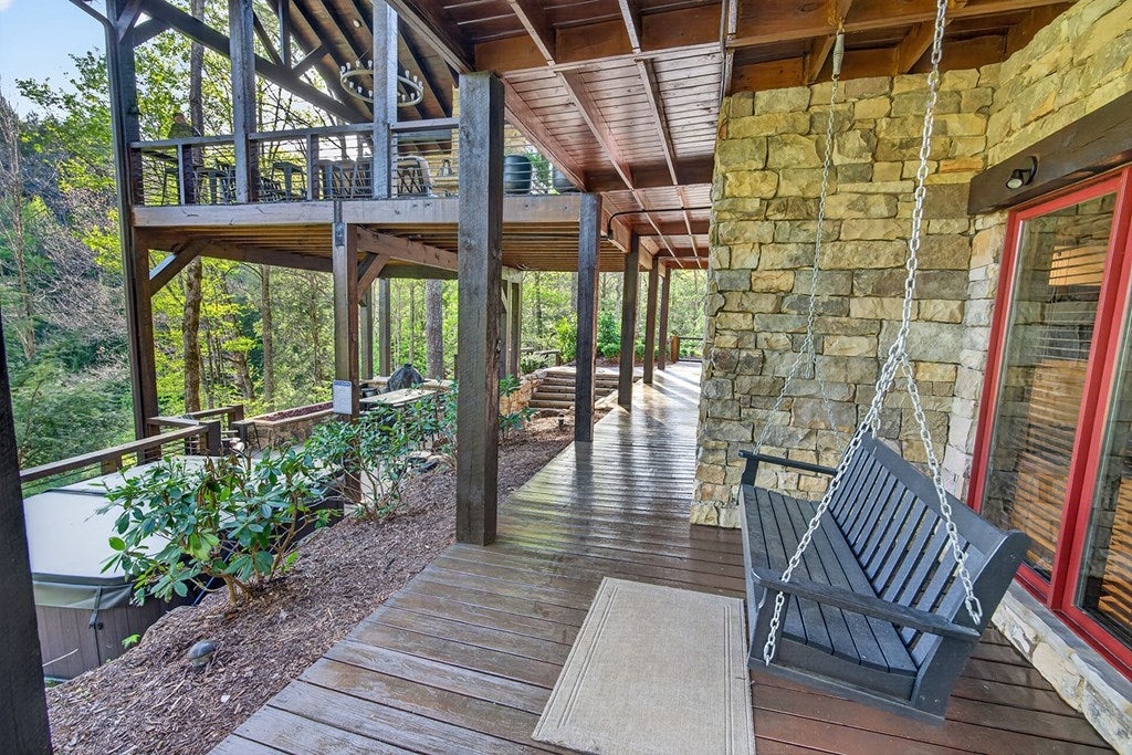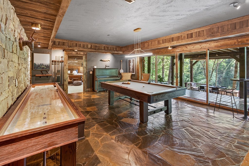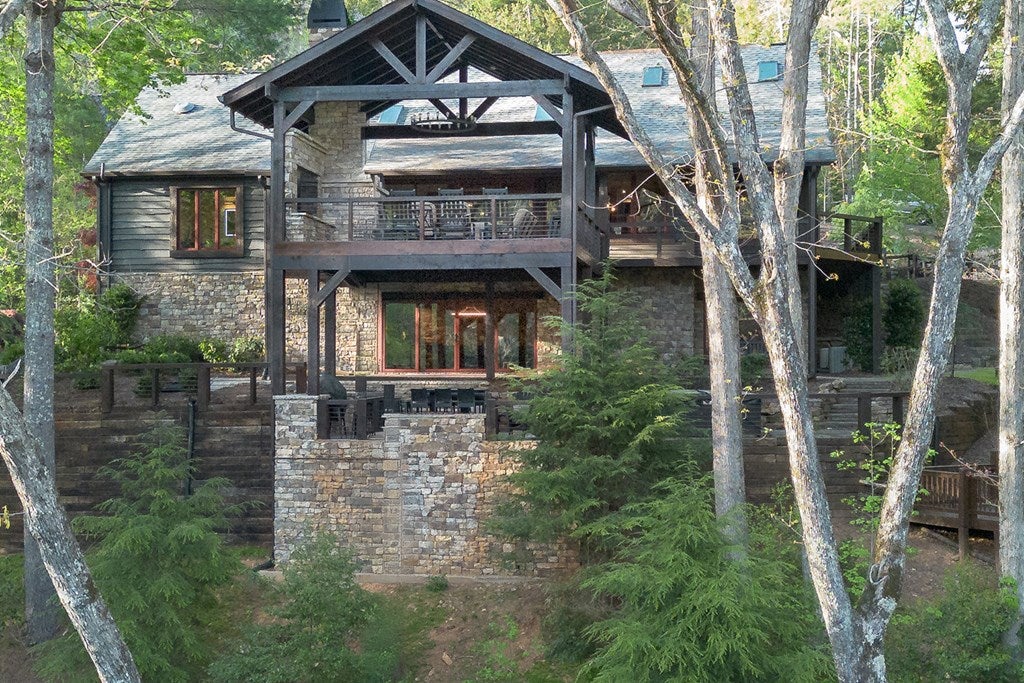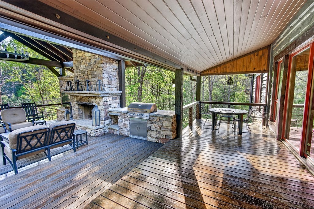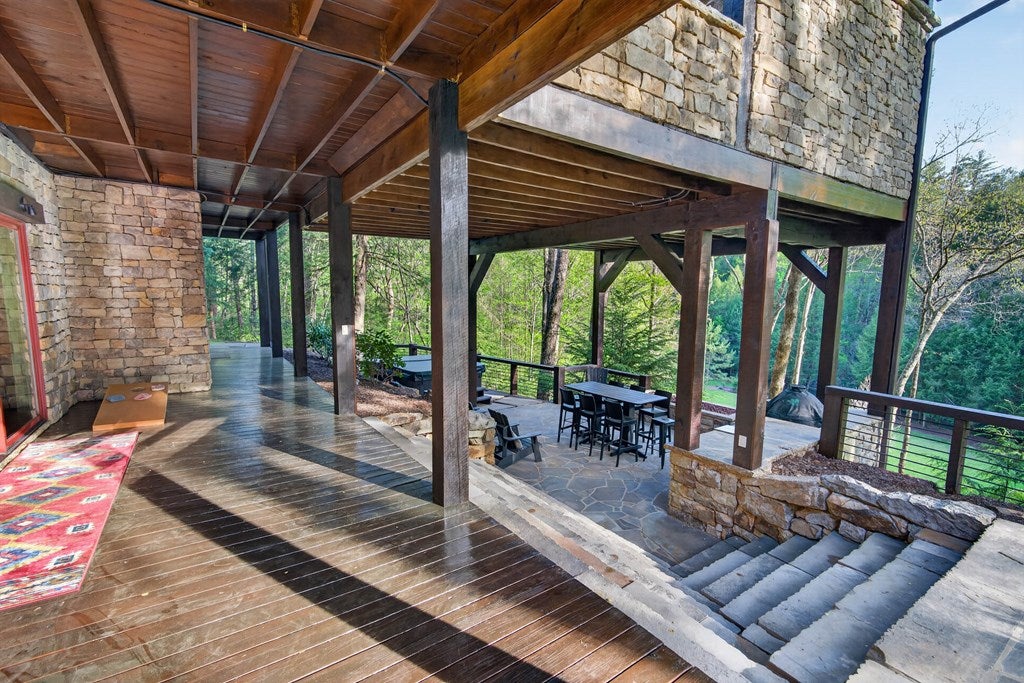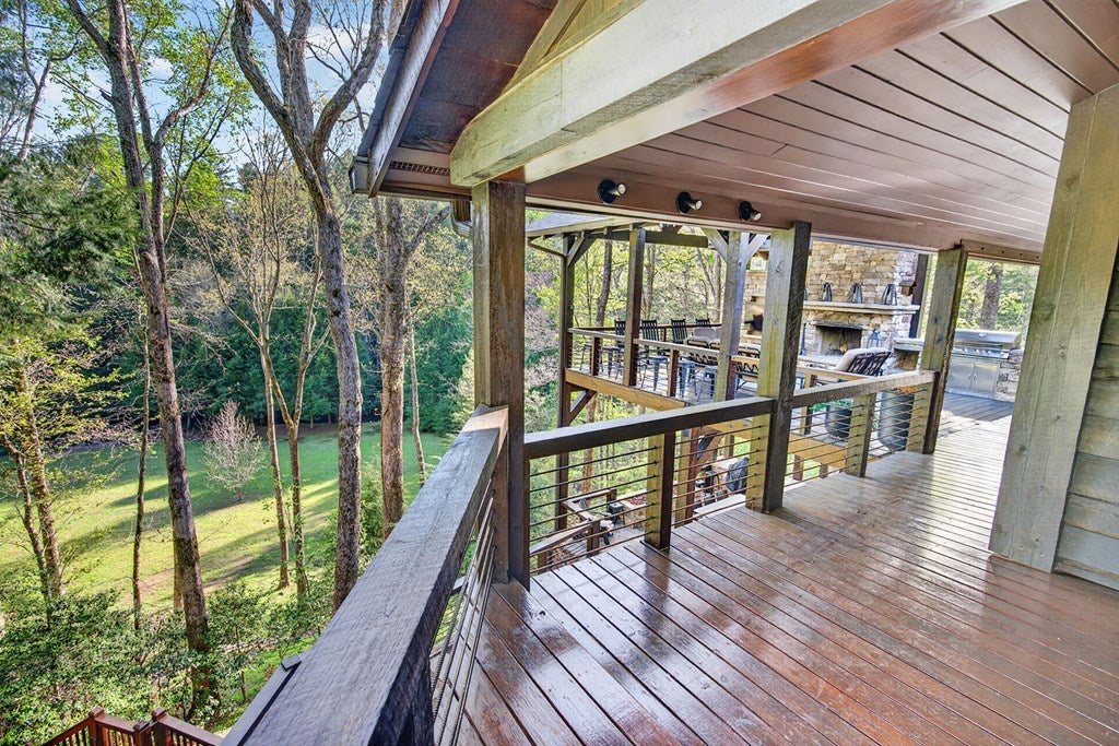 317 Crestview Lane Goose Island Hideaway Cherry Log, GA Welcome to 317 Crestview Lane a mountain river sanctuary unlike any other. Nestled within the prestigious gated enclave of Goose Island Hideaway in Cherry Log, Georgia, this extraordinary estate sits between Blue Ridge and Ellijay, placing you moments from craft breweries, wineries, fine dining, and the Chattahoochee National Forest. Remodeled in 2019 and featured in the 2020 Blue Ridge Parade of Homes, this Keith Sumner custom masterpiece commands 5.69 private forested acres and 550 feet of Ellijay River frontage. The homes striking exterior rusted tin roof accents, signature stacked stone entrance, and timber framing announces a sophisticated blend of modern mountain architecture and rustic elegance. Inside, 5,700 square feet of curated living space unfolds across three levels, offering 5 bedrooms, 4.5 baths, and three master suites. Hand-hewn vaulted ceilings, a grand 16-foot stone fireplace, and floor-to-ceiling glass doors define the main levels great room, flowing seamlessly to an entertainers deck with outdoor kitchen and wood-burning fireplace. The chefs kitchen features a twelve-foot marble island, Viking appliances, and sweeping river views. The primary suite delivers steam spa showers, a copper soaking tub, a Toto Japanese bidet, and a walk-in closet with washer and dryer. Ascend the open timber stairs to the top floor where 3 additional guest bedrooms await, each with a unique designer persona. Descend to the terrace level for a sophisticated bar, Brunswick billiards, shuffleboard, and stone fireplace lounge. Outside, a 10-person hot tub, Green Egg smoker, and gas fire pit anchor the lower deck, while stone pathways lead to 550 feet of private riverbank and a 9-hole disc golf course. Currently enrolled in a successful luxury rental program, this home offers excellent investment potential with a proven rental history. 317 Crestview Lane is not simply a home it is an experience.