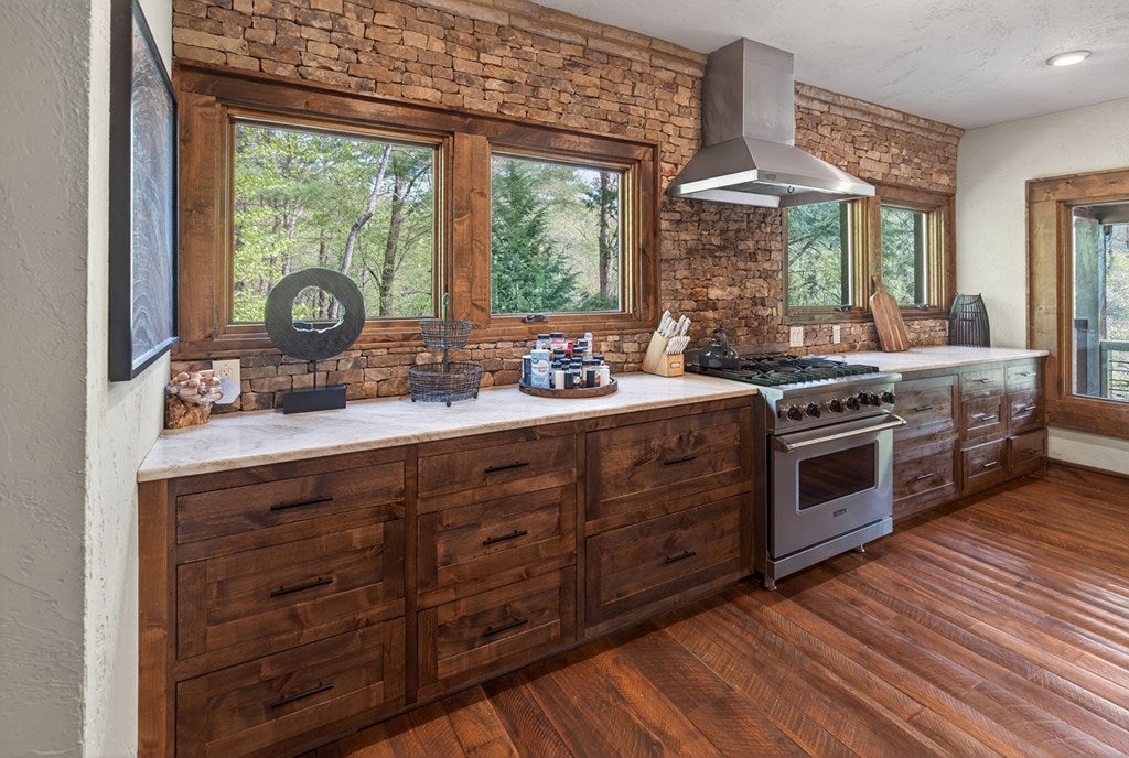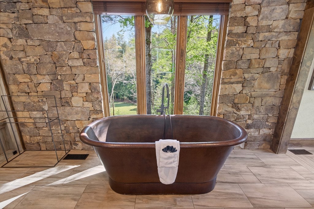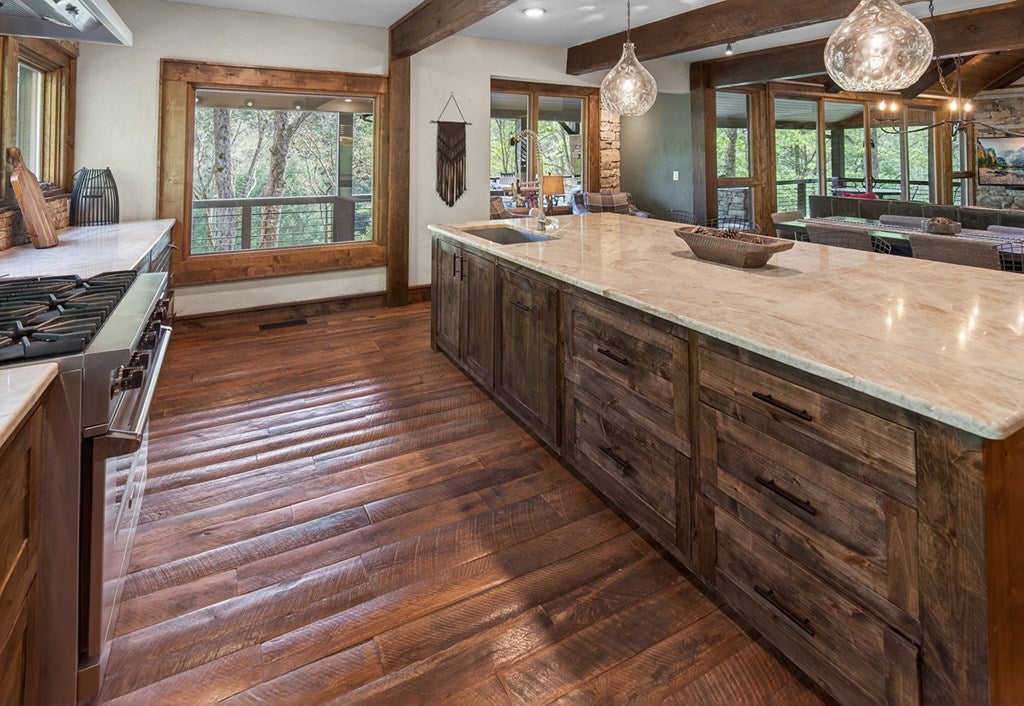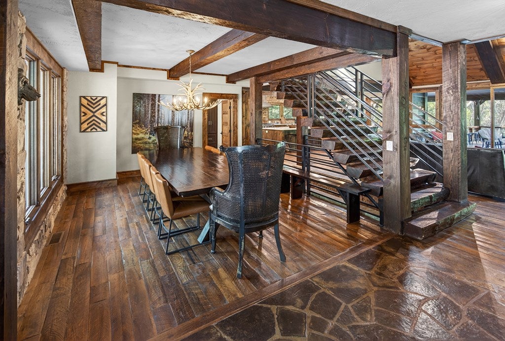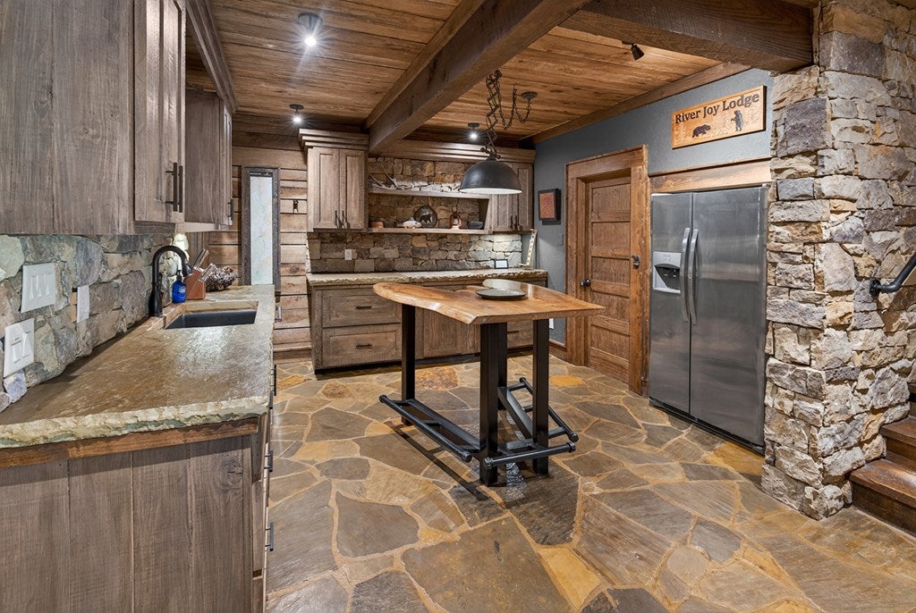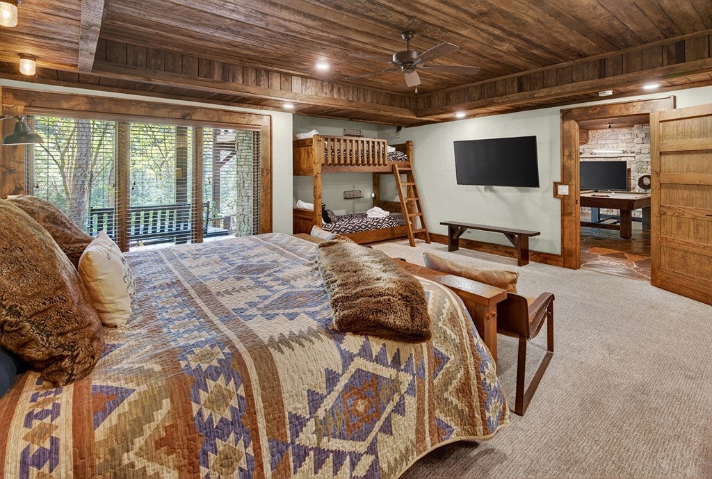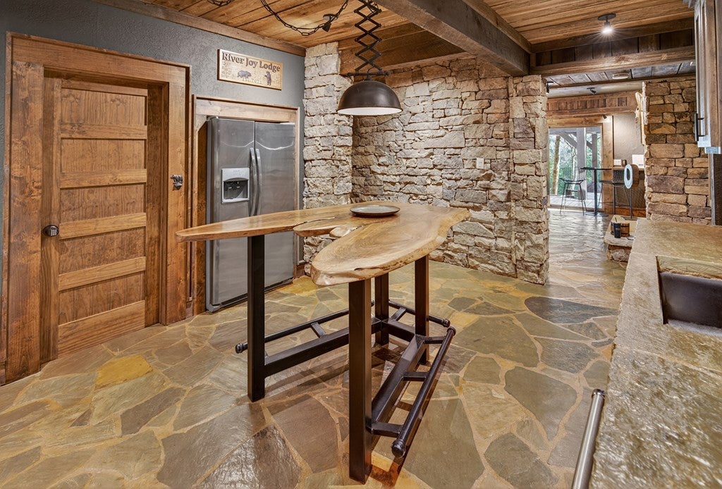 317 Crestview Lane Goose Island Hideaway Cherry Log, GA Welcome to 317 Crestview Lane a mountain river sanctuary unlike any other. Nestled within the prestigious gated enclave of Goose Island Hideaway in Cherry Log, Georgia, this extraordinary estate sits between Blue Ridge and Ellijay, placing you moments from craft breweries, wineries, fine dining, and the Chattahoochee National Forest. Remodeled in 2019 and featured in the 2020 Blue Ridge Parade of Homes, this Keith Sumner custom masterpiece commands 5.69 private forested acres and 550 feet of Ellijay River frontage. The homes striking exterior rusted tin roof accents, signature stacked stone entrance, and timber framing announces a sophisticated blend of modern mountain architecture and rustic elegance. Inside, 5,700 square feet of curated living space unfolds across three levels, offering 5 bedrooms, 4.5 baths, and three master suites. Hand-hewn vaulted ceilings, a grand 16-foot stone fireplace, and floor-to-ceiling glass doors define the main levels great room, flowing seamlessly to an entertainers deck with outdoor kitchen and wood-burning fireplace. The chefs kitchen features a twelve-foot marble island, Viking appliances, and sweeping river views. The primary suite delivers steam spa showers, a copper soaking tub, a Toto Japanese bidet, and a walk-in closet with washer and dryer. Ascend the open timber stairs to the top floor where 3 additional guest bedrooms await, each with a unique designer persona. Descend to the terrace level for a sophisticated bar, Brunswick billiards, shuffleboard, and stone fireplace lounge. Outside, a 10-person hot tub, Green Egg smoker, and gas fire pit anchor the lower deck, while stone pathways lead to 550 feet of private riverbank and a 9-hole disc golf course. Currently enrolled in a successful luxury rental program, this home offers excellent investment potential with a proven rental history. 317 Crestview Lane is not simply a home it is an experience.