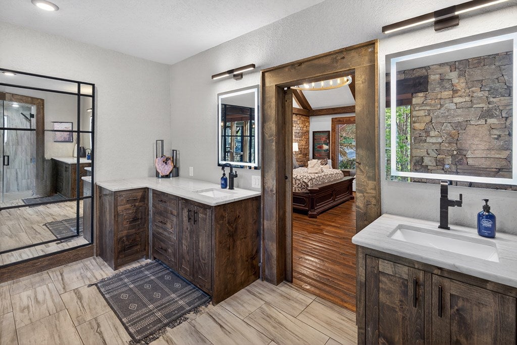 Experience the perfect blend of luxury, craftsmanship, and functionality in this stunning 4-bedroom, 4-bath home. From the moment you arrive, the impressive timber-framed entry and natural stone exterior create a warm yet sophisticated first impression, complemented by cedar soffits and durable LP Smart siding.