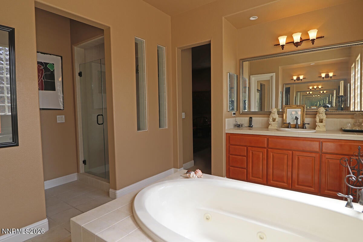 Live in luxury in this stunning single-level 3 Bd, 3.5 bath home located in the gated Mountain Gate community. Designed for both comfort and style, the interior features soaring high ceilings, modern finishes, and a spacious open-concept floor plan filled with natural light. The fully equipped chefs kitchen is a true centerpiece, showcasing a large island with a breakfast bar and prep sink, stainless steel appliances, and a formal dining areaperfect for entertaining. At the heart of the home, a private interior courtyard provides a serene space for year-round enjoyment, ideal for morning coffee, al fresco dining, or evening gatherings under the stars. With 2,913 square feet of refined living space, this exceptional residence offers both elegance and functionality. Large windows, a thoughtful layout, and a covered patio with a portico enhance the homes inviting indoor-outdoor flow. Step outside to enjoy a peaceful backyard oasis with buit-in BBQ designed for relaxation. Located in the prestigious Mountaingate community, this home embodies the ultimate luxury lifestyle in the Reno-Tahoe region. World-class skiing at Lake Tahoe, championship golf courses, and the Reno-Tahoe International Airport are all just minutes away. Experience elevated living in a home that truly has it all.