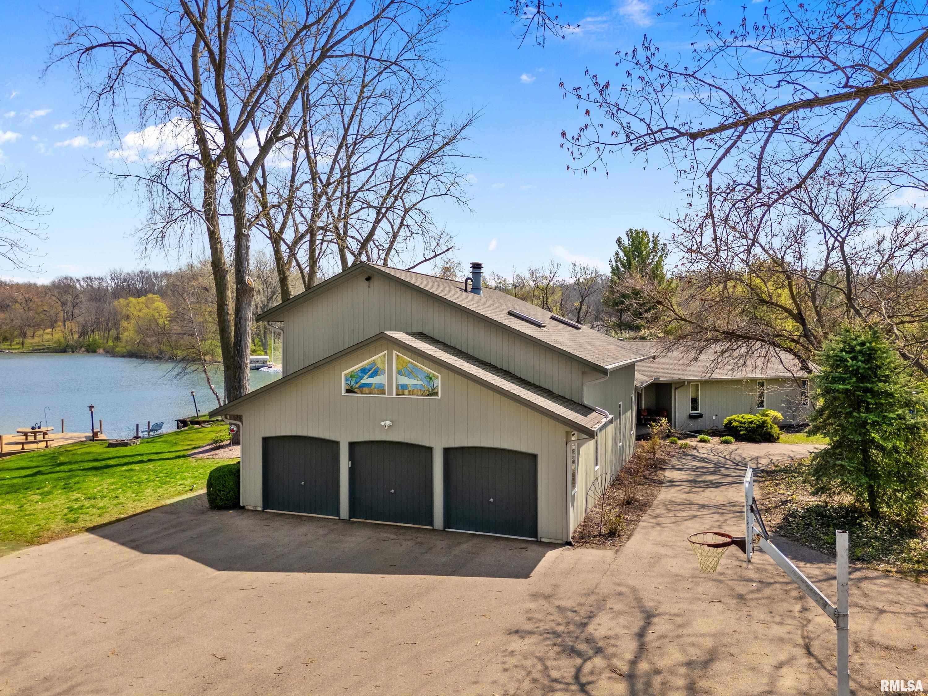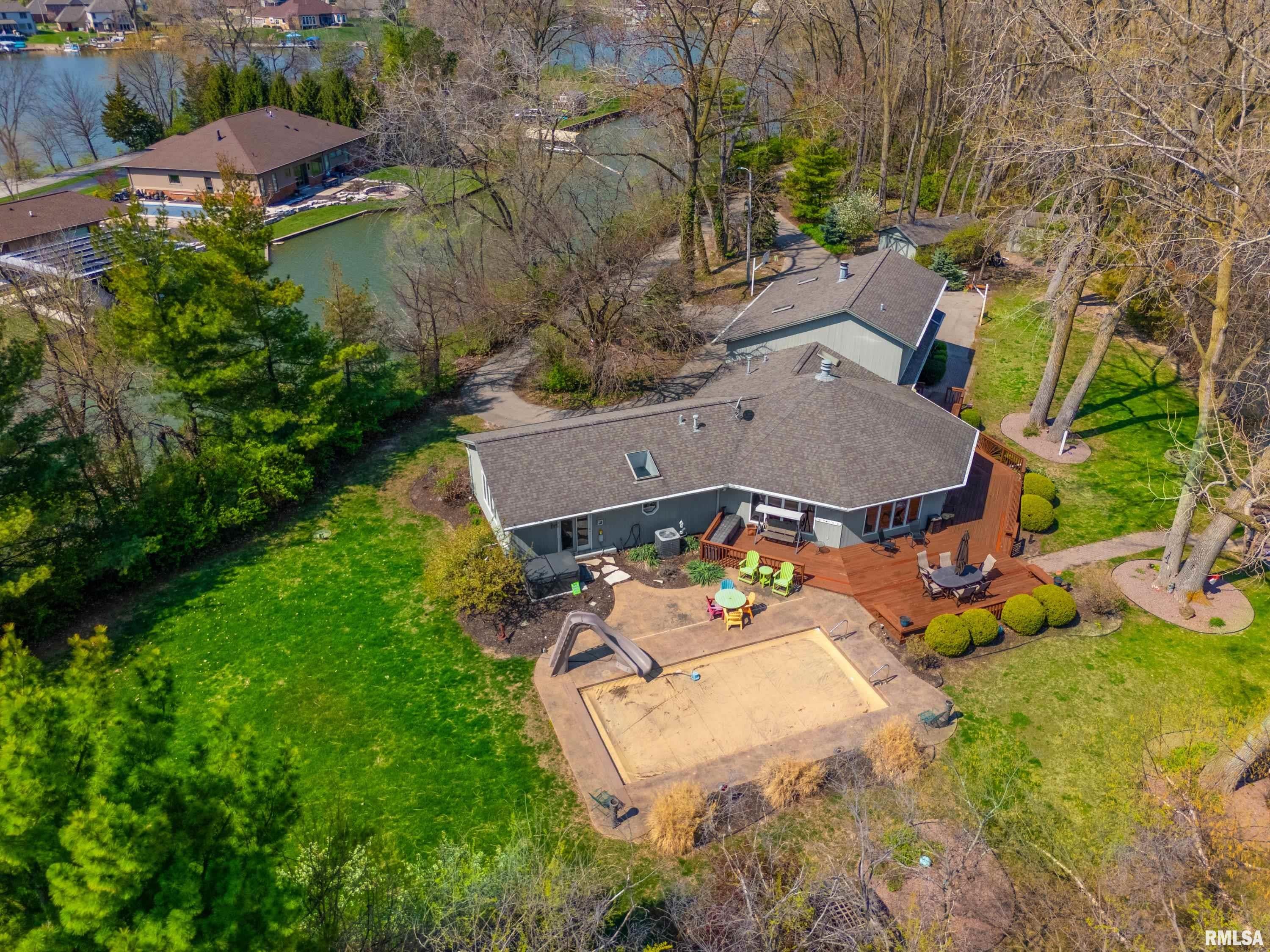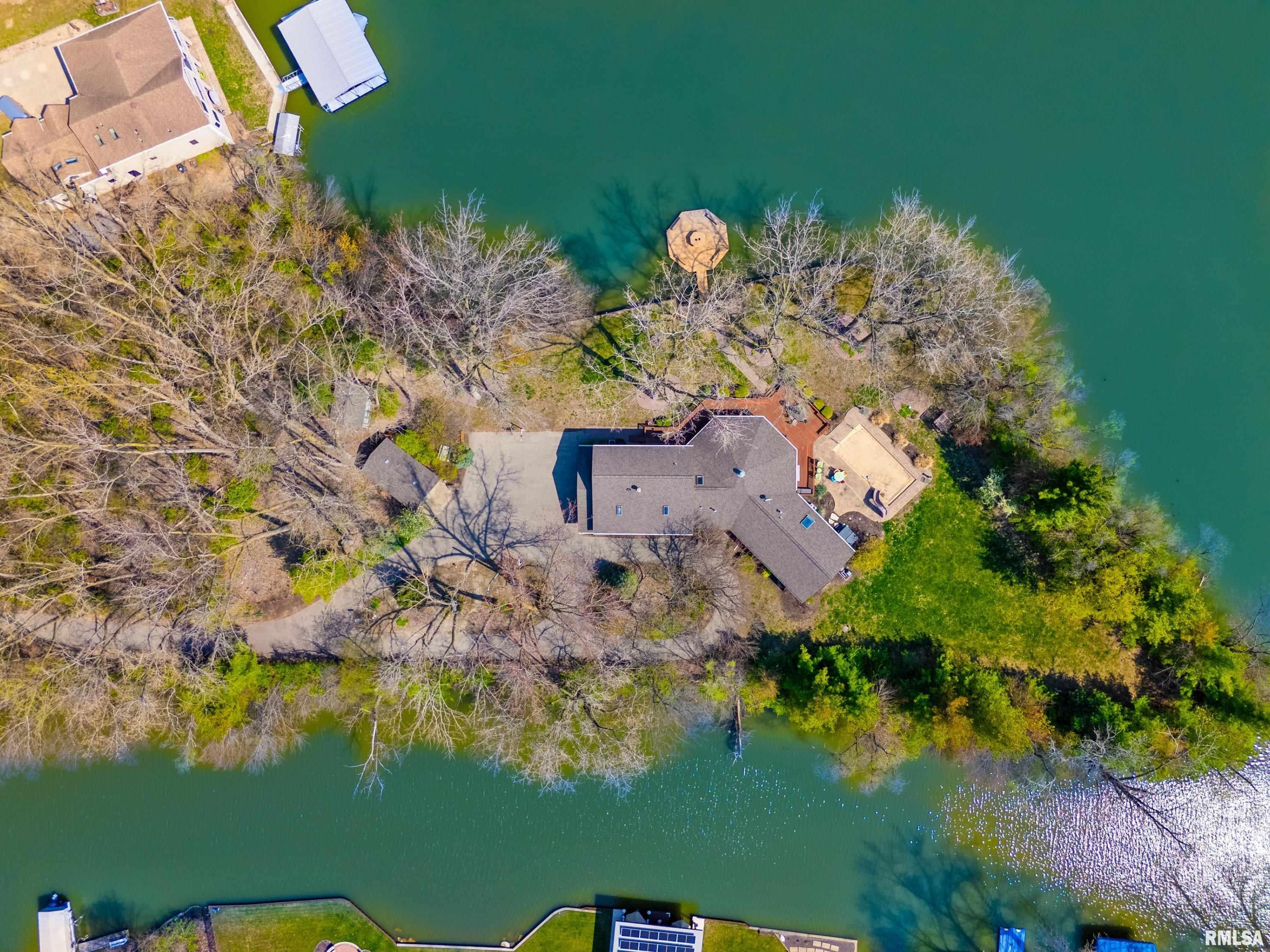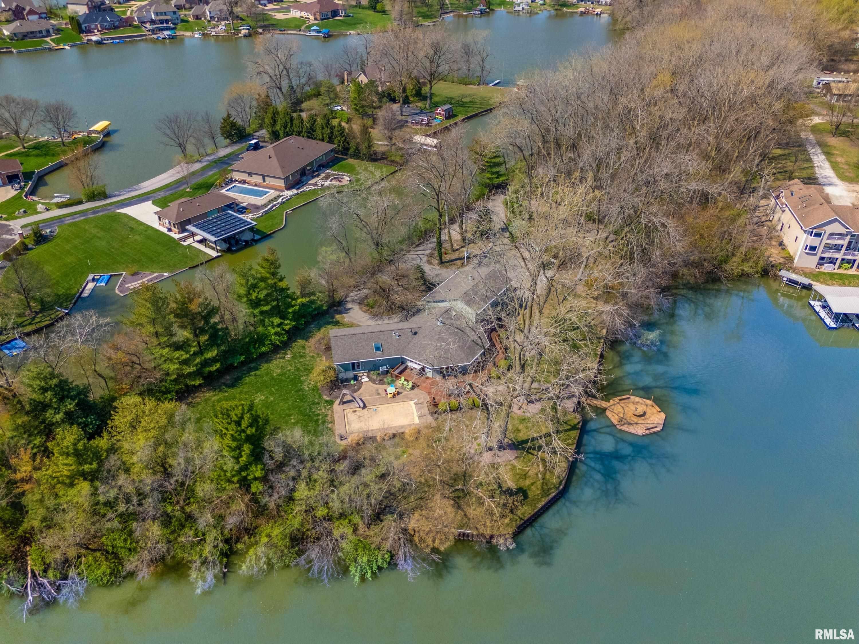 Paradise at Its Finest!! Recreational Lake Arlann home offers wooded private lane to 7.5 acres on Lake Front Peninsula! Unique architectural home is the ultimate of resort-style comforts: in-ground salt-water pool 14x32, 1061 SF. wrap-around deck, octagon dock, hot tub, firepit, shower in garage, stamped concrete patio! Endless amenities include steel retaining wall, 2 storage sheds with equipment, skylights, new gutters/gutter guards, lake-fed irrigation system, 2 fireplaces! PLUS: cork & oak floors, quartz, 5 deep concrete crawlspace, security system! IMPORTANTLY, there is a strong possibility of developing buildable lots! Spectacular rare opportunity to own this coveted serene lake front masterpiece! Home sold as is with inspections!