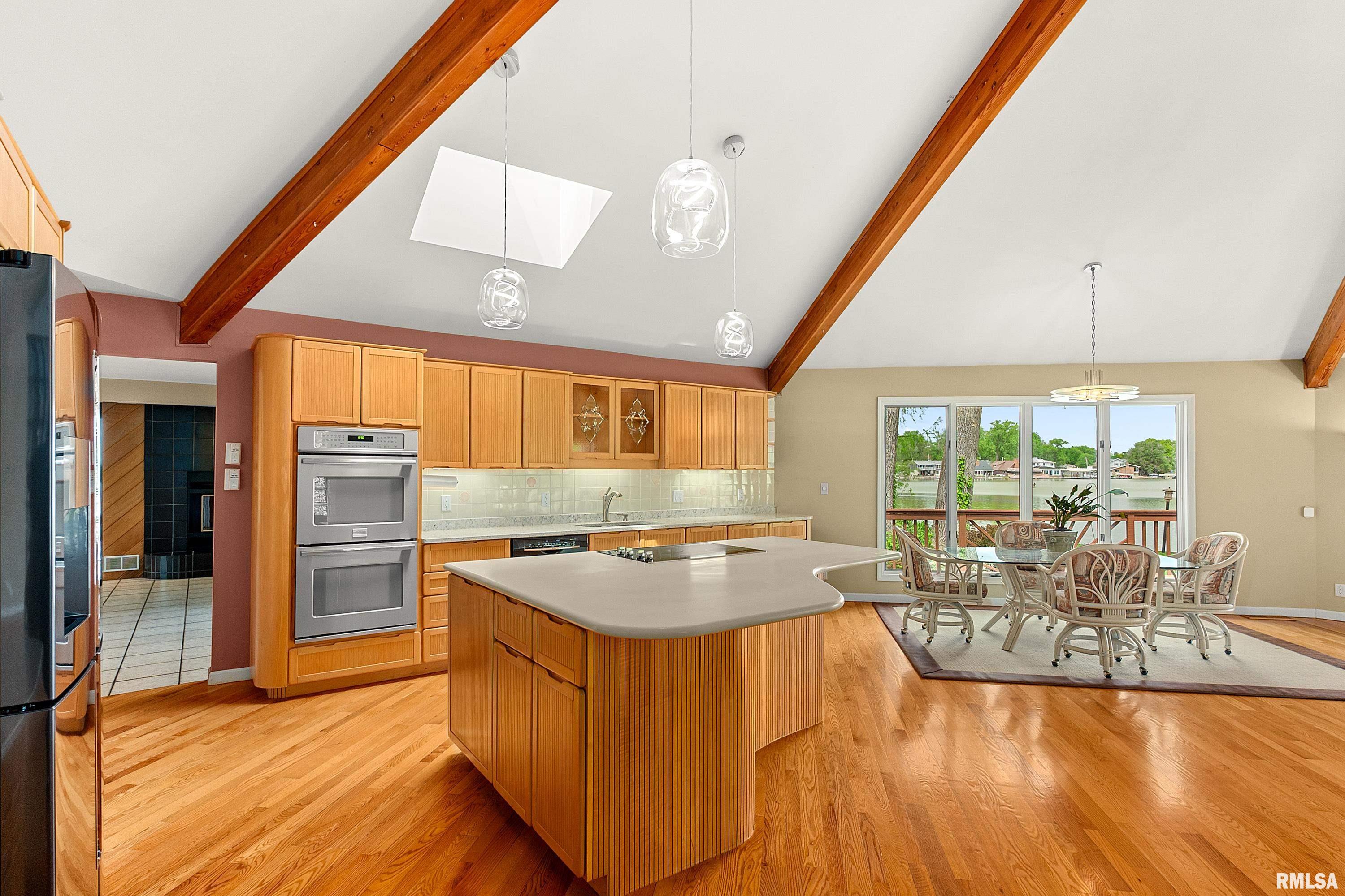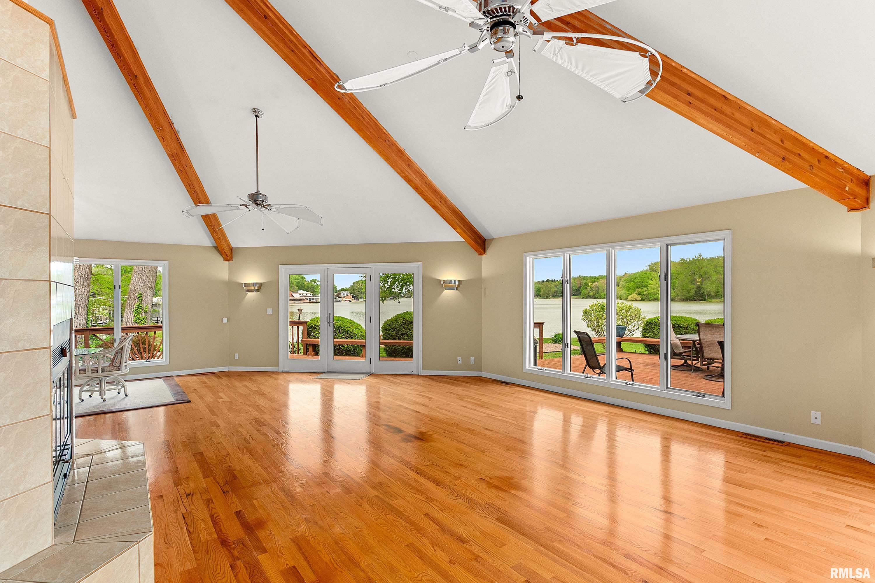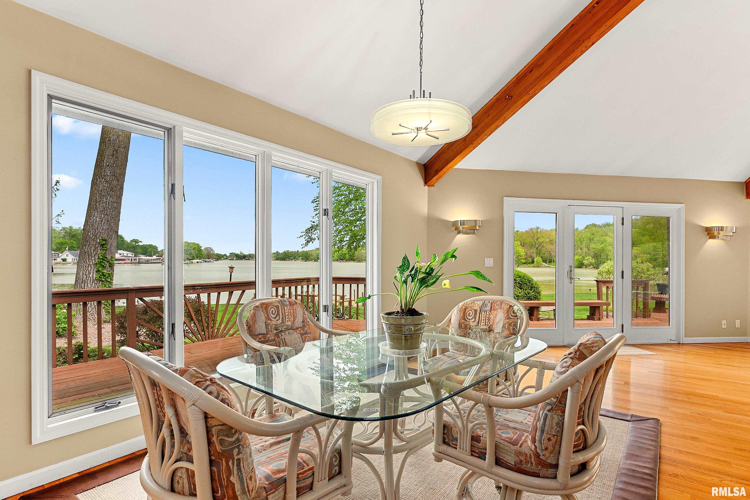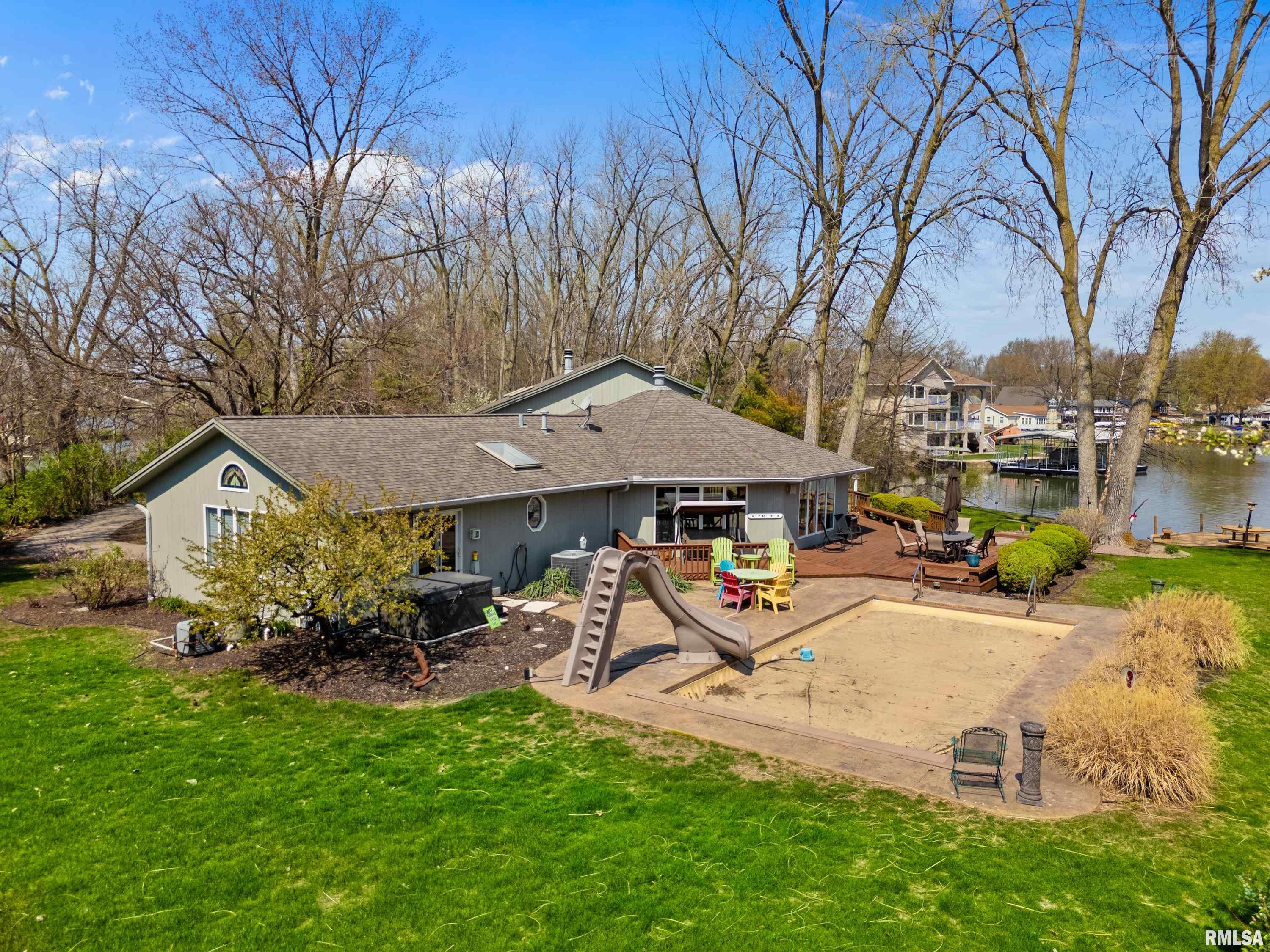 Paradise at Its Finest!! Recreational Lake Arlann home offers wooded private lane to 7.5 acres on Lake Front Peninsula! Unique architectural home is the ultimate of resort-style comforts: in-ground salt-water pool 14x32, 1061 SF. wrap-around deck, octagon dock, hot tub, firepit, shower in garage, stamped concrete patio! Endless amenities include steel retaining wall, 2 storage sheds with equipment, skylights, new gutters/gutter guards, lake-fed irrigation system, 2 fireplaces! PLUS: cork & oak floors, quartz, 5 deep concrete crawlspace, security system! IMPORTANTLY, there is a strong possibility of developing buildable lots! Spectacular rare opportunity to own this coveted serene lake front masterpiece! Home sold as is with inspections!