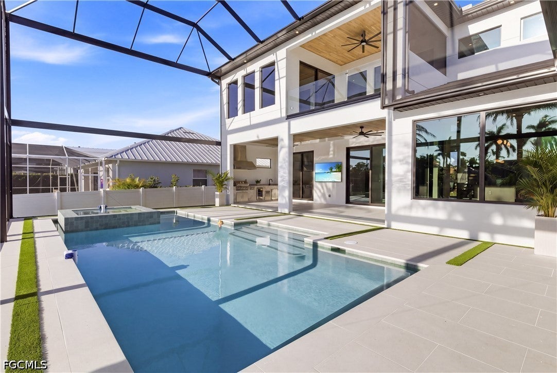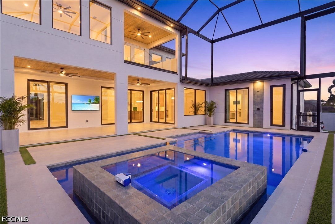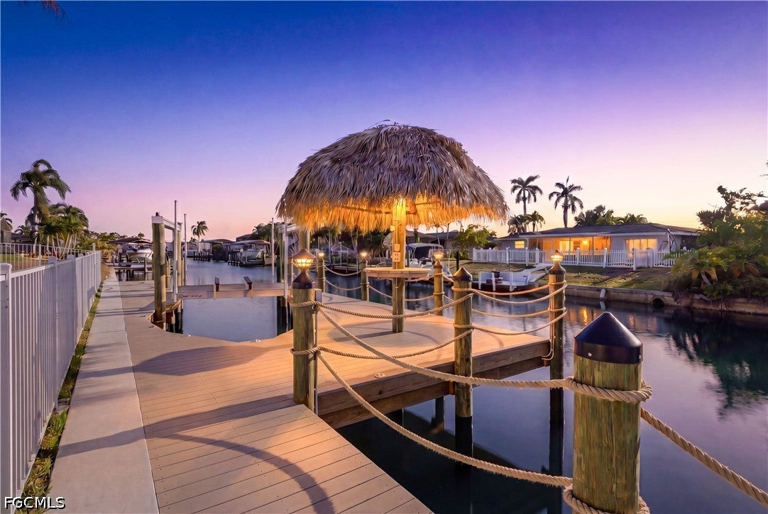 Waterfront masterpiece in Cape Corals Yacht Club w/ direct Gulf access, no bridges, and 7 minutes to Gulf open water - 80 ft on Malaluka Canal featuring captains walk, 10K lb lift, tiki hut & fully equipped dock. Bright & open modern layout featuring oversized 72x41 Spanish porcelain tile on main level & natural engineered oak flooring upstairs.