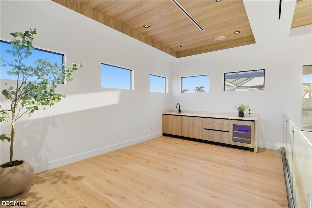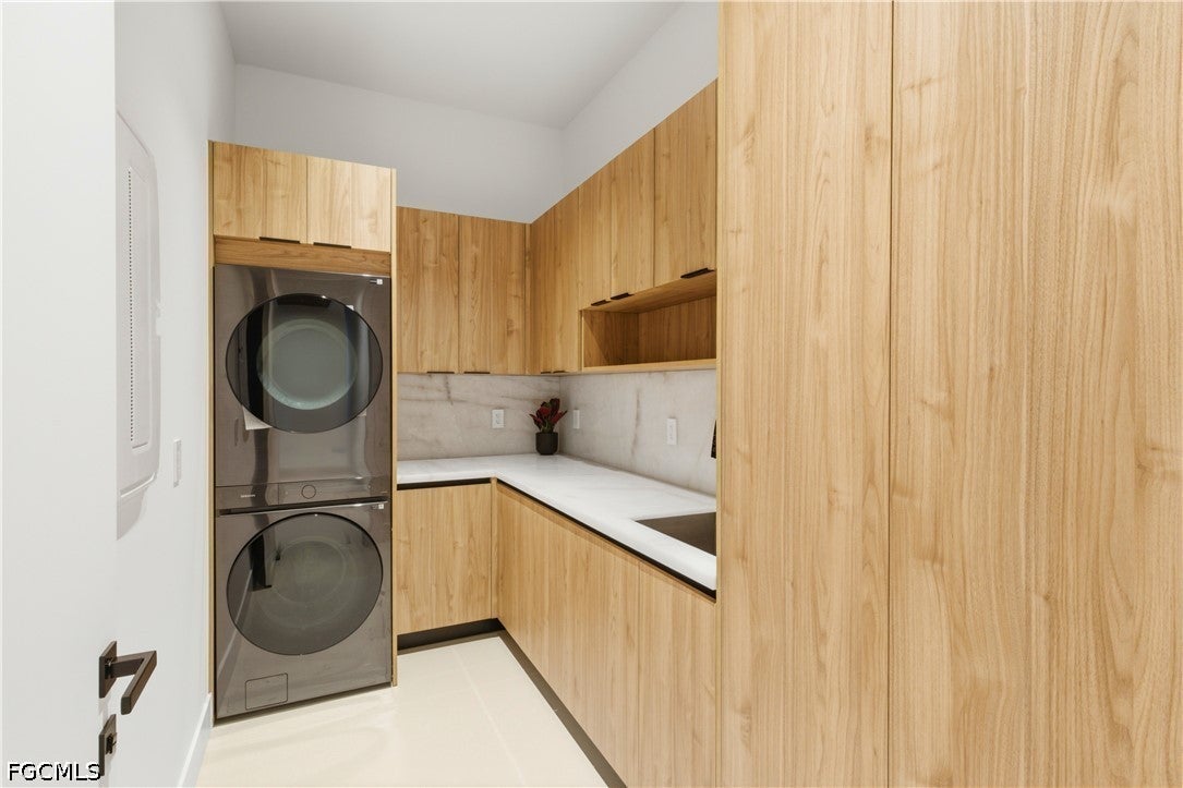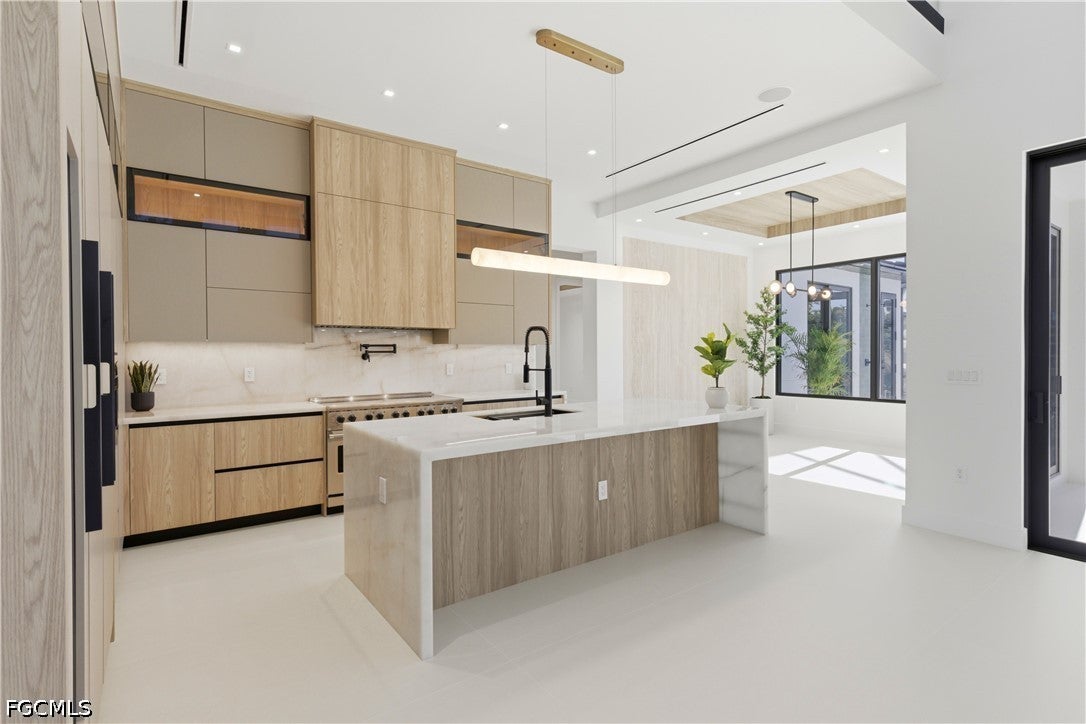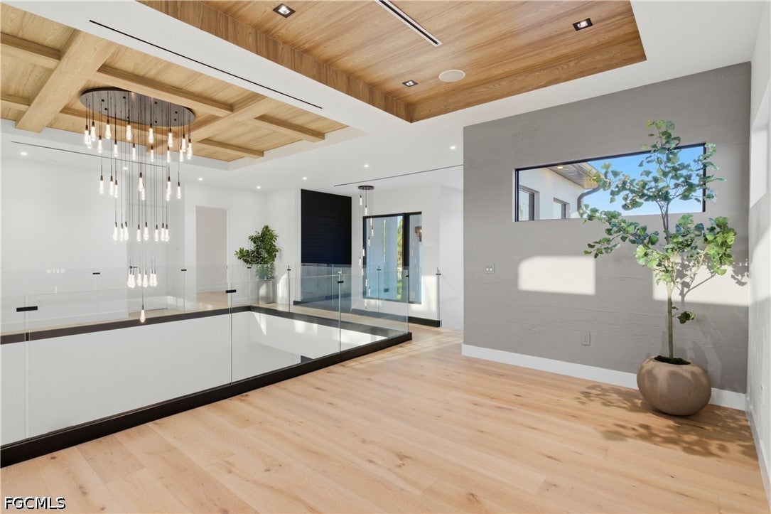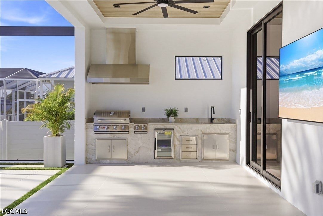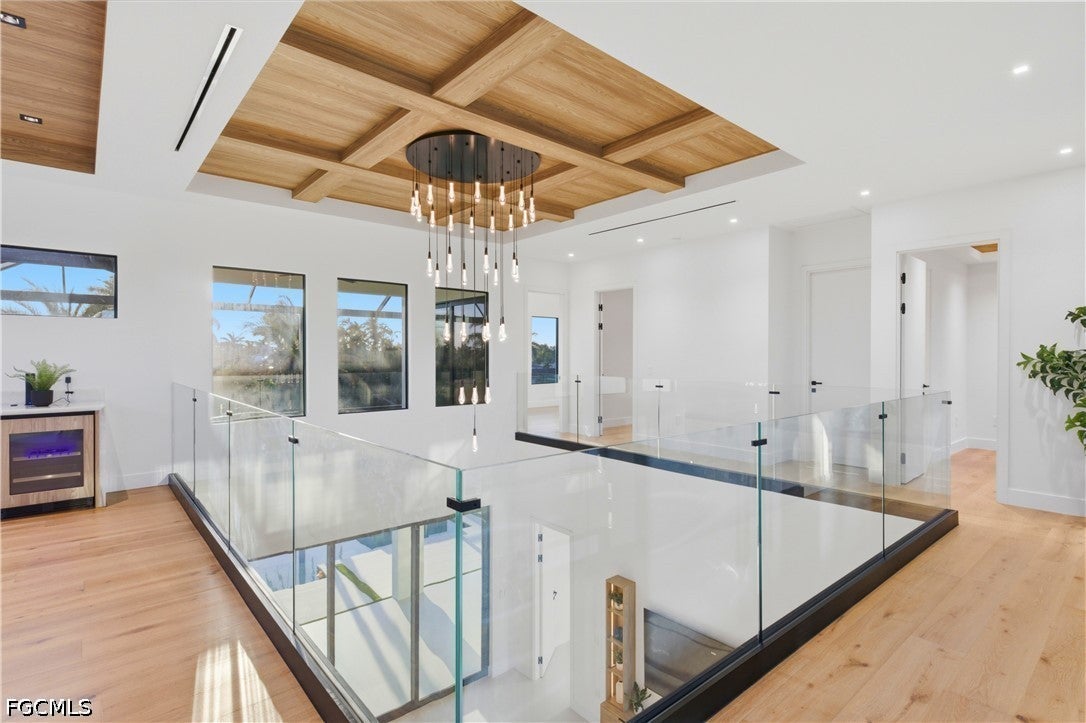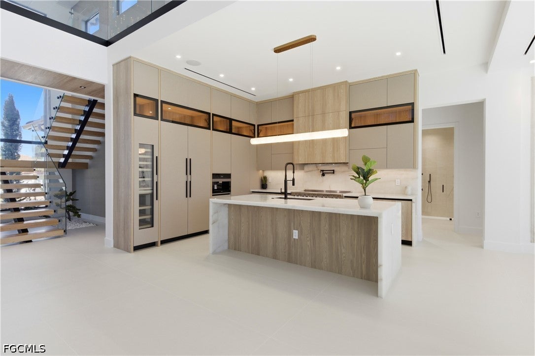 Waterfront masterpiece in Cape Corals Yacht Club w/ direct Gulf access, no bridges, and 7 minutes to Gulf open water - 80 ft on Malaluka Canal featuring captains walk, 10K lb lift, tiki hut & fully equipped dock. Bright & open modern layout featuring oversized 72x41 Spanish porcelain tile on main level & natural engineered oak flooring upstairs. Arrive through marble-column front porch w/ glass accents & modern wood ceiling, opening to impressive foyer w/ 10-ft double tinted Low-E impact-resistant pivot door. Gorgeous entryway w/ multi-drop chandelier & wall paneling. Living room w/ 23-ft cove ceiling, wood beam detailing, Italian wallpapered feature wall w/ illuminated built-ins & stunning 64 multi-drop chandelier cascading from ceiling, 75 TV & Bose surround sound system. Gourmet kitchen w/ modern design & premium craftsmanship, equipped w/ luxury appliances, Liebherr built-in dual-zone wine cooler, Viking flat range w/ double convection ovens, integrated dishwasher, custom built-in Liebherr side-by-side refrigerator/freezer & Miele integrated coffee machine. Trade-Wind commercial-grade hood concealed w/ custom cabinetry. Oversized waterfall island highlighted by Cristallo quartzite lighting pendant & by top-of-the-line cabinetry extending to the ceiling w/ under- & upper-cabinet lighting, Cristallo quartzite countertops, full-height backsplash, pot filler & large sink. Sophisticated formal dining with travertine feature wall, wood ceiling, designer lighting, and 9-ft tinted Low-E sliders plus oversized windows to the waterfront. SPLENDID MASTER BATH w/ FULL GLASS WALL, DOUBLE RAINFALL SHOWERS w/ 4 jets & handheld showerheads, STANDALONE TUB & custom vanities. All bathrooms feature seamless travertine integrated sinks w/ soft veining & wall-mounted smart toilets w/ bidet features & concealed in-wall tank systems for modern look. All beds feature elegant tray ceilings w/ wood inlay accents. SPLIT FLOOR PLAN w/ 2nd MASTER SUITE, 2 GUEST BED & HALL BATH ensure PRIVACY & convenience for FAMILY & GUESTS! Ascend striking glass & engineered oak staircase w/ interior garden feature to second level, offering loft retreat (2nd living) w/ wet bar, Cristallo quartzite, sink, beverage fridge & Bose sound. Includes junior suite w/ east balcony (sunrise), den/office & media/flex room w/ Bose opening to west balcony (breathtaking sunsets). Step outside to your waterfront oasis w/ oversized heated pool & spa, marble pavers, artificial turf, lush landscaping & fenced yard. Outdoor kitchen w/ Bull grill, side burner, hood, fridge, sink & storage, plus covered patio w/ wood ceiling, fan, Bose sound & 65 TV. Laundry room w/ Samsung washer & dryer, utility sink w/ full backsplash, L-shaped countertop & ample storage cabinetry. 3-CAR GARAGE w/ FULL IMPACT RESISTANT TINTED LOW-E GLASS PANELS & INSULATED CEILING. This stunning waterfront property with direct Gulf-access boating and refined luxury offers an exceptional SWFL lifestyle, come experience it firsthand!