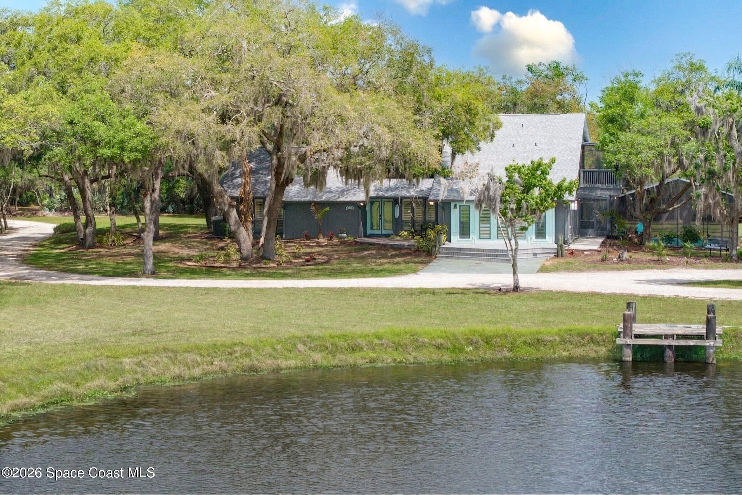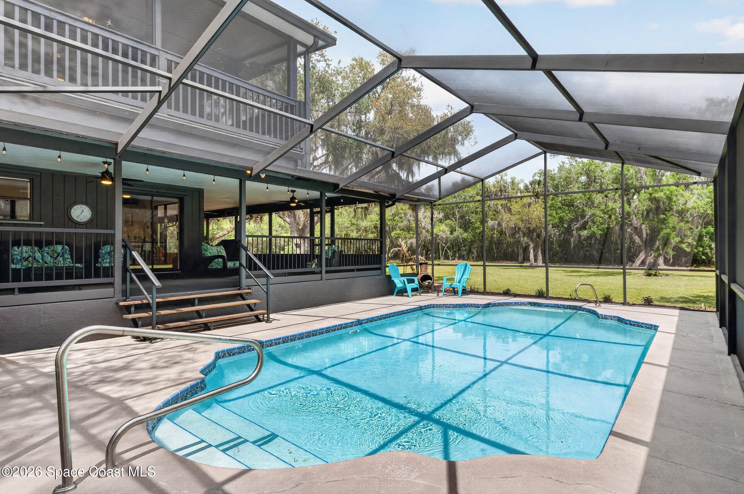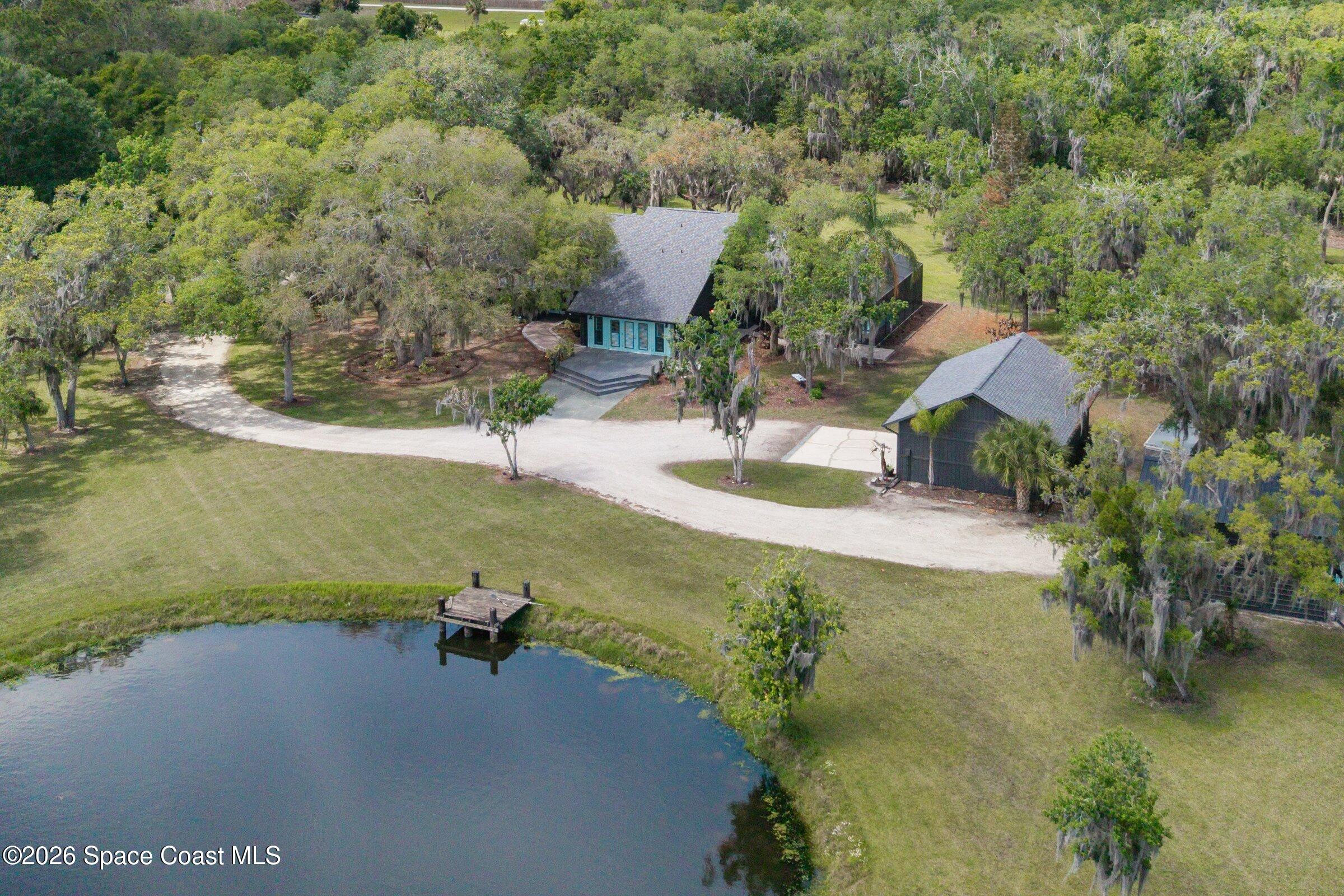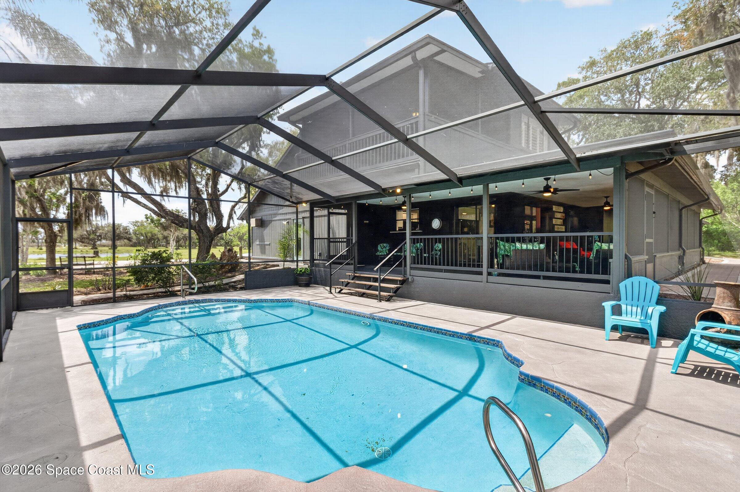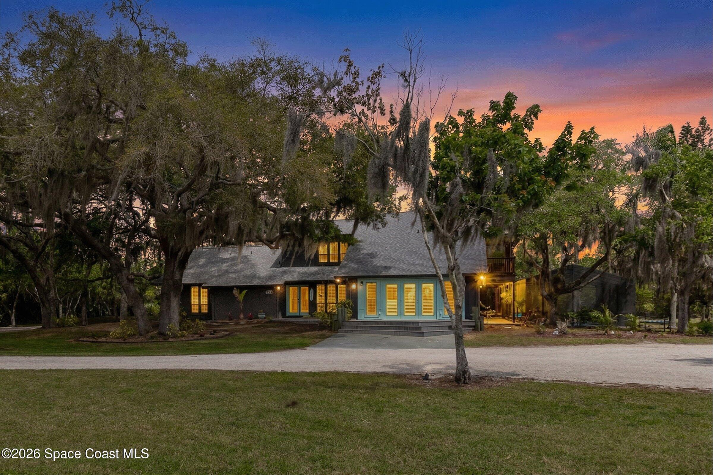 Starlight Acres is your private retreat on Floridas Space Coast. Set on 9.68 acres beneath majestic oaks, this 4BR/4BA home offers 3,576 sf under air and a lifestyle that feels worlds away, yet close to Kennedy Space Center and major employers. A winding drive leads to peaceful pond views and a home that offers space to gather and room to spread out. A wrap-around screened porch leads to the pool. Inside, youll find character-filled living spaces with wood beams in the living & dining areas. With 2 primary suites-one upstairs and one downstairs-this layout offers flexibility. A spacious 1st-floor bonus room adds flexibility for guests, hobbies, or a home office. Major updates include a newer roof (2023), dual HVAC systems (2019 & 2022), whole-house generator, storm protection, and a powered outbuilding with 12 ceiling. Whether youre seeking privacy, space, or a front-row seat for rocket launches, this property delivers! Launch your next chapter and schedule your showing TODAY!