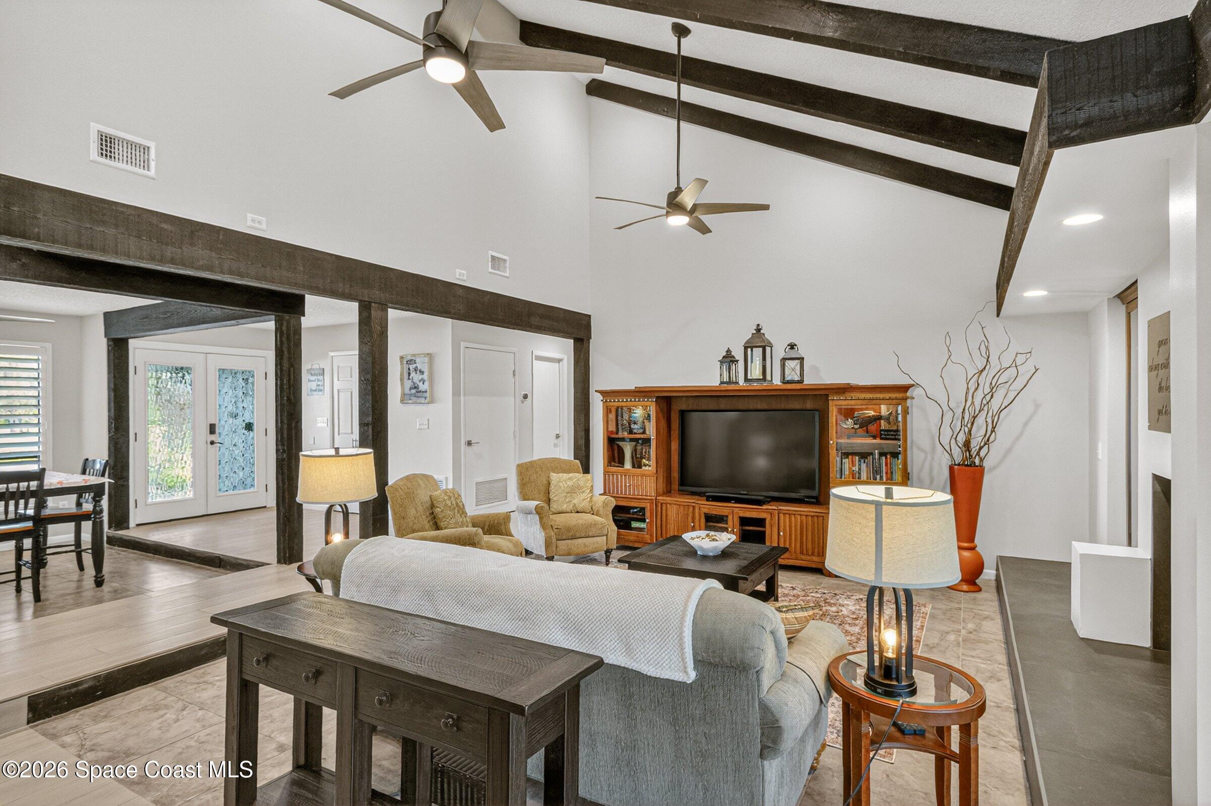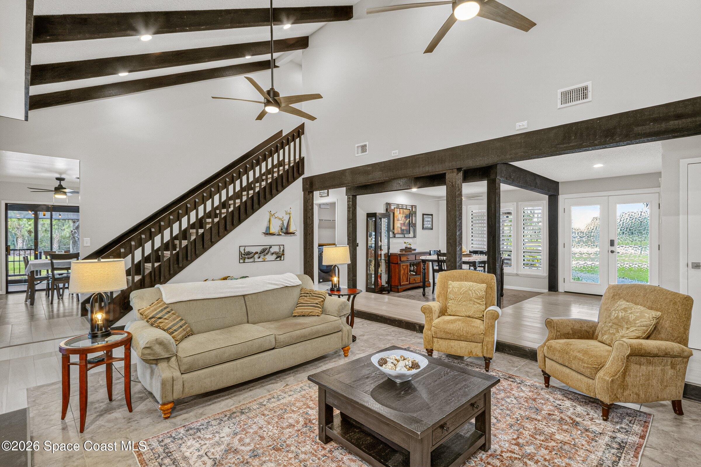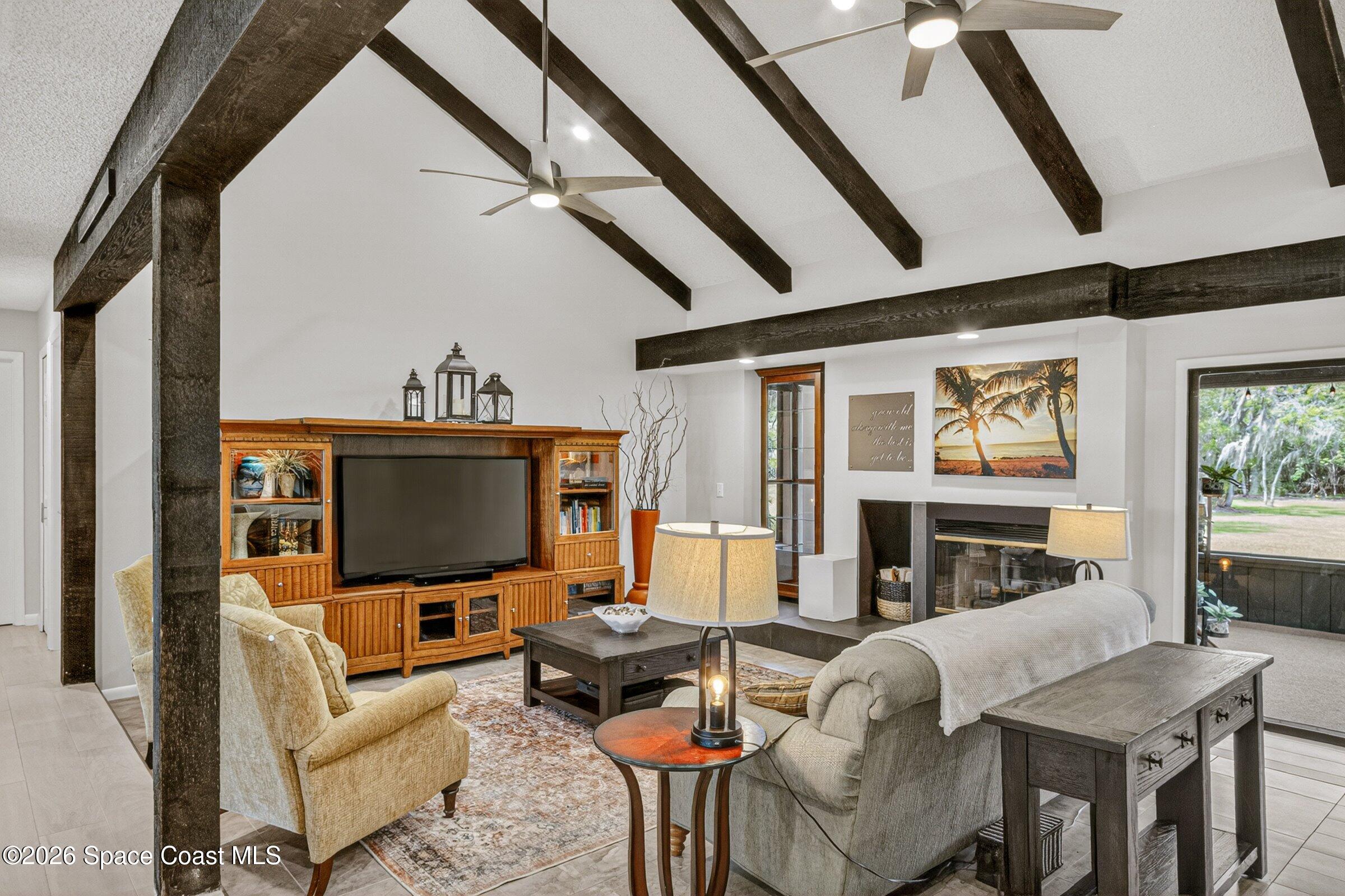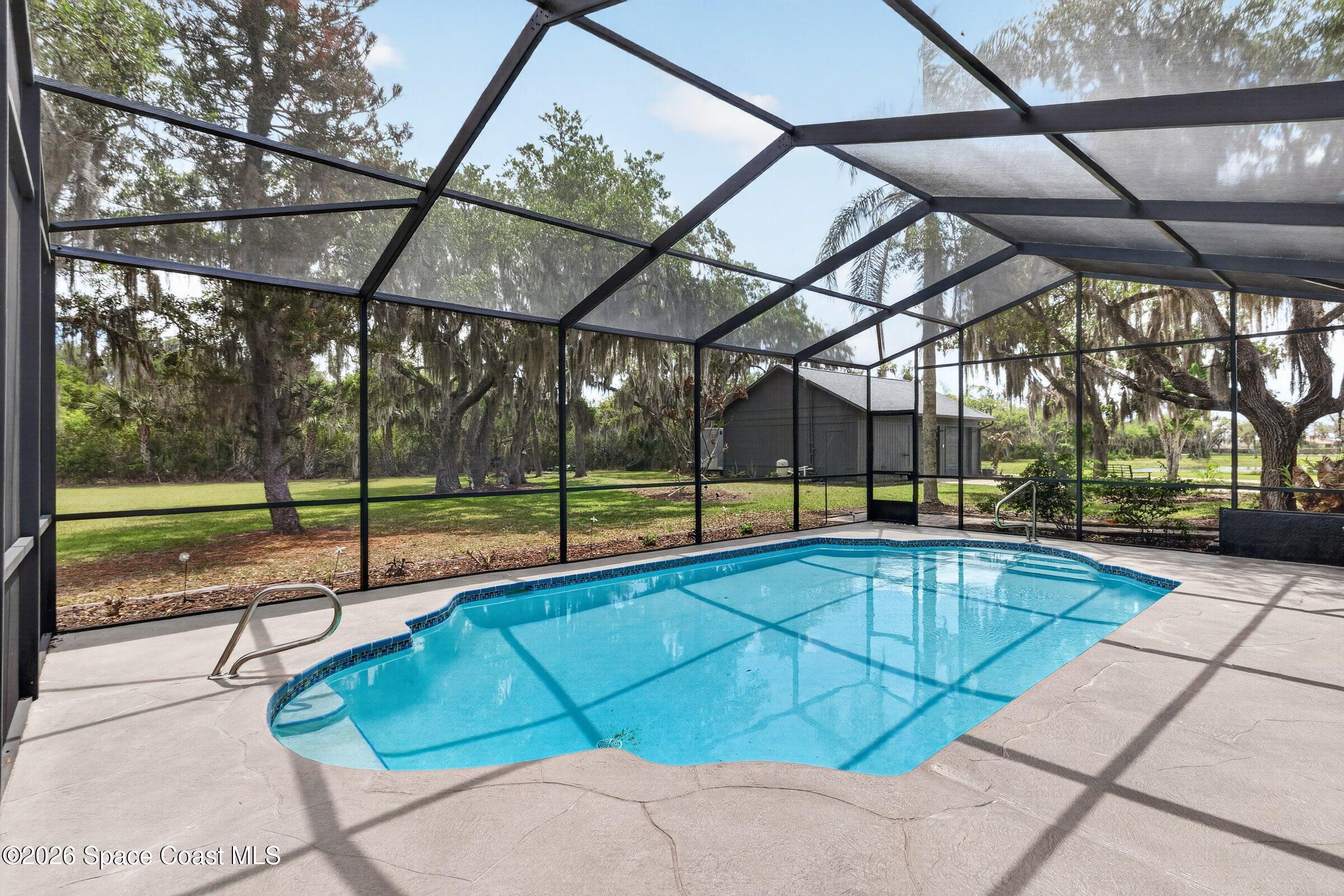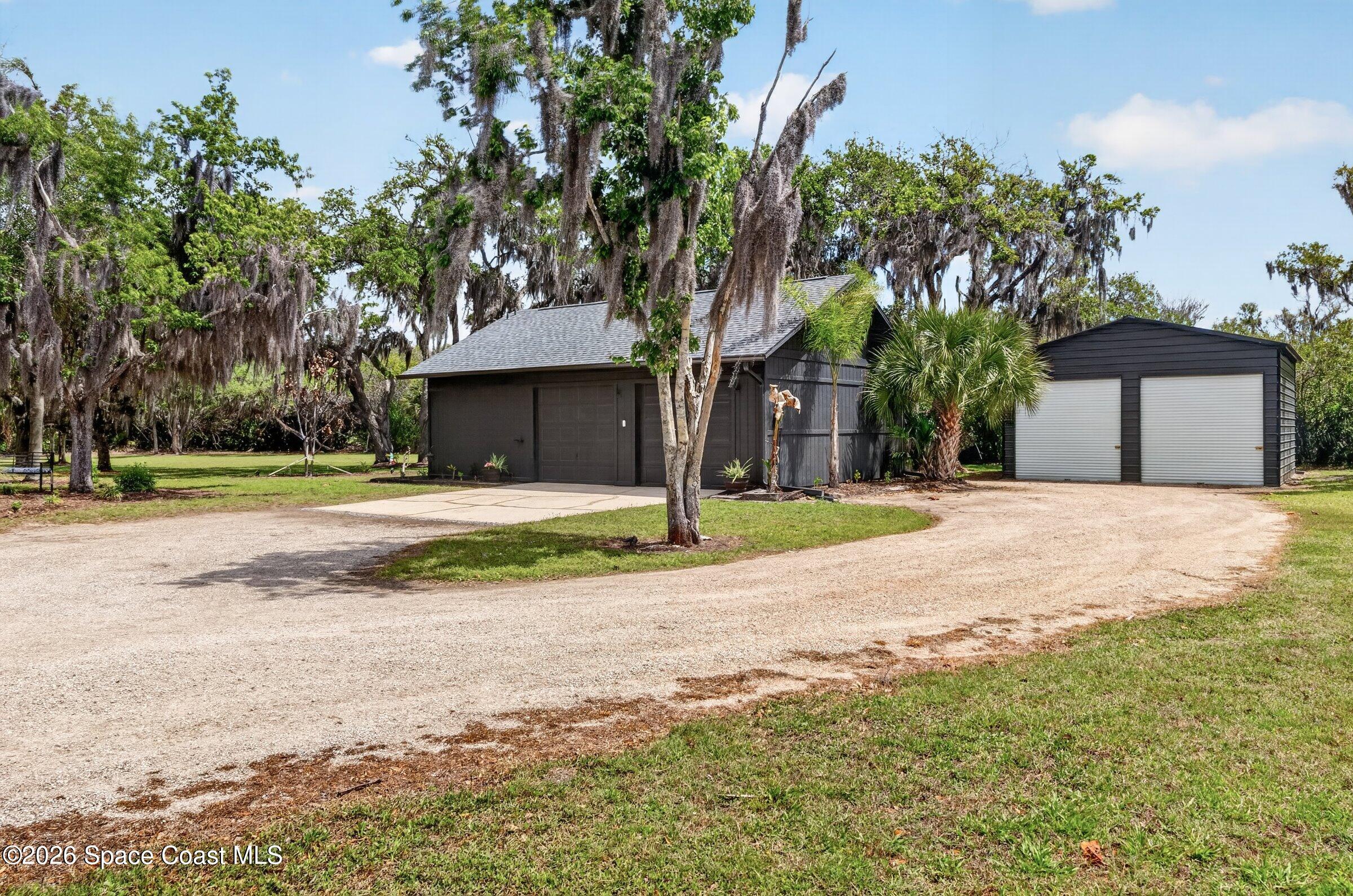 Starlight Acres is your private retreat on Floridas Space Coast. Set on 9.68 acres beneath majestic oaks, this 4BR/4BA home offers 3,576 sf under air and a lifestyle that feels worlds away, yet close to Kennedy Space Center and major employers. A winding drive leads to peaceful pond views and a home that offers space to gather and room to spread out. A wrap-around screened porch leads to the pool. Inside, youll find character-filled living spaces with wood beams in the living & dining areas. With 2 primary suites-one upstairs and one downstairs-this layout offers flexibility. A spacious 1st-floor bonus room adds flexibility for guests, hobbies, or a home office. Major updates include a newer roof (2023), dual HVAC systems (2019 & 2022), whole-house generator, storm protection, and a powered outbuilding with 12 ceiling. Whether youre seeking privacy, space, or a front-row seat for rocket launches, this property delivers! Launch your next chapter and schedule your showing TODAY!