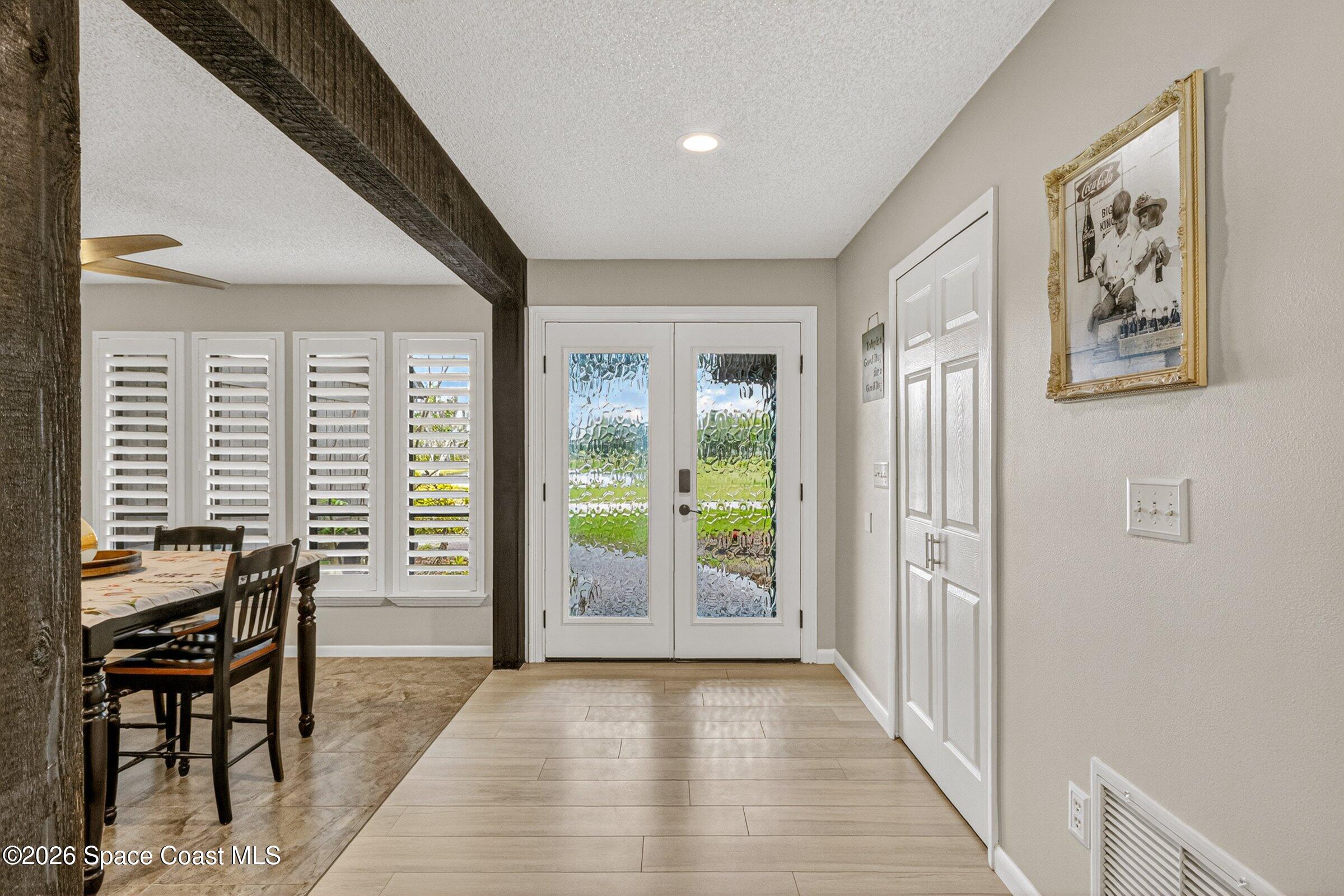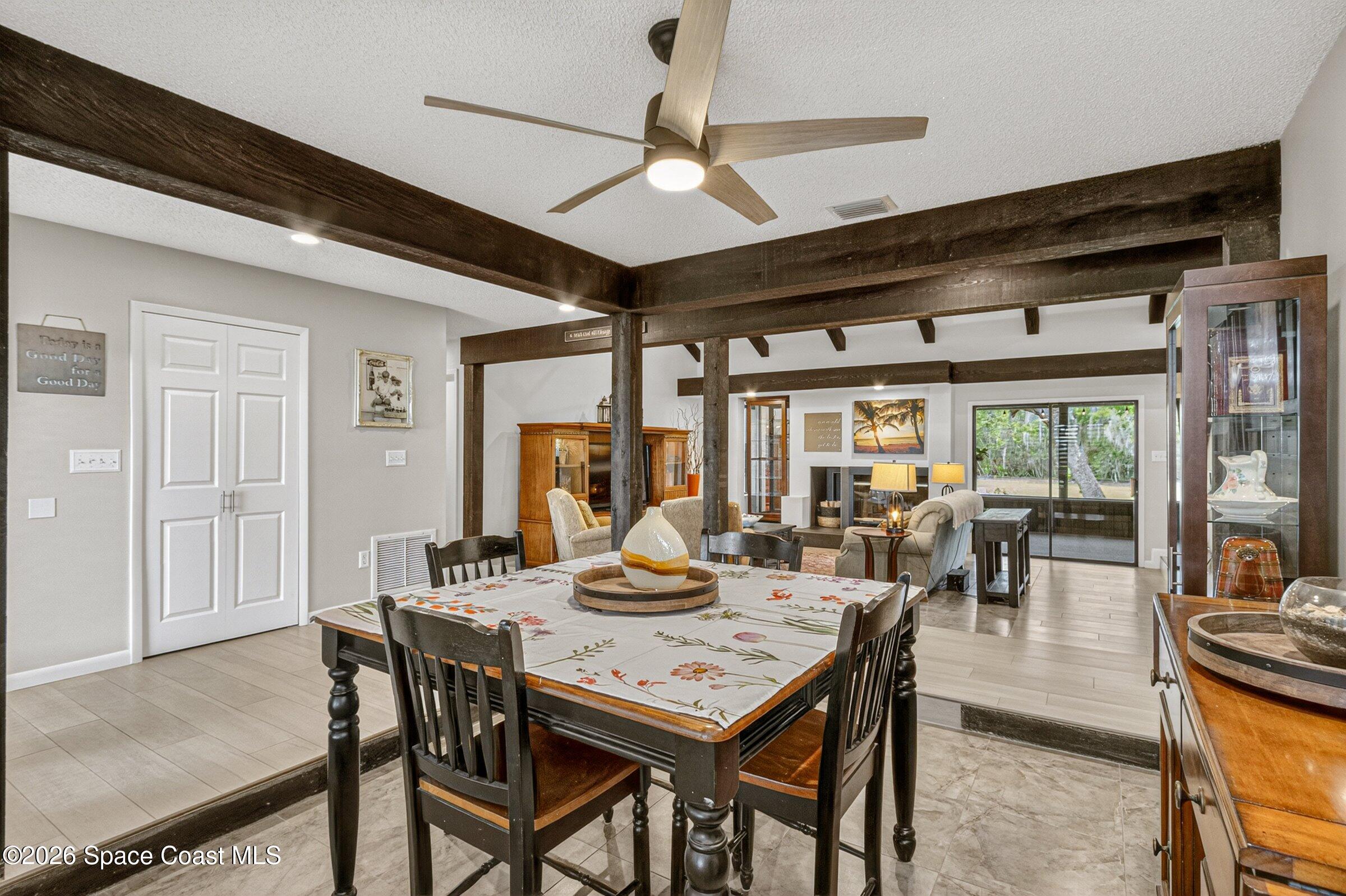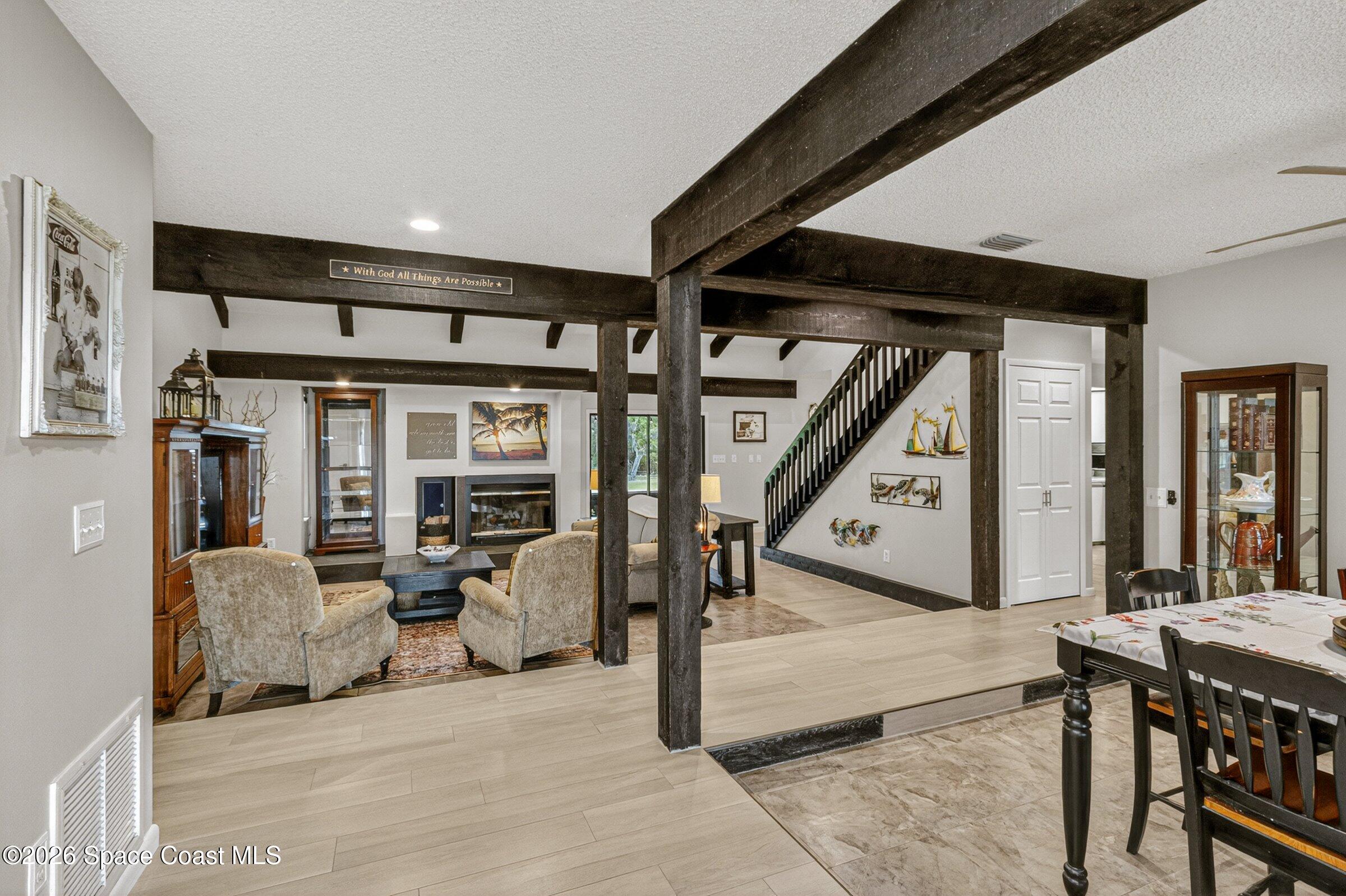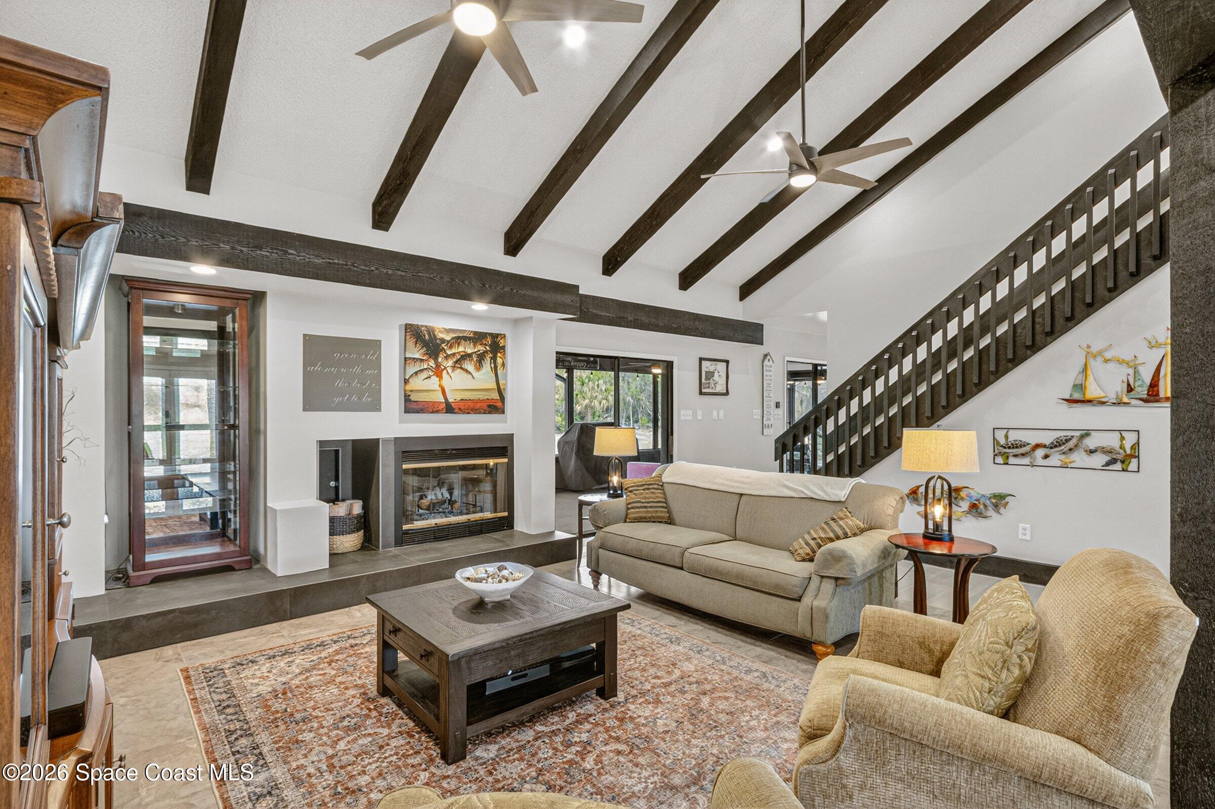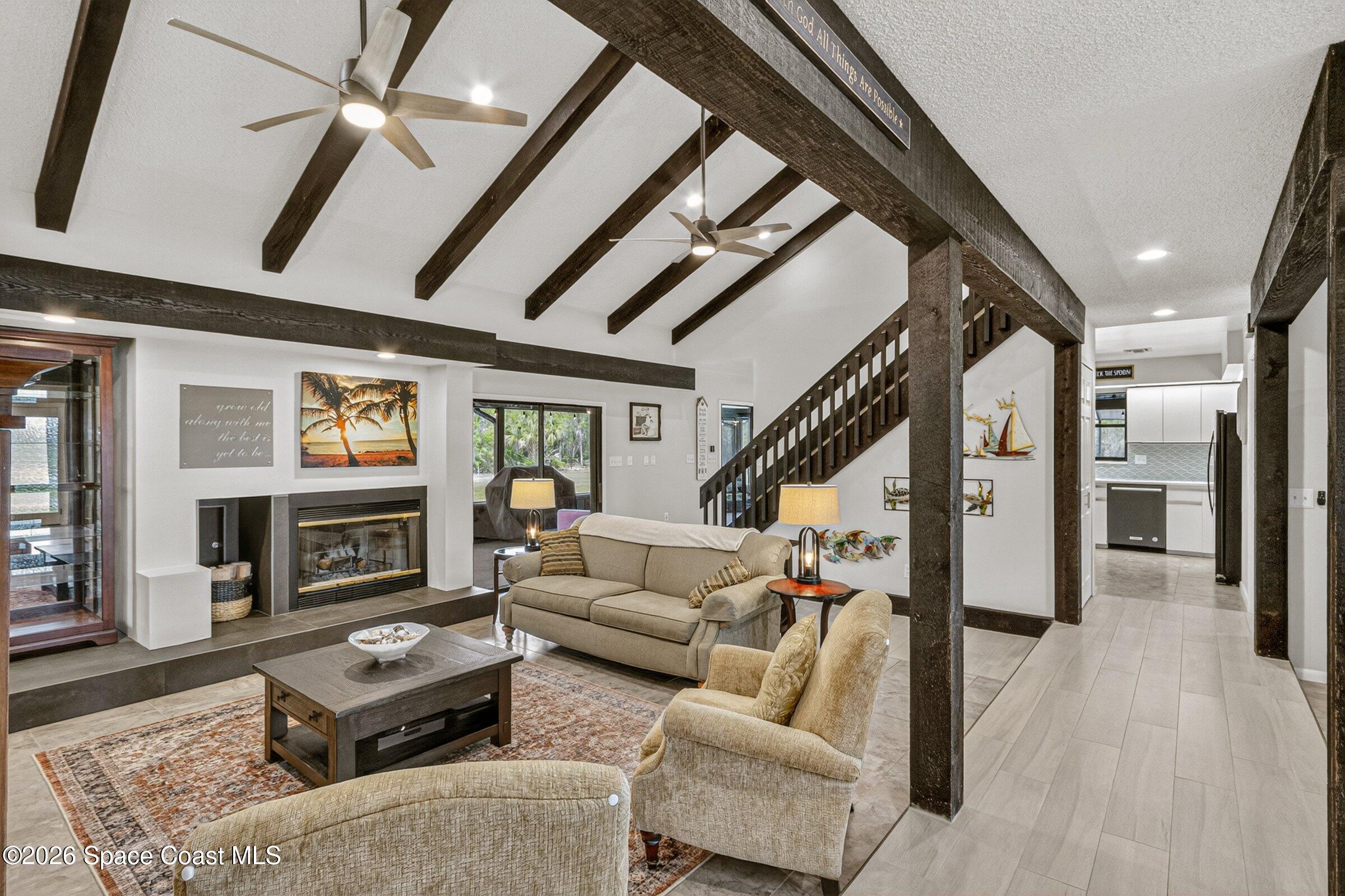Starlight Acres is your private retreat on Floridas Space Coast. Set on 9.68 acres beneath majestic oaks, this 4BR/4BA home offers 3,576 sf under air and a lifestyle that feels worlds away, yet close to Kennedy Space Center and major employers. A winding drive leads to peaceful pond views and a home that offers space to gather and room to spread out. A wrap-around screened porch leads to the pool. Inside, youll find character-filled living spaces with wood beams in the living & dining areas. With 2 primary suites-one upstairs and one downstairs-this layout offers flexibility. A spacious 1st-floor bonus room adds flexibility for guests, hobbies, or a home office. Major updates include a newer roof (2023), dual HVAC systems (2019 & 2022), whole-house generator, storm protection, and a powered outbuilding with 12 ceiling. Whether youre seeking privacy, space, or a front-row seat for rocket launches, this property delivers! Launch your next chapter and schedule your showing TODAY!
