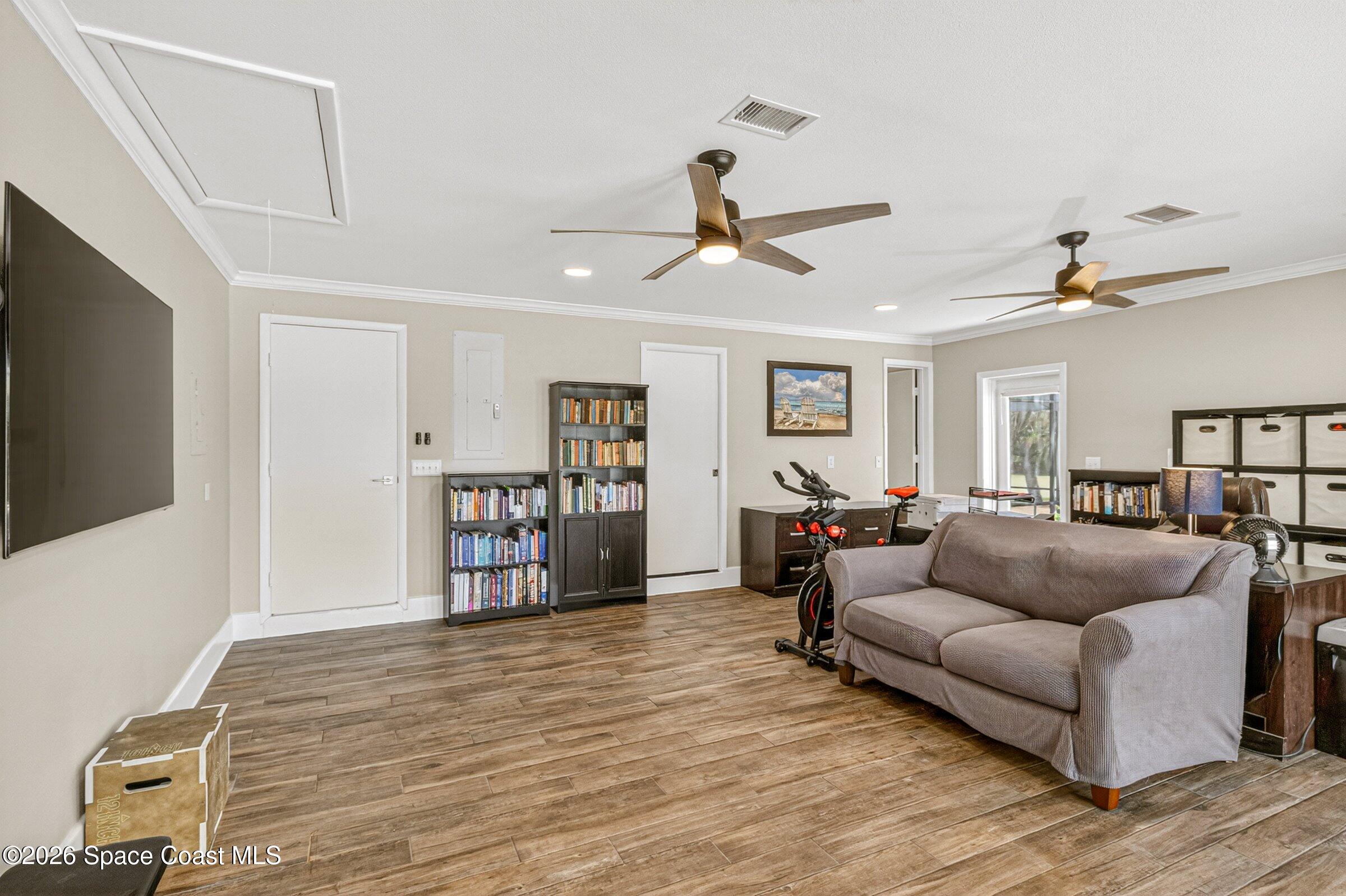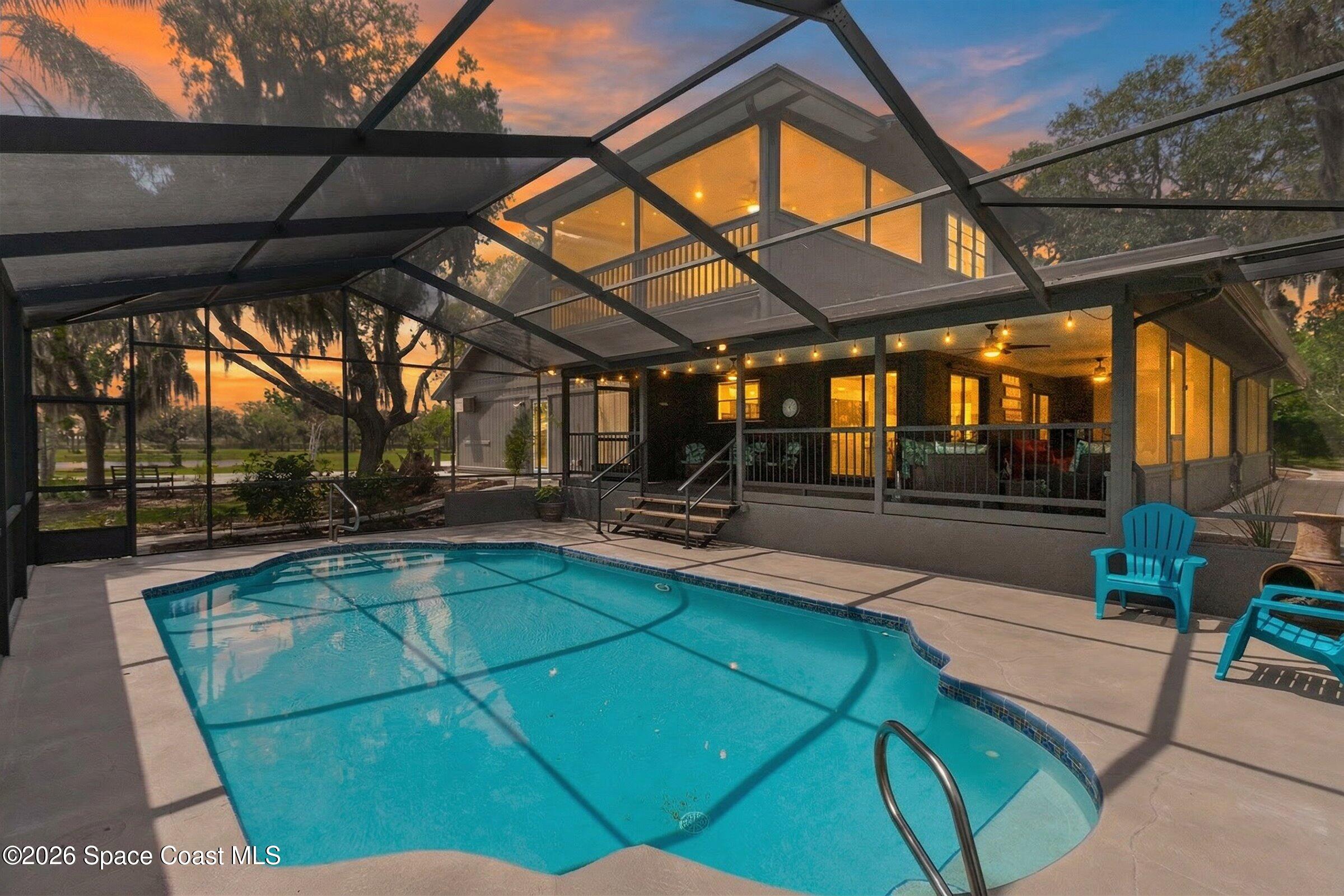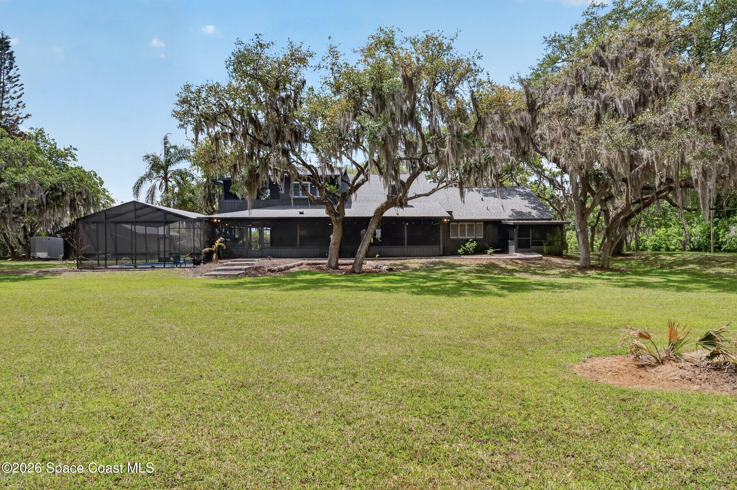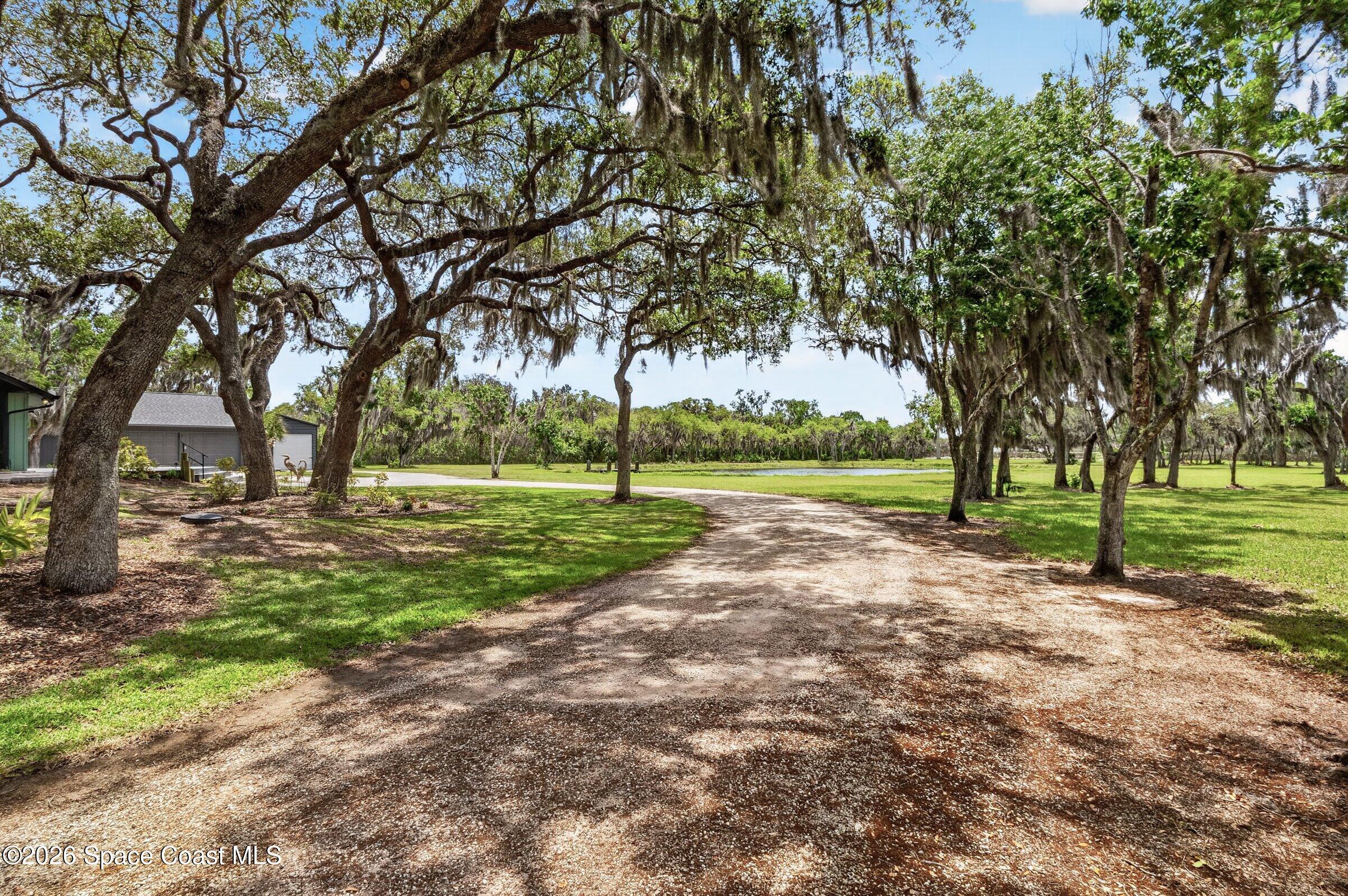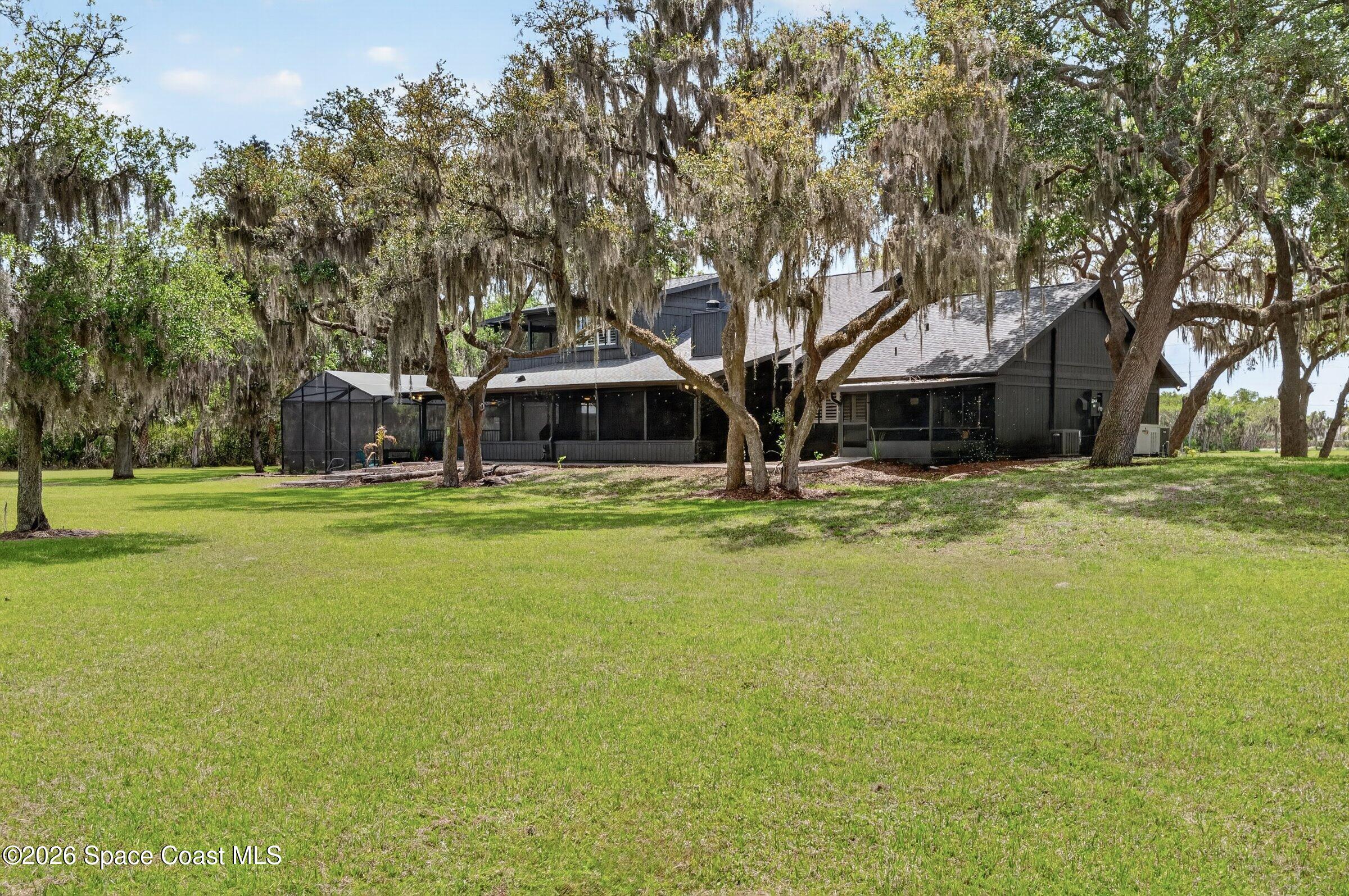 Starlight Acres is your private retreat on Floridas Space Coast. Set on 9.68 acres beneath majestic oaks, this 4BR/4BA home offers 3,576 sf under air and a lifestyle that feels worlds away, yet close to Kennedy Space Center and major employers. A winding drive leads to peaceful pond views and a home that offers space to gather and room to spread out. A wrap-around screened porch leads to the pool.