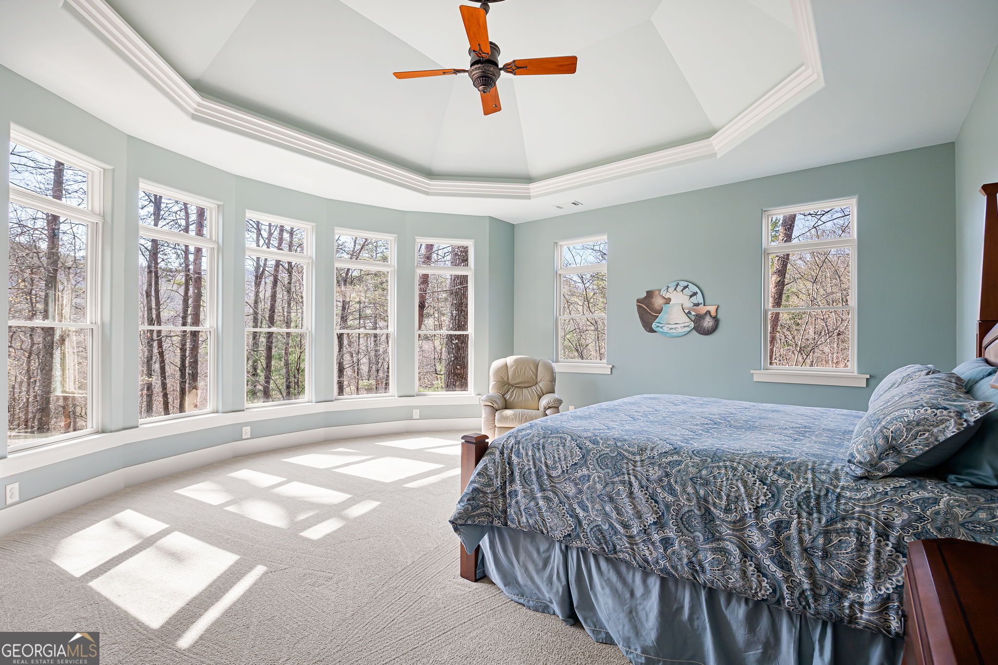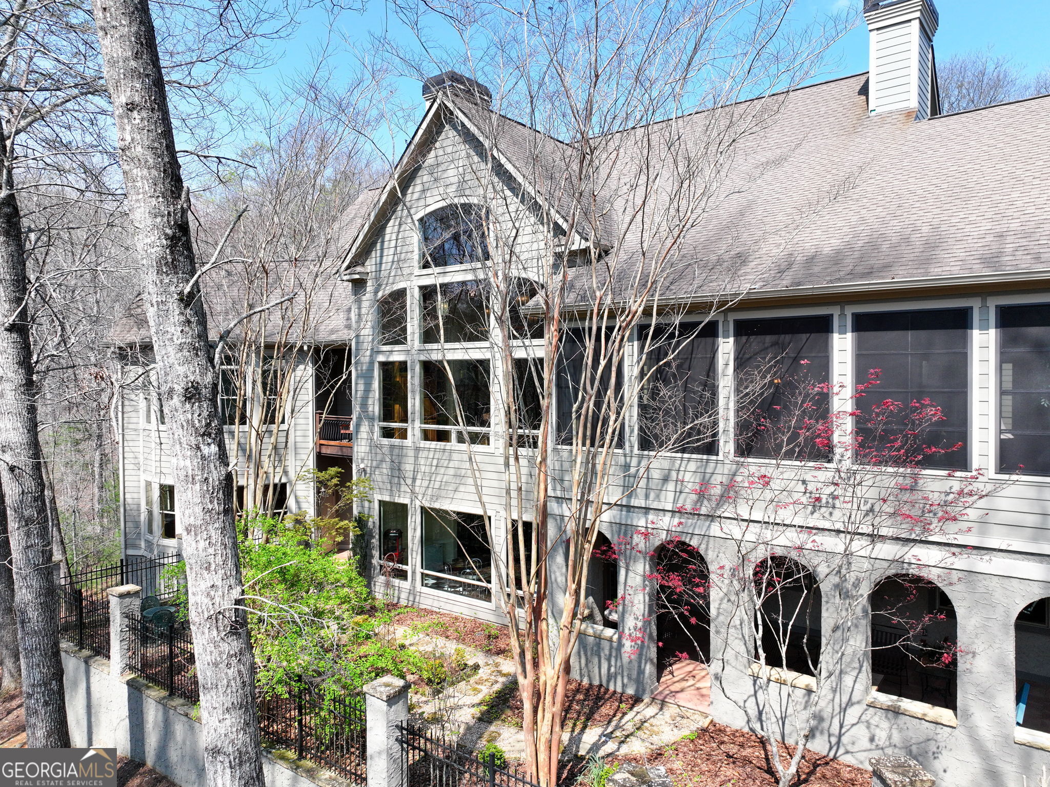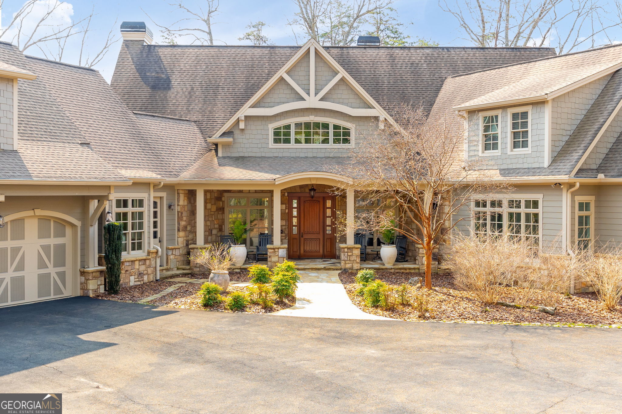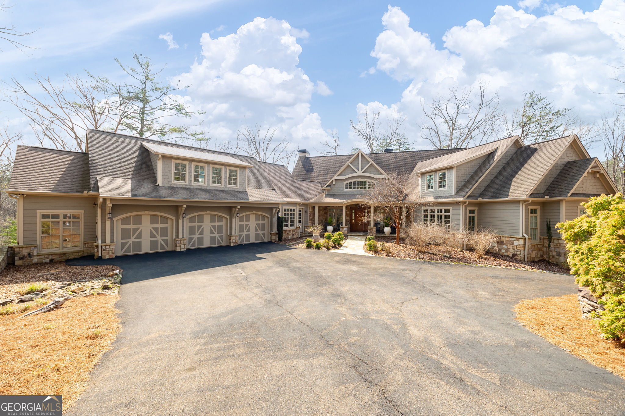 This Unique Lake Home w/amazing pool and DEEP WATER Party Top Dock is the one you have been waiting for! Secluded Pool, Super deep water Party Top Dock, 4 Season Long Water Views (over 1 mile) from INSIDE the home, Gentle Slope, Level Driveway, easy ten minute boat ride to all the popular mid/south lake dockable restaurants, extra level off street parking for guests - this one has it ALL! Million Dollar View plus Quarter Million Dollar Poolside Paradise make this package an amazing value! Only a 3 BR (even though you see 6 beds in pics) but with many flex space/multi purpose rooms. The spectacular private outdoor oasis features a Blue Haven Pool w/ Solar Heated Hot Tub nestled inside a private manmade canyon with a waterfall & fish pond built into the canyon wall. Half of pool is under roof offering a cool place to relax by the water on a hot summer day with both covered & uncovered seating areas. The tiki bar with sink, and electric completes the enchantment. Brand new motorized retractable pool cover. Outdoor shower by the pool. Youll quickly become everyones favorite host, throwing the best spring, summer and autumn pool parties in the privacy of your own retreat along with unforgettable adventures on the lake. The wood sun deck overlooking the lake has room for a large grill for barbequing with view of the water. Excellent four seasons views from huge windows in many rooms including the Primary Bedroom Suite. Never run out of water under the covered dock with trex style flooring on the party top that has glass pickets on the railing to maximize your panoramic long water views. DOUBLE LOT. Huge Kitchen has tons of granite counter space & offers a full view of the pool area. Vaulted Family Room off kitchen has a cozy fireplace. Bedroom & full bath on the main level with stepless entry. Primary Bedroom and huge in-suite bath on second story with a laundry room conveniently adjacent to the Primary Bedroom. One gigantic bedroom that sleeps 6 plus a third full bath on the terrace level. An office/hobby room with a bed and closet (but no window) is also on the terrace level along with a huge recreation room with enormous wet bar & room for pool table, ping pong, foosball, darts plenty of furniture for Parties. Walk out of the terrace level to a short easy walk to the dock. There is a hot tub by the pool and a second hot tub on the lakeside screened porch On the garage level is a multi purpose hobby room, workshop, play room, workout room, music room or whatever you choose to use it for. Up stairs from the second floor you will find a newly finished gigantic bonus room that is over 30 long which would make a great playroom for the grandchildren or other kids who come to visit or any other purpose that you desire. There is a walk in attic off this fourth level that could be utilized as additional storage space. Media room with projector, retractable huge screen & acoustics has a planetarium ceiling that becomes visible with the flip of a switch. Home sits near the end of a peninsula so there is almost no traffic on the paved road serving the home. There is plenty of parking for all your guest, with a 5 car parking area (both sides of the shed) next to the home, plus the double driveway, plus almost unlimited parking on the adjoining second lot (included in the sale) to include parking for your boat trailers with a trail through the woods to the house. See pictures for a better idea of the second lot with frontage on Collins Point Road for boat trailer parking. 3 separate HVAC Systems. Disclosure: Seller holds a Georgia Real Estate Brokers License Disclaimer: Some photos may include virtually added decor or temporary staging to show alternate furniture possibilities but all photos accurately represent the real estate offered for sale. Square Footage on tax records does not reflect the finished upper level that added over 300 sq ft. Sq ft is /