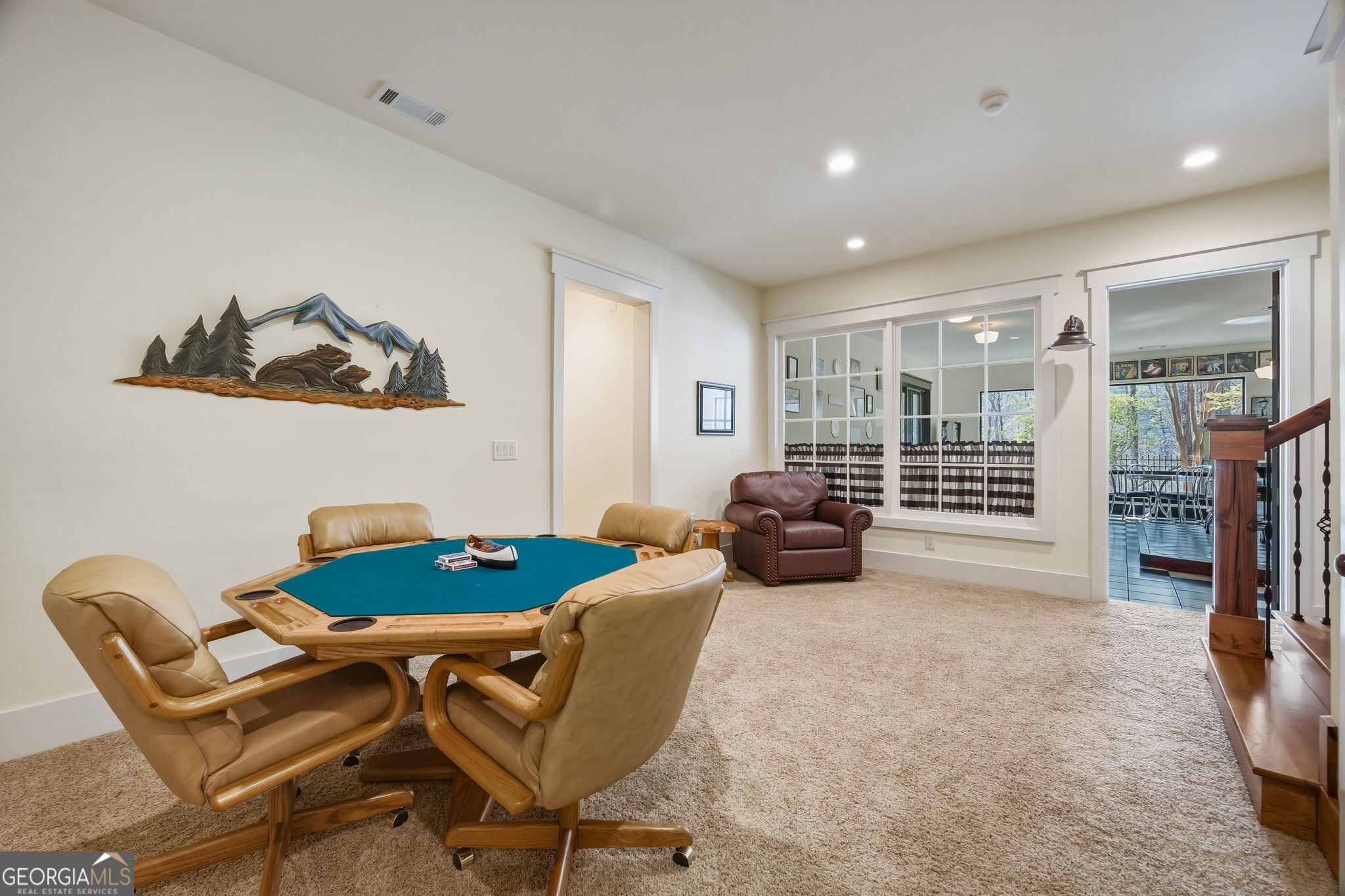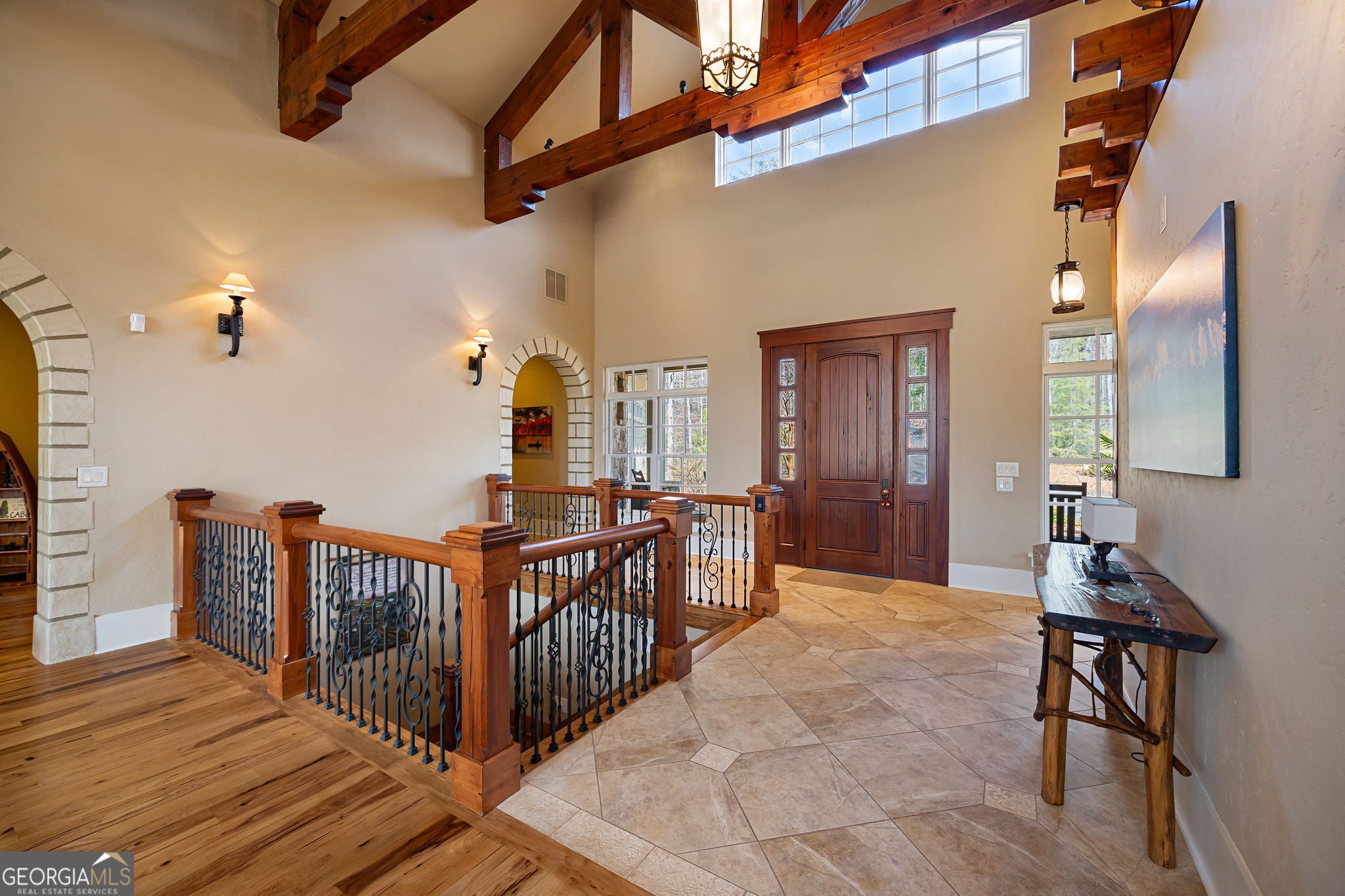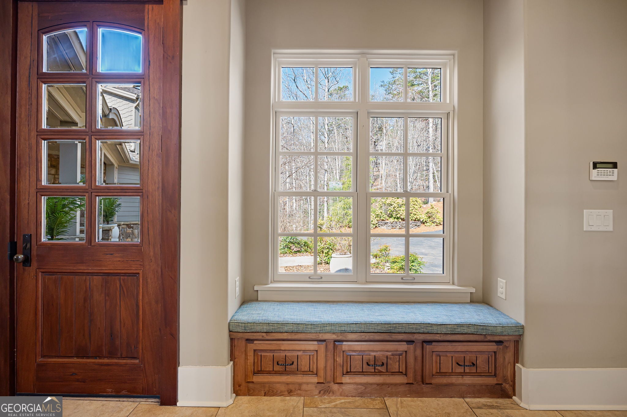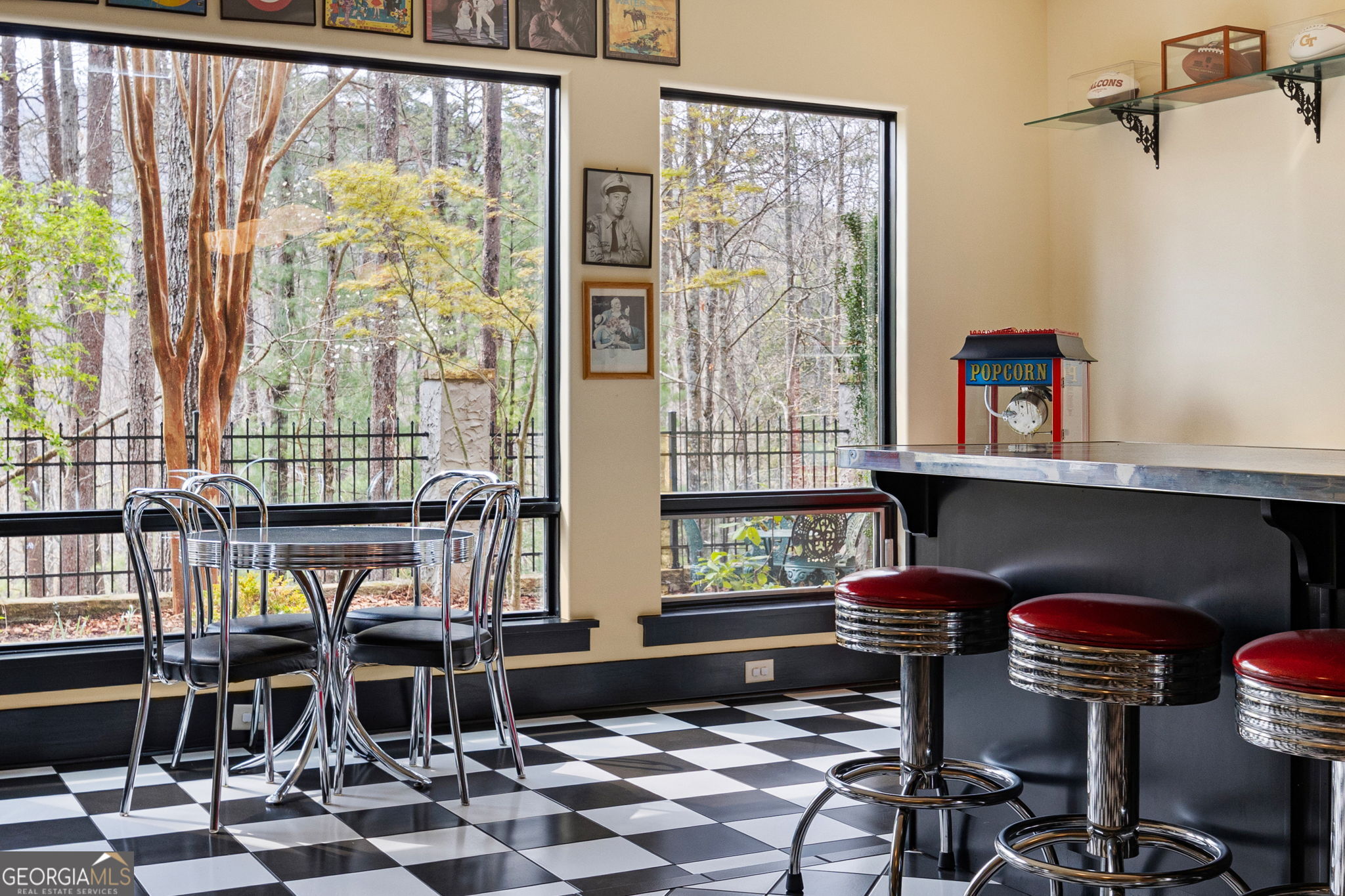 This Unique Lake Home w/amazing pool and DEEP WATER Party Top Dock is the one you have been waiting for! Secluded Pool, Super deep water Party Top Dock, 4 Season Long Water Views (over 1 mile) from INSIDE the home, Gentle Slope, Level Driveway, easy ten minute boat ride to all the popular mid/south lake dockable restaurants, extra level off street parking for guests - this one has it ALL! Million Dollar View plus Quarter Million Dollar Poolside Paradise make this package an amazing value! Only a 3 BR (even though you see 6 beds in pics) but with many flex space/multi purpose rooms. The spectacular private outdoor oasis features a Blue Haven Pool w/ Solar Heated Hot Tub nestled inside a private manmade canyon with a waterfall & fish pond built into the canyon wall. Half of pool is under roof offering a cool place to relax by the water on a hot summer day with both covered & uncovered seating areas. The tiki bar with sink, and electric completes the enchantment. Brand new motorized retractable pool cover. Outdoor shower by the pool. Youll quickly become everyones favorite host, throwing the best spring, summer and autumn pool parties in the privacy of your own retreat along with unforgettable adventures on the lake. The wood sun deck overlooking the lake has room for a large grill for barbequing with view of the water. Excellent four seasons views from huge windows in many rooms including the Primary Bedroom Suite. Never run out of water under the covered dock with trex style flooring on the party top that has glass pickets on the railing to maximize your panoramic long water views. DOUBLE LOT. Huge Kitchen has tons of granite counter space & offers a full view of the pool area. Vaulted Family Room off kitchen has a cozy fireplace. Bedroom & full bath on the main level with stepless entry. Primary Bedroom and huge in-suite bath on second story with a laundry room conveniently adjacent to the Primary Bedroom. One gigantic bedroom that sleeps 6 plus a third full bath on the terrace level. An office/hobby room with a bed and closet (but no window) is also on the terrace level along with a huge recreation room with enormous wet bar & room for pool table, ping pong, foosball, darts plenty of furniture for Parties. Walk out of the terrace level to a short easy walk to the dock. There is a hot tub by the pool and a second hot tub on the lakeside screened porch On the garage level is a multi purpose hobby room, workshop, play room, workout room, music room or whatever you choose to use it for. Up stairs from the second floor you will find a newly finished gigantic bonus room that is over 30 long which would make a great playroom for the grandchildren or other kids who come to visit or any other purpose that you desire. There is a walk in attic off this fourth level that could be utilized as additional storage space. Media room with projector, retractable huge screen & acoustics has a planetarium ceiling that becomes visible with the flip of a switch. Home sits near the end of a peninsula so there is almost no traffic on the paved road serving the home. There is plenty of parking for all your guest, with a 5 car parking area (both sides of the shed) next to the home, plus the double driveway, plus almost unlimited parking on the adjoining second lot (included in the sale) to include parking for your boat trailers with a trail through the woods to the house. See pictures for a better idea of the second lot with frontage on Collins Point Road for boat trailer parking. 3 separate HVAC Systems. Disclosure: Seller holds a Georgia Real Estate Brokers License Disclaimer: Some photos may include virtually added decor or temporary staging to show alternate furniture possibilities but all photos accurately represent the real estate offered for sale. Square Footage on tax records does not reflect the finished upper level that added over 300 sq ft. Sq ft is /