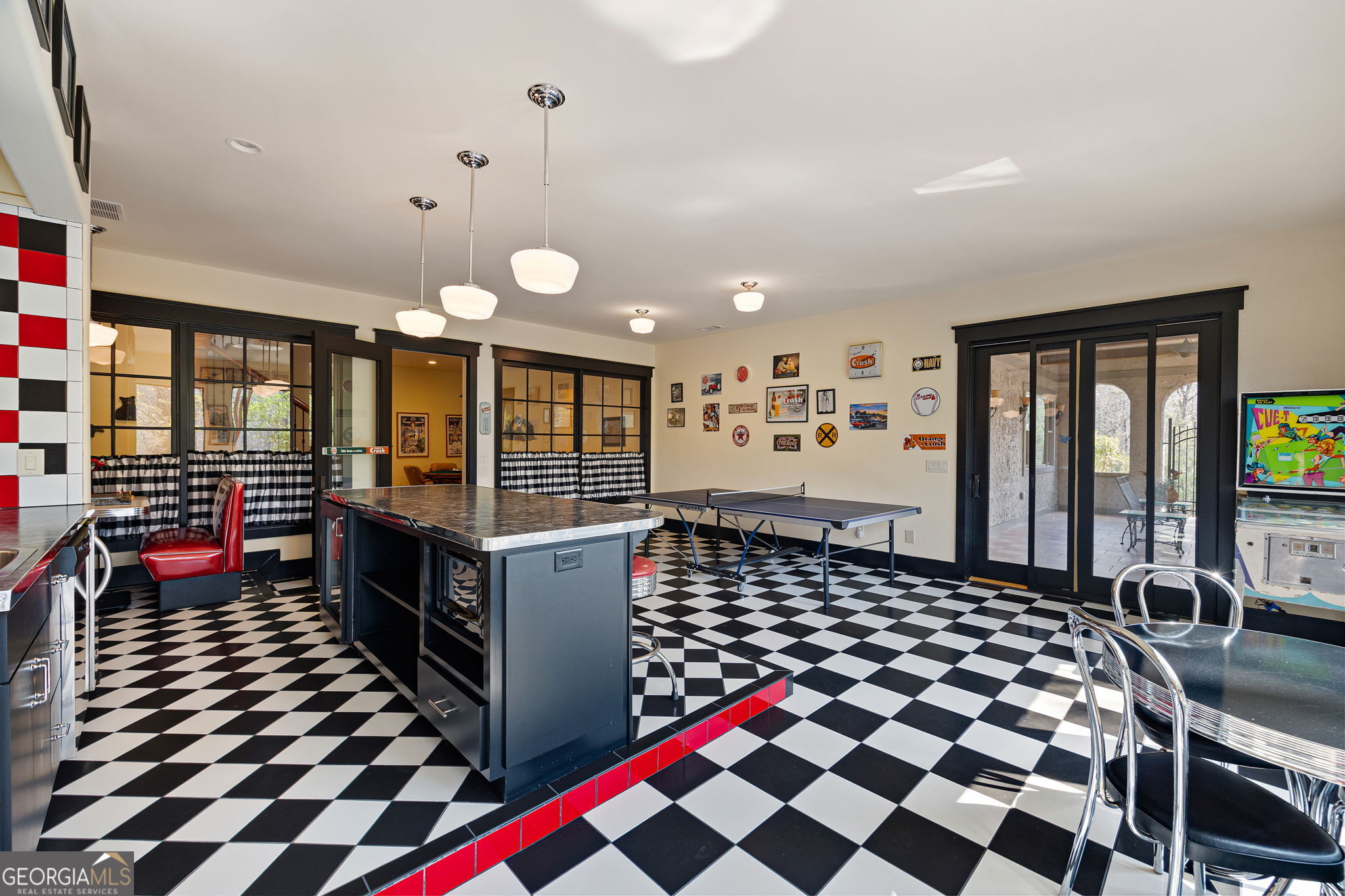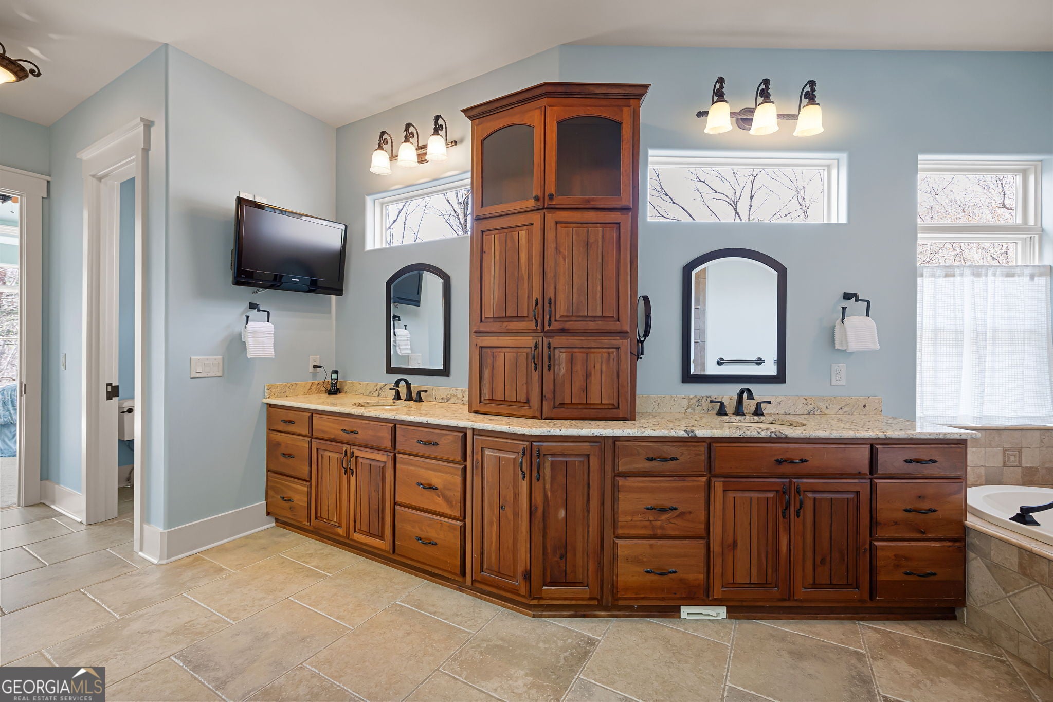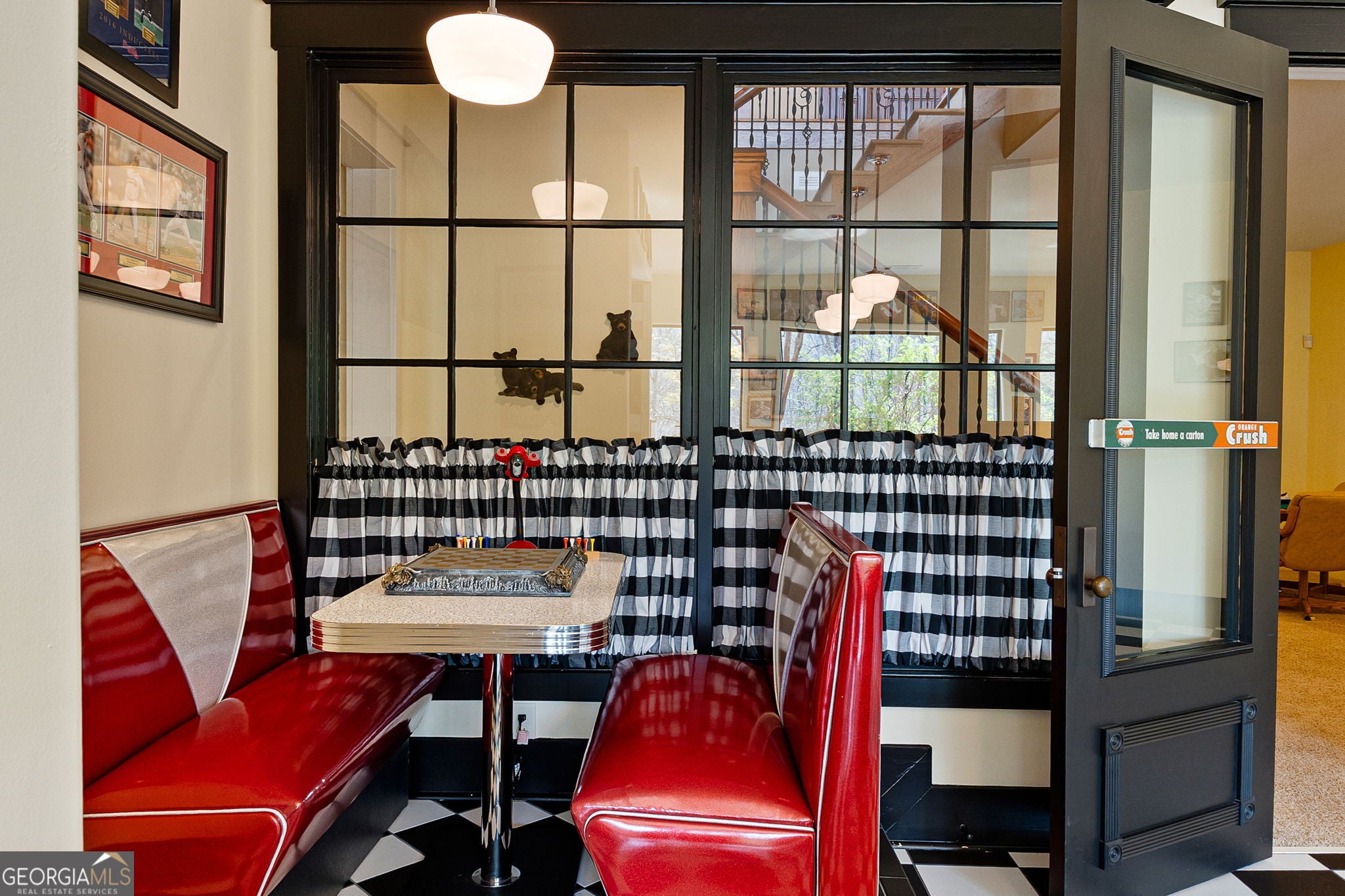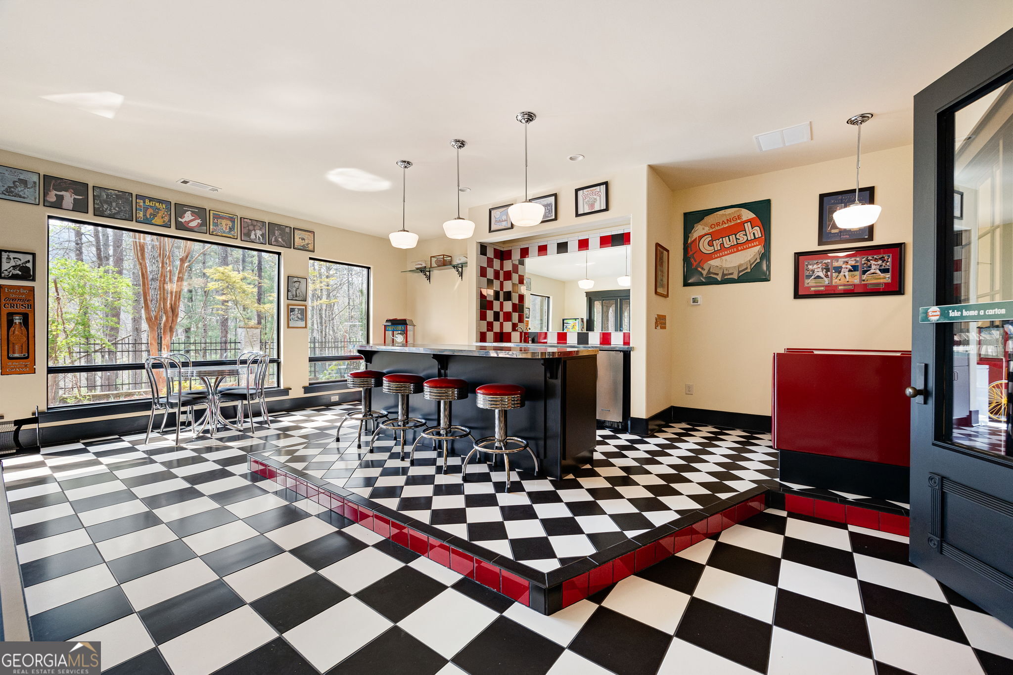 This Unique Lake Home w/amazing pool and DEEP WATER Party Top Dock is the one you have been waiting for! Secluded Pool, Super deep water Party Top Dock, 4 Season Long Water Views (over 1 mile) from INSIDE the home, Gentle Slope, Level Driveway, easy ten minute boat ride to all the popular mid/south lake dockable restaurants, extra level off street parking for guests - this one has it ALL! Million Dollar View plus Quarter Million Dollar Poolside Paradise make this package an amazing value! Only a 3 BR (even though you see 6 beds in pics) but with many flex space/multi purpose rooms. The spectacular private outdoor oasis features a Blue Haven Pool w/ Solar Heated Hot Tub nestled inside a private manmade canyon with a waterfall & fish pond built into the canyon wall. Half of pool is under roof offering a cool place to relax by the water on a hot summer day with both covered & uncovered seating areas. The tiki bar with sink, and electric completes the enchantment. Brand new motorized retractable pool cover. Outdoor shower by the pool. Youll quickly become everyones favorite host, throwing the best spring, summer and autumn pool parties in the privacy of your own retreat along with unforgettable adventures on the lake. The wood sun deck overlooking the lake has room for a large grill for barbequing with view of the water. Excellent four seasons views from huge windows in many rooms including the Primary Bedroom Suite. Never run out of water under the covered dock with trex style flooring on the party top that has glass pickets on the railing to maximize your panoramic long water views. DOUBLE LOT. Huge Kitchen has tons of granite counter space & offers a full view of the pool area. Vaulted Family Room off kitchen has a cozy fireplace. Bedroom & full bath on the main level with stepless entry. Primary Bedroom and huge in-suite bath on second story with a laundry room conveniently adjacent to the Primary Bedroom. One gigantic bedroom that sleeps 6 plus a third full bath on the terrace level. An office/hobby room with a bed and closet (but no window) is also on the terrace level along with a huge recreation room with enormous wet bar & room for pool table, ping pong, foosball, darts plenty of furniture for Parties. Walk out of the terrace level to a short easy walk to the dock. There is a hot tub by the pool and a second hot tub on the lakeside screened porch On the garage level is a multi purpose hobby room, workshop, play room, workout room, music room or whatever you choose to use it for. Up stairs from the second floor you will find a newly finished gigantic bonus room that is over 30 long which would make a great playroom for the grandchildren or other kids who come to visit or any other purpose that you desire. There is a walk in attic off this fourth level that could be utilized as additional storage space. Media room with projector, retractable huge screen & acoustics has a planetarium ceiling that becomes visible with the flip of a switch. Home sits near the end of a peninsula so there is almost no traffic on the paved road serving the home. There is plenty of parking for all your guest, with a 5 car parking area (both sides of the shed) next to the home, plus the double driveway, plus almost unlimited parking on the adjoining second lot (included in the sale) to include parking for your boat trailers with a trail through the woods to the house. See pictures for a better idea of the second lot with frontage on Collins Point Road for boat trailer parking. 3 separate HVAC Systems. Disclosure: Seller holds a Georgia Real Estate Brokers License Disclaimer: Some photos may include virtually added decor or temporary staging to show alternate furniture possibilities but all photos accurately represent the real estate offered for sale. Square Footage on tax records does not reflect the finished upper level that added over 300 sq ft. Sq ft is /