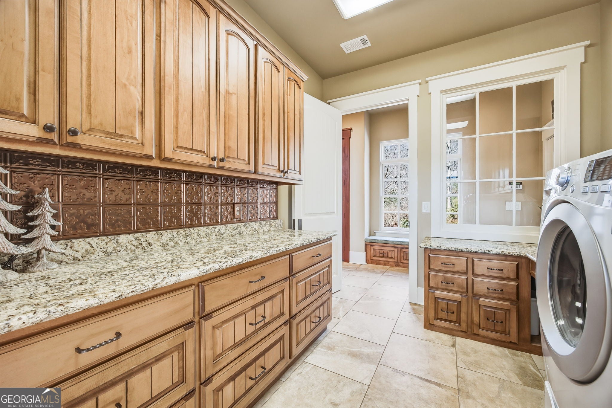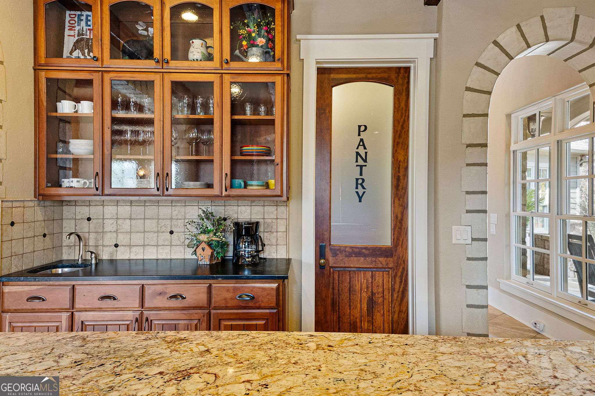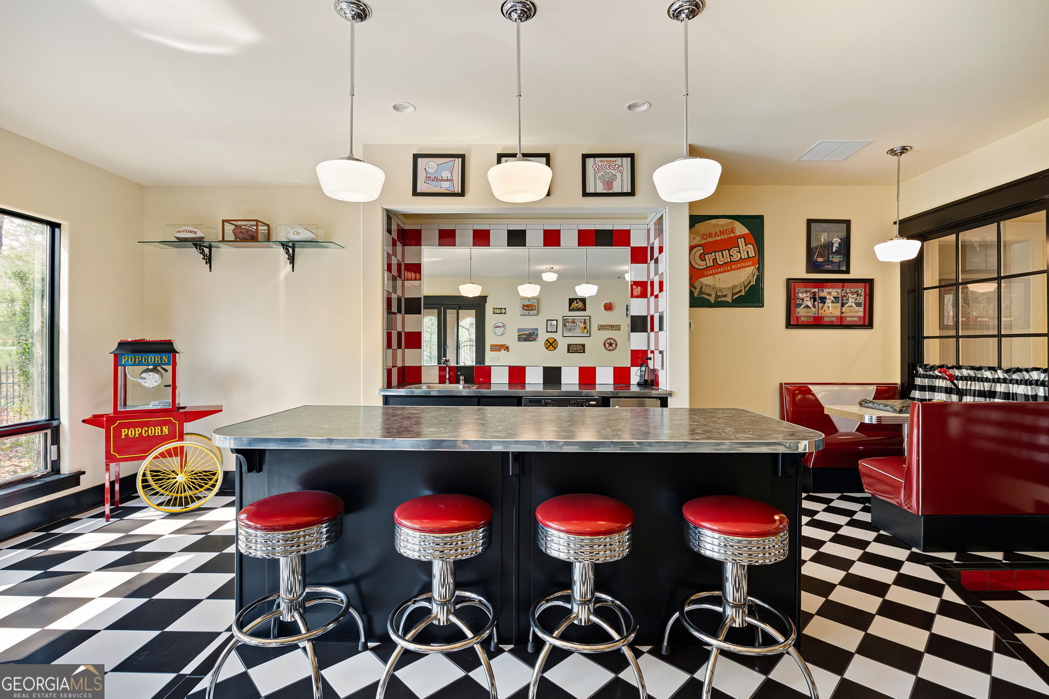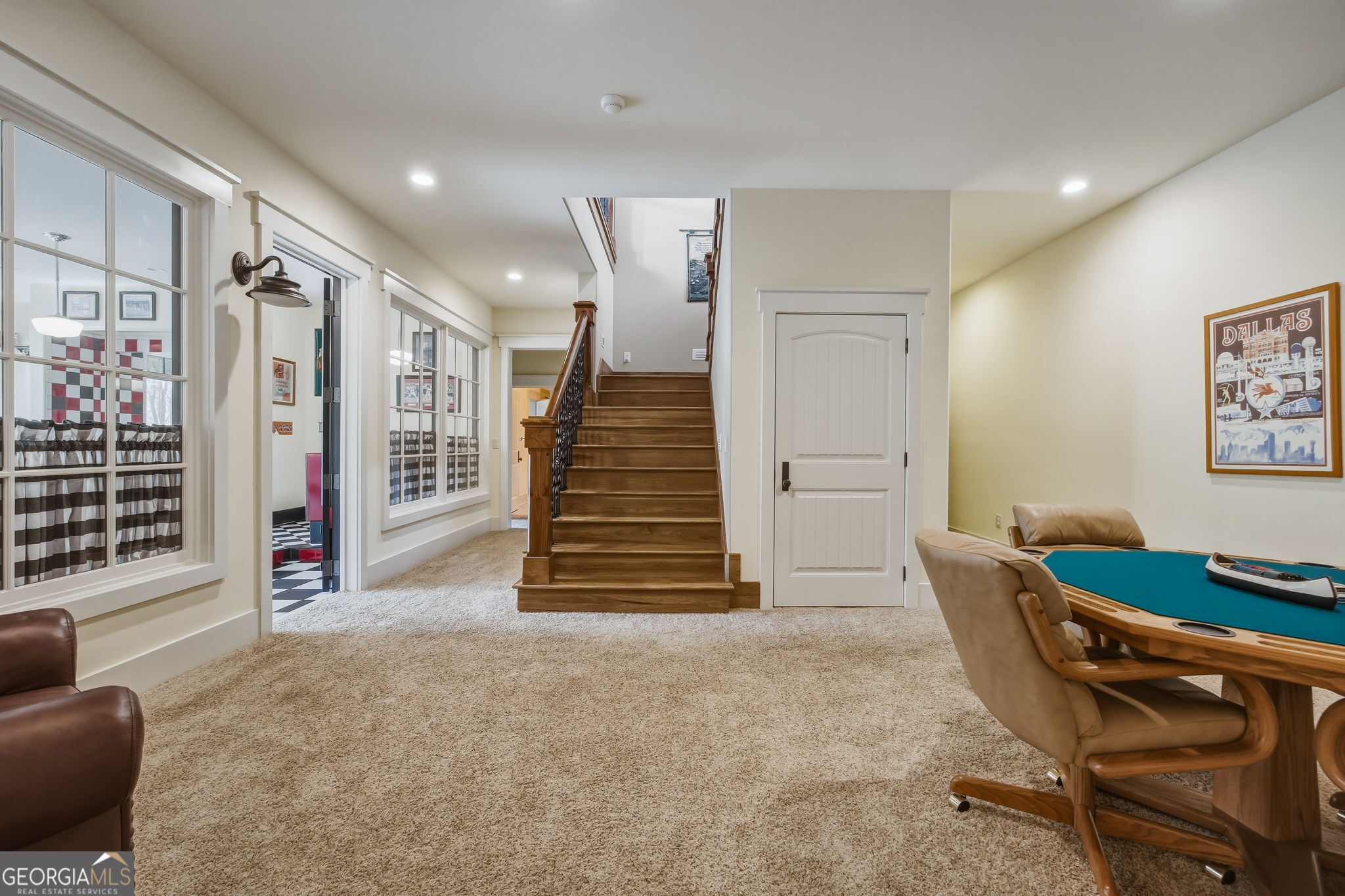 This Unique Lake Home w/amazing pool and DEEP WATER Party Top Dock is the one you have been waiting for! Secluded Pool, Super deep water Party Top Dock, 4 Season Long Water Views (over 1 mile) from INSIDE the home, Gentle Slope, Level Driveway, easy ten minute boat ride to all the popular mid/south lake dockable restaurants, extra level off street parking for guests - this one has it ALL! Million Dollar View plus Quarter Million Dollar Poolside Paradise make this package an amazing value! Only a 3 BR (even though you see 6 beds in pics) but with many flex space/multi purpose rooms. The spectacular private outdoor oasis features a Blue Haven Pool w/ Solar Heated Hot Tub nestled inside a private manmade canyon with a waterfall & fish pond built into the canyon wall. Half of pool is under roof offering a cool place to relax by the water on a hot summer day with both covered & uncovered seating areas. The tiki bar with sink, and electric completes the enchantment. Brand new motorized retractable pool cover. Outdoor shower by the pool. Youll quickly become everyones favorite host, throwing the best spring, summer and autumn pool parties in the privacy of your own retreat along with unforgettable adventures on the lake. The wood sun deck overlooking the lake has room for a large grill for barbequing with view of the water. Excellent four seasons views from huge windows in many rooms including the Primary Bedroom Suite. Never run out of water under the covered dock with trex style flooring on the party top that has glass pickets on the railing to maximize your panoramic long water views. DOUBLE LOT. Huge Kitchen has tons of granite counter space & offers a full view of the pool area. Vaulted Family Room off kitchen has a cozy fireplace. Bedroom & full bath on the main level with stepless entry. Primary Bedroom and huge in-suite bath on second story with a laundry room conveniently adjacent to the Primary Bedroom. One gigantic bedroom that sleeps 6 plus a third full bath on the terrace level. An office/hobby room with a bed and closet (but no window) is also on the terrace level along with a huge recreation room with enormous wet bar & room for pool table, ping pong, foosball, darts plenty of furniture for Parties. Walk out of the terrace level to a short easy walk to the dock. There is a hot tub by the pool and a second hot tub on the lakeside screened porch On the garage level is a multi purpose hobby room, workshop, play room, workout room, music room or whatever you choose to use it for. Up stairs from the second floor you will find a newly finished gigantic bonus room that is over 30 long which would make a great playroom for the grandchildren or other kids who come to visit or any other purpose that you desire. There is a walk in attic off this fourth level that could be utilized as additional storage space. Media room with projector, retractable huge screen & acoustics has a planetarium ceiling that becomes visible with the flip of a switch. Home sits near the end of a peninsula so there is almost no traffic on the paved road serving the home. There is plenty of parking for all your guest, with a 5 car parking area (both sides of the shed) next to the home, plus the double driveway, plus almost unlimited parking on the adjoining second lot (included in the sale) to include parking for your boat trailers with a trail through the woods to the house. See pictures for a better idea of the second lot with frontage on Collins Point Road for boat trailer parking. 3 separate HVAC Systems. Disclosure: Seller holds a Georgia Real Estate Brokers License Disclaimer: Some photos may include virtually added decor or temporary staging to show alternate furniture possibilities but all photos accurately represent the real estate offered for sale. Square Footage on tax records does not reflect the finished upper level that added over 300 sq ft. Sq ft is /