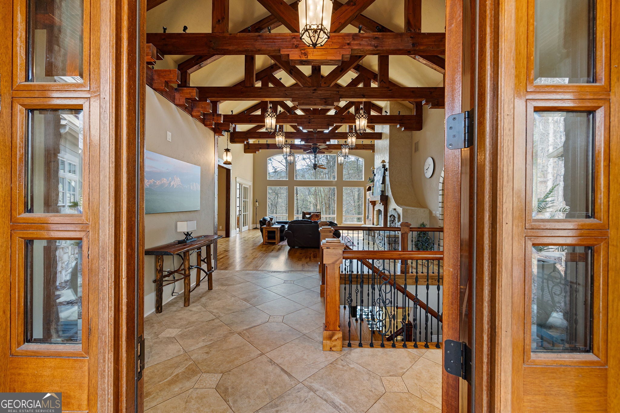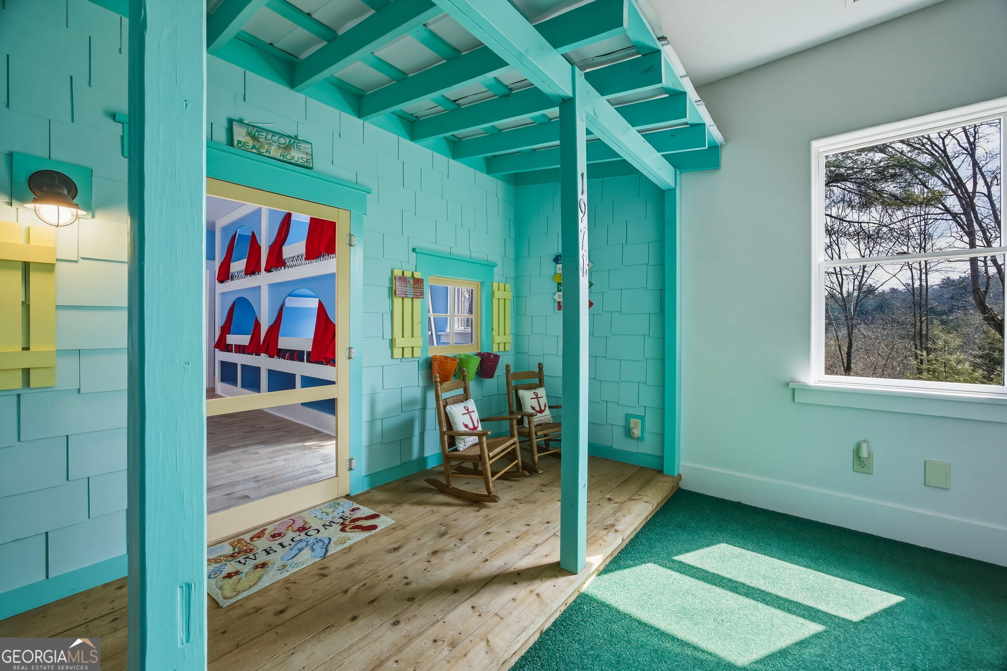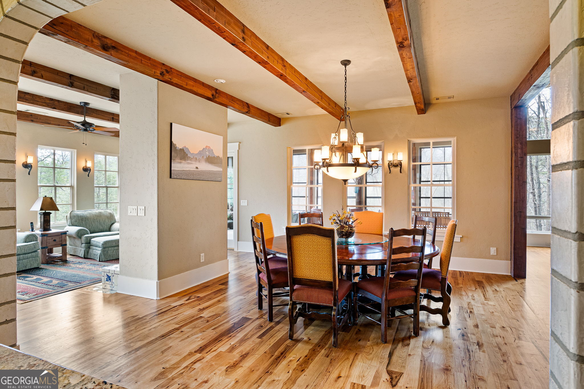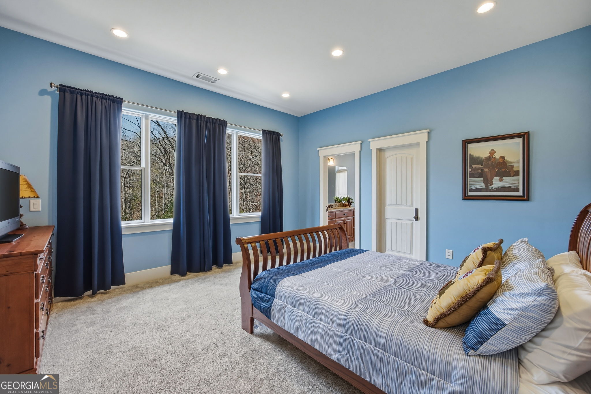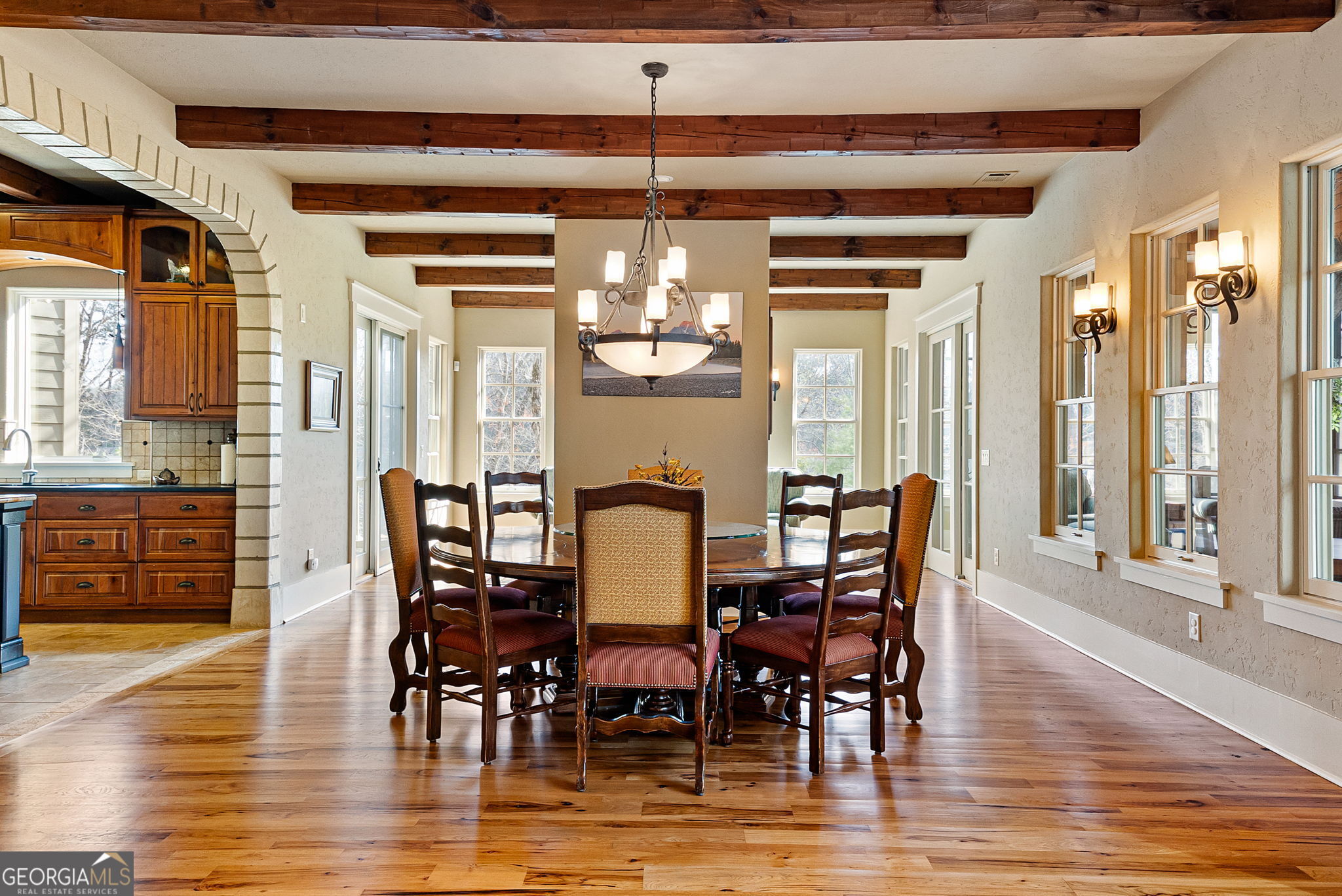 Nestled within the prestigious Wildcat section of Big Canoe, this extraordinary custom estate offers an unparalleled mountain living experience for the most discerning buyer. A sweeping curved driveway leads you to this architectural masterpiece, situated on approx 2.9 acres --where no detail has been overlooked. Step inside to soaring cathedral ceilings adorned with magnificent Hand hewn Custom Designed solid wood beams, custom crafted and planed on-site a testament to the exceptional quality found throughout this approx 9,300 square foot residence. Six bedrooms and seven full baths are spread across three levels, including a luxurious main-level master suite with sitting room, double vanity, whirlpool tub, and separate shower. Hand-finished hickory hardwood floors, rustic cherry cabinetry, and three fireplaces create an atmosphere of warmth and refined elegance. The chefs kitchen opens to a grand great room and cozy keeping room, flowing seamlessly to a screened porch and sunroom with fireplace all framed by breathtaking mountain views. Enter the Custom Designed Whimsical Bunkroom suite and be amazed! Four built in bunkbeds (each with lighting), large game area, two full baths and storage! The terrace level offers two additional bedrooms, three baths, a fitness room, and bonus spaces perfect for entertaining. A three-car garage and lovingly curated master gardens, designed by a Master Gardener, complete this remarkable property. Just some of the exceptional features: Pella Windows and Doors, Soft Corner Detailing throughout, designer selected finishes...the list is extensive!! Residents of Big Canoe enjoy world-class amenities including golf, lake, marina, pool, tennis, fitness center, clubhouse, and fine dining all within a secure, gated mountain retreat. A rare opportunity to own one of Big Canoes finest estates.