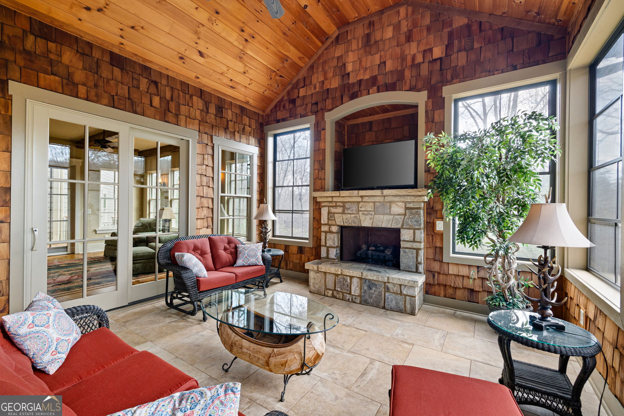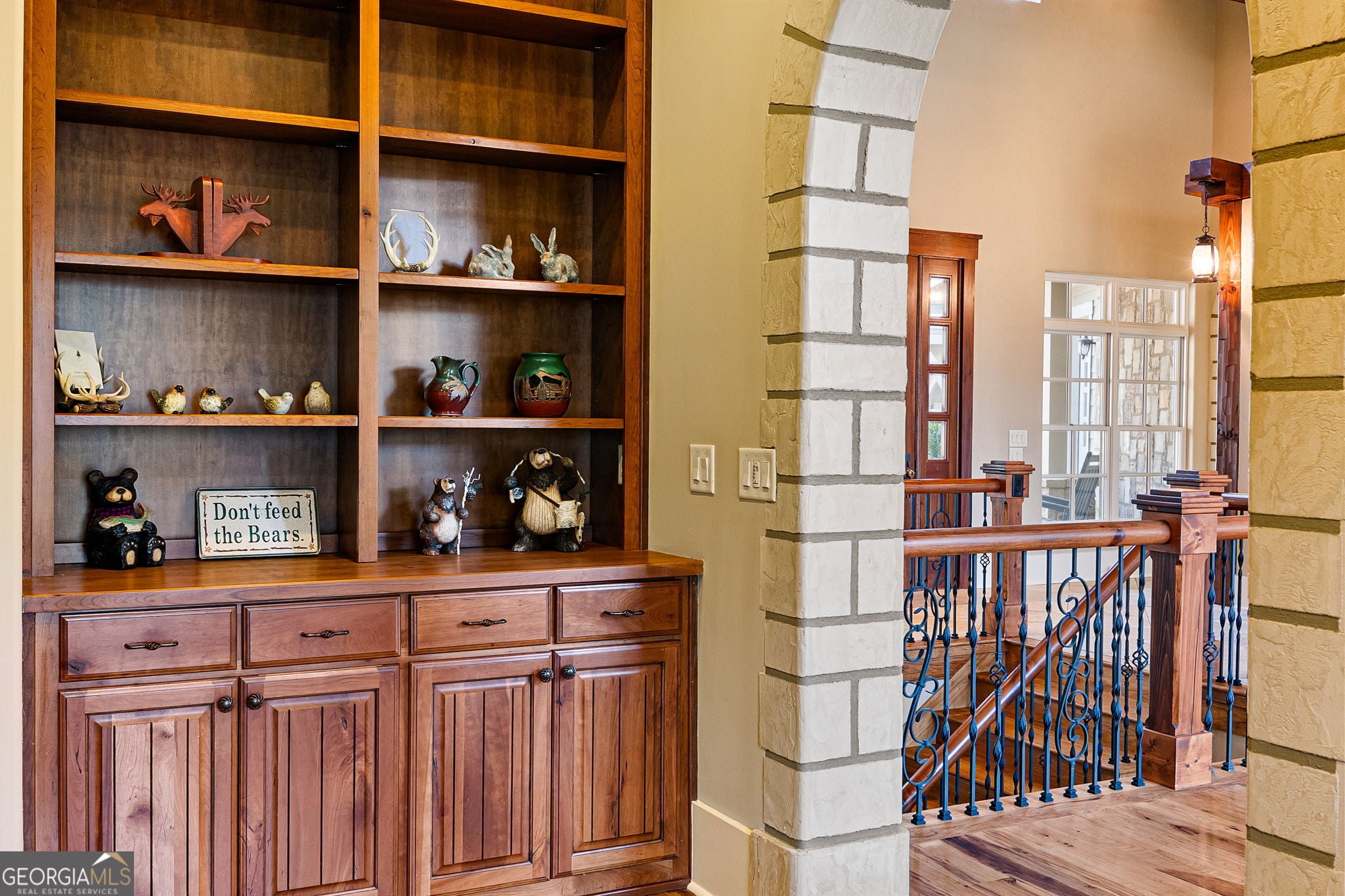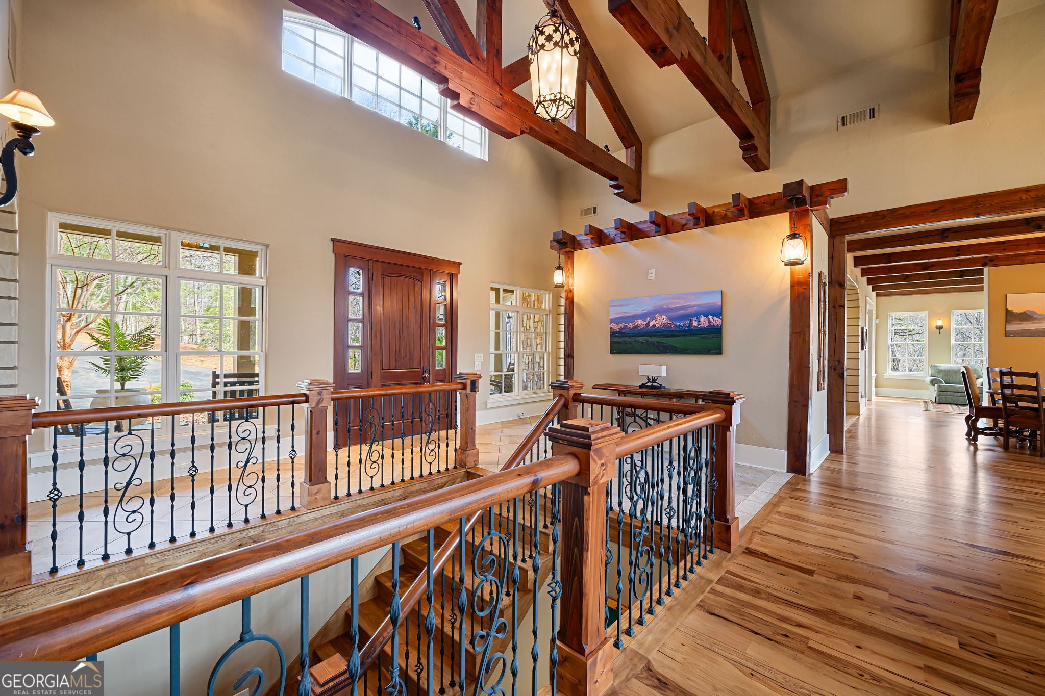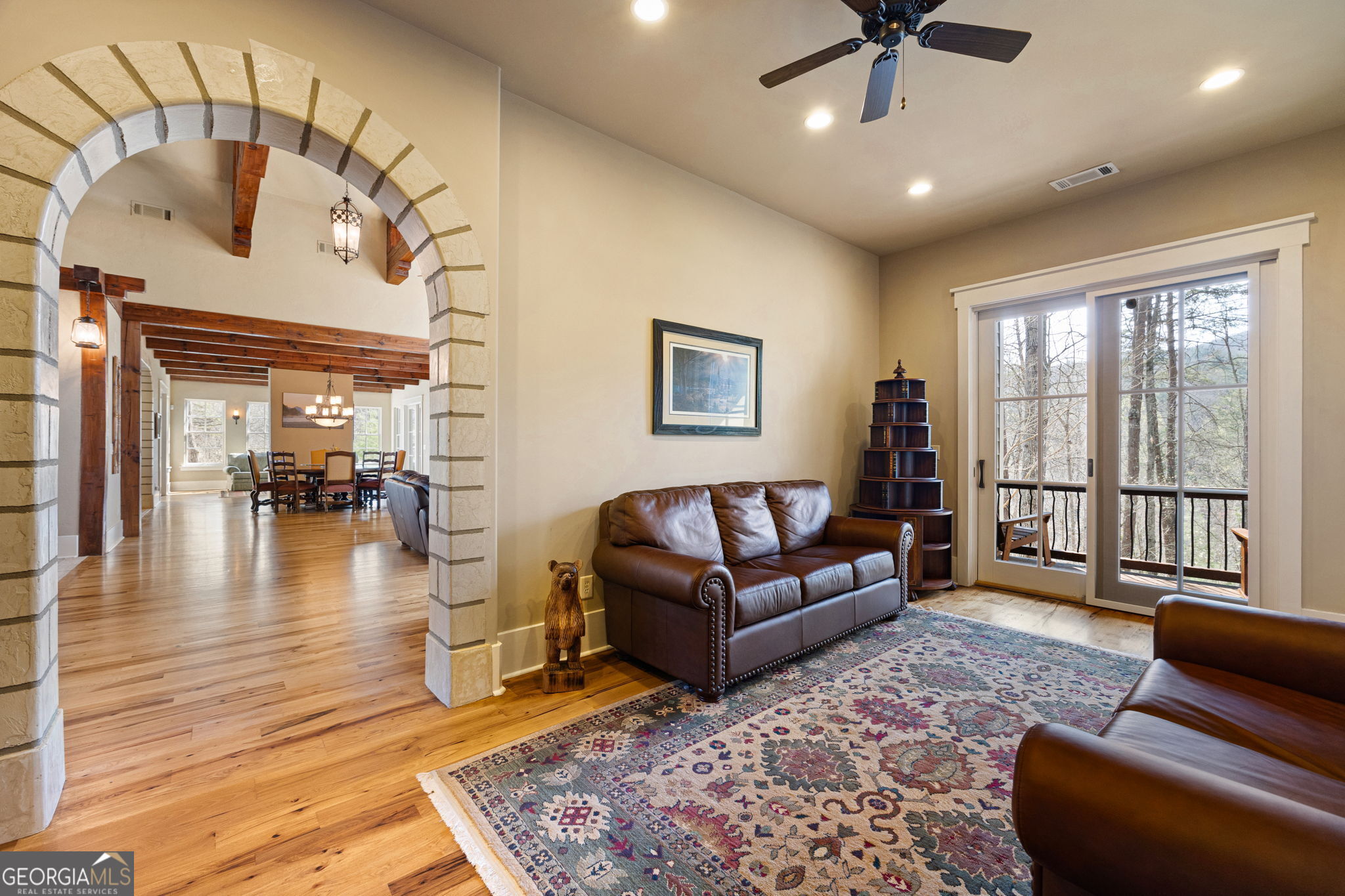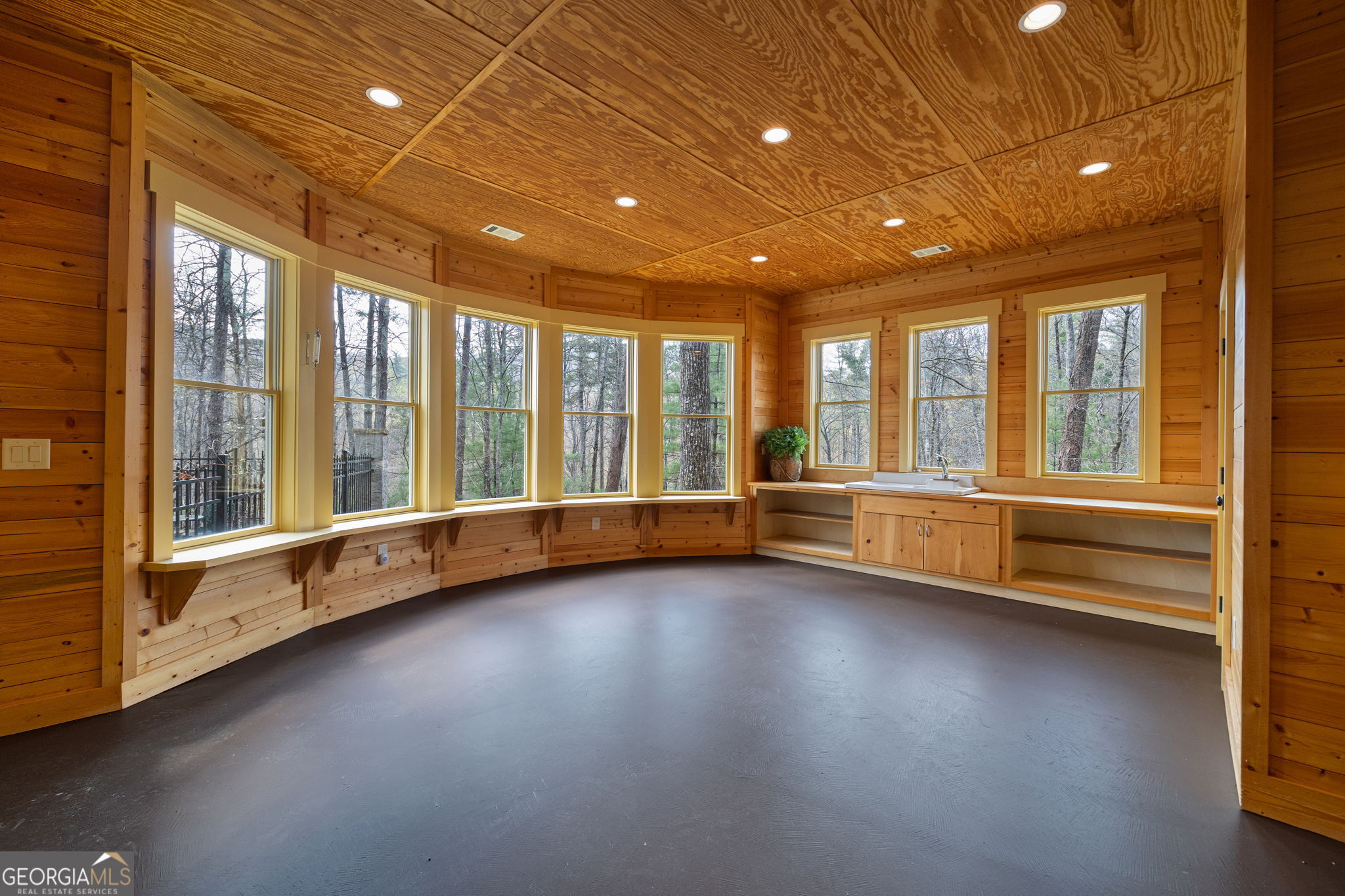 Nestled within the prestigious Wildcat section of Big Canoe, this extraordinary custom estate offers an unparalleled mountain living experience for the most discerning buyer. A sweeping curved driveway leads you to this architectural masterpiece, situated on approx 2.9 acres --where no detail has been overlooked. Step inside to soaring cathedral ceilings adorned with magnificent Hand hewn Custom Designed solid wood beams, custom crafted and planed on-site a testament to the exceptional quality found throughout this approx 9,300 square foot residence. Six bedrooms and seven full baths are spread across three levels, including a luxurious main-level master suite with sitting room, double vanity, whirlpool tub, and separate shower. Hand-finished hickory hardwood floors, rustic cherry cabinetry, and three fireplaces create an atmosphere of warmth and refined elegance. The chefs kitchen opens to a grand great room and cozy keeping room, flowing seamlessly to a screened porch and sunroom with fireplace all framed by breathtaking mountain views. Enter the Custom Designed Whimsical Bunkroom suite and be amazed! Four built in bunkbeds (each with lighting), large game area, two full baths and storage! The terrace level offers two additional bedrooms, three baths, a fitness room, and bonus spaces perfect for entertaining. A three-car garage and lovingly curated master gardens, designed by a Master Gardener, complete this remarkable property. Just some of the exceptional features: Pella Windows and Doors, Soft Corner Detailing throughout, designer selected finishes...the list is extensive!! Residents of Big Canoe enjoy world-class amenities including golf, lake, marina, pool, tennis, fitness center, clubhouse, and fine dining all within a secure, gated mountain retreat. A rare opportunity to own one of Big Canoes finest estates.