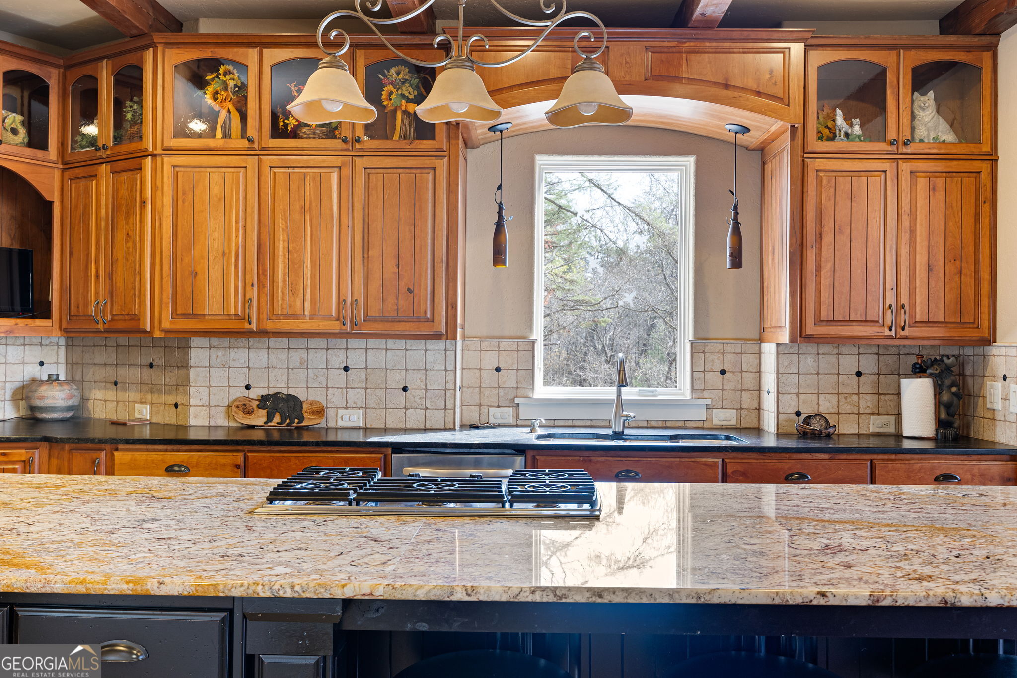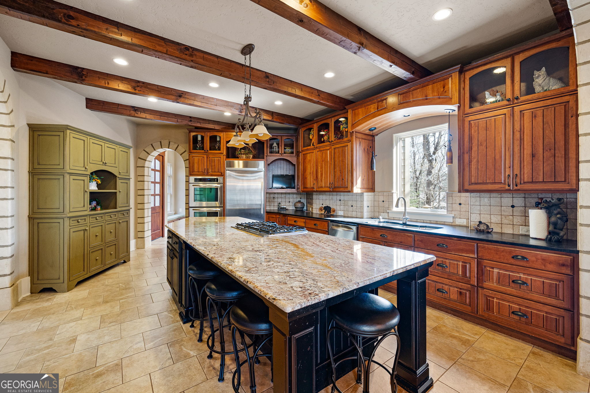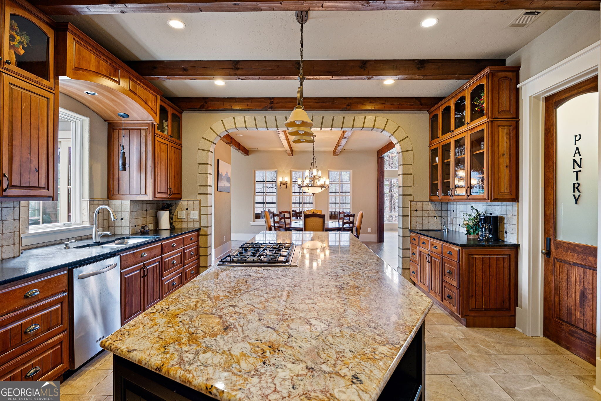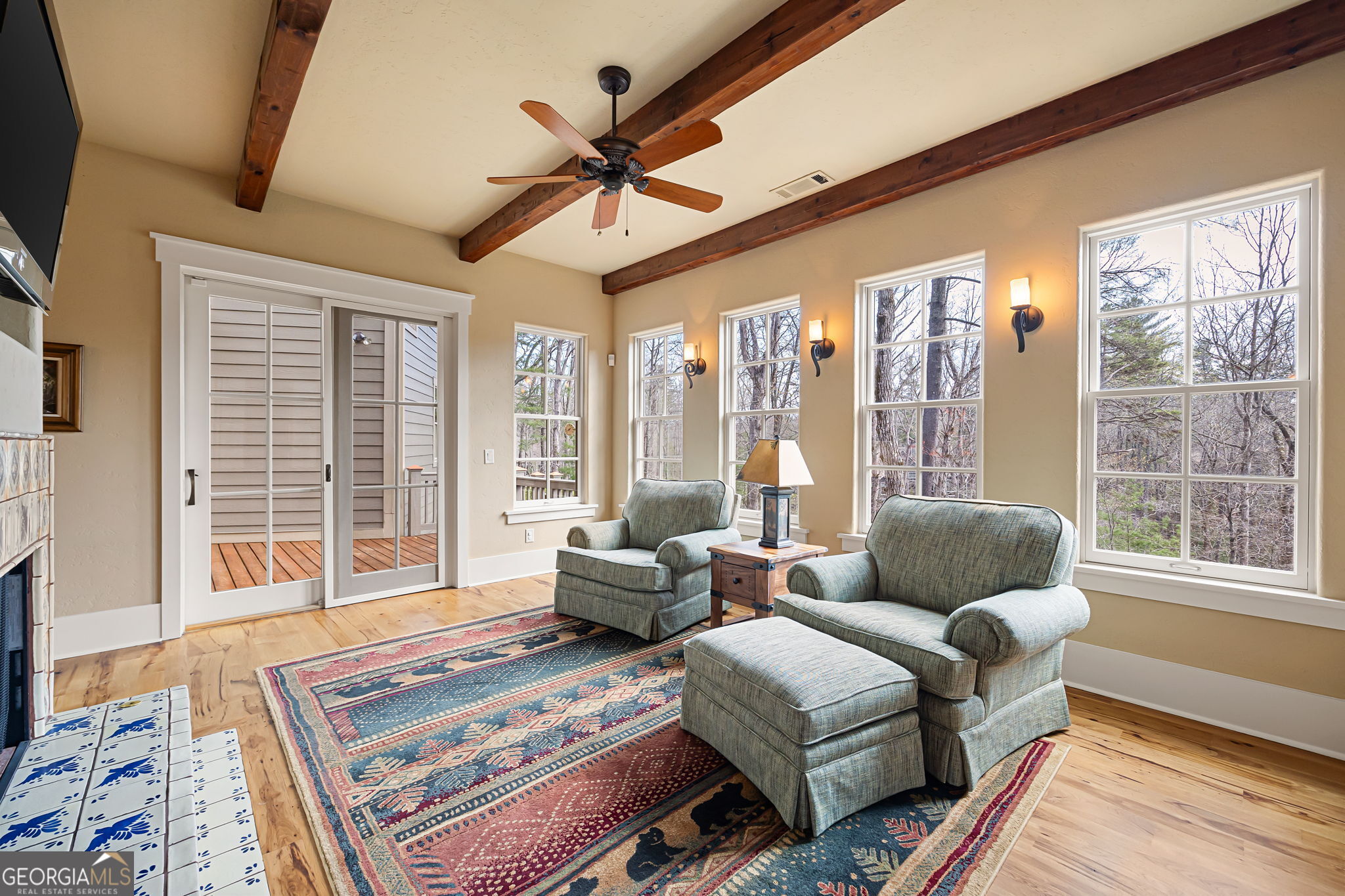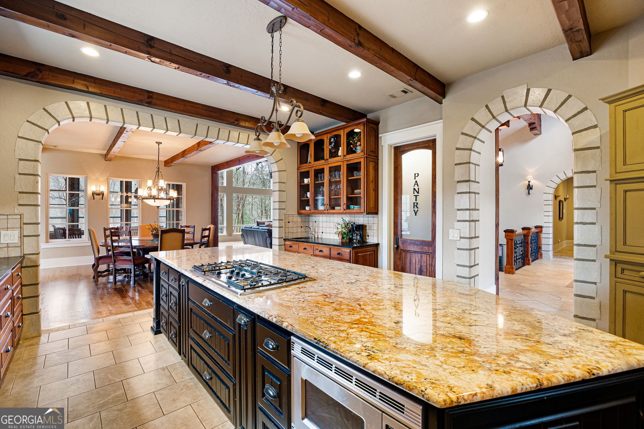 Nestled within the prestigious Wildcat section of Big Canoe, this extraordinary custom estate offers an unparalleled mountain living experience for the most discerning buyer. A sweeping curved driveway leads you to this architectural masterpiece, situated on approx 2.9 acres --where no detail has been overlooked. Step inside to soaring cathedral ceilings adorned with magnificent Hand hewn Custom Designed solid wood beams, custom crafted and planed on-site a testament to the exceptional quality found throughout this approx 9,300 square foot residence. Six bedrooms and seven full baths are spread across three levels, including a luxurious main-level master suite with sitting room, double vanity, whirlpool tub, and separate shower. Hand-finished hickory hardwood floors, rustic cherry cabinetry, and three fireplaces create an atmosphere of warmth and refined elegance. The chefs kitchen opens to a grand great room and cozy keeping room, flowing seamlessly to a screened porch and sunroom with fireplace all framed by breathtaking mountain views. Enter the Custom Designed Whimsical Bunkroom suite and be amazed! Four built in bunkbeds (each with lighting), large game area, two full baths and storage! The terrace level offers two additional bedrooms, three baths, a fitness room, and bonus spaces perfect for entertaining. A three-car garage and lovingly curated master gardens, designed by a Master Gardener, complete this remarkable property. Just some of the exceptional features: Pella Windows and Doors, Soft Corner Detailing throughout, designer selected finishes...the list is extensive!! Residents of Big Canoe enjoy world-class amenities including golf, lake, marina, pool, tennis, fitness center, clubhouse, and fine dining all within a secure, gated mountain retreat. A rare opportunity to own one of Big Canoes finest estates.