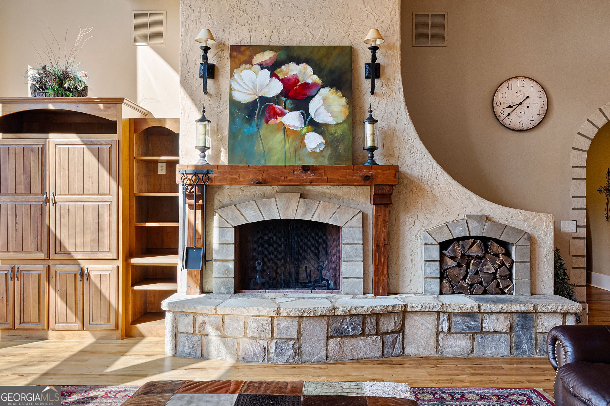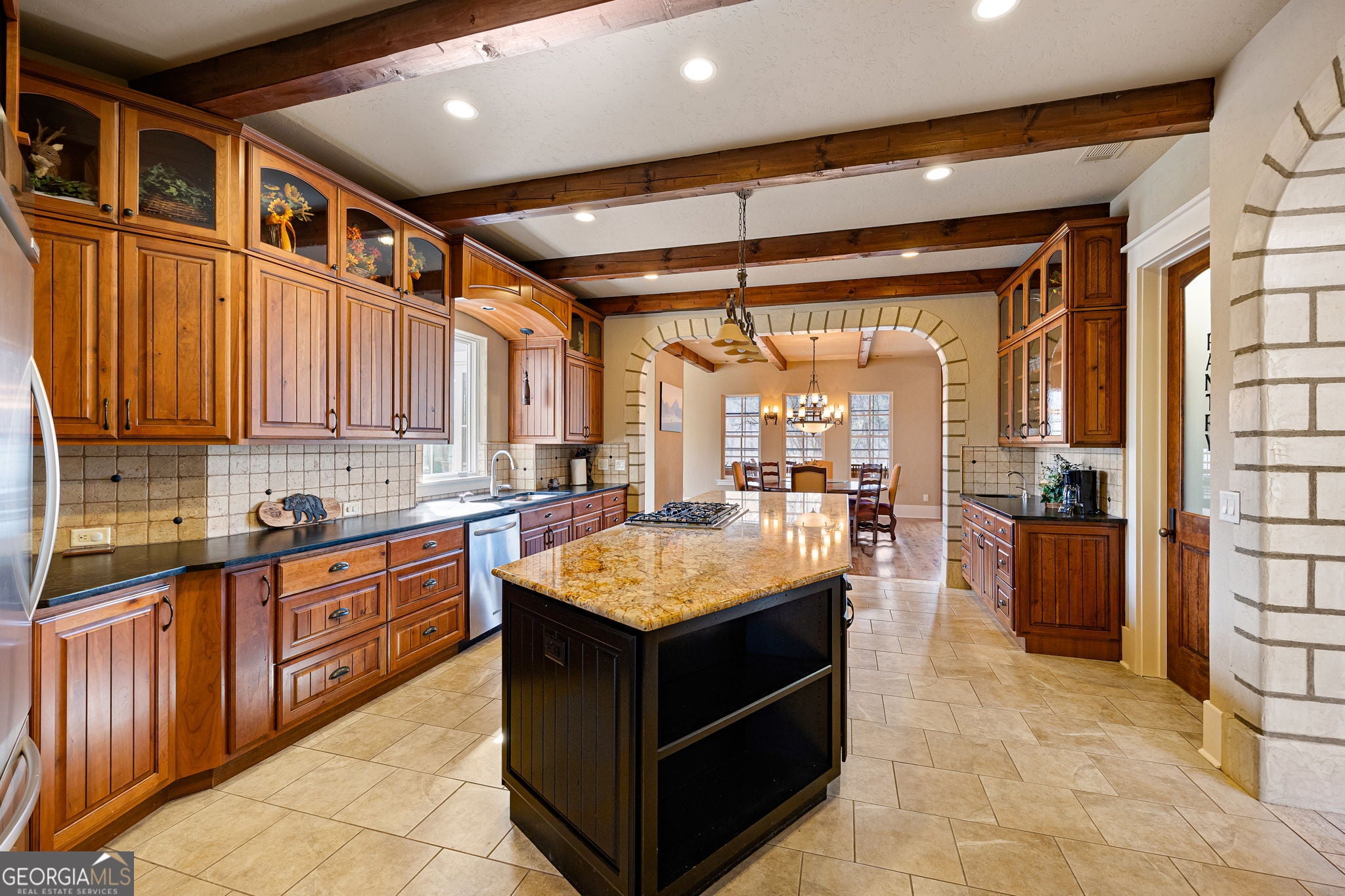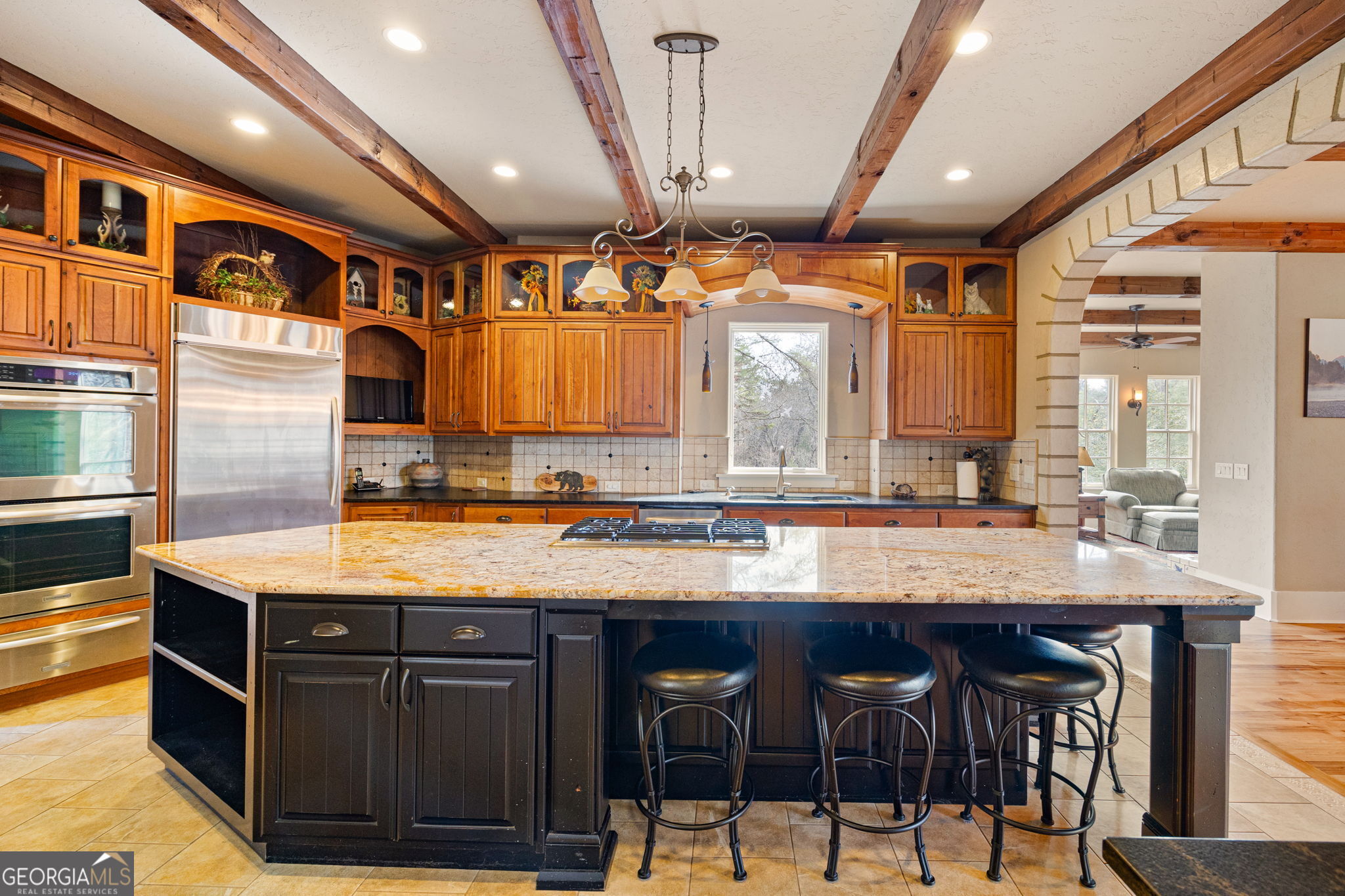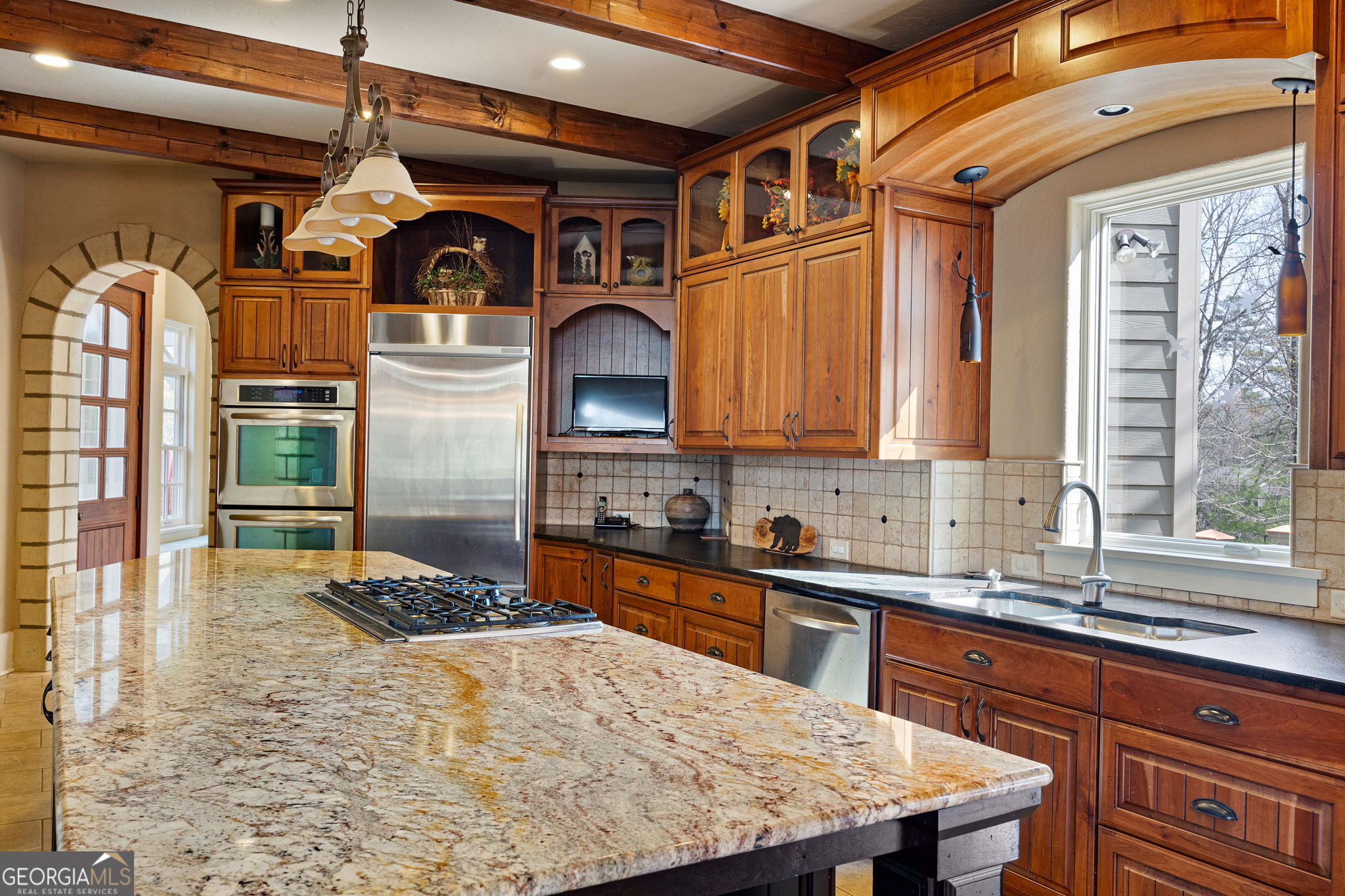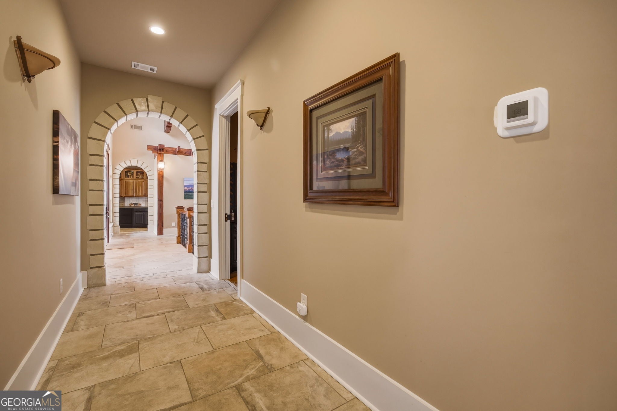 Nestled within the prestigious Wildcat section of Big Canoe, this extraordinary custom estate offers an unparalleled mountain living experience for the most discerning buyer. A sweeping curved driveway leads you to this architectural masterpiece, situated on approx 2.9 acres --where no detail has been overlooked. Step inside to soaring cathedral ceilings adorned with magnificent Hand hewn Custom Designed solid wood beams, custom crafted and planed on-site a testament to the exceptional quality found throughout this approx 9,300 square foot residence. Six bedrooms and seven full baths are spread across three levels, including a luxurious main-level master suite with sitting room, double vanity, whirlpool tub, and separate shower. Hand-finished hickory hardwood floors, rustic cherry cabinetry, and three fireplaces create an atmosphere of warmth and refined elegance. The chefs kitchen opens to a grand great room and cozy keeping room, flowing seamlessly to a screened porch and sunroom with fireplace all framed by breathtaking mountain views. Enter the Custom Designed Whimsical Bunkroom suite and be amazed! Four built in bunkbeds (each with lighting), large game area, two full baths and storage! The terrace level offers two additional bedrooms, three baths, a fitness room, and bonus spaces perfect for entertaining. A three-car garage and lovingly curated master gardens, designed by a Master Gardener, complete this remarkable property. Just some of the exceptional features: Pella Windows and Doors, Soft Corner Detailing throughout, designer selected finishes...the list is extensive!! Residents of Big Canoe enjoy world-class amenities including golf, lake, marina, pool, tennis, fitness center, clubhouse, and fine dining all within a secure, gated mountain retreat. A rare opportunity to own one of Big Canoes finest estates.