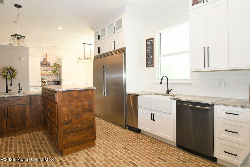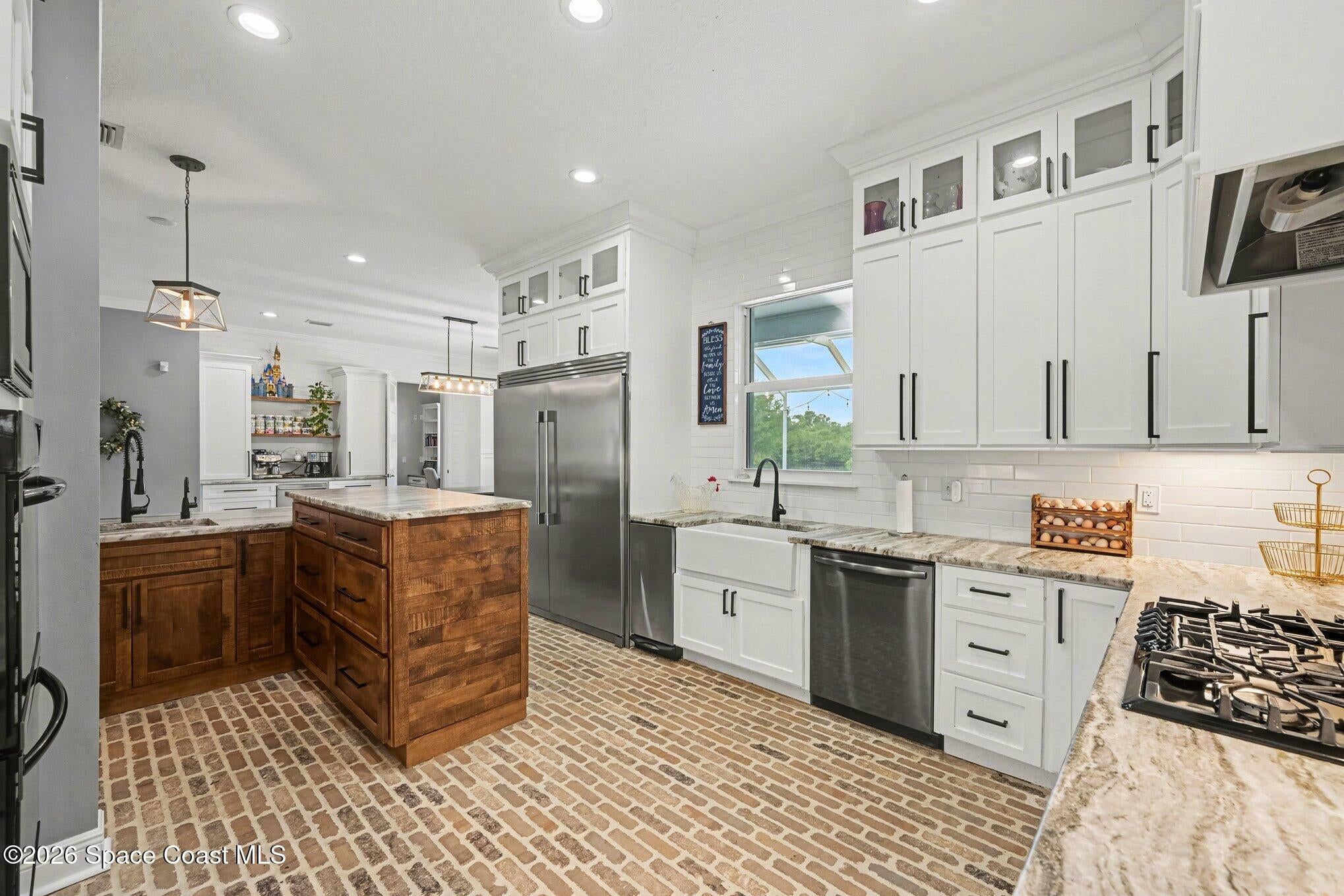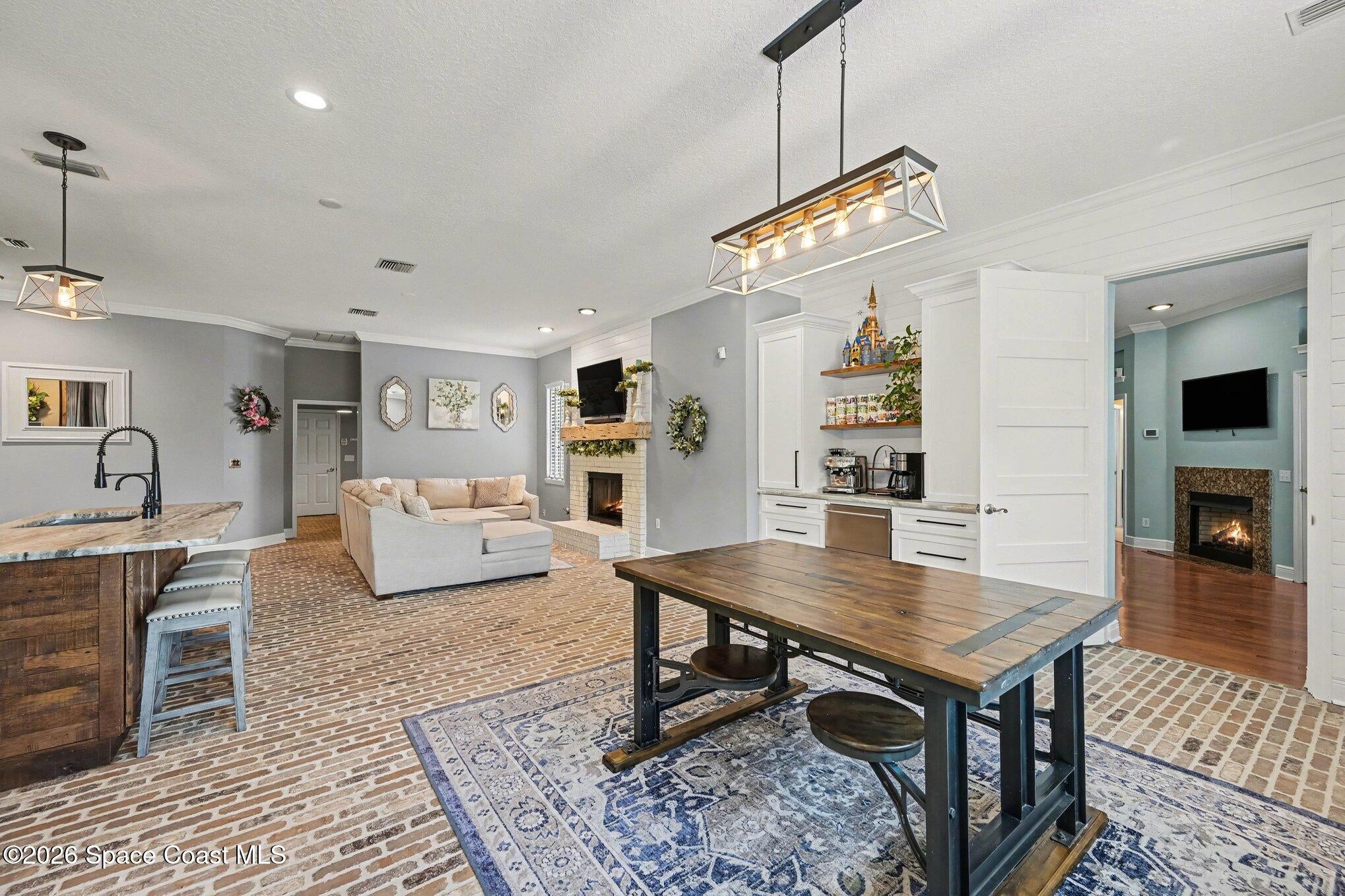 This exceptional Windover Farms estate offers the rare combination of space, privacy, and timeless character on a generous half-acre lot backing to the serene St. Johns Wildlife Preserve. With more than 4,000 square feet of thoughtfully designed living space, this 4-bedroom, 3.5-bath home with an additional loft is perfectly suited for large or multigenerational living, offering flexibility, comfort, and room to grow.A long paver driveway welcomes you home, enhanced by a culvert installed during the driveway expansion for both functionality and curb appeal. The charming front porch sets the tone for the warm Southern character found throughout the property. Tucked away at the back of one of the areas most sought-after communities, this home offers peaceful surroundings and privacy while remaining conveniently close to everyday amenities.Inside, the home has been beautifully updated while preserving its distinctive charm. The fully REMODELED CHEFS KITCHEN flows seamlessly into the living and dining areas, creating the true heart of the home. Features include CUSTOM CABINETRY, stunning DOLOMITE countertops, NEWER STAINLESS STEEL appliances, OVERSIZED refrigerator and freezer units, a farmhouse sink, a COMPACTOR, and striking BRICK FLOORING that brings warmth and character to the space. The home also features a whole-house WATER FILTRATION SYSTEM along with REVERSE OSMOSIS at the kitchen sink for added convenience and water quality. Abundant storage is available throughout, including a spacious laundry room with extensive built-in cabinetry and drawers designed for everyday functionality.Designed with versatility in mind, the home features TWO PRIMARY SUITES, ideal for multigenerational living or accommodating guests. One suite even offers its own private exterior entrance for added independence and convenience. Upstairs, a LARGE LOFT provides additional flexible living space and can easily serve as a fifth bedroom. Additionally, the upstairs features a spacious AIR-CONDITIONED ATTIC with finished drywall space, offering rare extra storage space.Step outside into your own private backyard retreat where the IN-GROUND pool creates the perfect setting for relaxing or entertaining year-round. Practical upgrades provide peace of mind, including a DURABLE METAL ROOF only eight years old, TWO NEWER AC units installed in 2024, a 2019 water heater, and natural gas servicing the water heater, dryer, stovetop, and all three fireplaces.Connected to city water while utilizing septic and a well-fed irrigation system, this property offers both efficiency and convenience. More than just a home, this is a private retreat filled with character, space, and endless possibilities--truly unlike the typical Florida property.