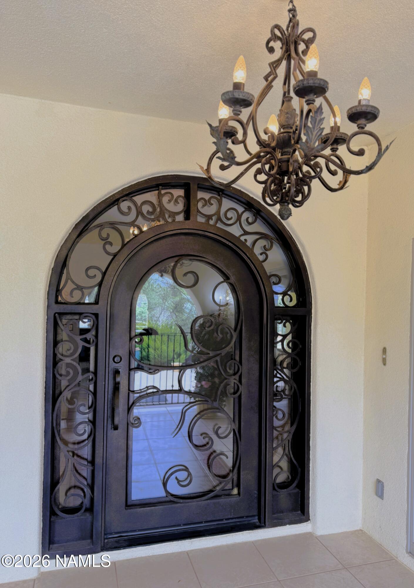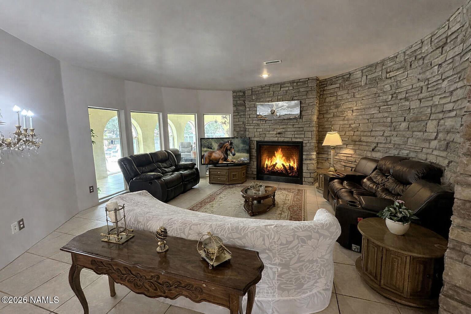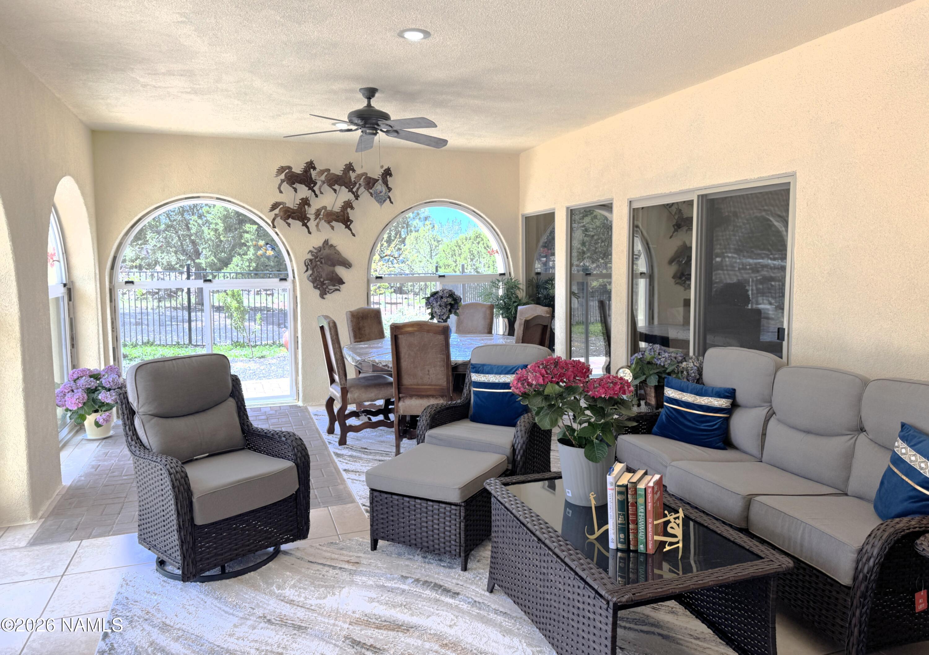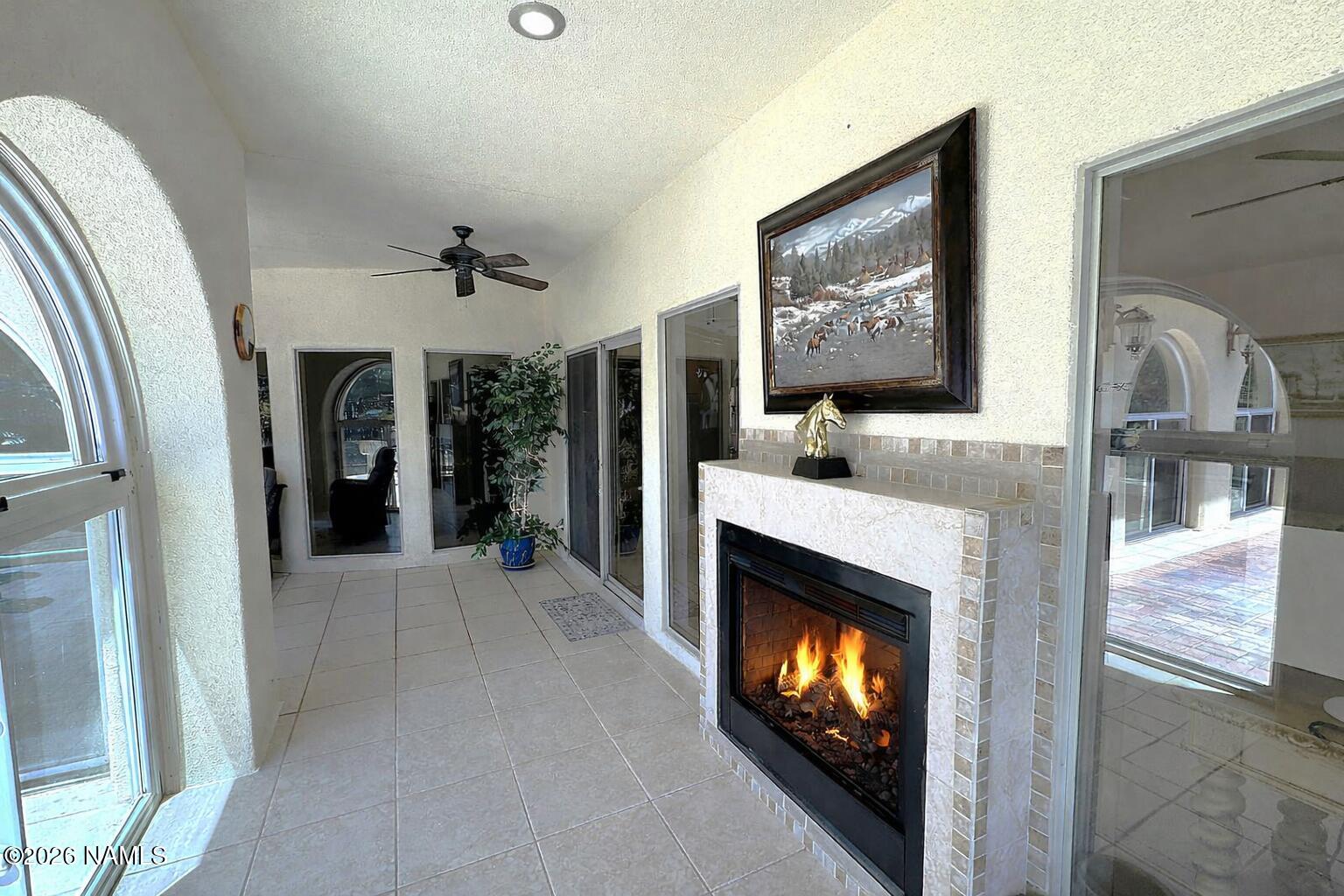Whispering Winds Ranch in beautiful Williams AZ, located at 9665 Stagecoach Dr, is tucked in the wooded hills in a private gated community. 28.5 acres fenced with separate arenas/pens. The entrance is amazing with malpais stone, electronic gate and beautiful horse statues. The stylish home is a 4,526 square foot single level Spanish Colonial built in 2006 with heated floors, a/c, three suites with their own private baths, split floor plan, formal living room, family room and Arizona Rooms. 3 fireplaces, chandeliers, smooth textured walls, 9 foot ceilings throughout and a custom front door imported from Italy! 4 outbuildings including RV garage, workshop, barn and stalls. Fits 12 cars total garage space. Property has natural ponds and rooftop collection. New metal roof, solar. Call today!