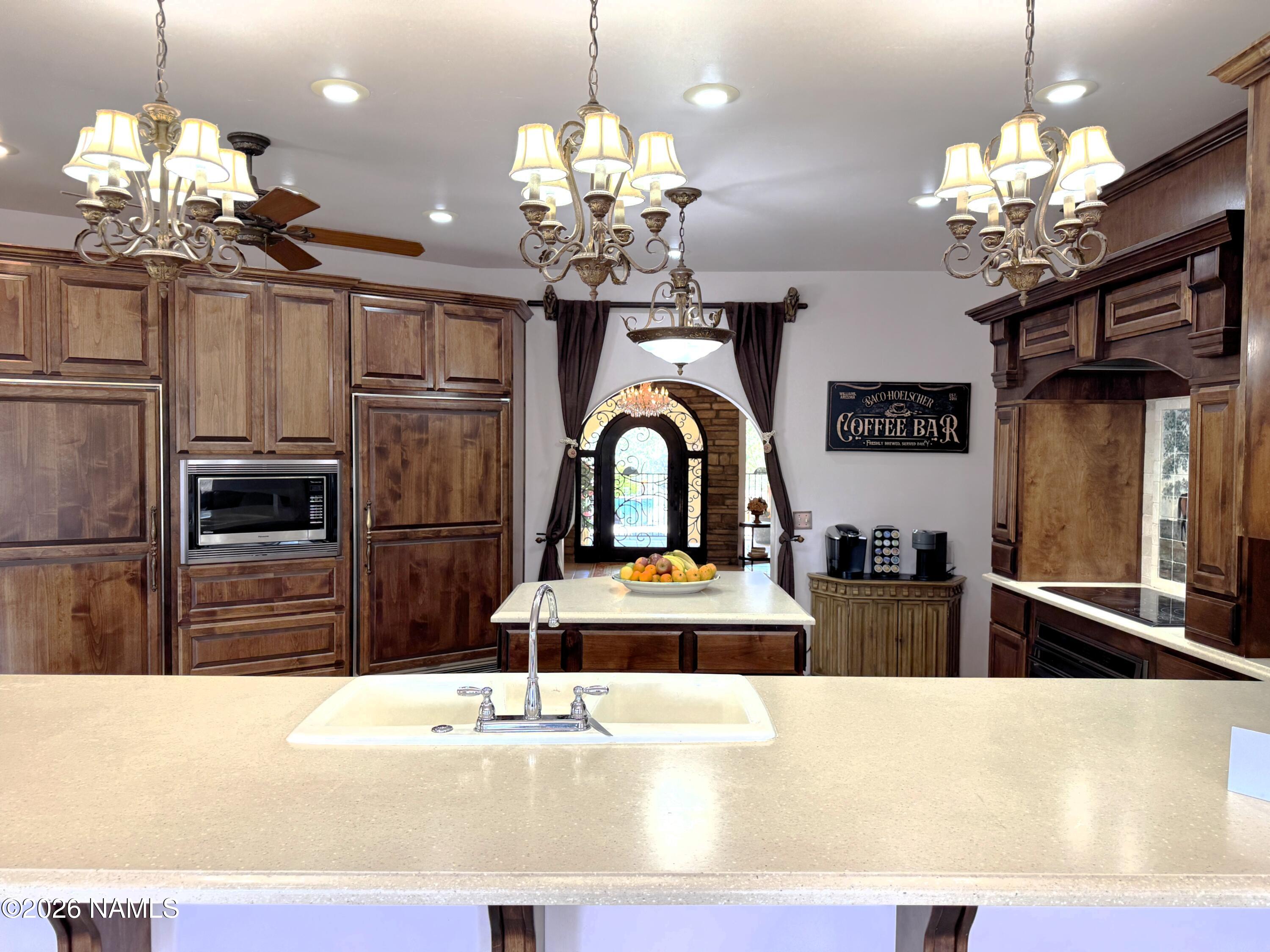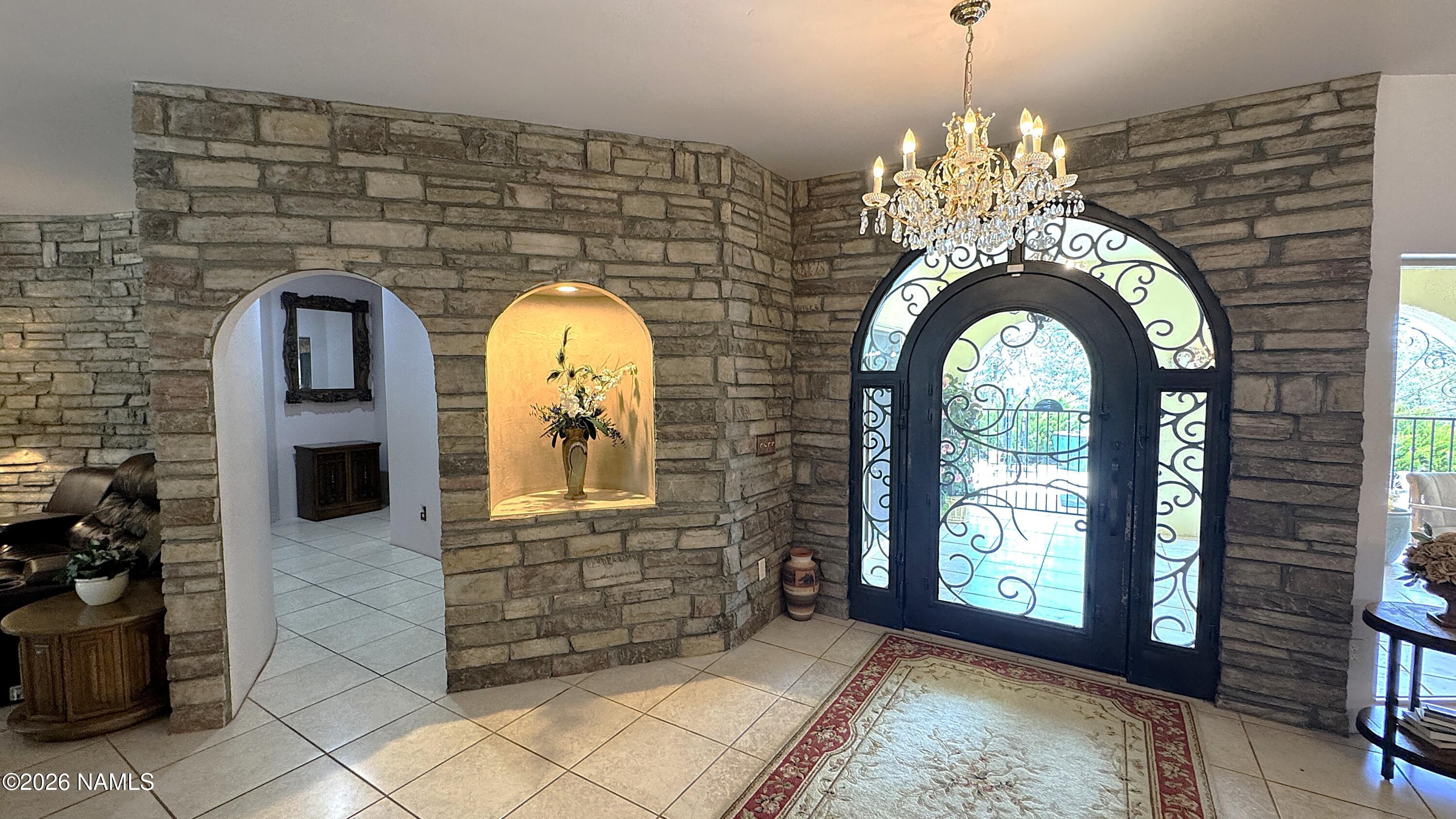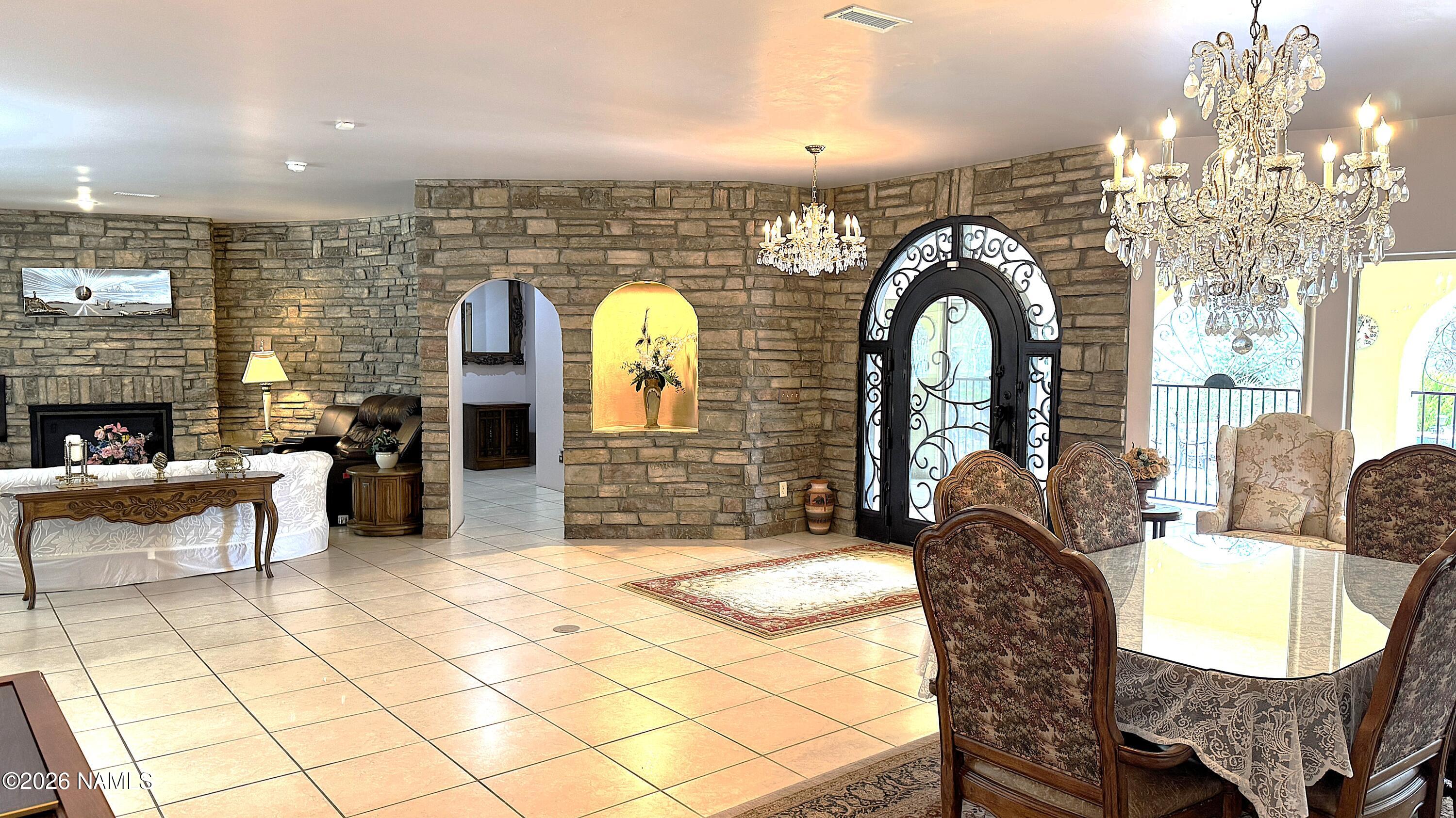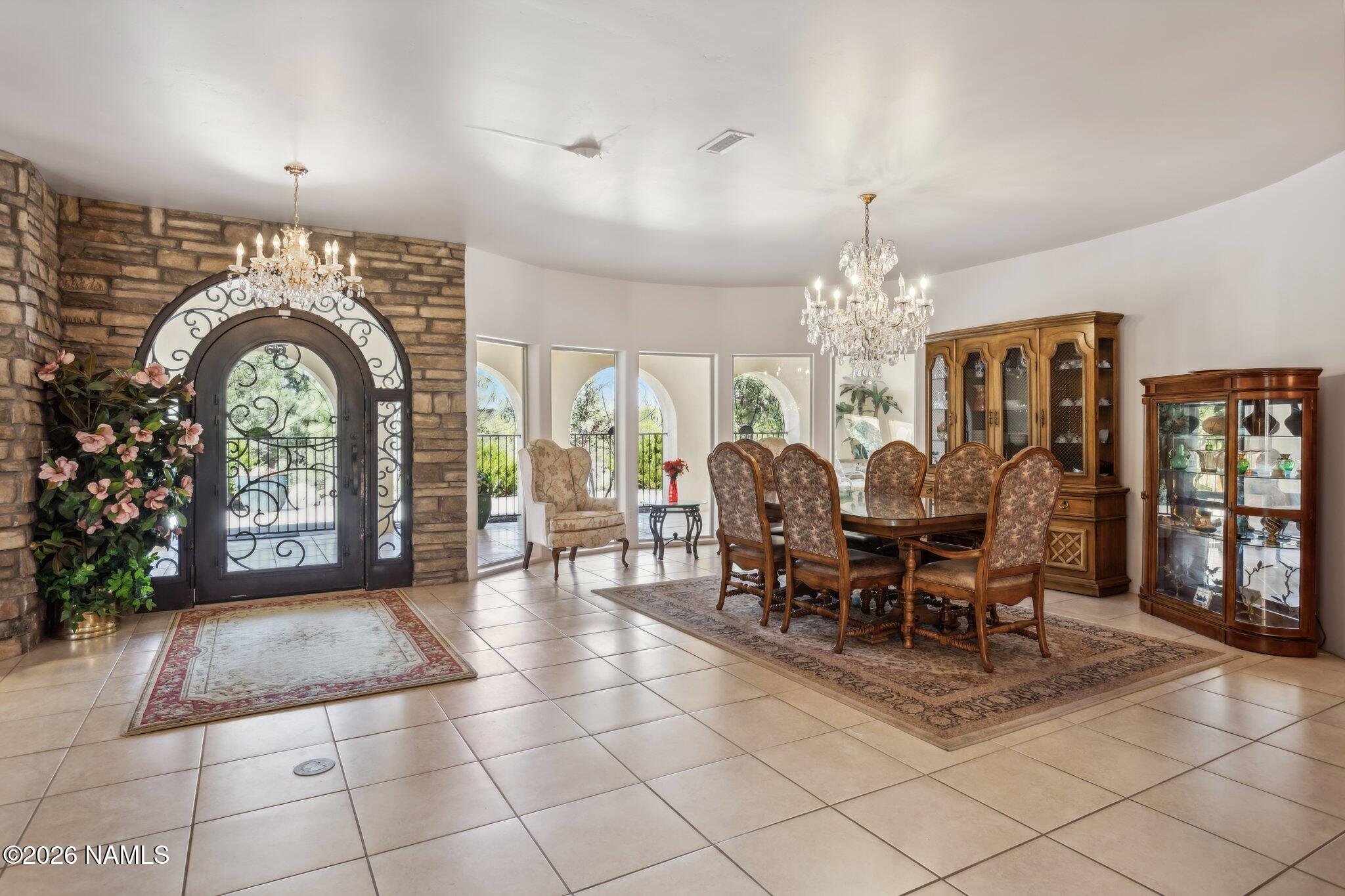Whispering Winds Ranch in beautiful Williams AZ, located at 9665 Stagecoach Dr, is tucked in the wooded hills in a private gated community. 28.5 acres fenced with separate arenas/pens. The entrance is amazing with malpais stone, electronic gate and beautiful horse statues. The stylish home is a 4,526 square foot single level Spanish Colonial built in 2006 with heated floors, a/c, three suites with their own private baths, split floor plan, formal living room, family room and Arizona Rooms. 3 fireplaces, chandeliers, smooth textured walls, 9 foot ceilings throughout and a custom front door imported from Italy! 4 outbuildings including RV garage, workshop, barn and stalls. Fits 12 cars total garage space. Property has natural ponds and rooftop collection. New metal roof, solar. Call today!