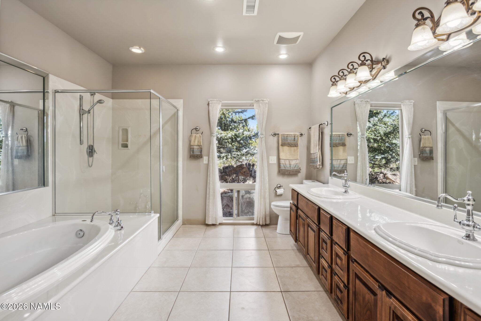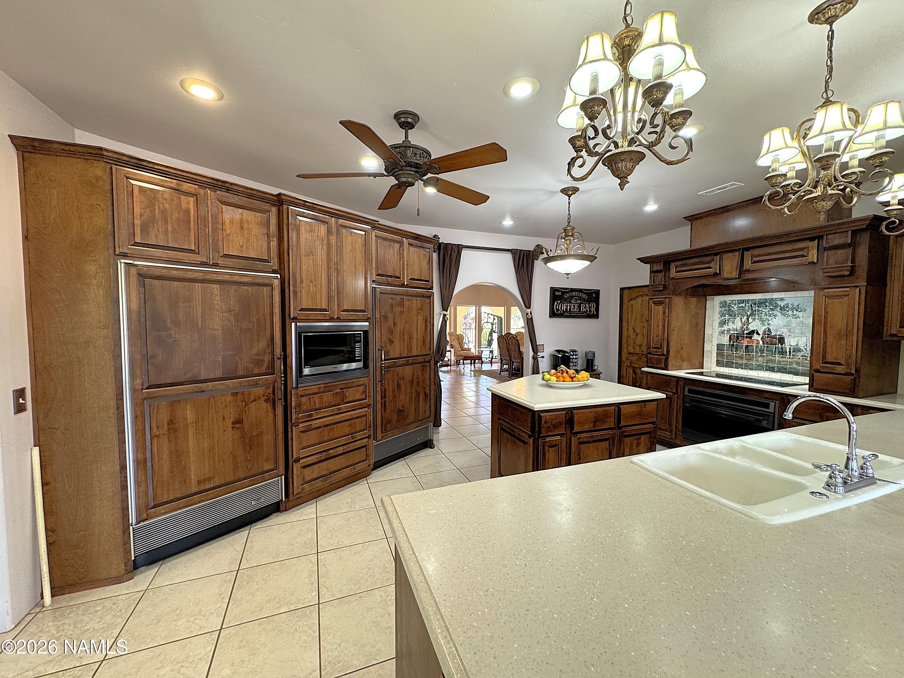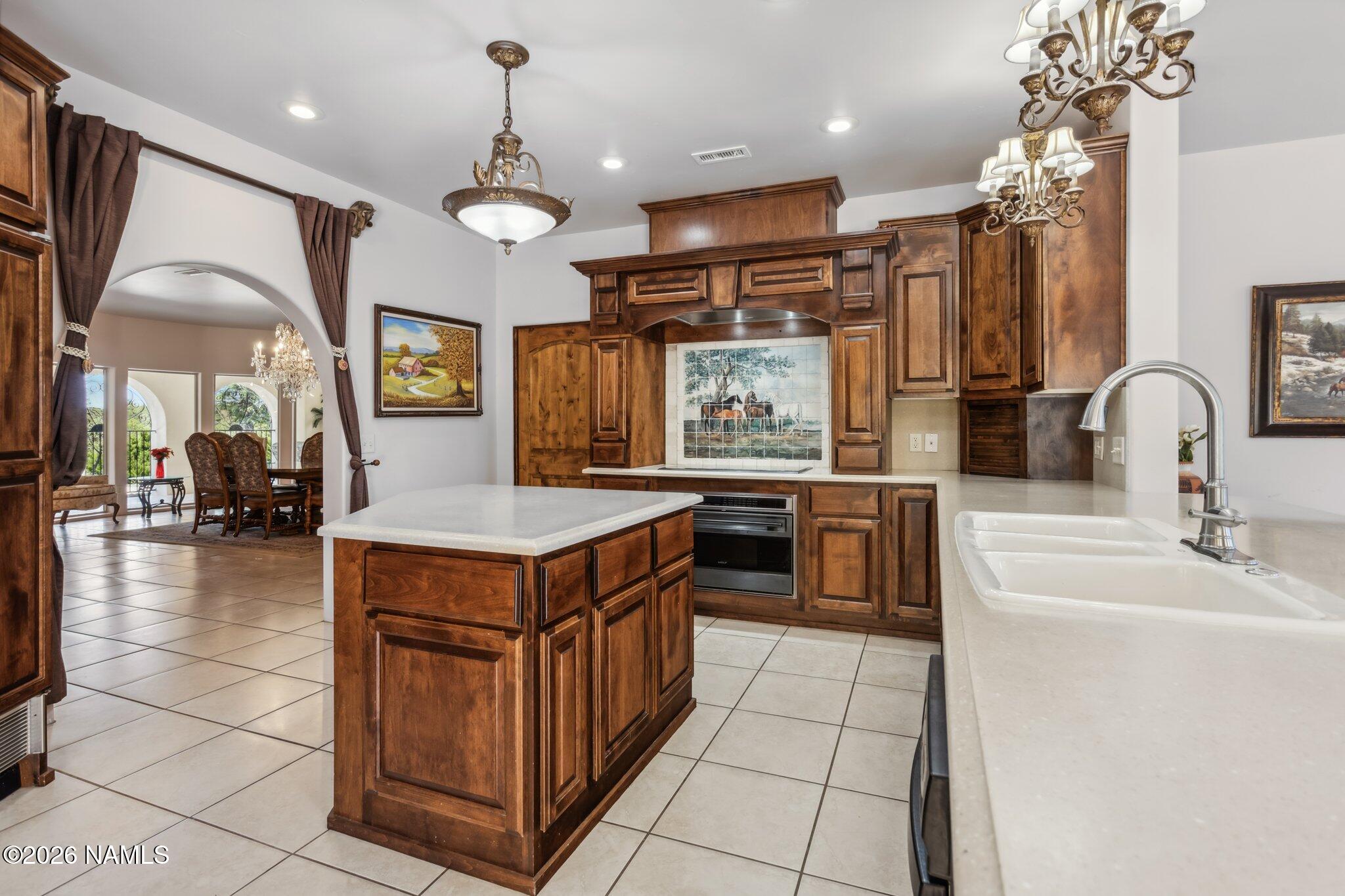 Situated on a generous 15,000 square foot lot within the gated community of Ventana Foothills (Sonoran Arroyos), this custom single-level residence offers a blend of comfort, privacy, and timeless design. Backing to a wash, the home enjoys a private setting complemented by mature landscaping and exceptional outdoor living. A welcoming presence begins with strong curb appeal and a stately double front entry door, framed by custom leaded glass. Inside, expansive windows fill the home with natural light, highlighting travertine flooring, plantation shutters, and thoughtfully selected designer lighting throughout. The formal living and dining rooms offer elegant entertaining spaces. The well-appointed kitchen is designed for both function and gathering featuring granite countertops, a large island with bar seating, a walk-in pantry, stainless steel GE Monogram appliances including a 5-burner gas cooktop, and a casual breakfast area that overlooks the backyard. The kitchen flows seamlessly into the family room, complete with a fireplace and a built-in wet bar with a wine refrigerator. The home has 5 bedrooms and 4 full bathrooms including a spacious primary suite offering a cozy gas fireplace, a French door to the back patio, and a luxurious ensuite with a jetted soaking tub, custom shower, dual vanities, and an expansive walk-in closet. A guest suite on the opposite wing of the house provides privacy for guests, while its ensuite bathroom offers direct outdoor access, ideal for use as a pool bath. Outdoor living is equally impressive, with a wraparound covered patio with drop down sunscreens and a custom bar with a countertop fire table. The resort-style backyard showcases a sparkling pool with boulder waterfall, spa, outdoor fireplace with seating area, built-in barbecue, lush lawn, and citrus trees--creating a private retreat perfect for year-round enjoyment. Additional features include a 3-car garage with a spacious storage room, central vacuum system, and a generously sized laundry room with abundant cabinetry and countertop workspace, and direct access to the backyard. Situated next door to Ancala Country Club, this neighborhood offers convenient access to top-rated Scottsdale schools, Basis, Mayo Clinics Scottsdale campus, hiking trails including Lost Dog Trail and Sunrise Trail, as well as premier shopping, dining, and the Loop 101 freeway.