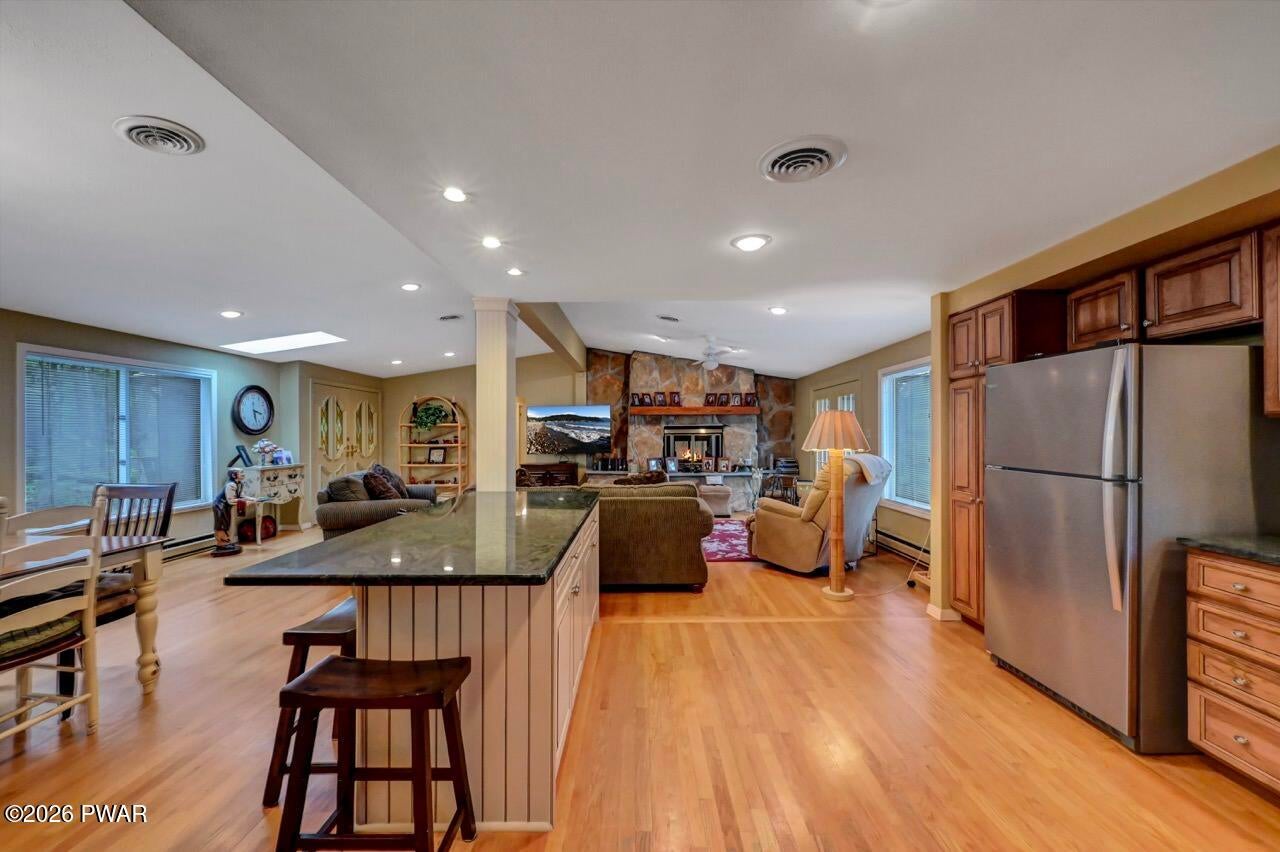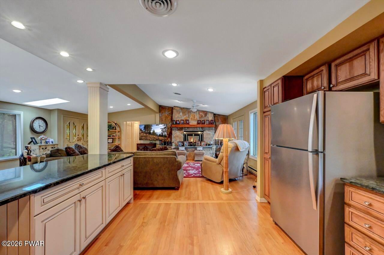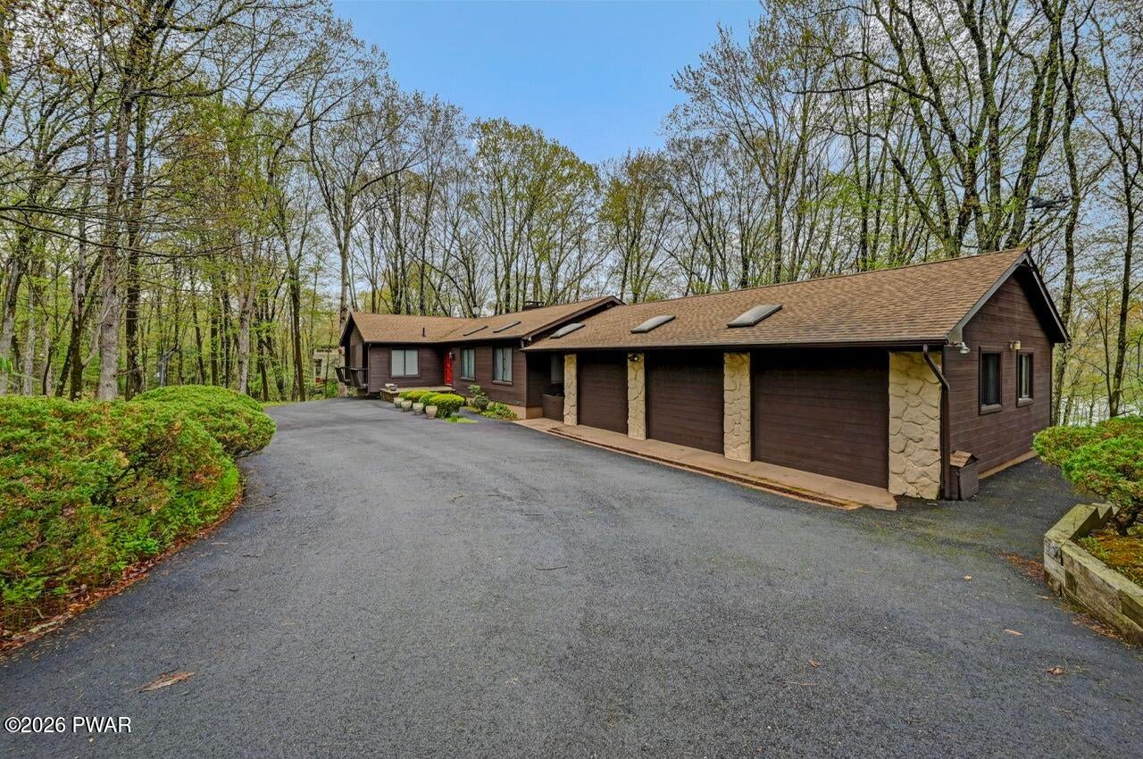 Are you ready to make your lakehome memories? So spacious, everyone can visit. A lakefront unlike any other! A sprawling ranch on nearly 2 acres with 250 feet of lakefront footage. A paved pathway to the lake. Entertain so many, or have a quiet moment on your dock, on your deck or cozy by your double sided wood burning fireplace. Updated kitchen and sought after open concept kitchen, living room and dining room. 1500 sq ft of composite decking with views of the lake from every angle. Primary suite with a luxurious bathroom including oversized jacuzzi tub and bidet. When you entertain, the party can continue in your full finished, walk out basement with a wet bar and wine storage! Cedar lined room with potential to make sauna or use as closet. 3 Car garage with so much storage. So close to Hemlock Farms wonderful amenities - pools, tennis, pickleball, bocce...Welcome home! Hemlock Farms is a year round recreational community with so many included amenities - pools, lakes, beaches, gym, bocce, tennis, pickleball, 24 hour security... Lords Valley Country Club is a private non-profit club located within the gates of Hemlock Farms with a USGA- rated championship 18 hole golf course, dining, Har-tru tennis, pickleball. Contact LVCC directly for rates and membership. Be well! Be happy! Be in Hemlock! (r)