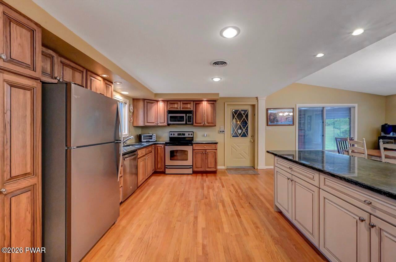 Are you ready to make your lakehome memories? So spacious, everyone can visit. A lakefront unlike any other! A sprawling ranch on nearly 2 acres with 250 feet of lakefront footage. A paved pathway to the lake. Entertain so many, or have a quiet moment on your dock, on your deck or cozy by your double sided wood burning fireplace.