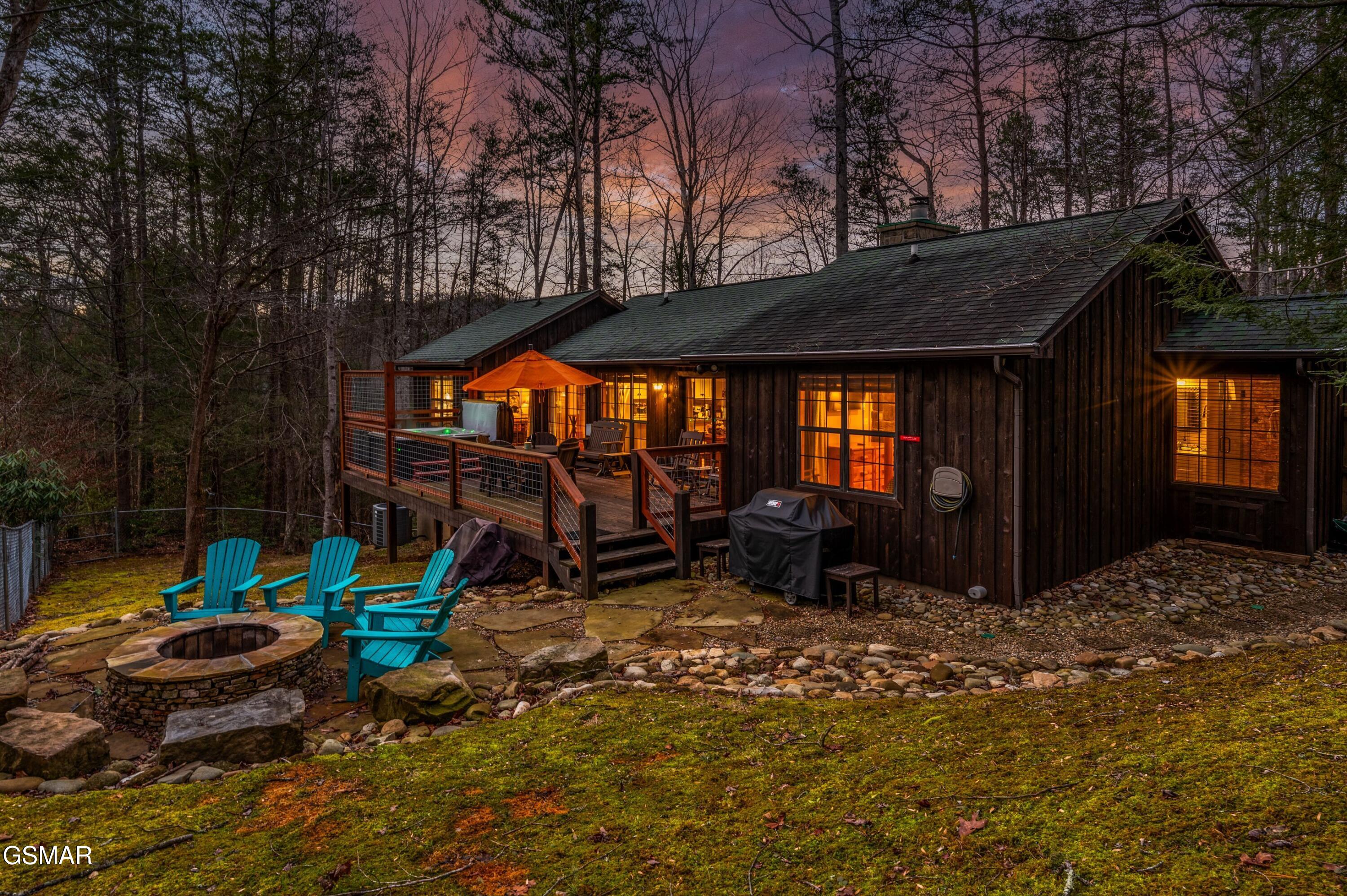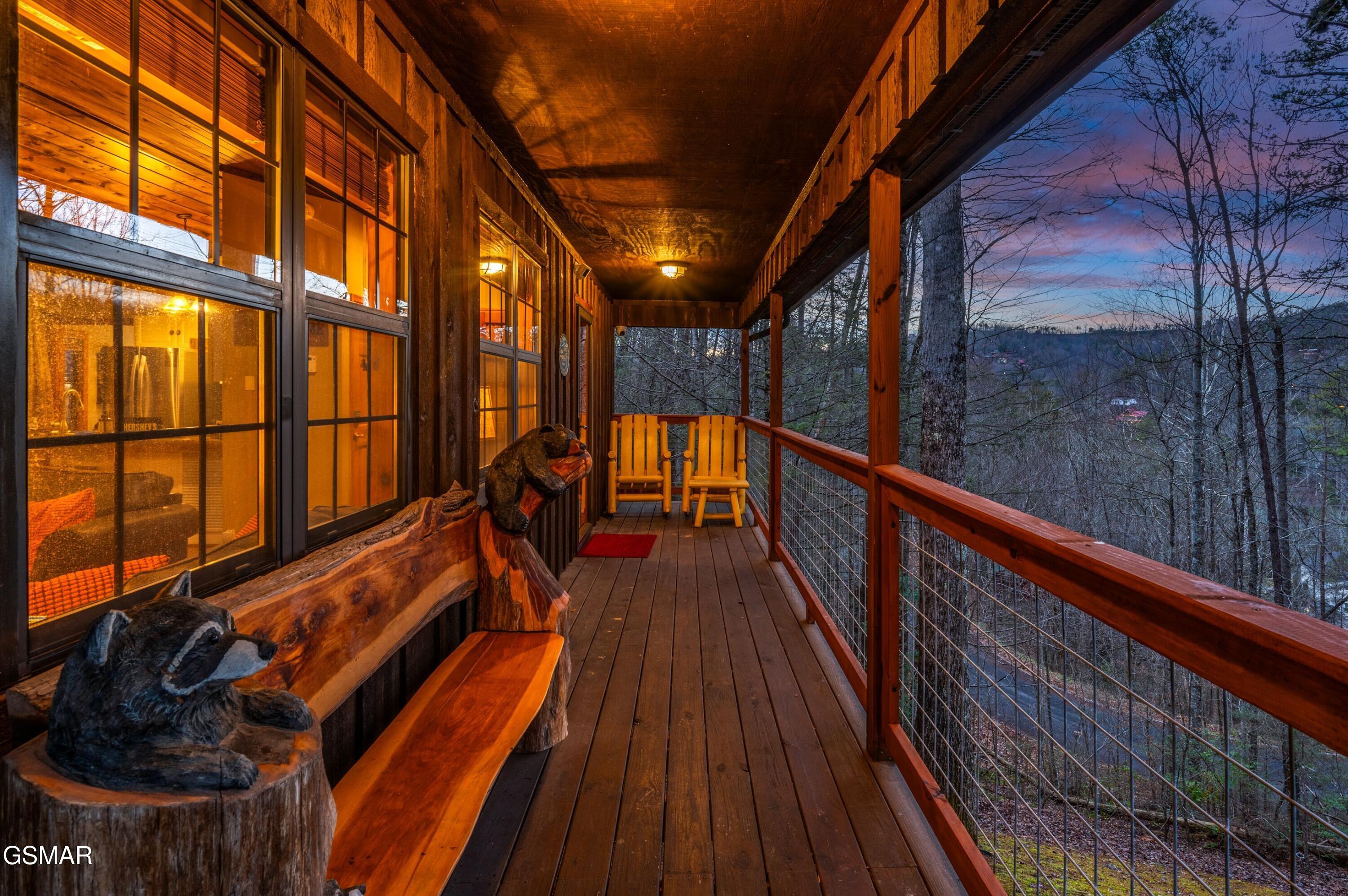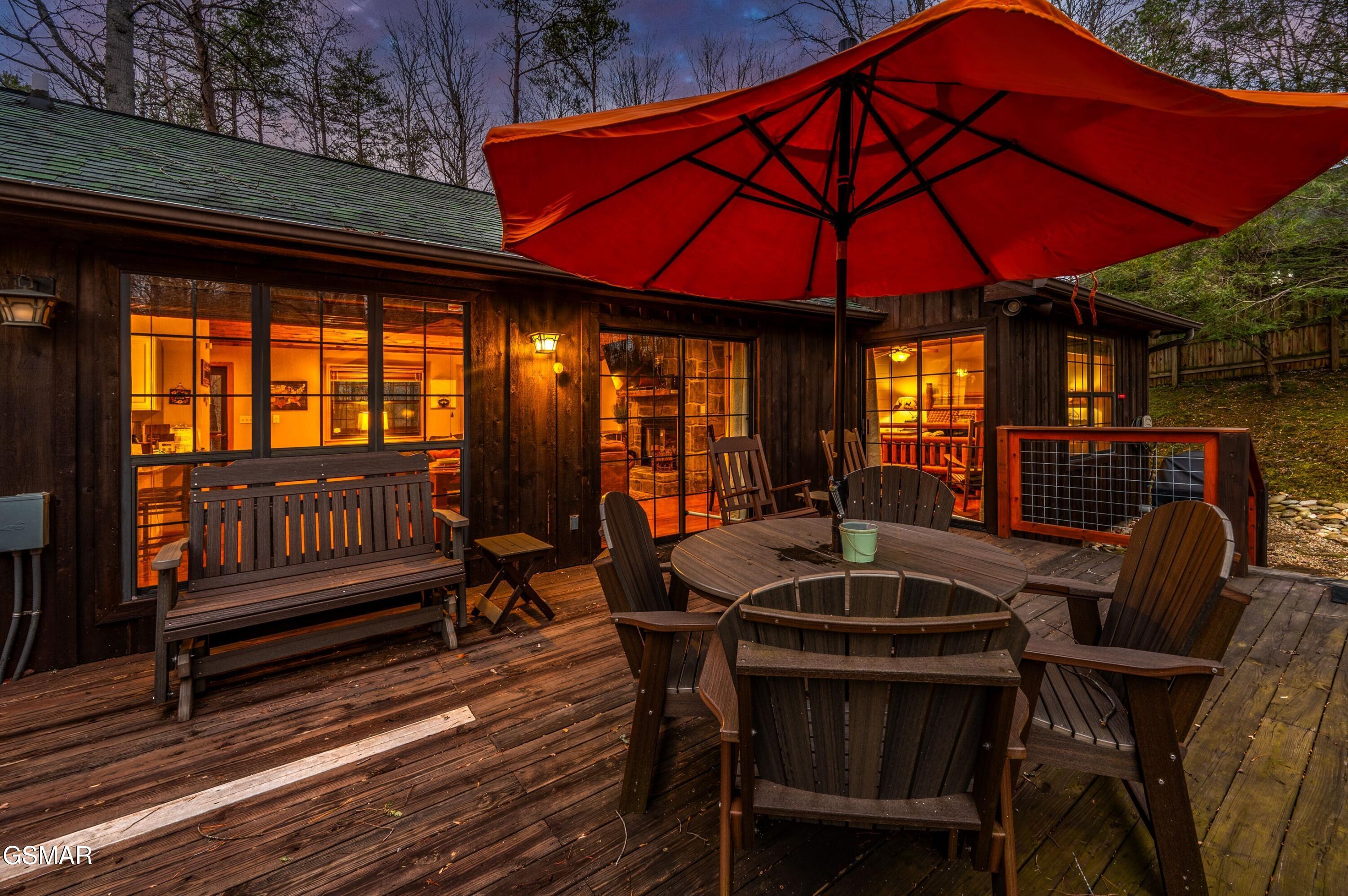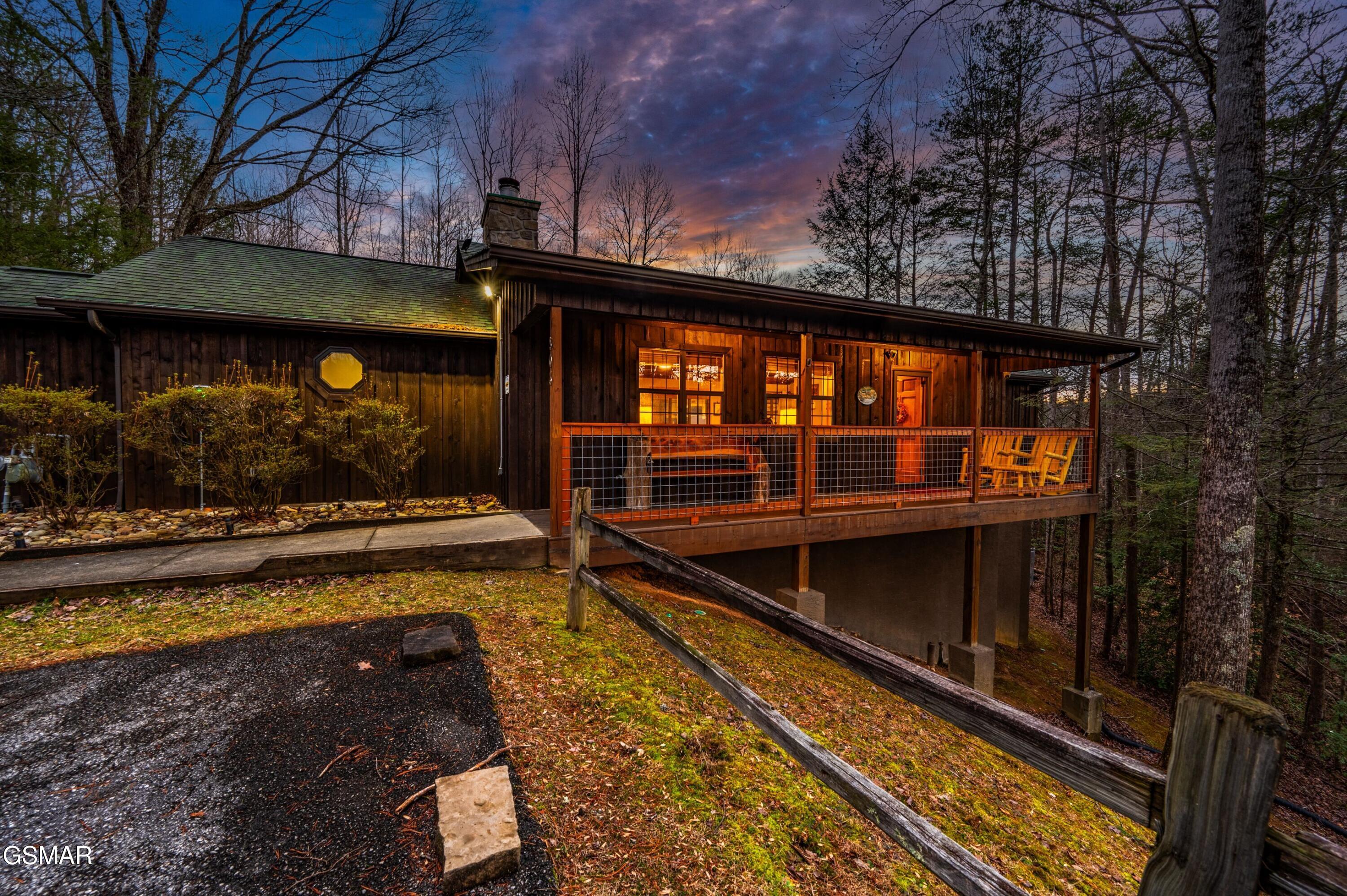 Tucked into a quiet, private setting on a big wooded lot, at the end of a quiet street, yet with everything Gatlinburg has to offer just minutes away. This contemporary chalet delivers the kind of balance that is hard to find in the Smokies. Two suite-style bedrooms, each with a walk-in closet and full bath, anchor the main level alongside a spacious great room where the living area, dining space, and kitchen all flow together naturally. The layout works well for guests, families, and owners alike. Step outside and the property really opens up. Two deck areas, a hot tub, a fenced rear yard, and an adjacent fire pit area create an outdoor living space that guests will gravitate toward at the end of a long day on the trails or in town. The location speaks for itself. The National Park entrance, downtown Gatlinburg, and the area's most visited attractions are all within a short drive. City services include trash pick-up, water, sewer, gas, high speed internet and there is no HOA. The property is already on an established rental program, generating over 66k each of the last two years.
