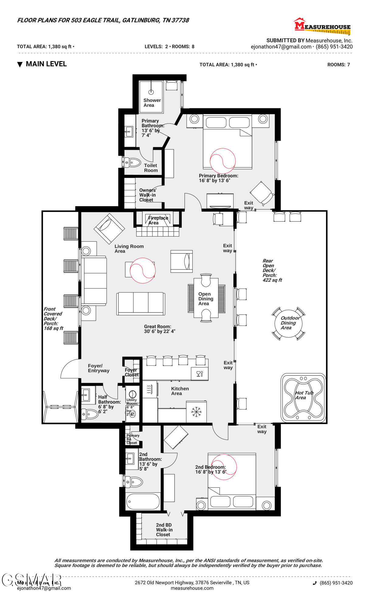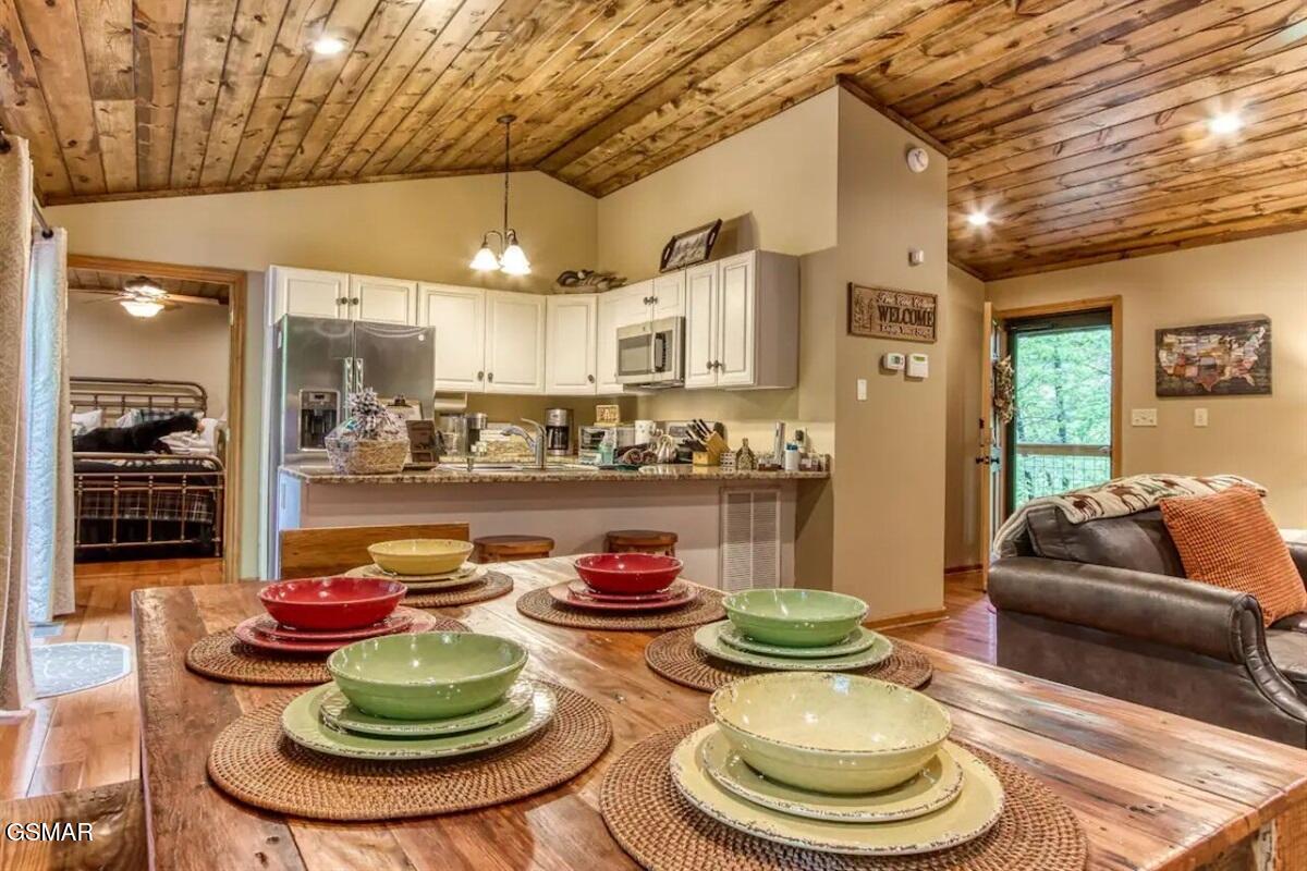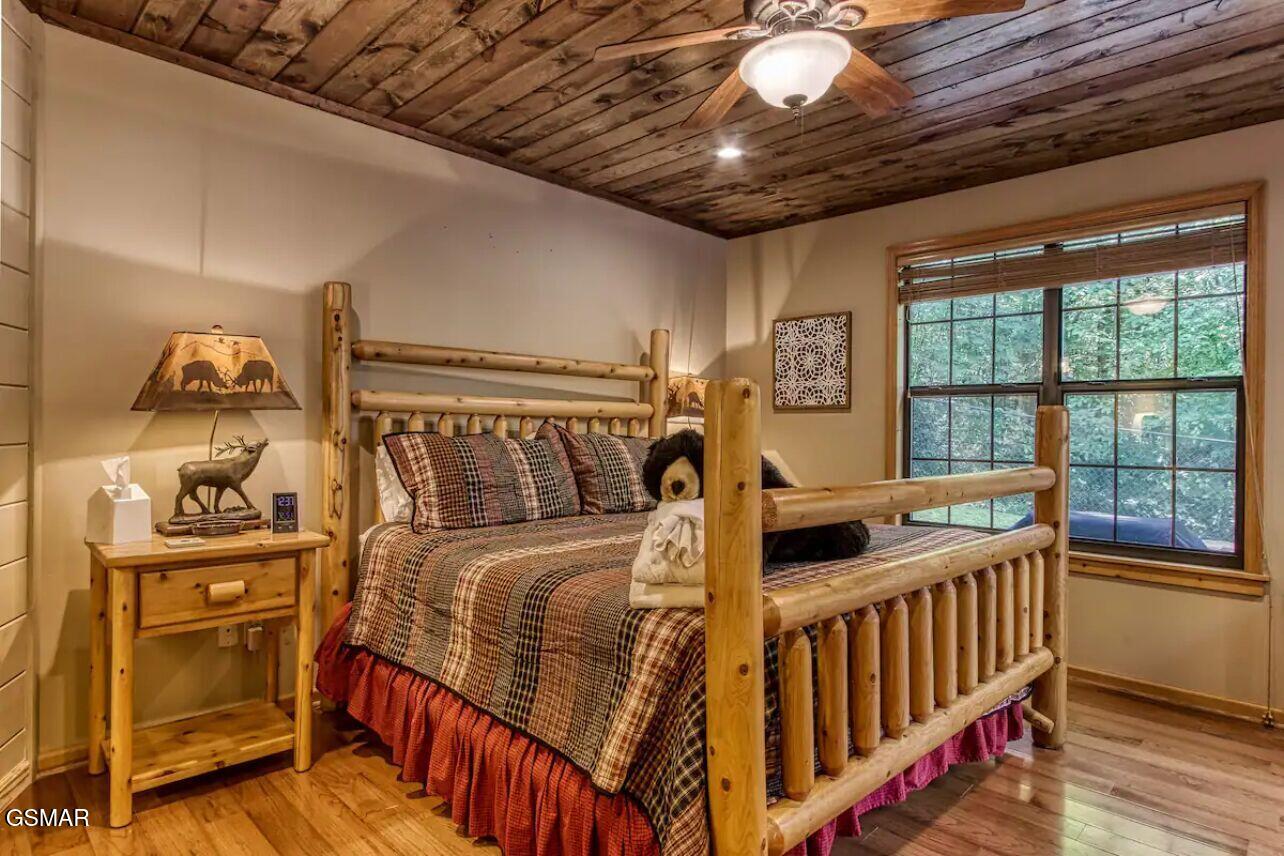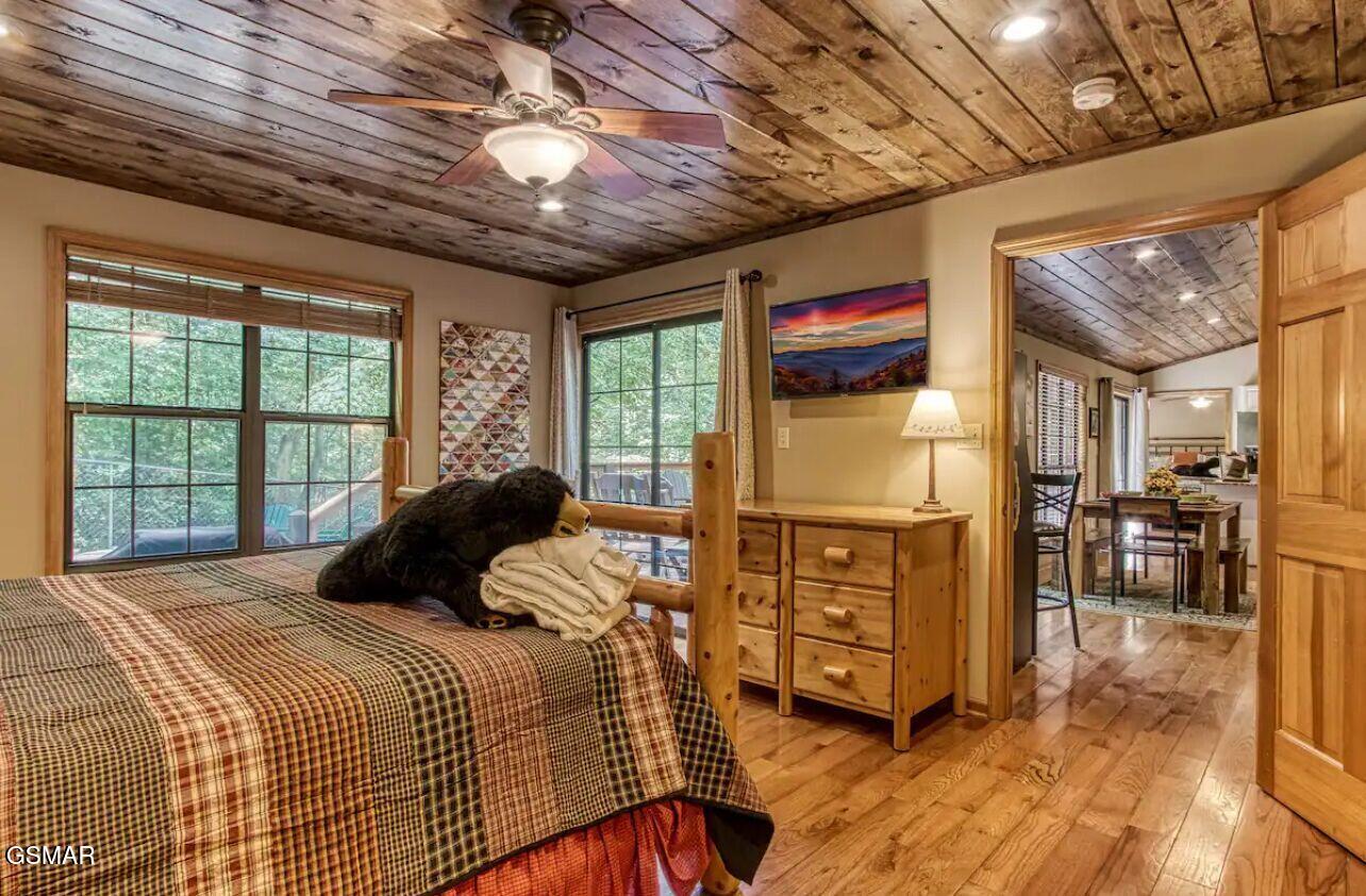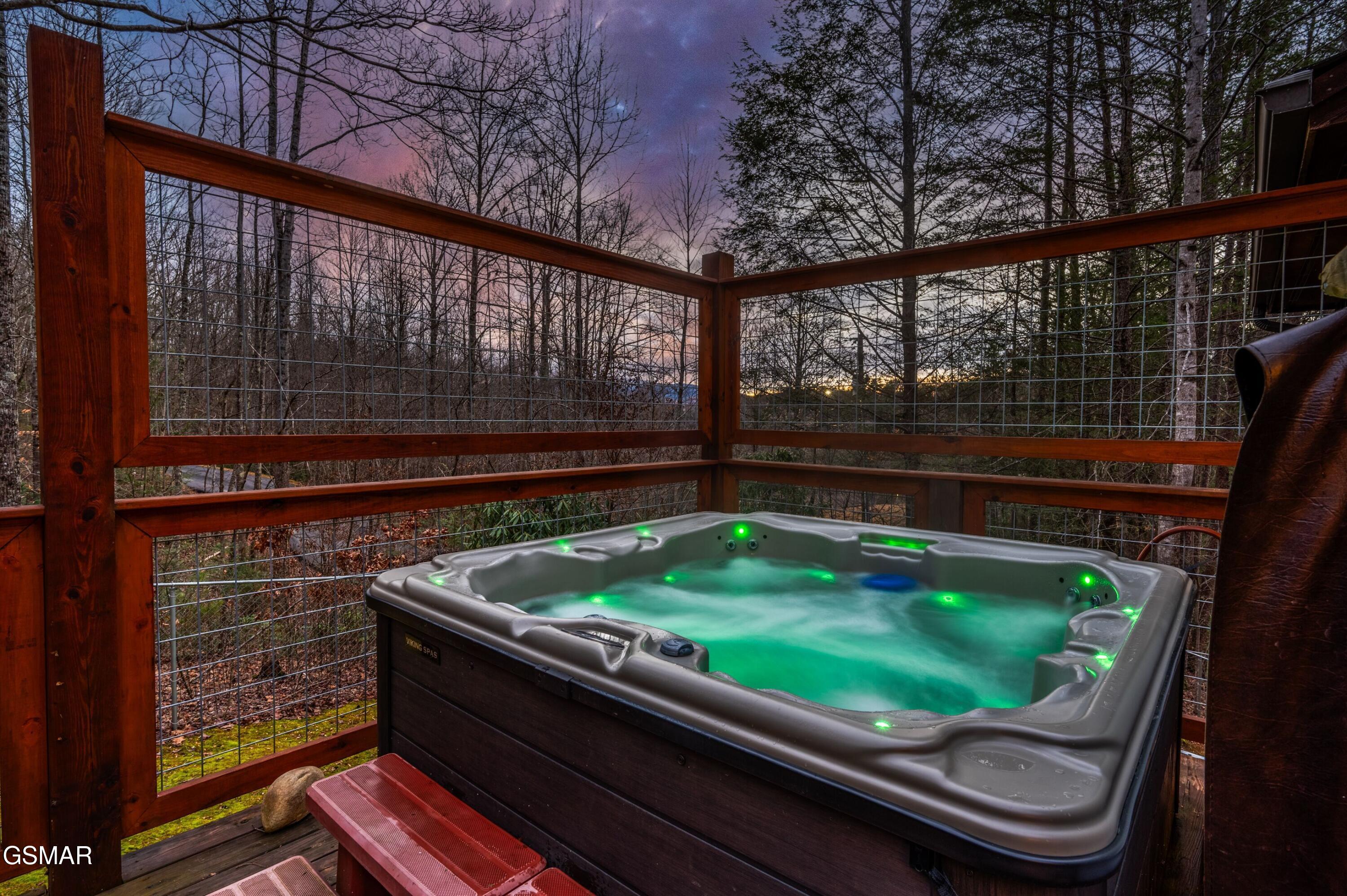 Tucked into a quiet, private setting on a big wooded lot, at the end of a quiet street, yet with everything Gatlinburg has to offer just minutes away. This contemporary chalet delivers the kind of balance that is hard to find in the Smokies. Two suite-style bedrooms, each with a walk-in closet and full bath, anchor the main level alongside a spacious great room where the living area, dining space, and kitchen all flow together naturally. The layout works well for guests, families, and owners alike. Step outside and the property really opens up. Two deck areas, a hot tub, a fenced rear yard, and an adjacent fire pit area create an outdoor living space that guests will gravitate toward at the end of a long day on the trails or in town. The location speaks for itself. The National Park entrance, downtown Gatlinburg, and the area's most visited attractions are all within a short drive. City services include trash pick-up, water, sewer, gas, high speed internet and there is no HOA. The property is already on an established rental program, generating over 66k each of the last two years.