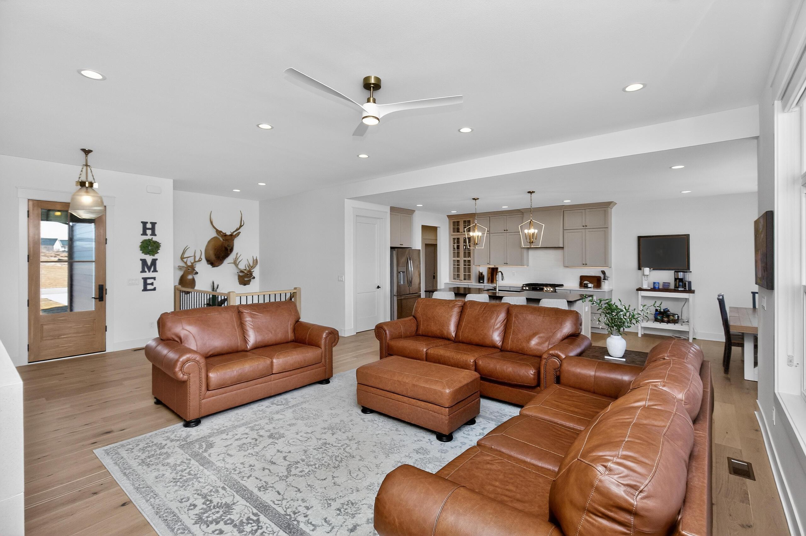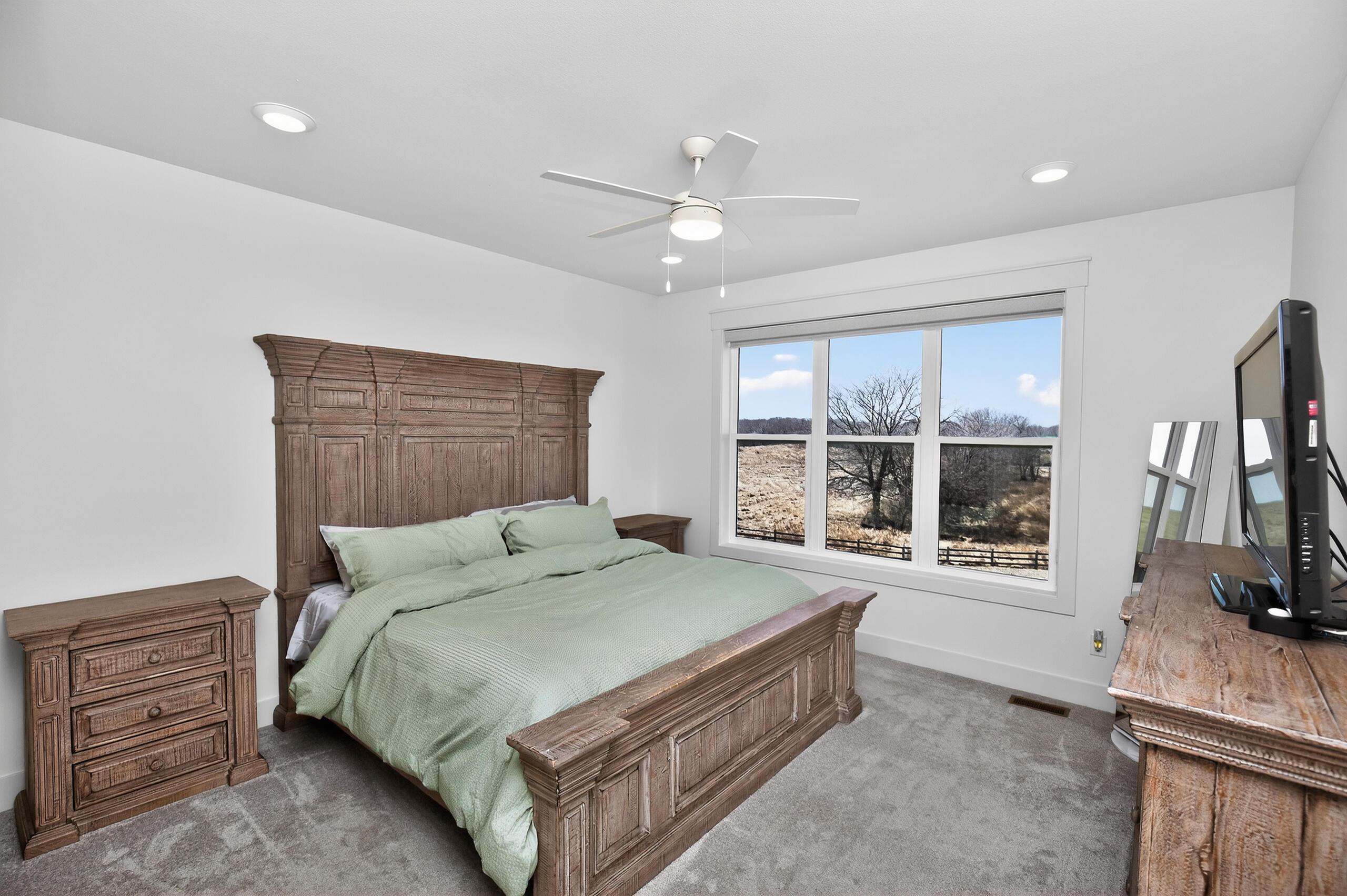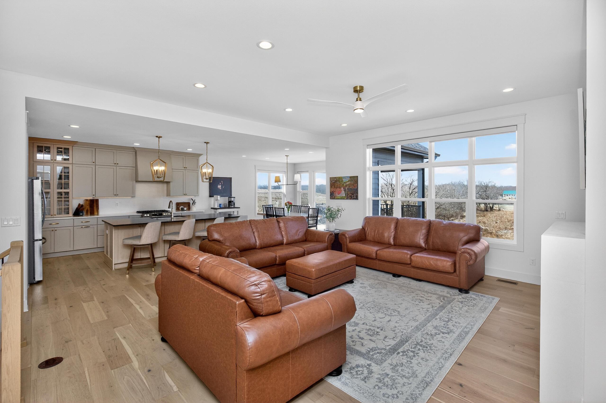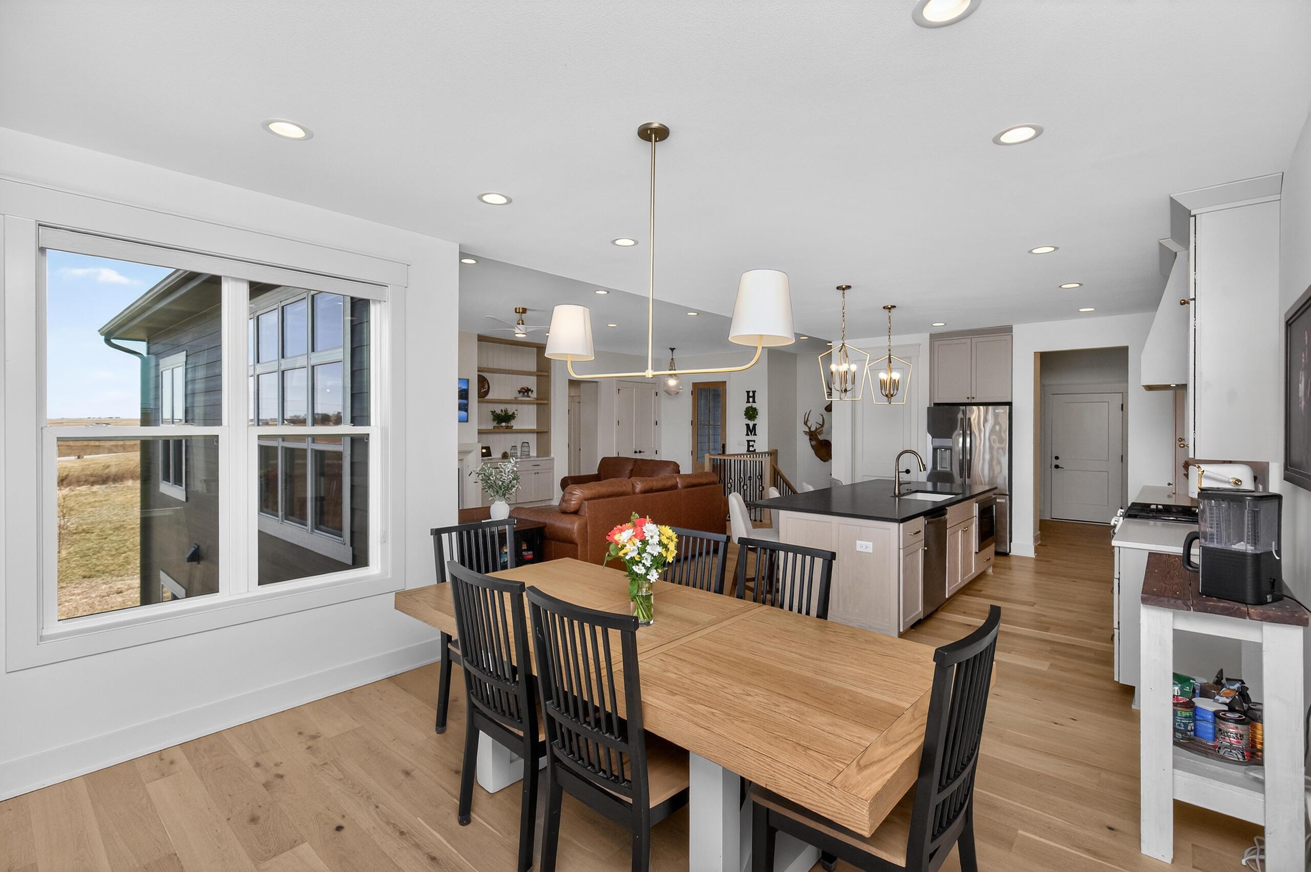 Welcome to 50133 Prairie Point Court in the highly desired Prairie Valley Development. Set on just over 3/4 of an acre backing to Story County Conservation Land, this is where everyday living meets the kind of setting thats hard to find.From the moment you walk in, it just feels right. Natural light fills the space, the living room fireplace invites you to slow down, and the built-ins add that perfect touch of character. The kitchen is the heart of it all -- featuring a large quartz island, custom cabinetry, walk-in pantry, and a dining space ready for everything from quiet mornings to full gatherings. Step out to the covered deck and take in the peaceful prairie views.The primary suite is your own private retreat with big windows overlooking the backyard, a soaker tub, tile shower, dual vanity, and walk-in closet. The main floor also offers two additional bedrooms, a full bath, laundry, and a mudroom with lockers off the 3-car garage.Downstairs is built for entertaining with 1,700 finished sq ft, an upscale wet bar, 2 bedrooms, a full bath, and a generous amount of storage space. Walk out to the patio, unwind in the hot tub, and enjoy those wide-open Iowa views.