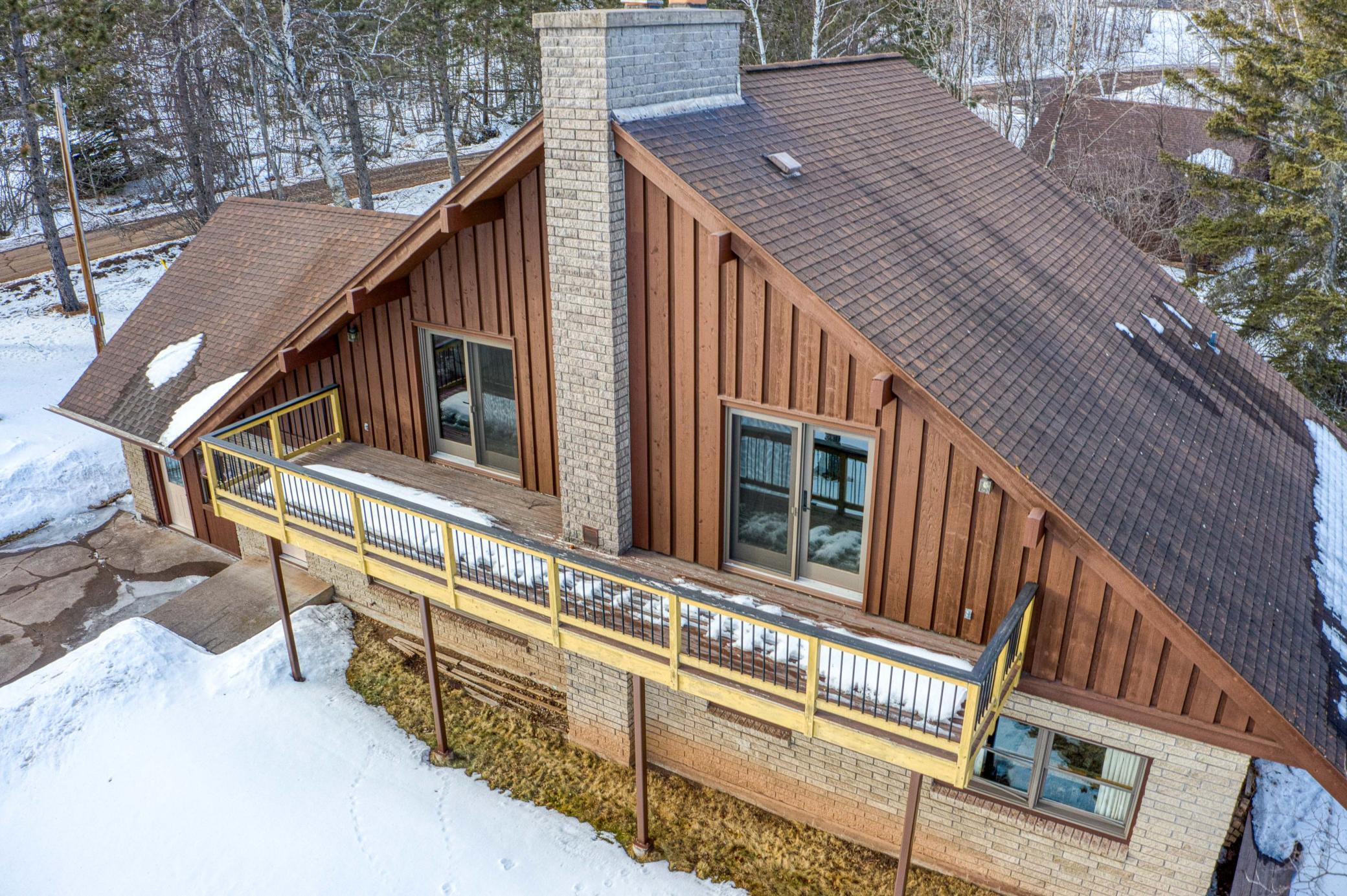 Stunning Lake Superior property! Split concrete brick construction with wood accents is the pillar of this 4 Bedroom home with 2 family rooms, former attached garage converted into a workshop.