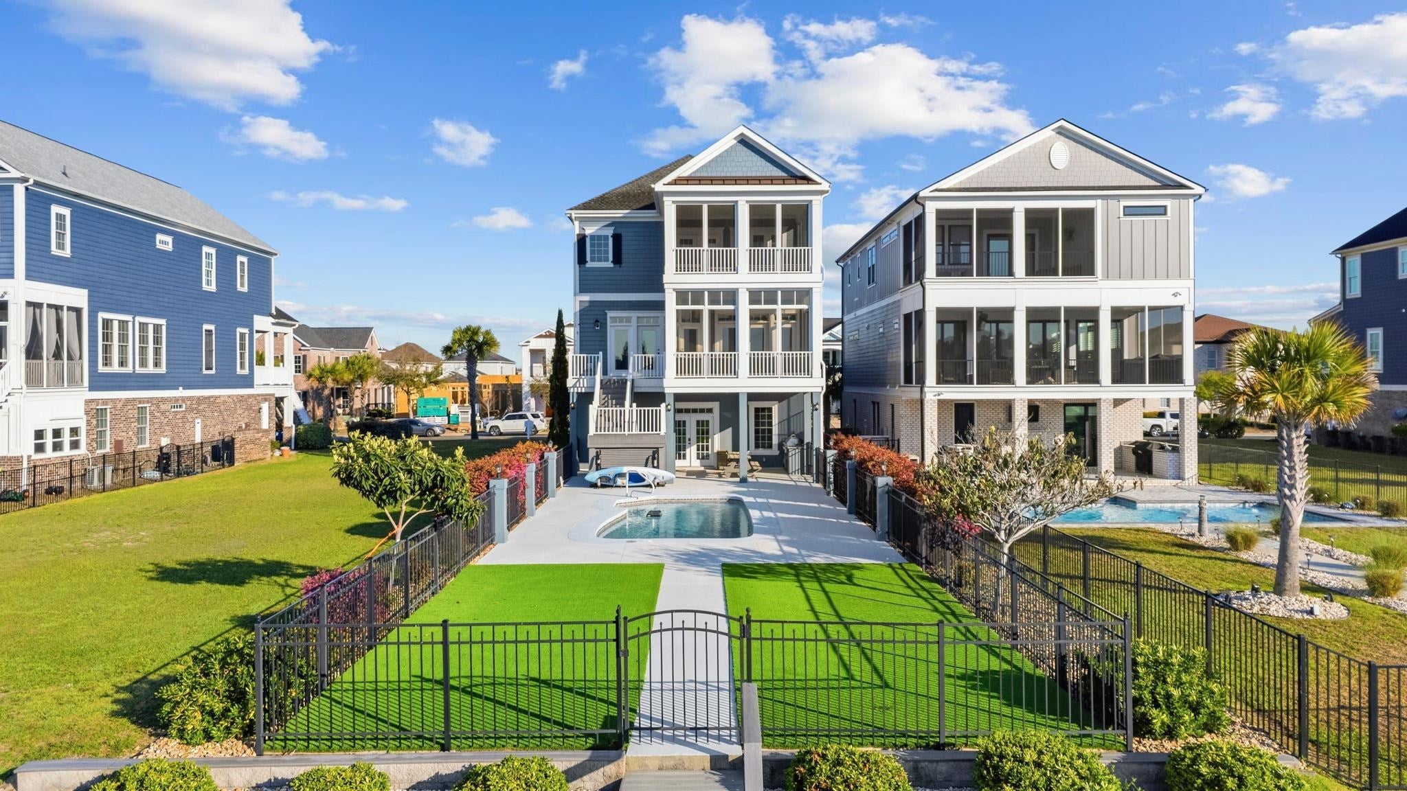 Experience elevated coastal living in this stunning 4-bedroom, 4-bath waterfront residence, ideally situated within the exclusive gated community of Waterway Palms Plantation along the Intracoastal Waterway. Thoughtfully updated in 2023, this home features a chef-inspired kitchen outfitted with high-end KitchenAid appliances, beautifully stacked cabinetry, a blend of quartz and granite surfaces, and a discreet butlers pantry with a pot filler, and ample storage for all of your counter top appliances. Perfect spot to prep for a night of entertaining. Wide-plank luxury vinyl flooring flows throughout the home, complemented by impressive 9- to 10-foot ceilings and contemporary LED lighting that enhances the bright, open feel in every room. Step outside to your own private retreat, where a saltwater pool with a cool deck and integrated heating and cooling system invites year-round enjoyment. The recently added floating dock offers direct water access and is ready for a future boat lift, making it ideal for boating enthusiasts seeking the ultimate Intracoastal lifestyle. Designed with both comfort and convenience in mind, the home includes a residential elevator providing easy access to all levels, as well as an outdoor kitchen featuring a premium Lion grill for effortless gatherings. Energy-efficient upgrades such as spray foam insulation, a Rinnai tankless water heater, and a backup propane generator to ensure peace of mind and year-round comfort. The spacious 2.5-car garage is equipped with a Tesla charging station, while the inviting living area is anchored by a direct vent propane fireplace with a reclaimed railroad tie mantle. Additional highlights include professional-grade dog turf, a full irrigation system, impact-resistant windows and doors, and hurricane-rated garage doors for added security and durability. The HVAC units were replaced in 2020 & 2023. This exceptional property offers a seamless blend of luxury, functionality, and coastal charm, an incredible opportunity to enjoy the waterfront lifestyle. This home provides outstanding upside for a new buyer, with generously sized rooms and numerous upgrades already completed by the current owners. Select photos also highlight ideas for simple, cost-effective updates to the primary bath and laundry room, which could further elevate the home to compete with some of the highest-priced properties in the neighborhood. Waterway Palms delivers a true resort-style experience with gated entry, direct Intracoastal access, private boat ramp and dock, a community pool, tennis, basketball & bocce ball courts, play ground & fitness center all located around the oversized community club house where they have planned community events for the kids and adults. All of this in the award winning Carolina Forest School District. Located just minutes from beautiful beaches, top-tier dining, shopping, healthcare facilities, and Coastal Carolina University. Call today for your private viewing. *All information is deemed reliable, buyer and buyers agent must verify.