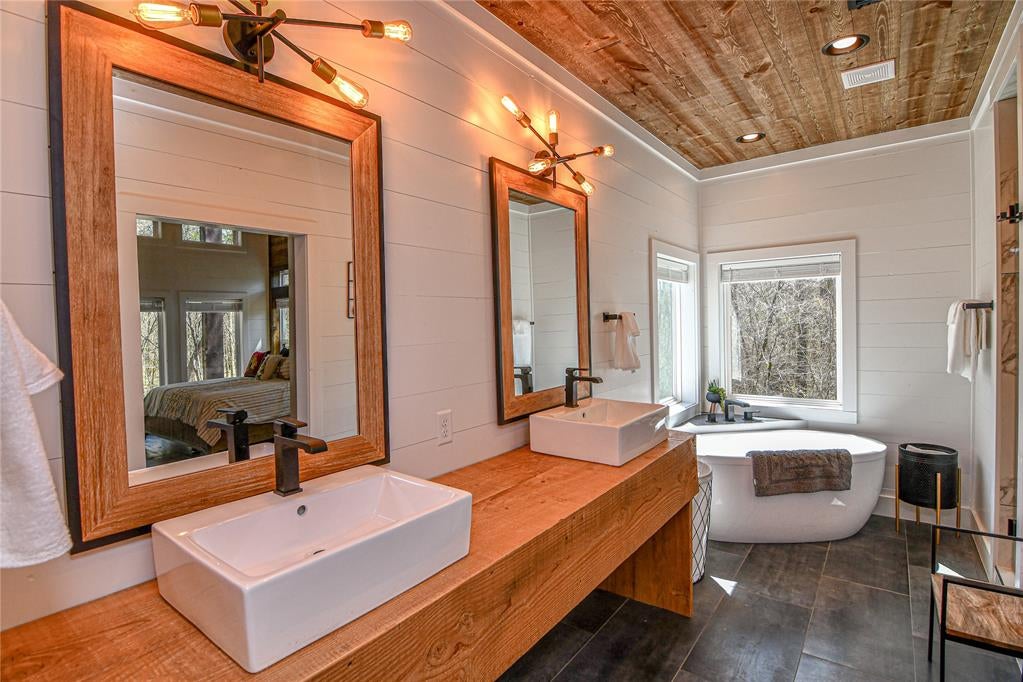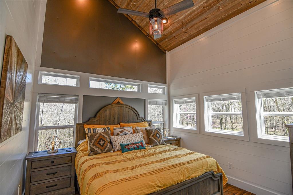 Chasing Rainbows is a custom, quality build, high income producing short term rental. The rustic-modern cabin sits on a peaceful 2-acre wooded lot with a seasonal creek and offers the perfect blend of upscale comfort, entertainment, and outdoor living just minutes from Broken Bow Lake, restaurants, and local attractions. With extremely strong rental history, this stunning two-story lodge features six king bedrooms, each with a private en suite bathroom, giving every guest their own relaxing retreat. With additional sleeper sofas in the game loft, the cabin comfortably sleeps up to 16 guests. Custom features include: dramatic 32-foot vaulted ceilings and a one-of-a-kind custom hanging bulb chandelier, hand-carved fireplace mantle featuring a trout stream scene, 11-foot live edge island, two refrigerators, two sets of dishes & custom river dining table seats up to 15 guests. Upstairs, you will find a spacious game loft packed with entertainment including: Pool table,Shuffleboard table, Air hockey, 400 classic arcade video game machine, Game table with board games & a Large smart TV. Outdoor amenities include a 1,500 sq ft covered back porch, complete with an outdoor fireplace, TV, and dining table for 15. Relax in the oversized hot tub, gather around the fire pit beside the seasonal creek, or enjoy yard games, ping pong, hammocks, and a childrens play fort. Call today to schedule your private showing.