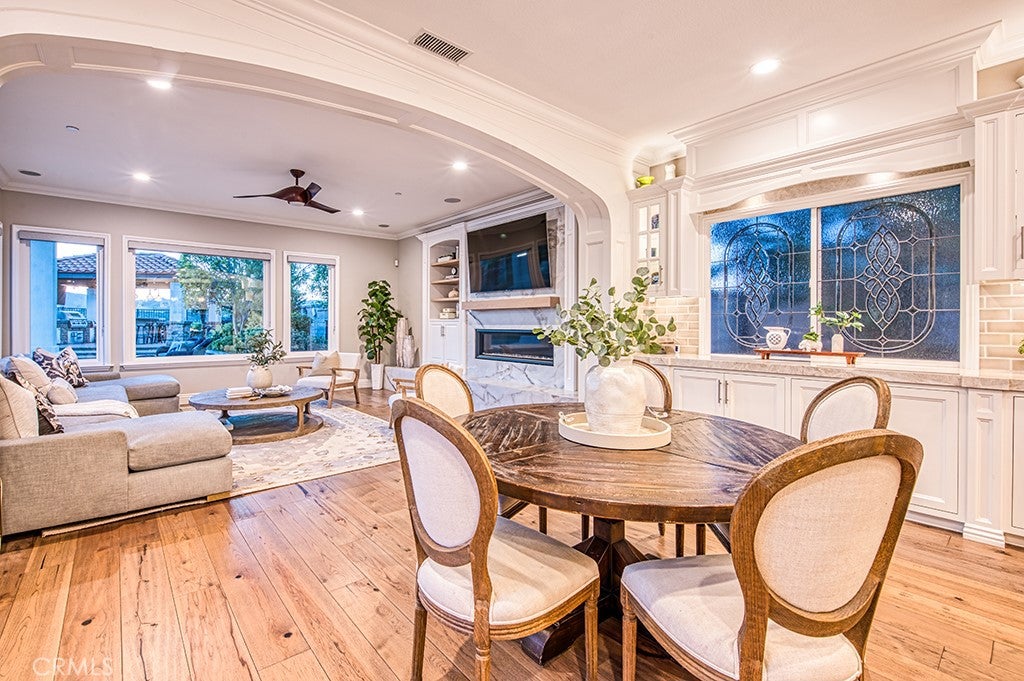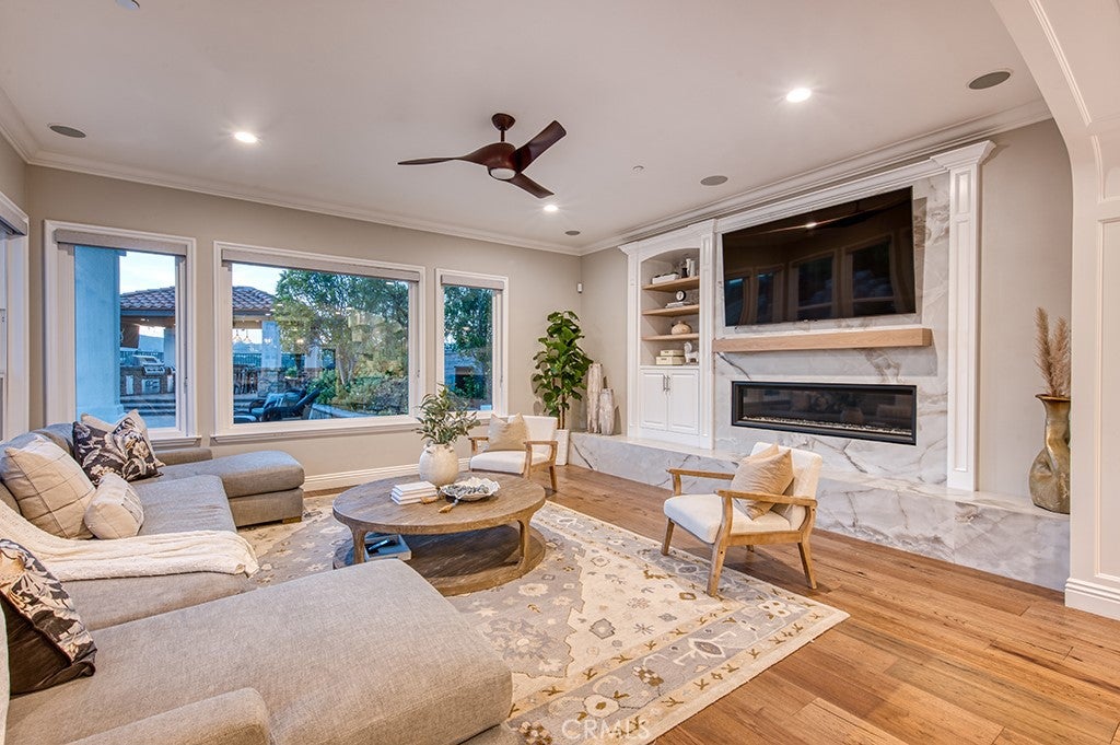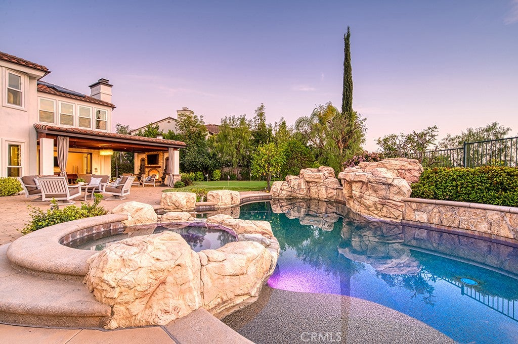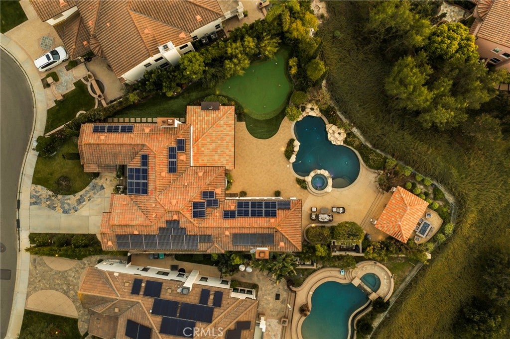 Perfectly situated on an approximately 13,000 sq. ft. cul-de-sac golf course view lot behind the gates of Coto de Caza, this exceptional pool home offers a rare combination of privacy, views, and a highly desirable floor plan. Set on an oversized, pie-shaped lot of approximately one-third of an acre at the end of the cul-de-sac, the elevated location overlooks the 9th tee box and captures sweeping golf course and hillside views while providing exceptional privacy. Designed for both comfortable everyday living and effortless entertaining, the residence features a main-level bedroom ideal for guests or multi-generational living, along with an expansive great room that serves as the heart of the homeperfect for gathering with family and friends. Upstairs, three generously sized bedrooms include the spacious primary suite, complemented by a versatile bonus room that can easily function as a media room, home office, or playroom. The home has undergone an extensive remodel highlighted by a beautifully redesigned kitchen, a spa-inspired primary bathroom, and thoughtfully upgraded interiors including wide-plank hardwood flooring, a linear fireplace integrated into the family room entertainment center, newly installed high-efficiency windows, updated interior doors, a leaded glass front entry door, custom garage doors, refreshed exterior paint, and a recently installed variable-speed HVAC system. The backyard is designed as a true entertainers retreat, featuring multiple outdoor living areas that seamlessly extend the home for indoor-outdoor living. Enjoy a fireplace lounge, separate fire pit, pool and spa with rock waterfall, and a private golf putting and chipping green, all surrounded by mature trees that enhance both privacy and the scenic golf course views.