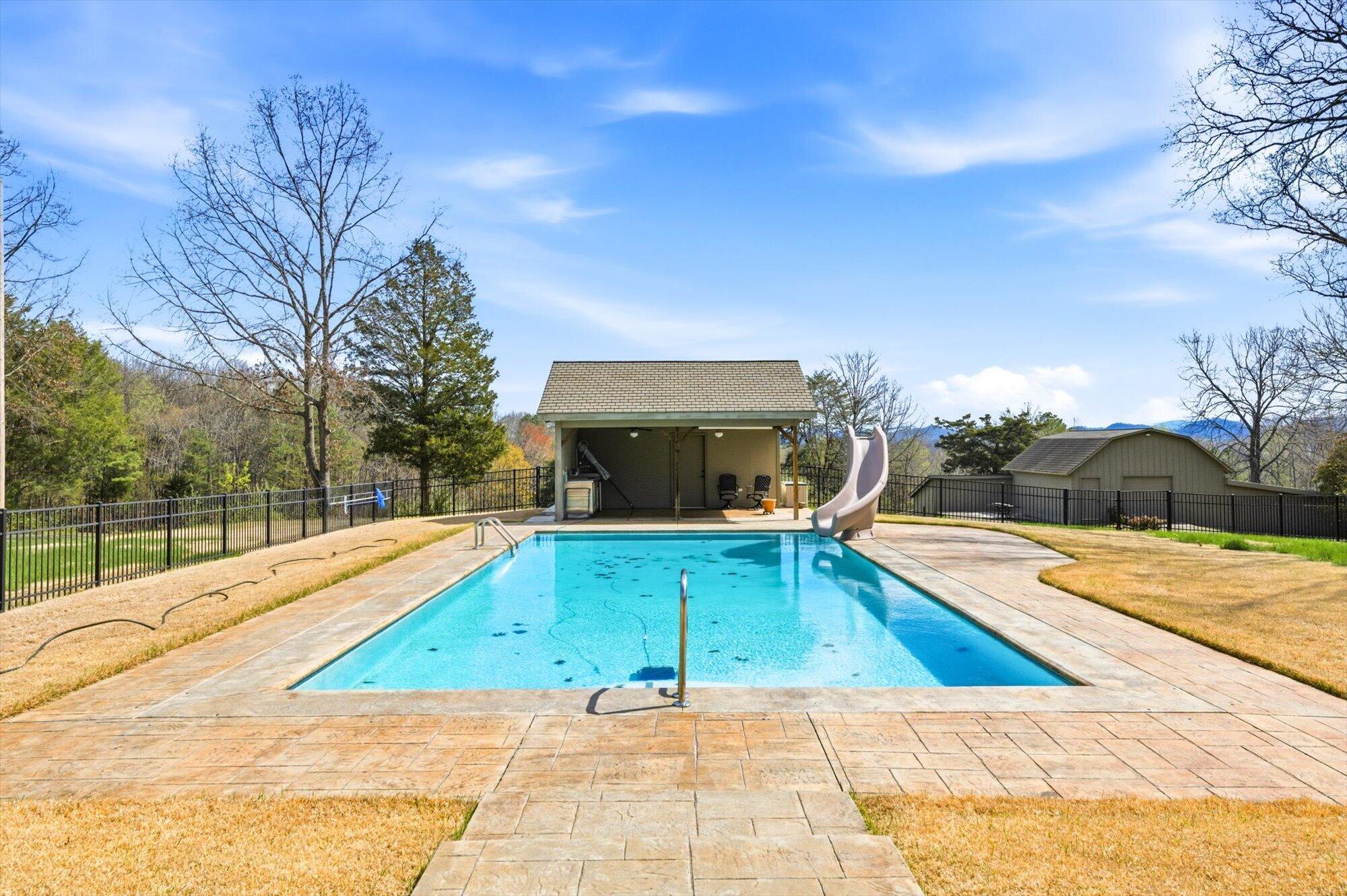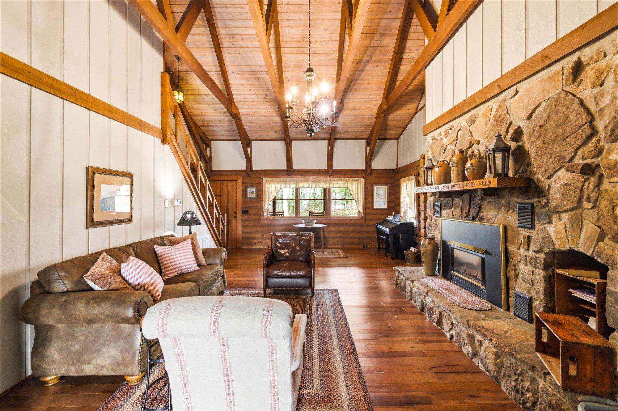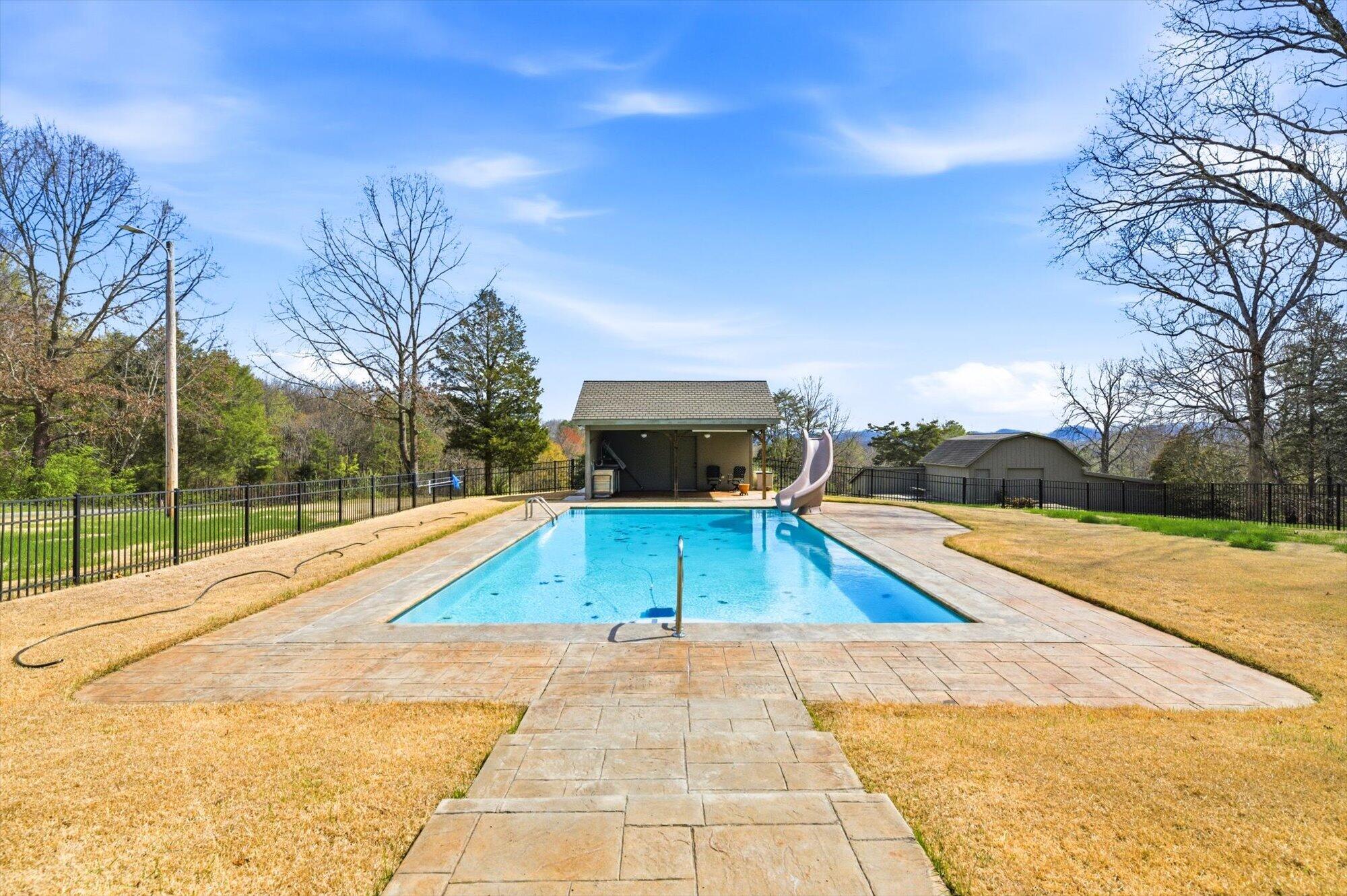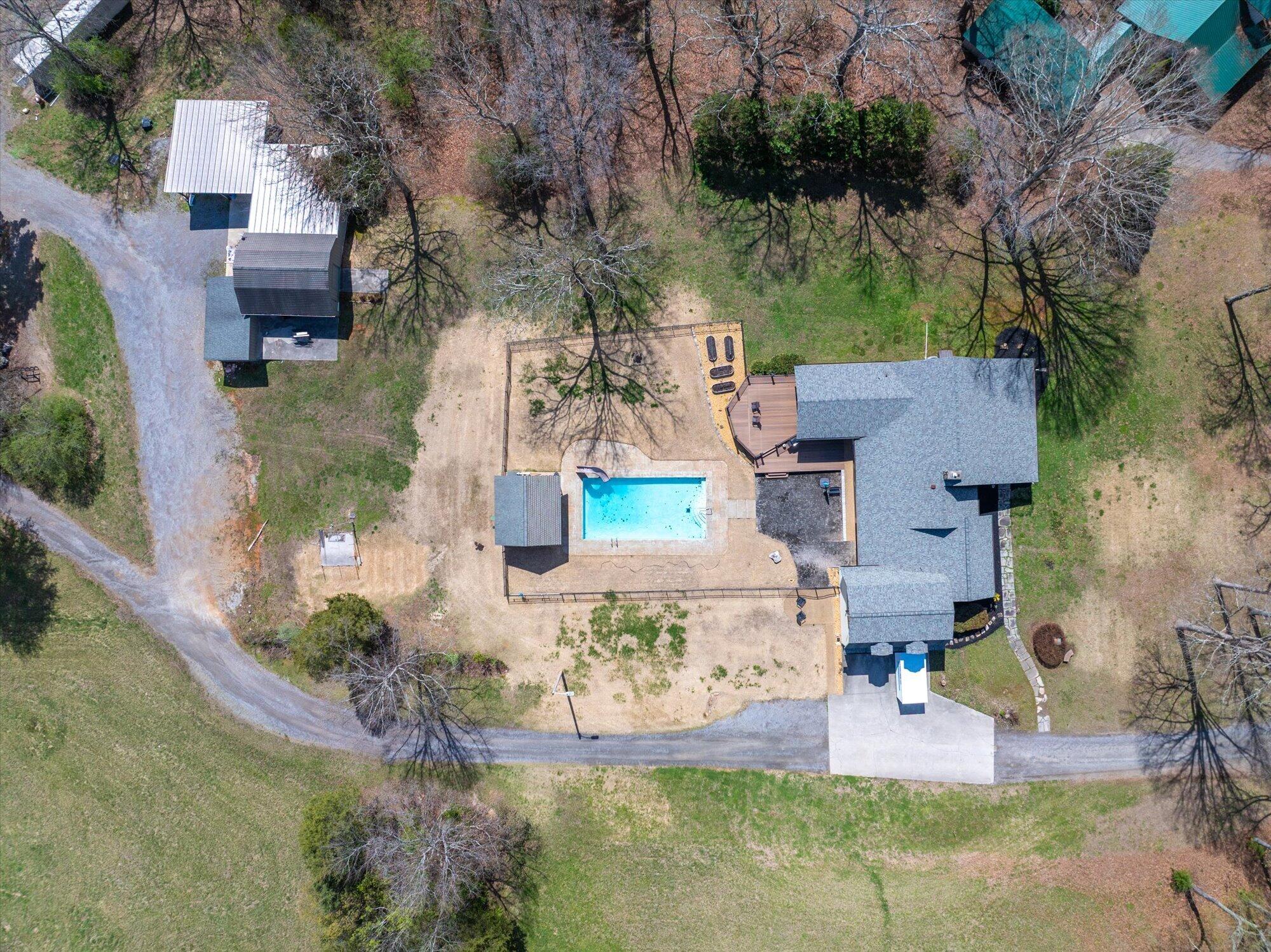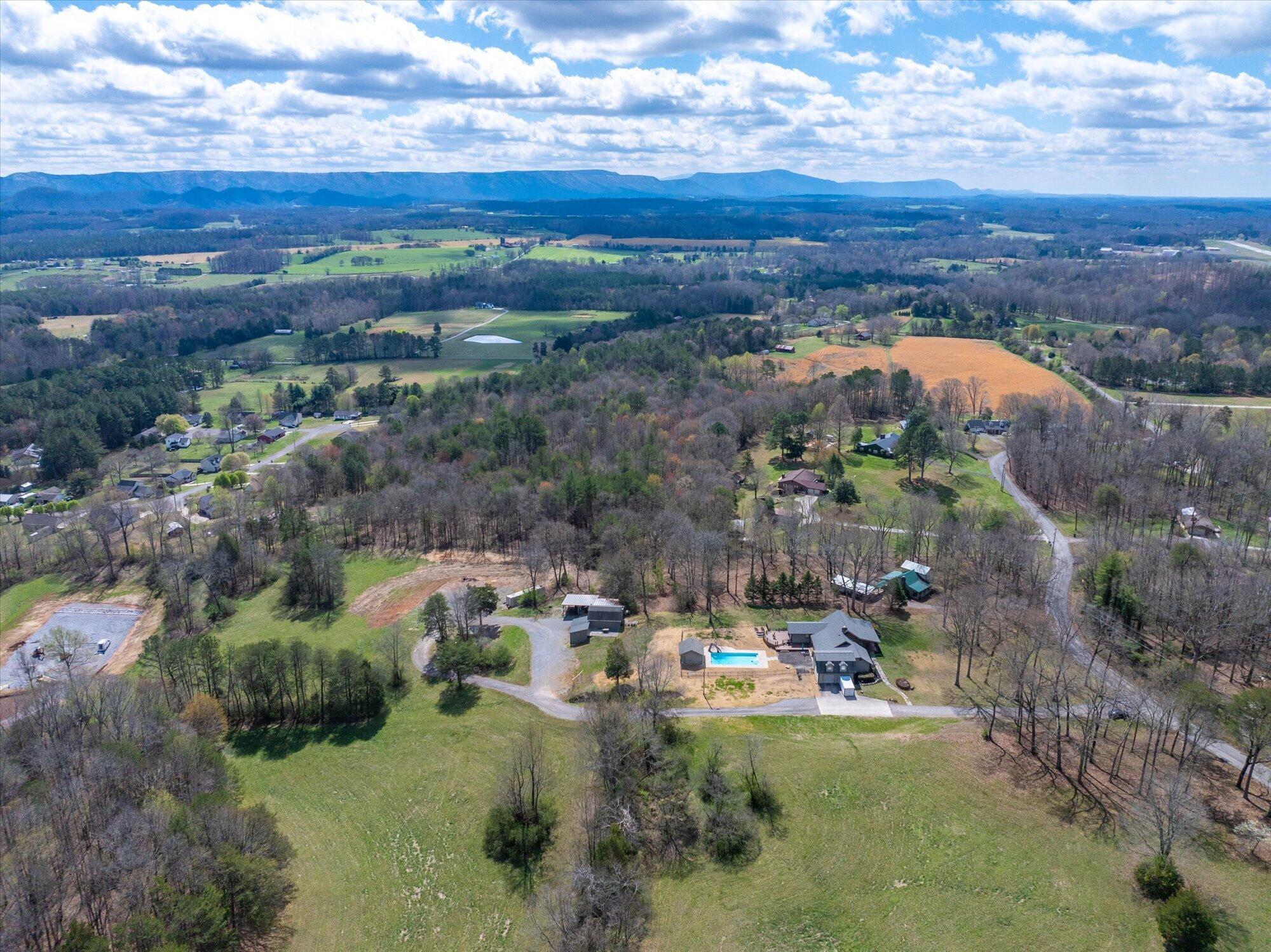 Immaculate log cabin on 6.47 /- cleared acres in McMinn County! This 3,279 sq ft, 4-bedroom, 3-bath home in Englewood offers stunning views of Starr Mountain right in your backyard. Once featured in 'Log Home Guide for Builders and Buyers,' this property has been meticulously maintained, and it shows.Step inside to an open-concept living and kitchen area where a striking stone fireplace serves as a centerpiece--doubling as the gas range on the kitchen side. Natural light pours in, highlighting hardwood floors, custom cherry cabinetry, and granite countertops. Just off the kitchen, you'll find an additional den, a spacious sunroom overlooking the pool, and a large utility room.The primary suite and guest bedrooms are thoughtfully situated on one side of the home, while a fourth bedroom and full bath are located upstairs. The primary suite is a true retreat, featuring wide plank hardwood floors, a generous layout, and a walk-in closet.Above the attached two-car garage, a versatile bonus space with a full bath offers endless possibilities--perfect for a guest suite, game room, or hobby space.Outdoors, enjoy a fully fenced saltwater pool and pool house complete with a convenient changing room--ideal for relaxing or entertaining. Lastly, located behind the pool house is a one car garage, with workshop space above, and a 12x12 garage door.This property is a must-see for those seeking a beautiful country setting, privacy, and ample land--perfect for bringing your animals. Please note, red boundary lines are approximate. Buyer to verify all information.