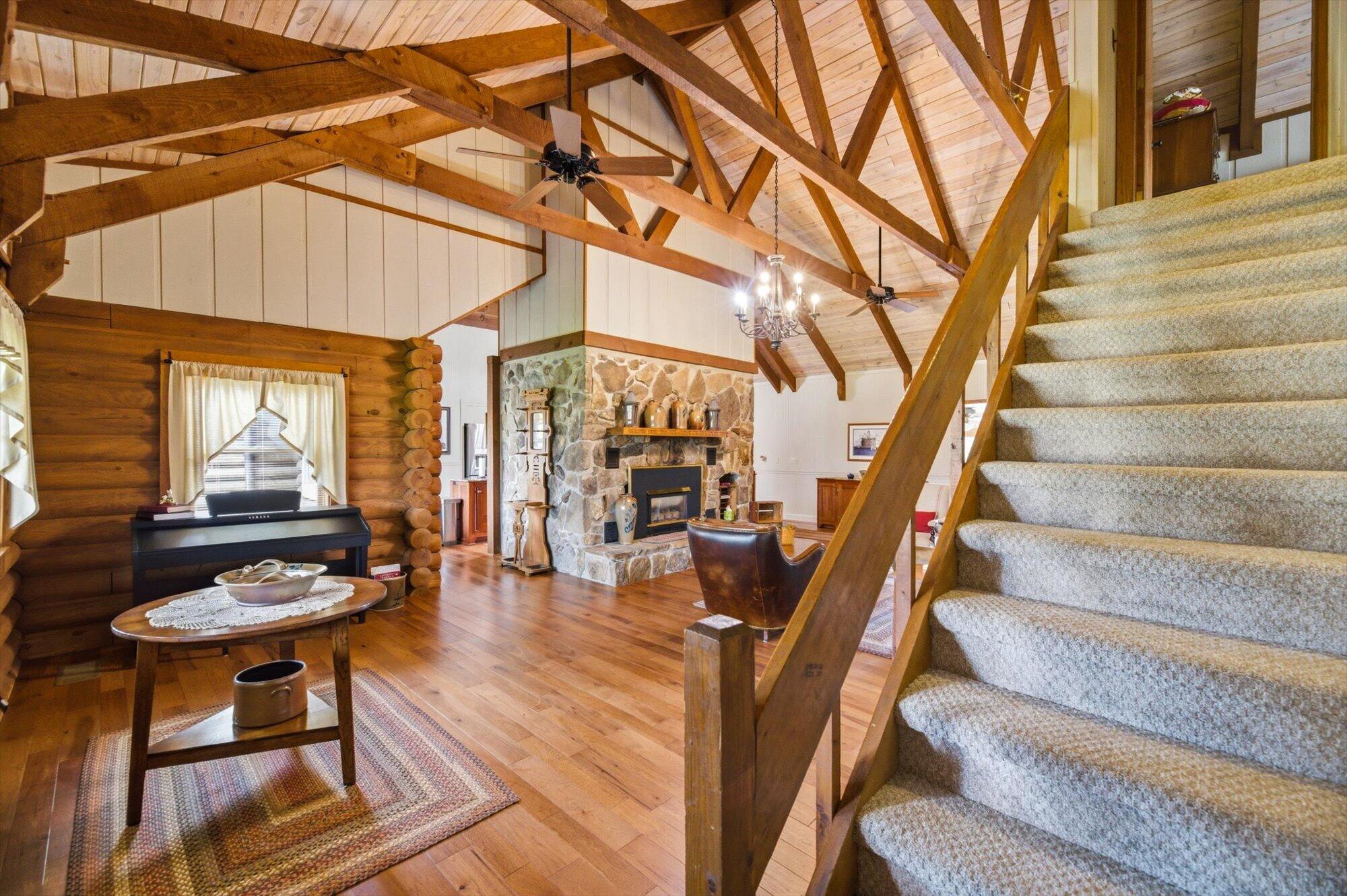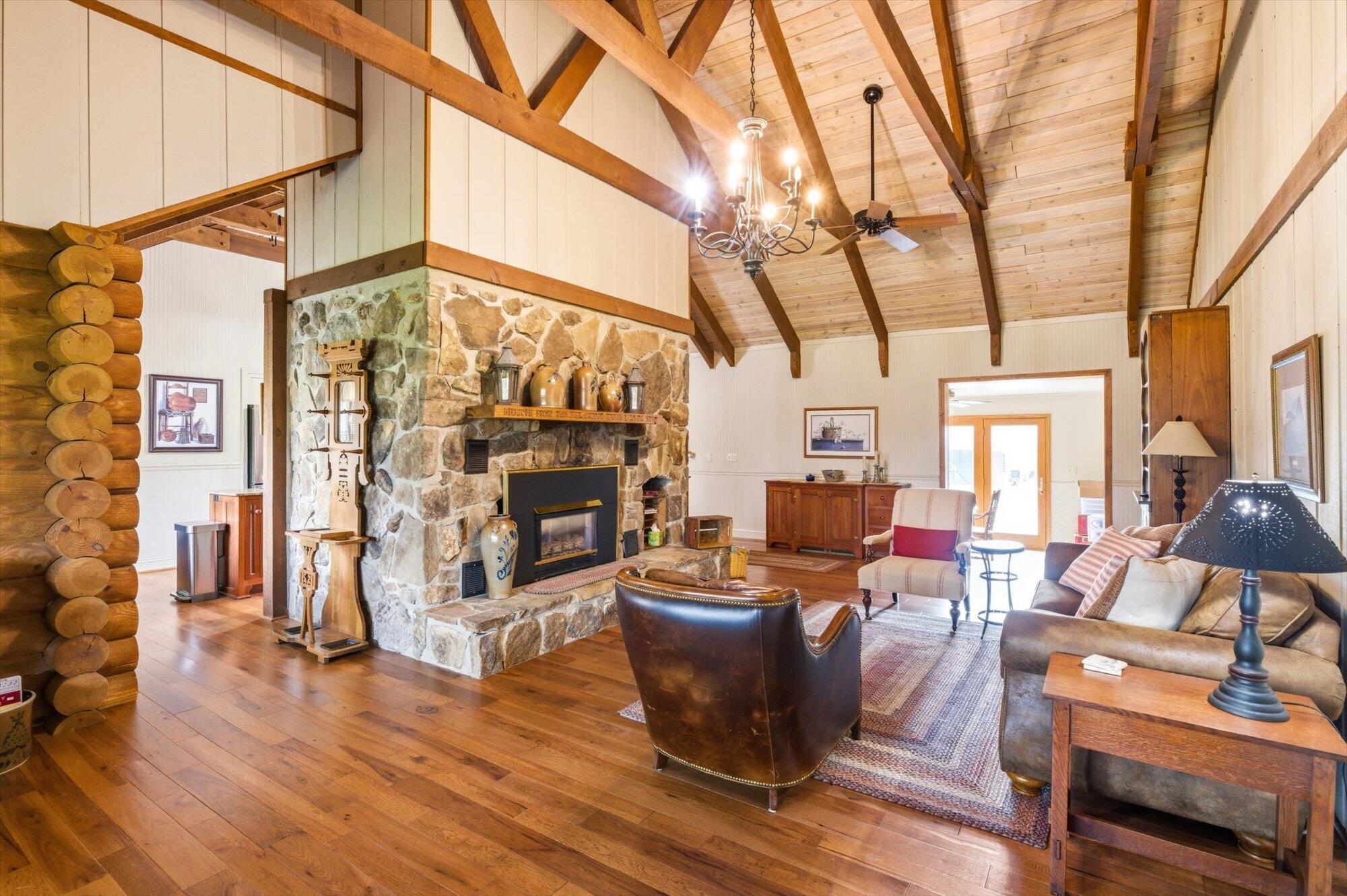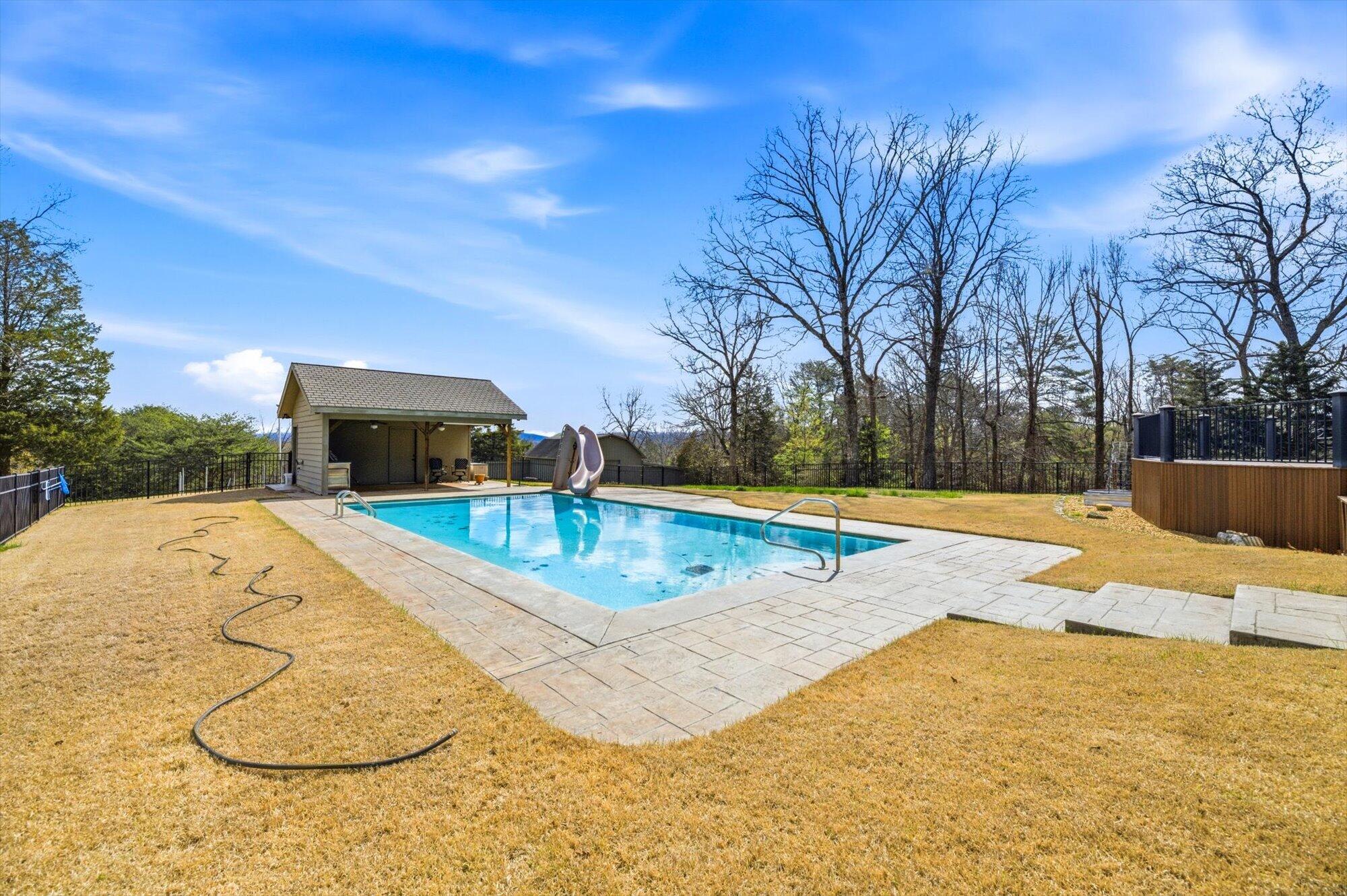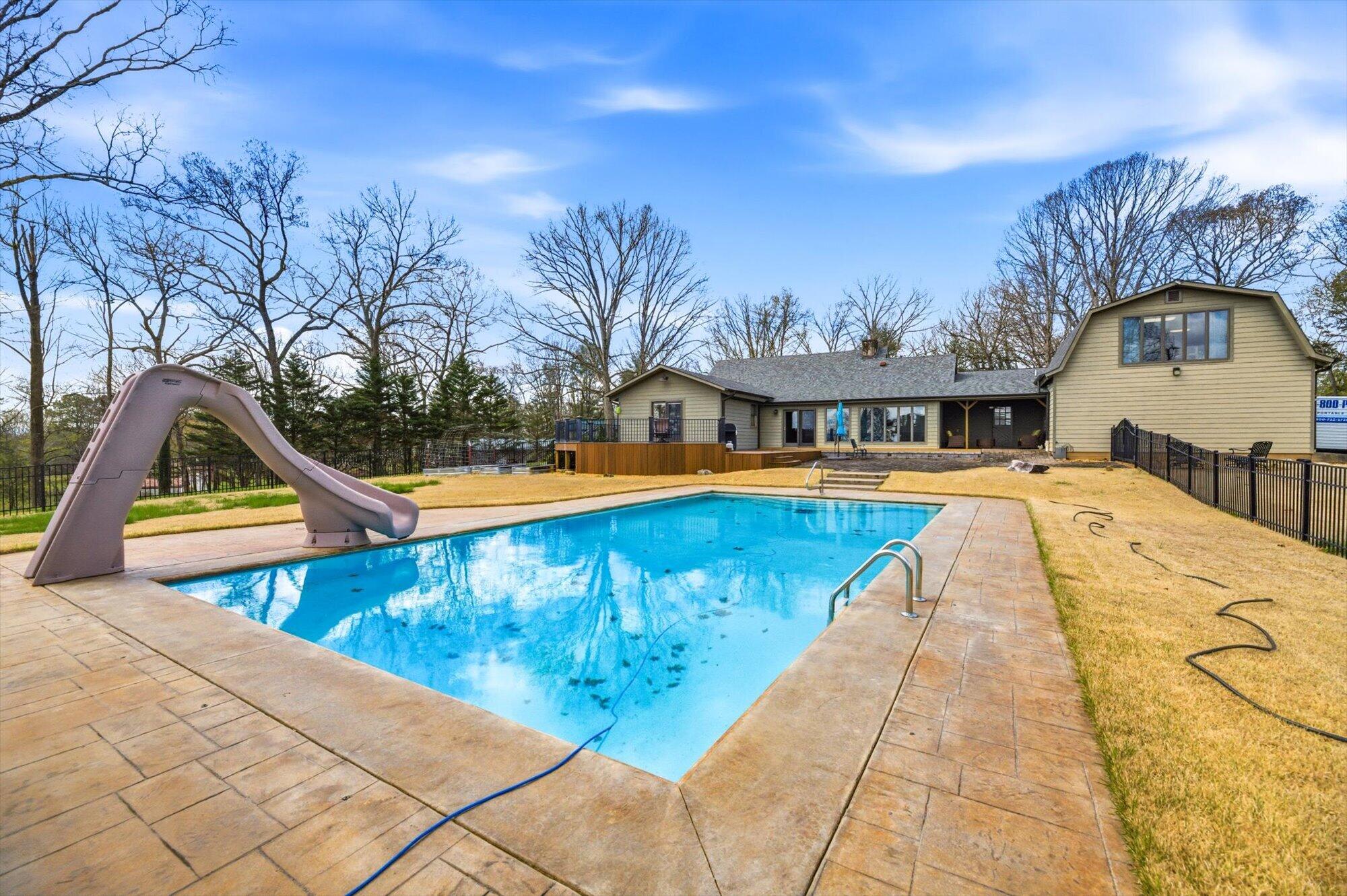 Immaculate log cabin on 6.47 /- cleared acres in McMinn County! This 3,279 sq ft, 4-bedroom, 3-bath home in Englewood offers stunning views of Starr Mountain right in your backyard. Once featured in 'Log Home Guide for Builders and Buyers,' this property has been meticulously maintained, and it shows.Step inside to an open-concept living and kitchen area where a striking stone fireplace serves as a centerpiece--doubling as the gas range on the kitchen side. Natural light pours in, highlighting hardwood floors, custom cherry cabinetry, and granite countertops. Just off the kitchen, you'll find an additional den, a spacious sunroom overlooking the pool, and a large utility room.The primary suite and guest bedrooms are thoughtfully situated on one side of the home, while a fourth bedroom and full bath are located upstairs. The primary suite is a true retreat, featuring wide plank hardwood floors, a generous layout, and a walk-in closet.Above the attached two-car garage, a versatile bonus space with a full bath offers endless possibilities--perfect for a guest suite, game room, or hobby space.Outdoors, enjoy a fully fenced saltwater pool and pool house complete with a convenient changing room--ideal for relaxing or entertaining. Lastly, located behind the pool house is a one car garage, with workshop space above, and a 12x12 garage door.This property is a must-see for those seeking a beautiful country setting, privacy, and ample land--perfect for bringing your animals. Please note, red boundary lines are approximate. Buyer to verify all information.