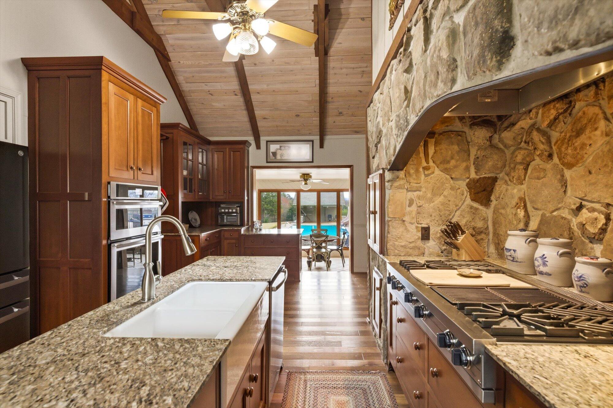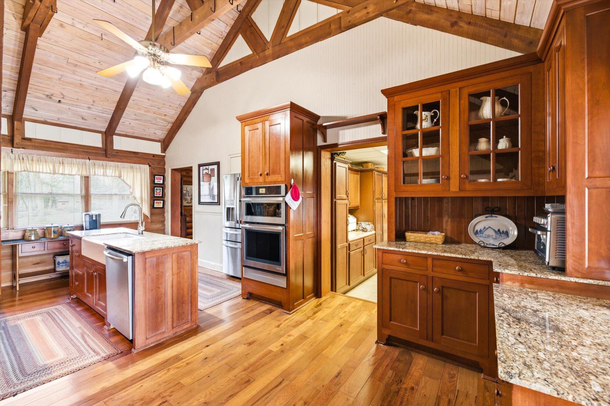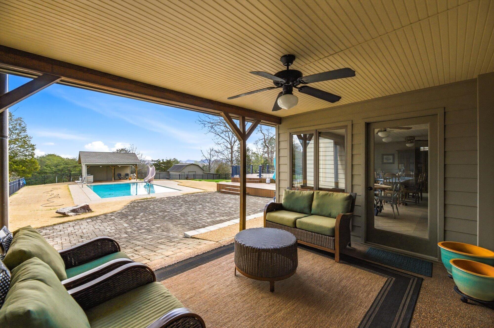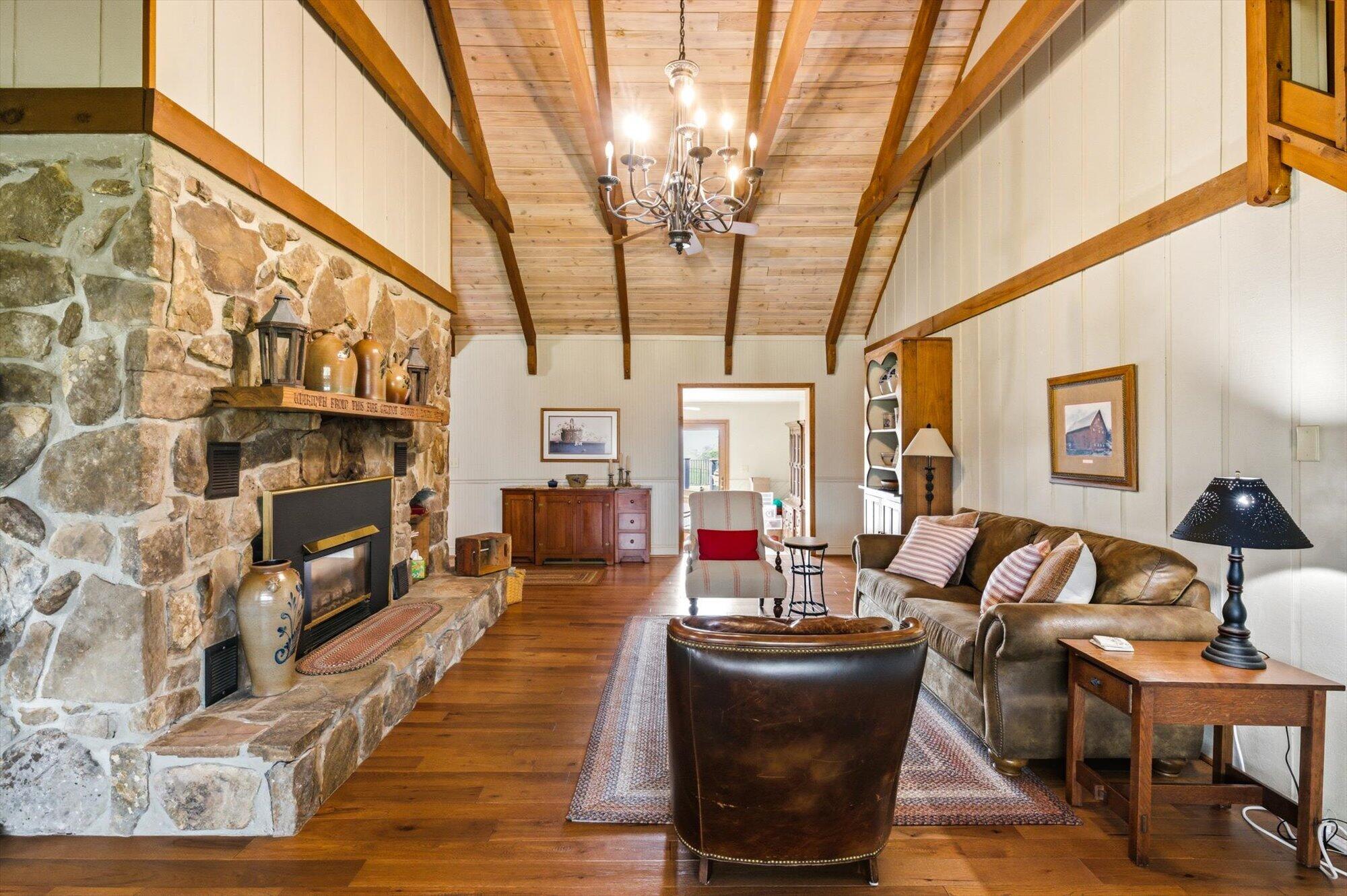 Immaculate log cabin on 6.47 /- cleared acres in McMinn County! This 3,279 sq ft, 4-bedroom, 3-bath home in Englewood offers stunning views of Starr Mountain right in your backyard. Once featured in 'Log Home Guide for Builders and Buyers,' this property has been meticulously maintained, and it shows.Step inside to an open-concept living and kitchen area where a striking stone fireplace serves as a centerpiece--doubling as the gas range on the kitchen side. Natural light pours in, highlighting hardwood floors, custom cherry cabinetry, and granite countertops. Just off the kitchen, you'll find an additional den, a spacious sunroom overlooking the pool, and a large utility room.The primary suite and guest bedrooms are thoughtfully situated on one side of the home, while a fourth bedroom and full bath are located upstairs. The primary suite is a true retreat, featuring wide plank hardwood floors, a generous layout, and a walk-in closet.Above the attached two-car garage, a versatile bonus space with a full bath offers endless possibilities--perfect for a guest suite, game room, or hobby space.Outdoors, enjoy a fully fenced saltwater pool and pool house complete with a convenient changing room--ideal for relaxing or entertaining. Lastly, located behind the pool house is a one car garage, with workshop space above, and a 12x12 garage door.This property is a must-see for those seeking a beautiful country setting, privacy, and ample land--perfect for bringing your animals. Please note, red boundary lines are approximate. Buyer to verify all information.