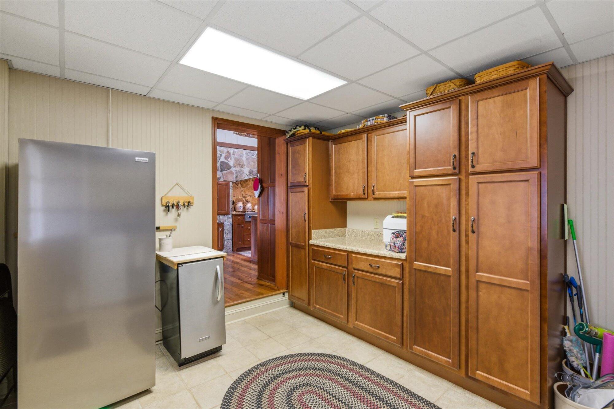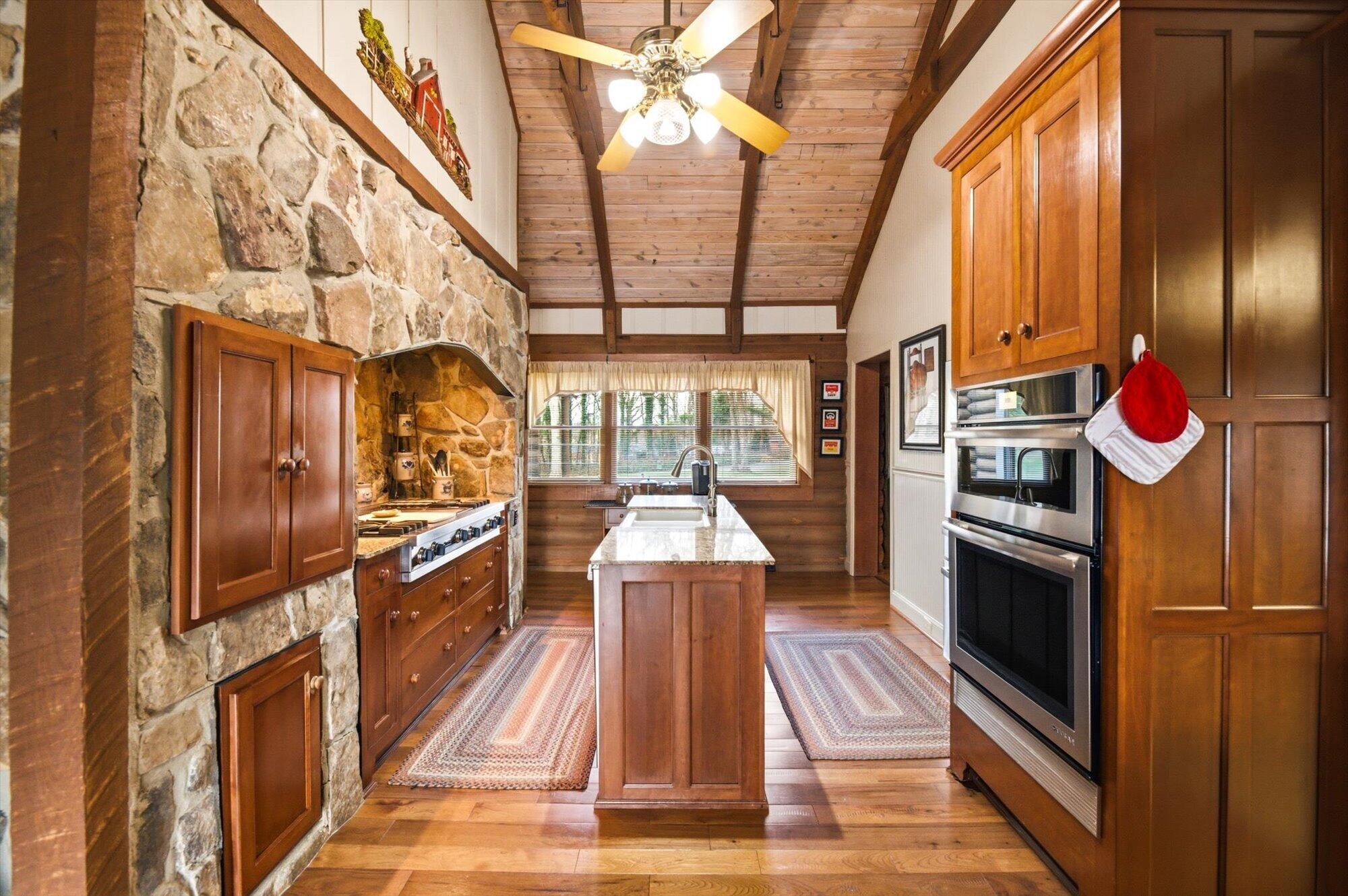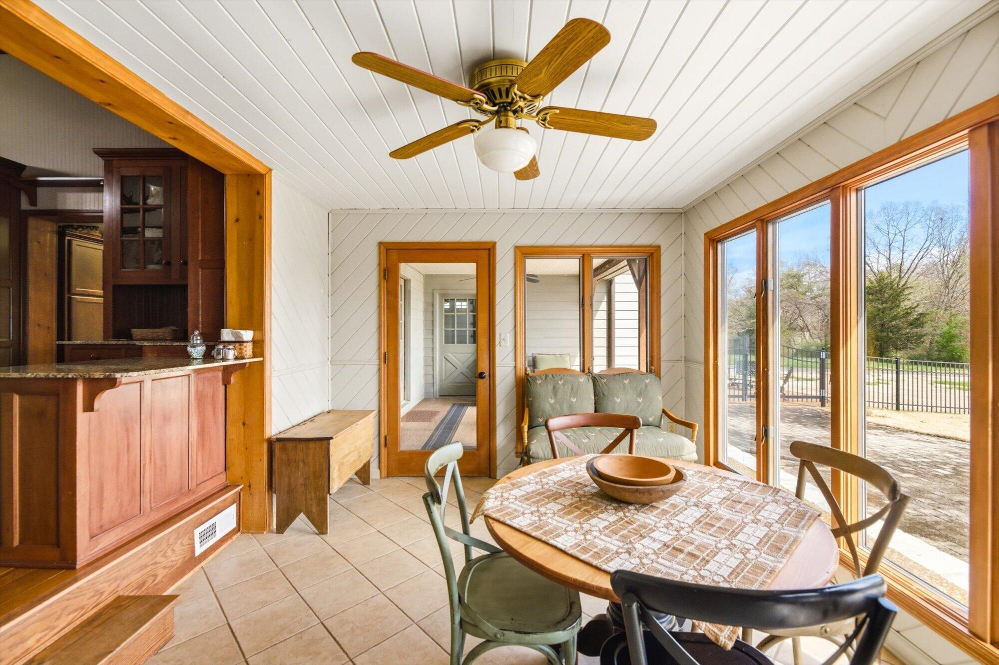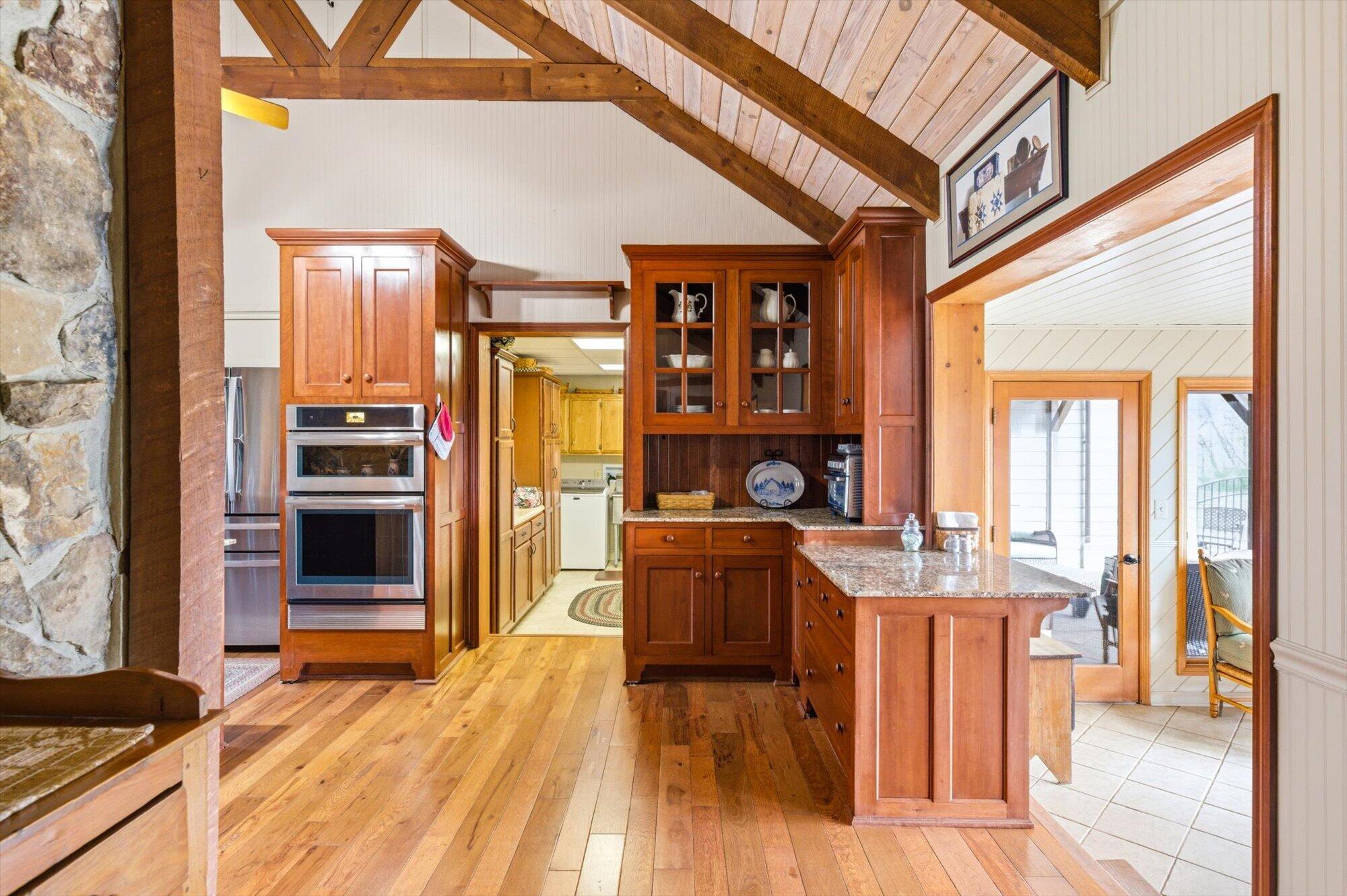 Tucked along the shoreline of Lake Monroe, this charming Swiss chalet-style retreat offers the relaxed lake lifestyle buyers dream about, complete with a coveted boat slip at the neighborhood dock. Just bring a swimsuit, this home is being sold turn-key! Spend summer mornings on the water and wind down in the evenings around a lakeside campfire beneath the trees. Situated in Salt Creek Estates in Monroe County, the home is surrounded by the wooded hills and natural beauty that make this area of Southern Indiana so special. The 4-bed, 2-bath ranch captures the timeless feel of a classic lake cabin. Warm wood interiors, exposed beams, and two stone fireplaces create inviting gathering spaces, while large windows frame peaceful views of Lake Monroe. The walkout lower level provides additional living and recreation space, ideal for hosting guests after a day on the water. Whether you're looking for a weekend getaway or comfortable year-round living, this property offers a rare opportunity to enjoy lake access just outside your back door while living less than 30 minutes to Bloomington or downtown Nashville.