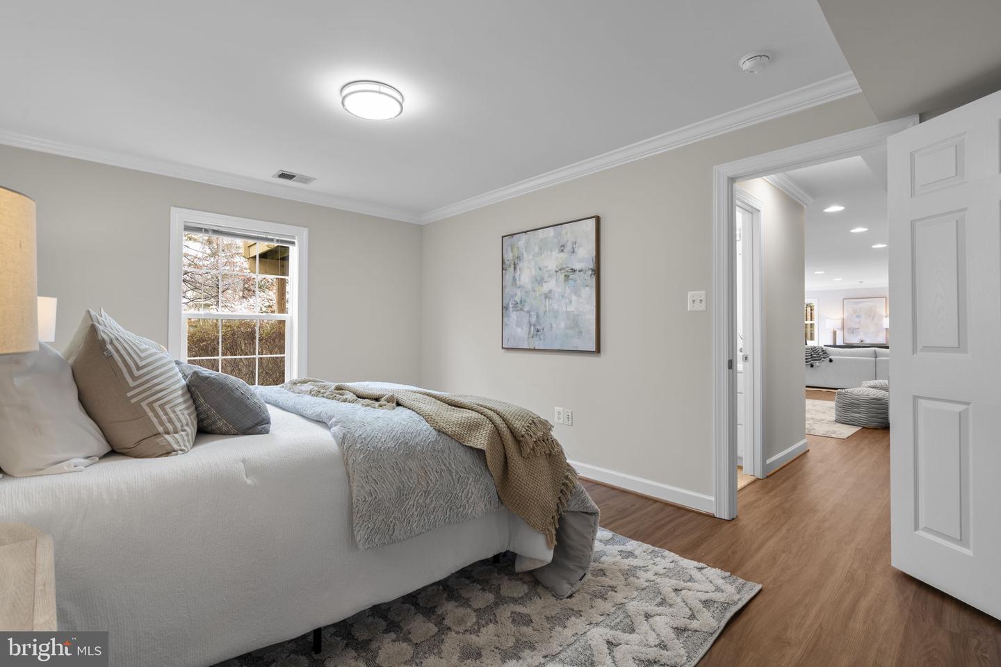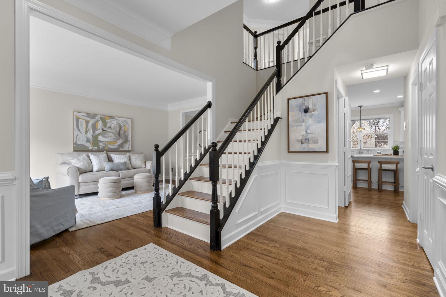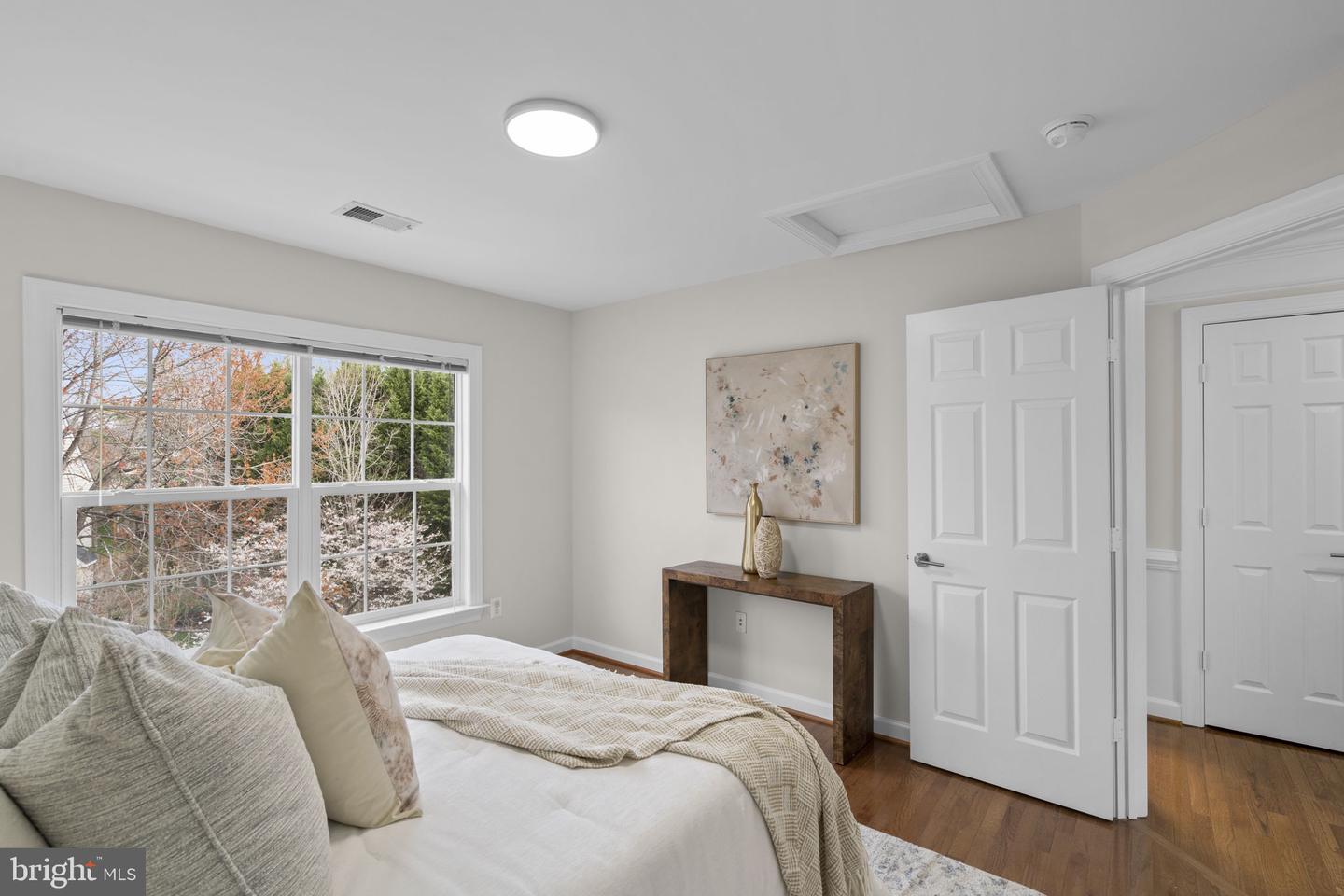 Exquisite, Fully Renovated Home in Prime Cul-de-Sac SettingStep into a spectacular, brand-new designer kitchen featuring custom self-closing wood cabinetry, dovetail drawers, elegant quartz countertops, a marble backsplash, and premium appliancesthoughtfully enhanced with a hot water dispenser for added convenience.Rich, solid hardwood flooring flows seamlessly throughout most of the main and upper levels, including both staircasesbeautifully refinished to perfection. The fully finished walk-out lower level offers stylish engineered wood and luxury vinyl plank flooring, abundant natural light, and exceptional versatility with a spacious recreation room, wet bar, built-ins, fifth bedroom, private den or craft room, and generous storage.Every detail has been thoughtfully curated, including fully updated bathrooms. The luxurious primary suite showcases a new stunning 96-inch double vanity, illuminated mirrors with integrated features, and refined, modern finishes.Fresh, whole-home paint enhances every surface, complemented by upgraded lighting throughout plus a brand-new front door.Outdoors, enjoy a rare, large, flat, fully fenced backyardperfect for both relaxation and entertainment. A deck with stairs leads to a charming brick paver patio, while the homes curb appeal is elevated by a newer brick and stone walkway. An in-ground sprinkler system and a spacious storage shed beneath the deck add everyday convenience.Notable extras include a 7500 watt generator connected to the main electrical panel, five walk-in closets with custom wood systems, and a roof replaced in 2018 with architectural shingles.Ideally situated on a quiet cul-de-sac with access to scenic trails and wooded paths, this home also offers exceptional community amenities including a swimming pool, clubhouse, sports courts, tot lots, and a dog park. Enjoy the ease of walking to nearby shops, dining, and commuter bus access to the Metro.
