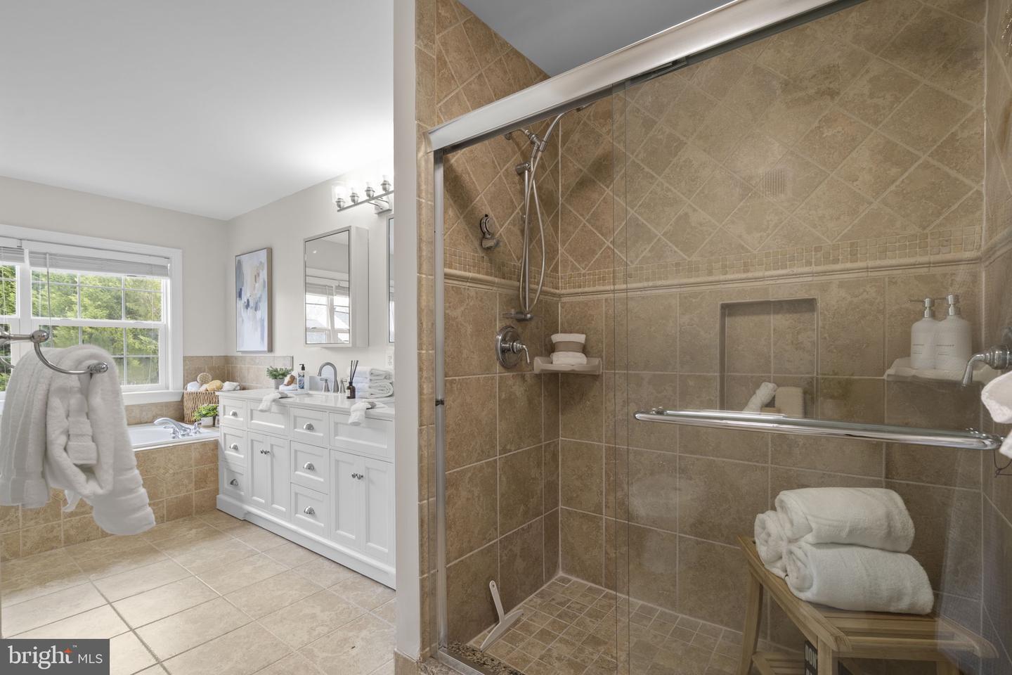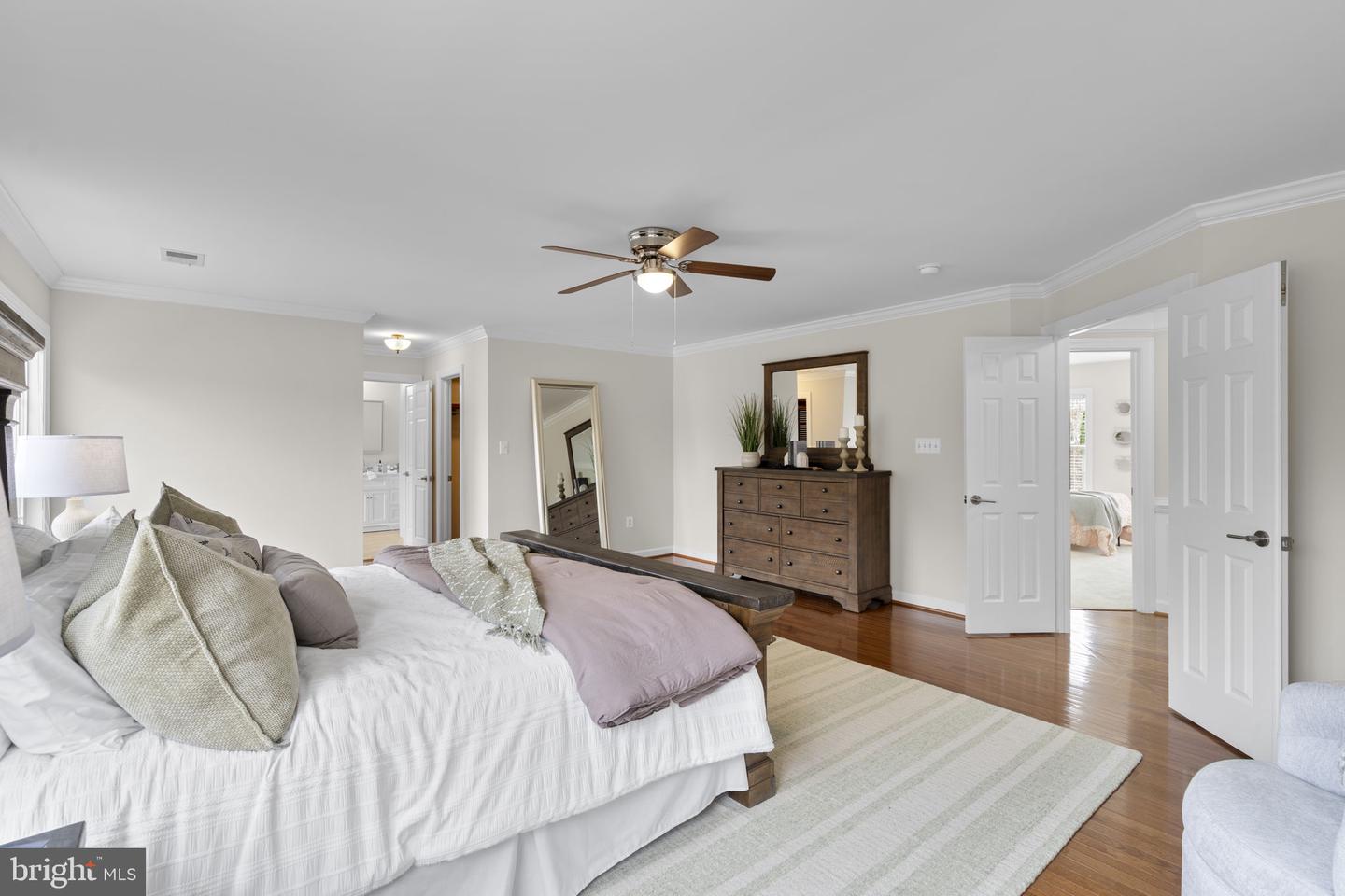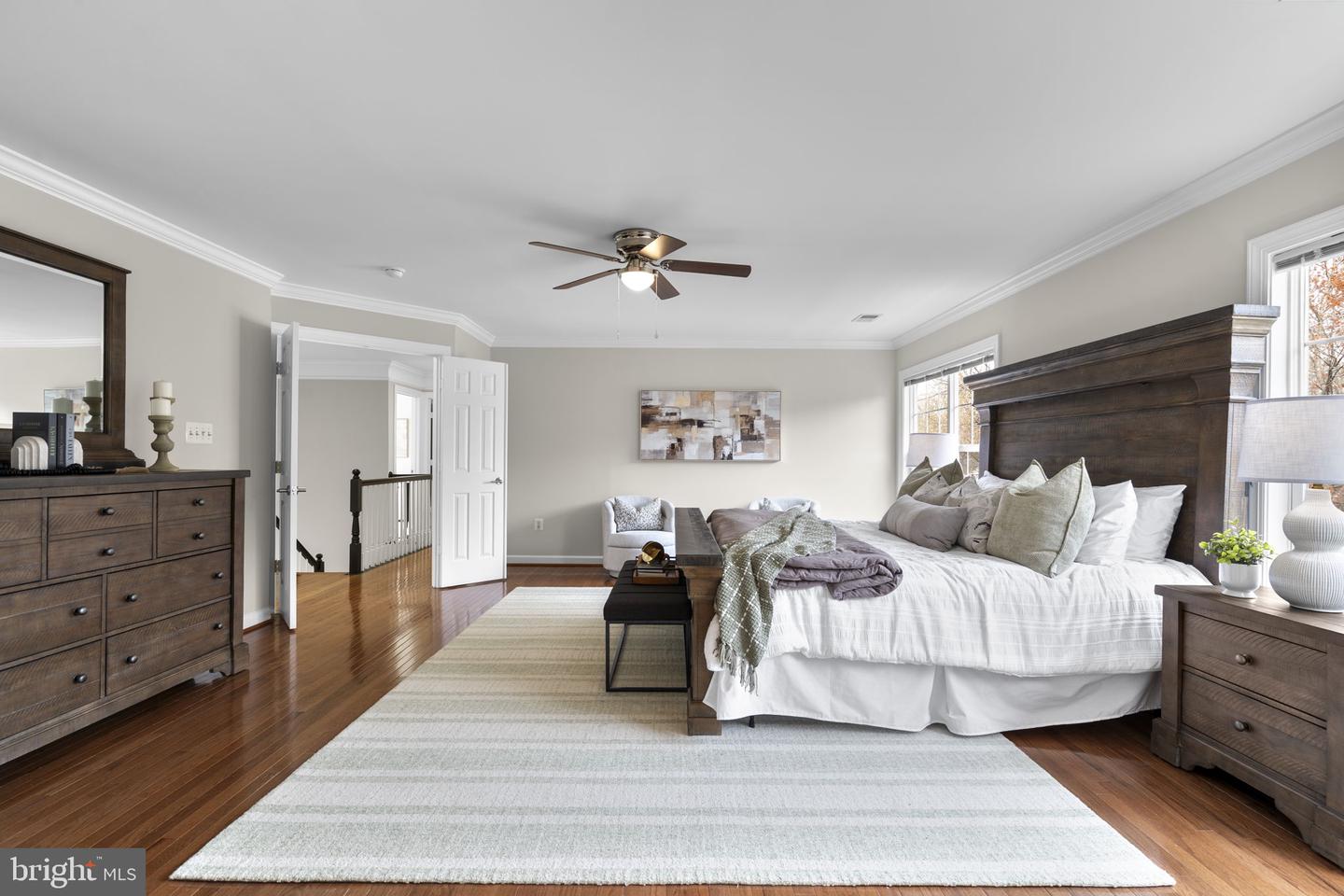 Exquisite, Fully Renovated Home in Prime Cul-de-Sac SettingStep into a spectacular, brand-new designer kitchen featuring custom self-closing wood cabinetry, dovetail drawers, elegant quartz countertops, a marble backsplash, and premium appliancesthoughtfully enhanced with a hot water dispenser for added convenience.Rich, solid hardwood flooring flows seamlessly throughout most of the main and upper levels, including both staircasesbeautifully refinished to perfection. The fully finished walk-out lower level offers stylish engineered wood and luxury vinyl plank flooring, abundant natural light, and exceptional versatility with a spacious recreation room, wet bar, built-ins, fifth bedroom, private den or craft room, and generous storage.Every detail has been thoughtfully curated, including fully updated bathrooms. The luxurious primary suite showcases a new stunning 96-inch double vanity, illuminated mirrors with integrated features, and refined, modern finishes.Fresh, whole-home paint enhances every surface, complemented by upgraded lighting throughout plus a brand-new front door.Outdoors, enjoy a rare, large, flat, fully fenced backyardperfect for both relaxation and entertainment. A deck with stairs leads to a charming brick paver patio, while the homes curb appeal is elevated by a newer brick and stone walkway. An in-ground sprinkler system and a spacious storage shed beneath the deck add everyday convenience.Notable extras include a 7500 watt generator connected to the main electrical panel, five walk-in closets with custom wood systems, and a roof replaced in 2018 with architectural shingles.Ideally situated on a quiet cul-de-sac with access to scenic trails and wooded paths, this home also offers exceptional community amenities including a swimming pool, clubhouse, sports courts, tot lots, and a dog park. Enjoy the ease of walking to nearby shops, dining, and commuter bus access to the Metro.