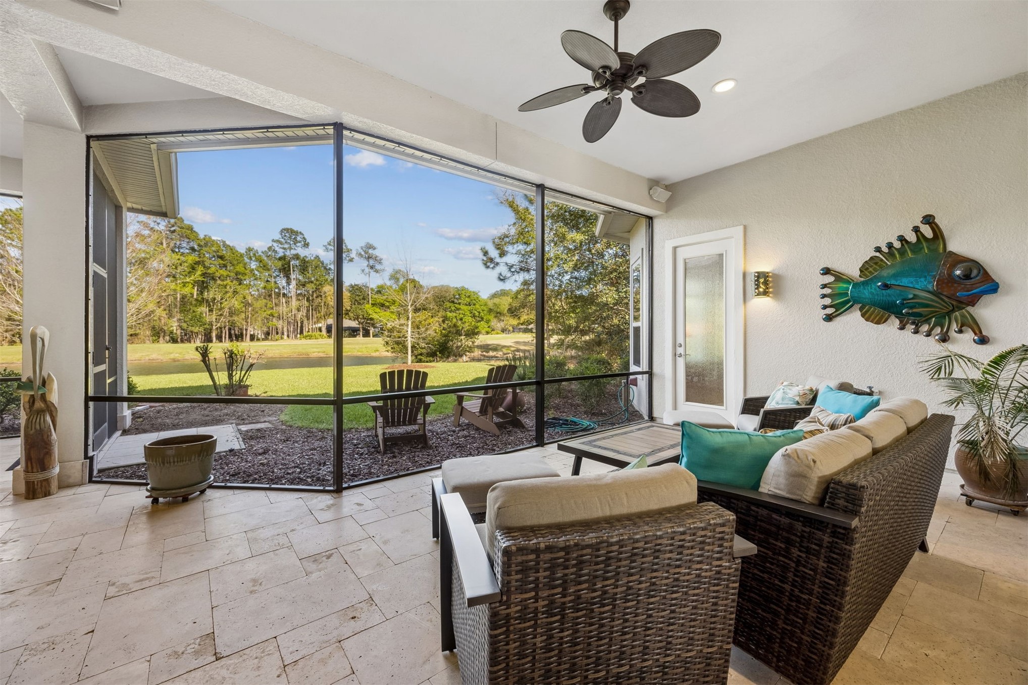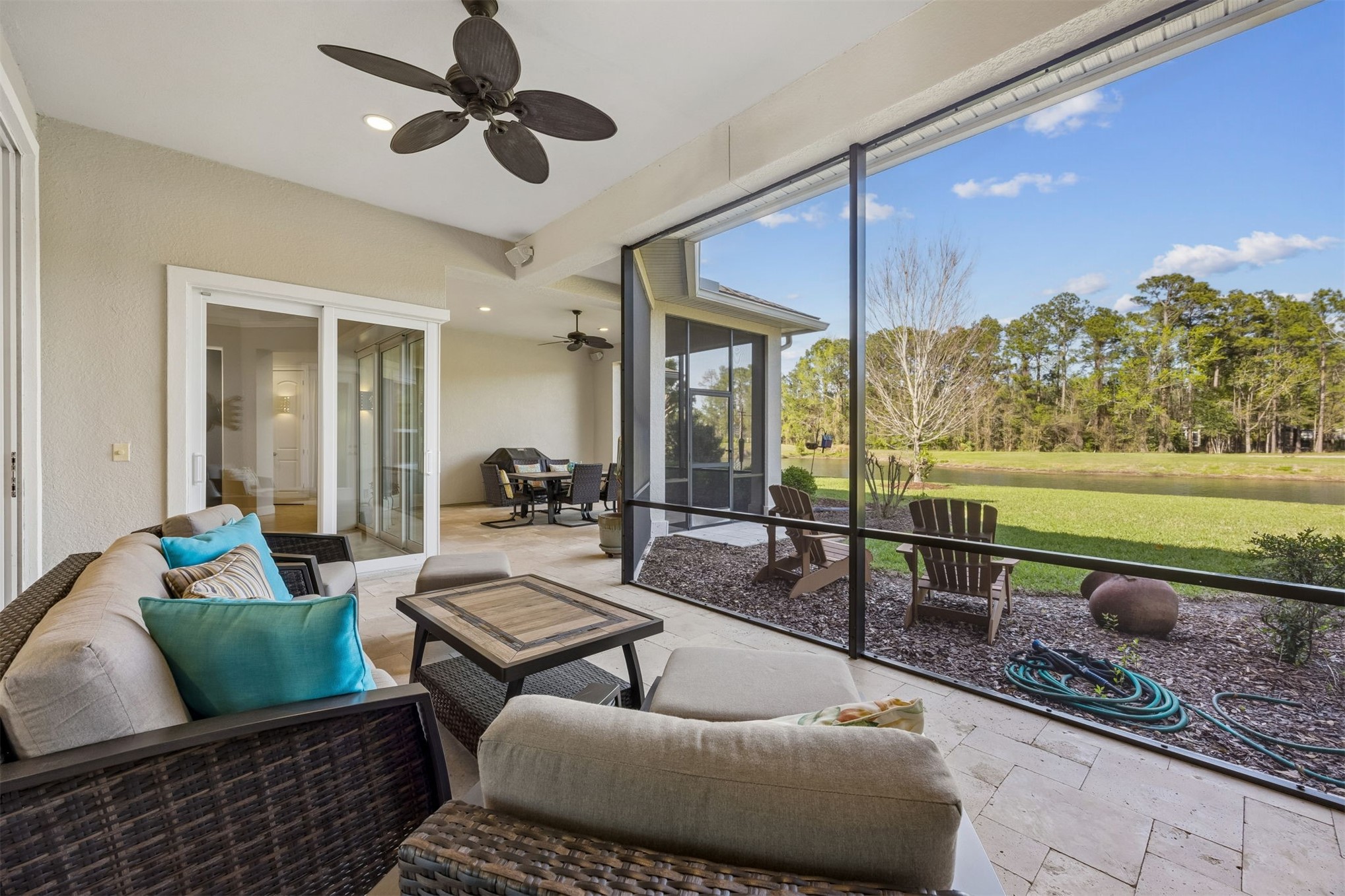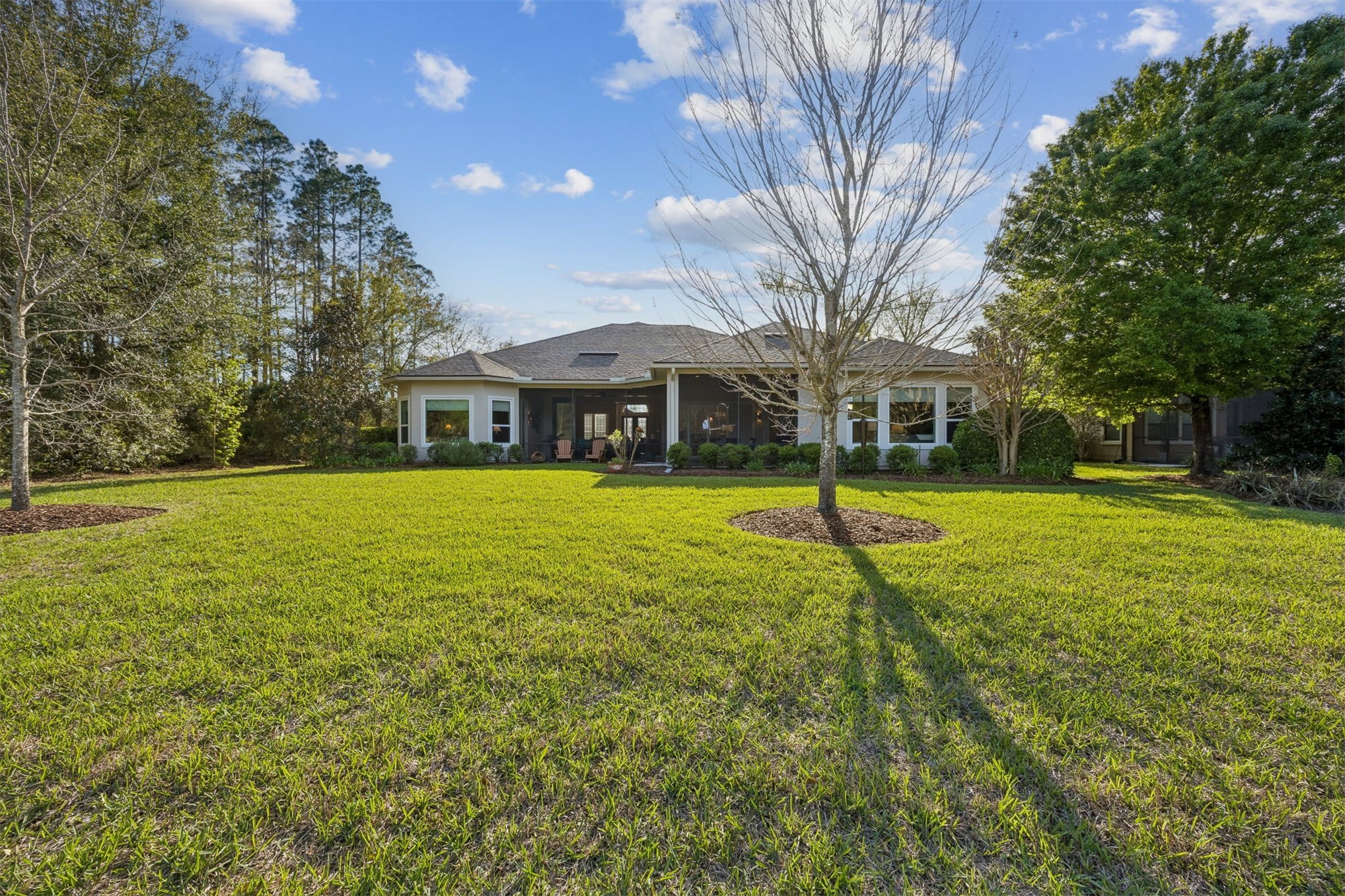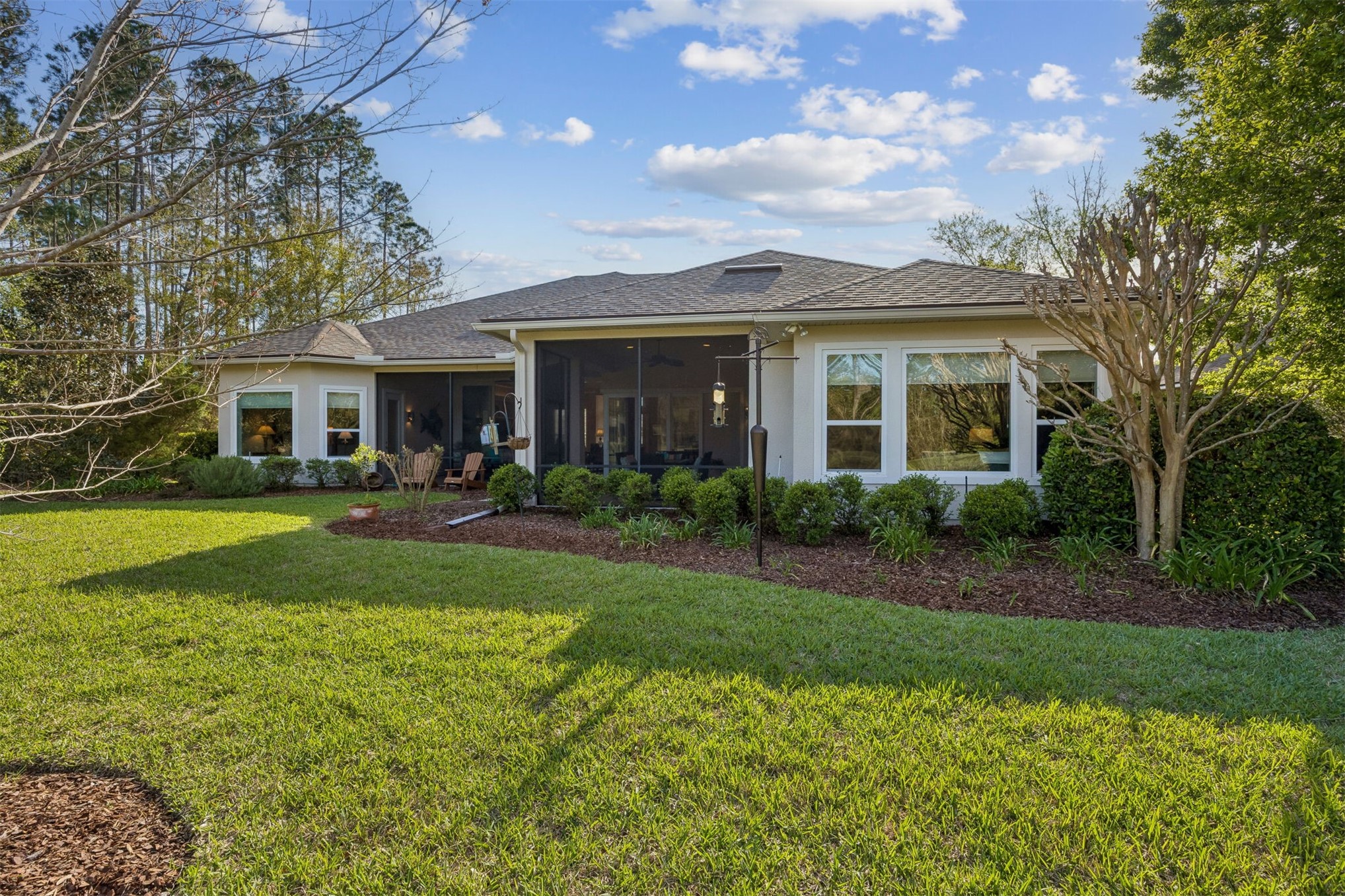 Welcome to 85126 Napeague Drive, a stunning custom home built by Arthur Rutenberg Homes in 2015, where indoor-outdoor living come together in one exceptional property. Offering 4 bedrooms, 3 bathrooms, and a dedicated office, all on a single level, this 3,372 square foot home was designed for both everyday comfort and entertaining. From the moment you enter, soaring ceilings and a coffered living room ceiling create an impressive atmosphere. The kitchen is a true centerpiece for gathering, featuring pro series appliances, gas cooking, and a layout that seamlessly connects to the living spaces, perfect for entertaining friends & family. Set on over half an acre, the lot captures sweeping golf course and lake views while being thoughtfully positioned to accommodate a future pool and paver patio. The expansive screened lanai is truly “endless,” offering the ideal setting for morning coffee, evening cocktails, and year-round outdoor living. With gas and water hookups already in place, your dream summer kitchen is ready to come to life. The entire right wing of the home is dedicated to a private primary suite retreat, offering space and privacy. Additional highlights include an oversized 3-car garage that easily accommodates large SUVs and more, a new roof (2024), central vacuum system, generator hookup, and an HVAC system with clean air technology. The paver driveway provides ample additional parking, while the custom, low-maintenance landscaping enhances the home's curb appeal without the upkeep. Located in the North Hampton community, with no CDD fees, residents enjoy an amenity package including a pool, pickleball courts, tennis courts, sports field, and a kayak launch. This is more than a home, it's a lifestyle.