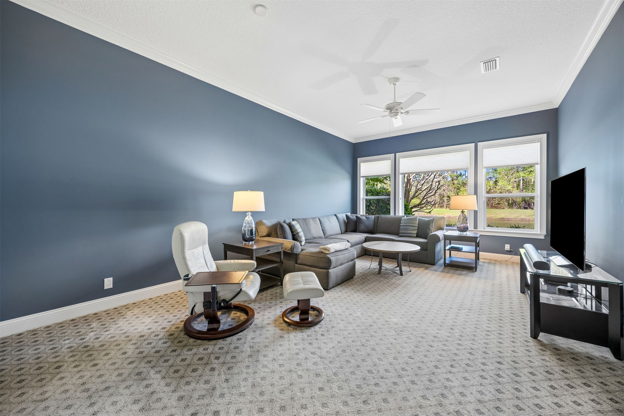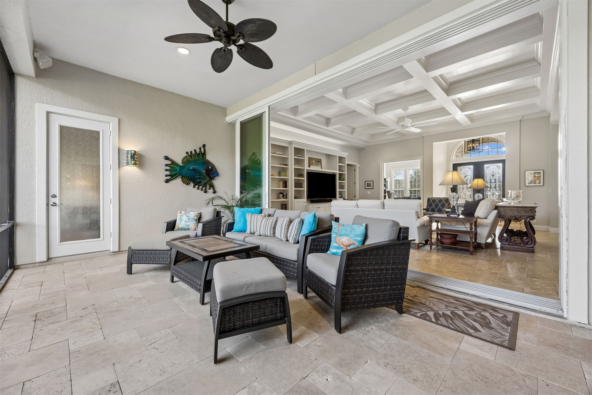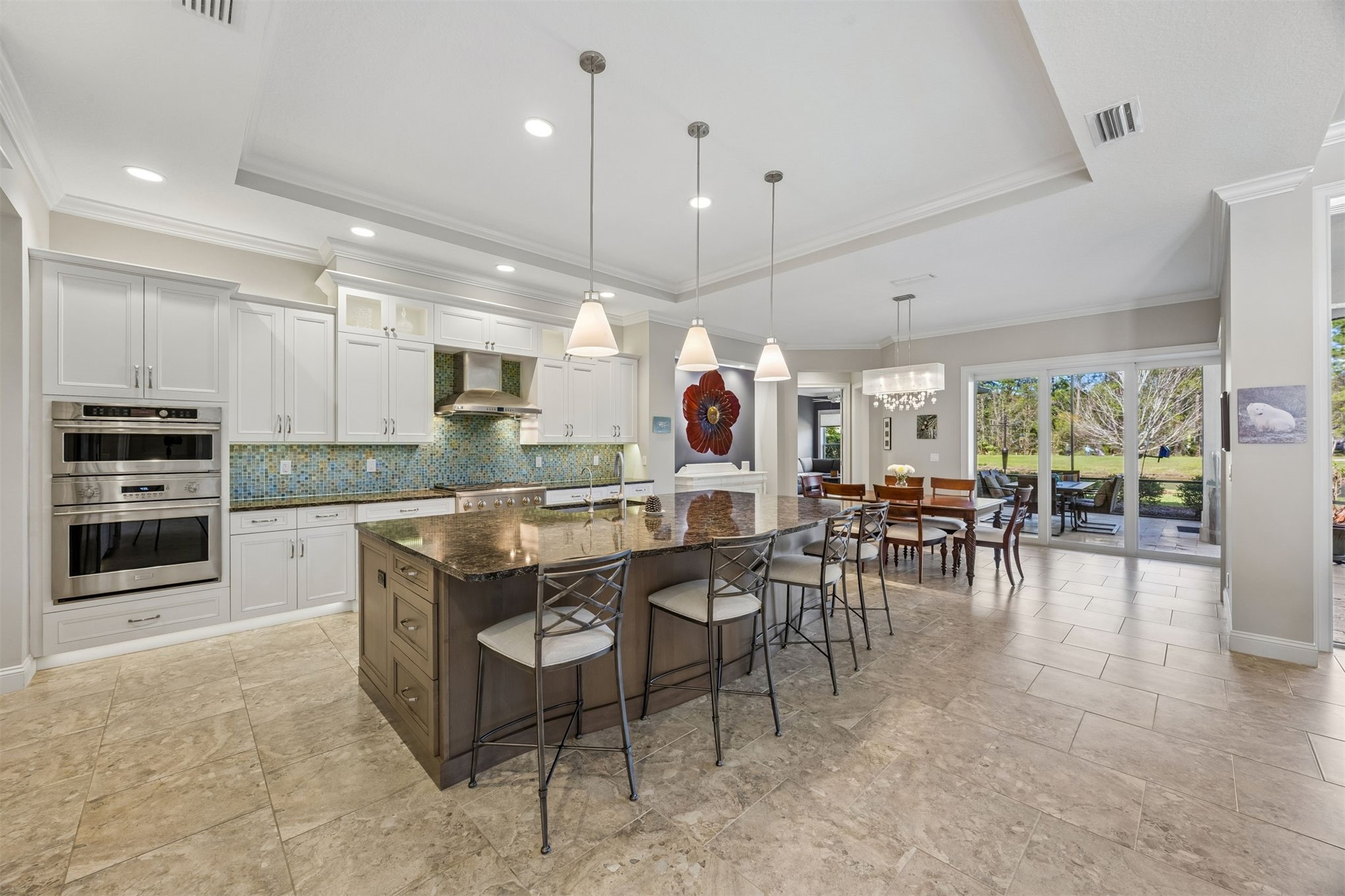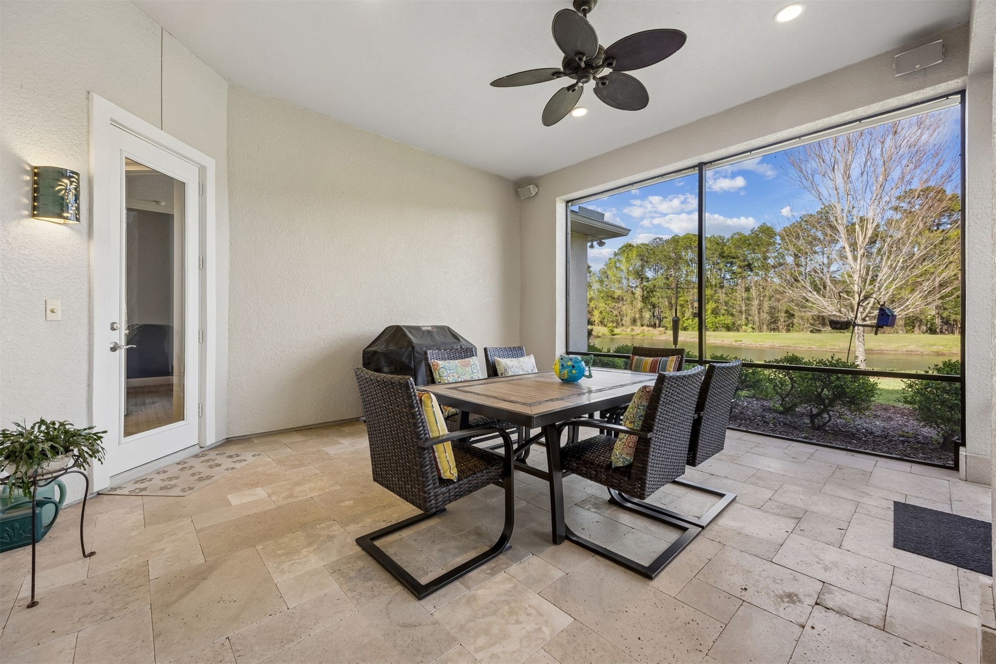 Welcome to 85126 Napeague Drive, a stunning custom home built by Arthur Rutenberg Homes in 2015, where indoor-outdoor living come together in one exceptional property. Offering 4 bedrooms, 3 bathrooms, and a dedicated office, all on a single level, this 3,372 square foot home was designed for both everyday comfort and entertaining. From the moment you enter, soaring ceilings and a coffered living room ceiling create an impressive atmosphere. The kitchen is a true centerpiece for gathering, featuring pro series appliances, gas cooking, and a layout that seamlessly connects to the living spaces, perfect for entertaining friends & family. Set on over half an acre, the lot captures sweeping golf course and lake views while being thoughtfully positioned to accommodate a future pool and paver patio. The expansive screened lanai is truly “endless,” offering the ideal setting for morning coffee, evening cocktails, and year-round outdoor living. With gas and water hookups already in place, your dream summer kitchen is ready to come to life. The entire right wing of the home is dedicated to a private primary suite retreat, offering space and privacy. Additional highlights include an oversized 3-car garage that easily accommodates large SUVs and more, a new roof (2024), central vacuum system, generator hookup, and an HVAC system with clean air technology. The paver driveway provides ample additional parking, while the custom, low-maintenance landscaping enhances the home's curb appeal without the upkeep. Located in the North Hampton community, with no CDD fees, residents enjoy an amenity package including a pool, pickleball courts, tennis courts, sports field, and a kayak launch. This is more than a home, it's a lifestyle.