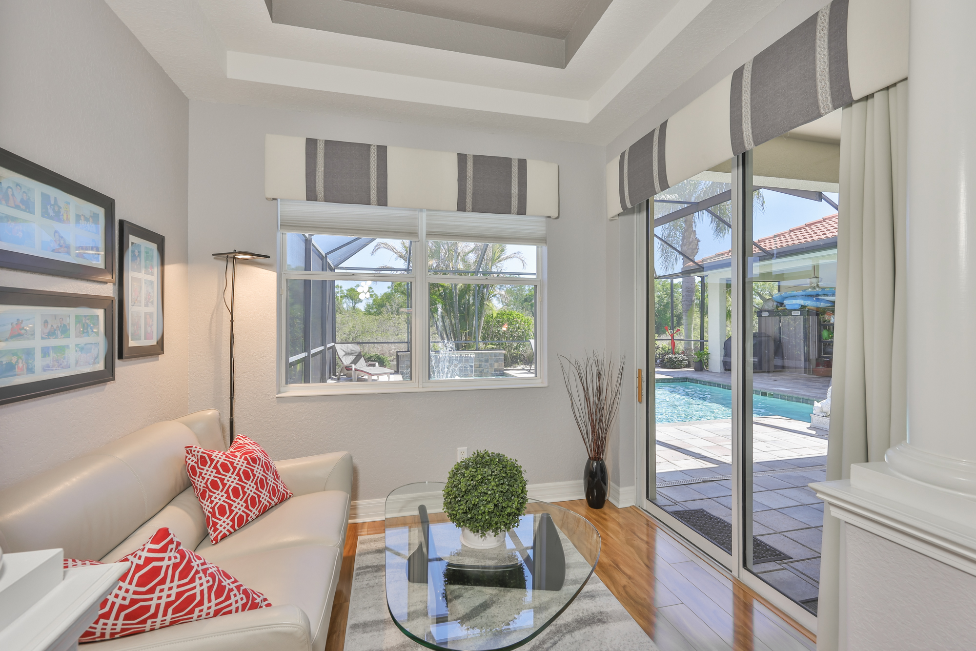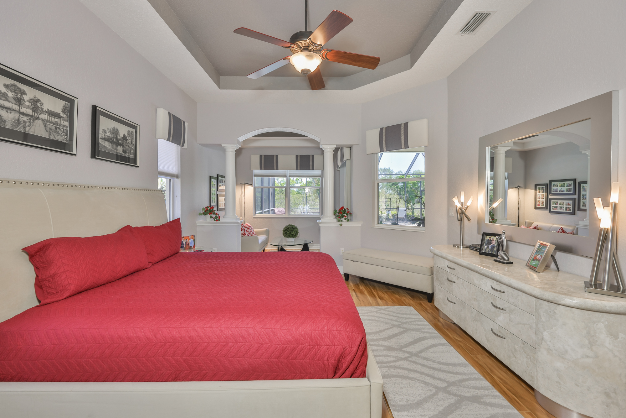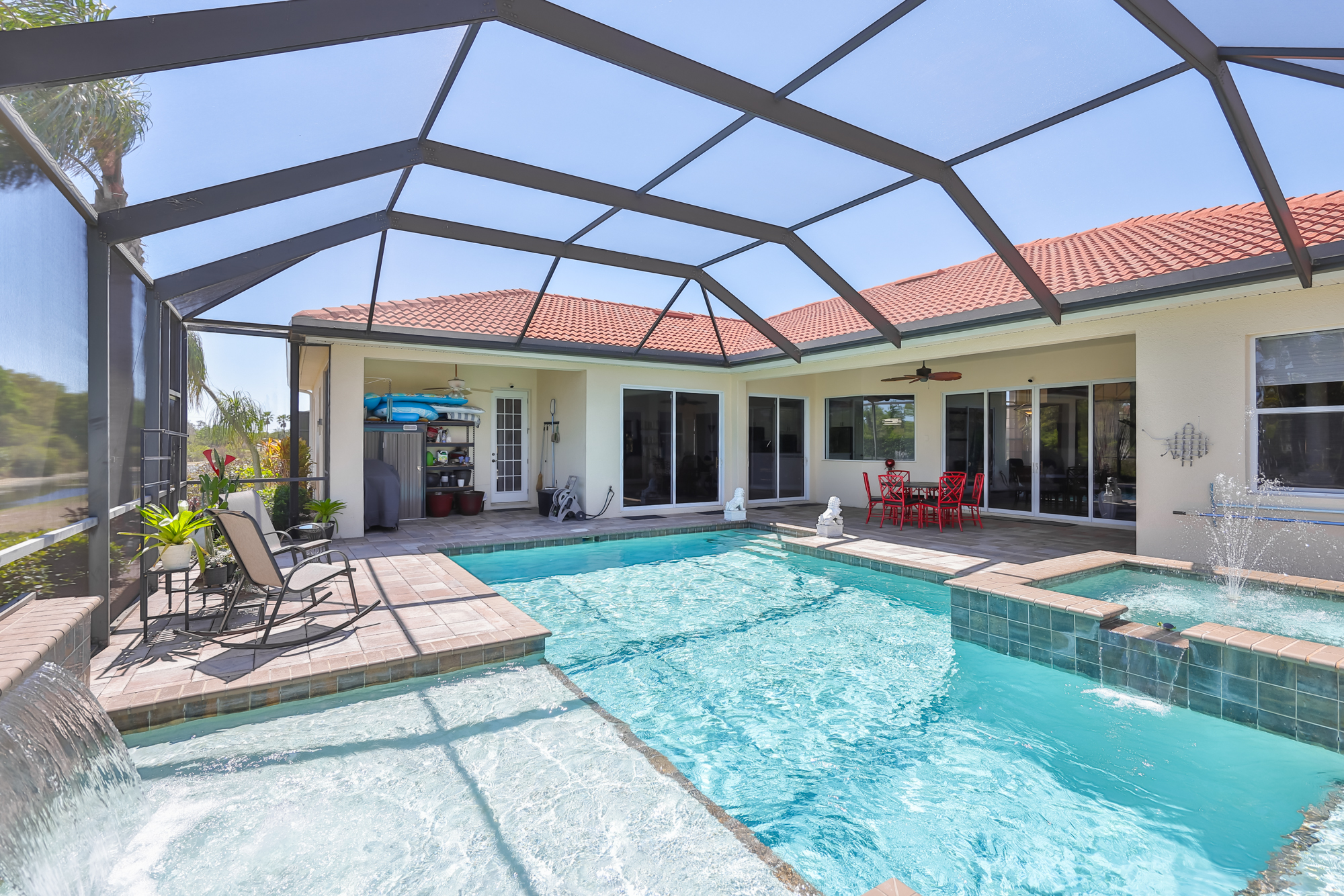 Click On Interactive 3D Tour Above ----- SPECTACULAR EXECUTIVE HOME W/RESORT-STYLE POOL, SPA & WATERFALL, ON A UNIQUE PREMIUM WATER VIEW LOT W/NO BACKYARD NEIGHBORS! Welcome to this immaculate and perfectly maintained designer home with UPGRADES GALORE. nestled within a quiet cul de sac in the premier resort-style 55 community of Renaissance. Step inside the serene front entryway, through CUSTOM ETCHED GLASS/ART DECO DOUBLE DOORS, and be awed by the astounding WATER VIEWS ALL ACROSS THE REAR OF THE HOME! The elegant living room/dining room combo, with vaulted ceilings and custom tile flooring, is the perfect space for entertaining, with a wall of siders for easy access to the amazing covered & screened lanai & pool area. This home was built for entertaining, with a fabulous UPGRADED EAT-IN KITCHEN (2023). A chefs dream featuring 42 inch cabinets w/sleek hardware, top-of-the-line stainless appliances including convection oven, natural gas cooktop grille and 17 ft of dramatic, black bull-nosed granite counter & serving space! The spacious family room has a custom built-in bar w/wine storage cabinets and pullouts, glass doors and another wall of double sliders leading to the lanai & pool. The EXTENDED owners suite has its own sitting area w/private entrance to the lanai & pool, a luxurious ensuite bathroom w/walk-in shower, oversized tub, upgraded vanities, lighting & mirrors (2023) and Moen fixtures (2026). The other 3 SPACIOUS BEDROOMS & 2 FULL BATHROOMS, INCLUDING POOL BATH, are on the opposite side of the home for privacy, one currently used as an office & the other a dance studio. The extraordinary lanai boasts an oversized, unique heated pool w/spa, waterfall and sunbathing deck. Other home upgrades include HVAC (2026), SOFTWARE CONTROL (2026), POOL PUMP (2025), WATER SOFTENER (2025), WHOLE HOUSE GENERATOR (2025), SOLAR PANELS FOR POOL (2024), WATER HEATER (2022), CUSTOM LAMINATE FLOORING IN FAMILY ROOM & BEDROOMS 2, 3 & 4 (2021), WHOLE HOUSE ADT SECURITY SYSTEM, PLUS OVERSIZED GARAGE W/3 CEILING STORAGE LOFTS. This home is just a short golf cart ride to the neighborhood Club Renaissance where you can enjoy dining, drinks, spa, fitness classes, social activities and so much more. So come and view this beauty today and discover why youll want to call it home!